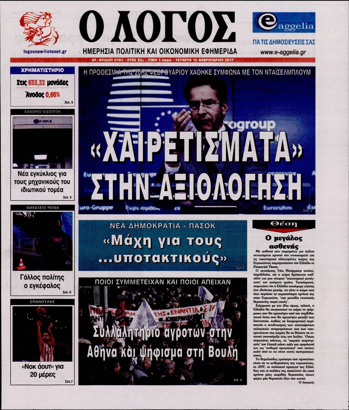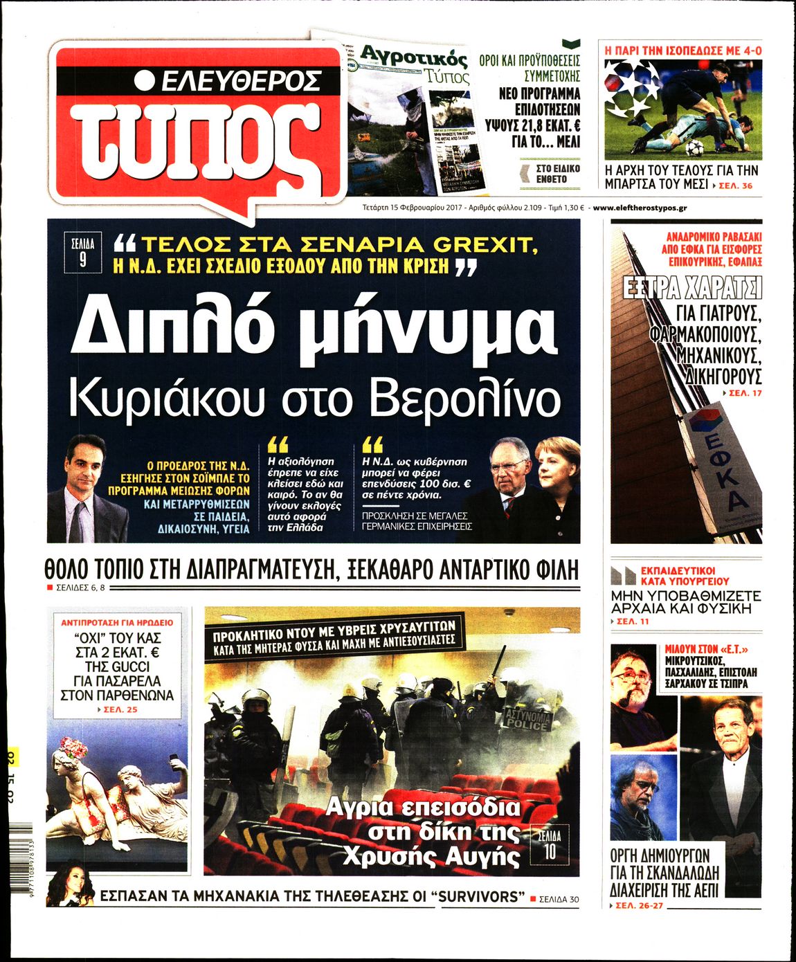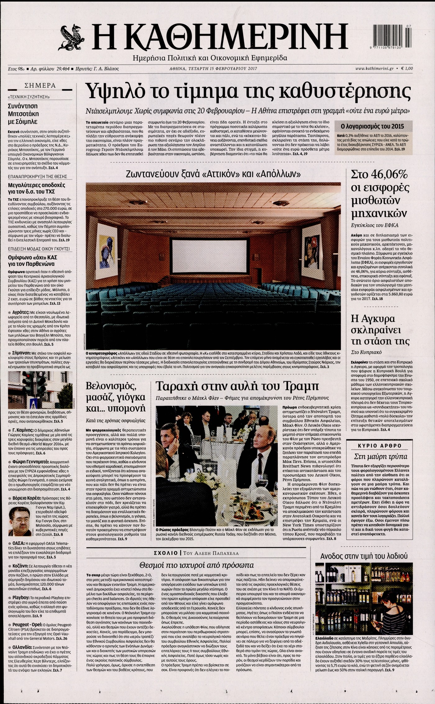 Οι πολιτικές εφημερίδες 15/2/2017 Enikos Newsroom 00:40, Τετάρτη 15 Φεβρουαρίου 2017 Media Διαβάστε τα σημερινά πρωτοσέλιδα των πολιτικών εφημερίδων: ΠΟΛΙΤΙΚΕΣ ΕΦΗΜΕΡΙΔΕΣ ΠΡΩΤΟΣΕΛΙΔΑ Μοιράσου το: σχολίασε κι εσύ (0 σχόλια) Ακολουθήστε το enikos.gr στο Google News και μάθετε πρώτοι όλες τις ειδήσεις Δείτε όλες τις τελευταίες ειδήσεις από την Ελλάδα και τον Κόσμο στο enikos.gr Ειδήσεις Ροή Ειδήσεων 1 ώρα πριν Υπόθεση Έπσταϊν: Το Υπουργείο Δικαιοσύνης δημοσιοποίησε μια σειρά από εξαιρετικά επεξεργασμένα αρχεία – «Λείπουν τα πιο σημαντικά έγγραφα», λένε οι Δημοκρατικοί 37 λεπτά πριν Ο «χάρτης» με τις αυξήσεις και τις φοροελαφρύνσεις του 2026 – Ποιοι και πόσα κερδίζουν 11 ώρες πριν Χριστούγεννα στα μπλόκα: Επιμένουν στις κινητοποιήσεις τους οι αγρότες – Ανοίγουν τα διόδια το Σαββατοκύριακο 2 ώρες πριν ΟΝΕΧ – MEGATUGS: Ξεκίνησε η ναυπήγηση ρυμουλκών στην Ελλάδα – Προθάλαμος πολεμικών πλοίων – Δείτε φωτογραφίες και βίντεο 2 ώρες πριν Καιρός: Αλλαγή σκηνικού σήμερα με βροχές και πτώση της θερμοκρασίας – Οι προβλέψεις των μετεωρολόγων για τα Χριστούγεννα 3 ώρες πριν Αυγά: Πόσα μπορείτε να τρώτε την ημέρα με ασφάλεια για μέγιστη πρόσληψη πρωτεΐνης 4 ώρες πριν Τα ζώδια σήμερα, Σάββατο 20 Δεκεμβρίου: Παρθένοι, το σύμπαν σας δίνει το κλειδί 3 ώρες πριν Οπτική ψευδαίσθηση: Μόνο αν είσαι ο Σέρλοκ Χολμς θα βρεις τον αριθμό «87» σε 7 δευτερόλεπτα 1 ώρα πριν Αρχαιολόγοι ανακάλυψαν σε χωράφι απεικόνιση 600 ετών ενός Αγίου – Τα στοιχεία που δείχνουν ότι μαρτύρησε 8 λεπτά πριν Παιδική υπέρταση: Μια σιωπηλή απειλή που αυξάνεται διεθνώς 9 λεπτά πριν Αγχώνεται για το χριστουγεννιάτικο δώρο που πήρε στην πλούσια σύντροφό του – «Φοβάμαι πως θα το βρει φθηνιάρικο, φοράει βραχιόλια Cartier» 16 λεπτά πριν Enerwave: Το νέο «ρεύμα» στη λιανική ενέργειας που αλλάζει την εμπειρία του καταναλωτή 20 λεπτά πριν Γιώργος Μαζωνάκης: Τη Δευτέρα η μήνυση του τραγουδιστή κατά του 22χρονου 29 λεπτά πριν Αμαλία Κωστοπούλου: Το μήνυμα για το χειρουργείο στο γόνατο – «Αυτός ο τραυματισμός μού στέρησε πολλά…» ENIKOS NETWORK Πόσα κιλά παίρνουμε πραγματικά τα Χριστούγεννα, σύμφωνα με την επιστήμη – Πώς να το αποτρέψουμε; Το δημοφιλές ρόφημα που αυξάνει την πίεση πιο γρήγορα και από το αλάτι Mega χριστουγεννιάτικη φορολοταρία: «Κλείδωσε» η ημερομηνία για την κλήρωση – Ερωτήσεις και απαντήσεις Αναστολή μέτρων αναγκαστικής εκτέλεσης για κτηνοτρόφους που πλήττονται από την ευλογιά των αιγοπροβάτων Χαρτογραφώντας το «σημείο χωρίς επιστροφή»: Για πρώτη φορά αποκαλύπτεται με λεπτομέρεια το ακανθώδες όριο της ατμόσφαιρας τ... Η Google καταργεί τη λειτουργία «dark web report» – Πώς θα μπορούν οι χρήστες να διαγράφουν τα δεδομένα τους περισσότερα 08:14 , Σάββατο 20 Δεκεμβρίου 2025 Τρομεροί γονείς: Η Μαρία Καβογιάννη εισβάλλει στο σπίτι της οικογένειας Στεφανίδη Όσα θα δούμε στο νέο διπλό επεισόδιο της σειράς «Τρομεροί γονείς», σήμερα Σάββατο 20 Δεκεμβρίο... 05:48 , Σάββατο 20 Δεκεμβρίου 2025 Οι οικονομικές εφημερίδες 20/12/2025 Διαβάστε τα πρωτοσέλιδα από τις οικονομικές εφημερίδες, σήμερα 20/12/2025. 05:43 , Σάββατο 20 Δεκεμβρίου 2025 Οι αθλητικές εφημερίδες 20/12/2025 Διαβάστε τα πρωτοσέλιδα από τις αθλητικές εφημερίδες, σήμερα 20/12/2025. 05:38 , Σάββατο 20 Δεκεμβρίου 2025 Οι πολιτικές εφημερίδες 20/12/2025 Διαβάστε τα πρωτοσέλιδα από τις πολιτικές εφημερίδες, σήμερα 20/12/2025. ΤΕΛΕΥΤΑΙΕΣ ΕΙΔΗΣΕΙΣ 8 λεπτά πριν Παιδική υπέρταση: Μια σιωπηλή απειλή που αυξάνεται... 9 λεπτά πριν Αγχώνεται για το χριστ