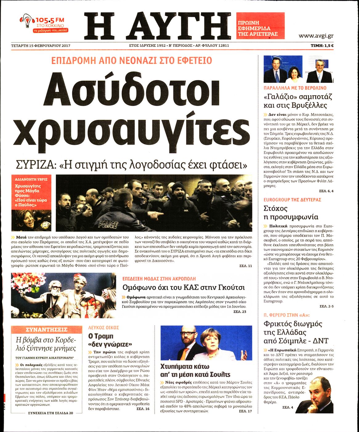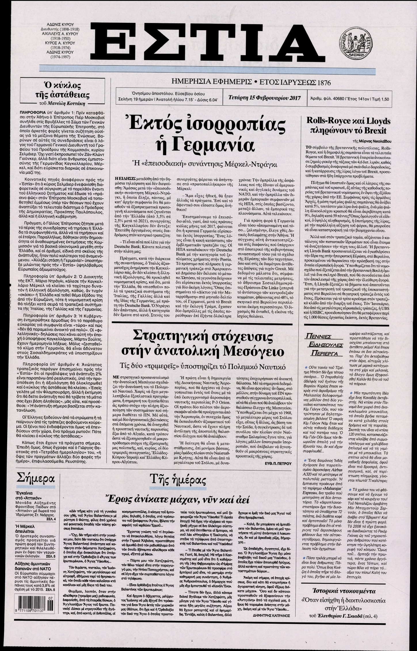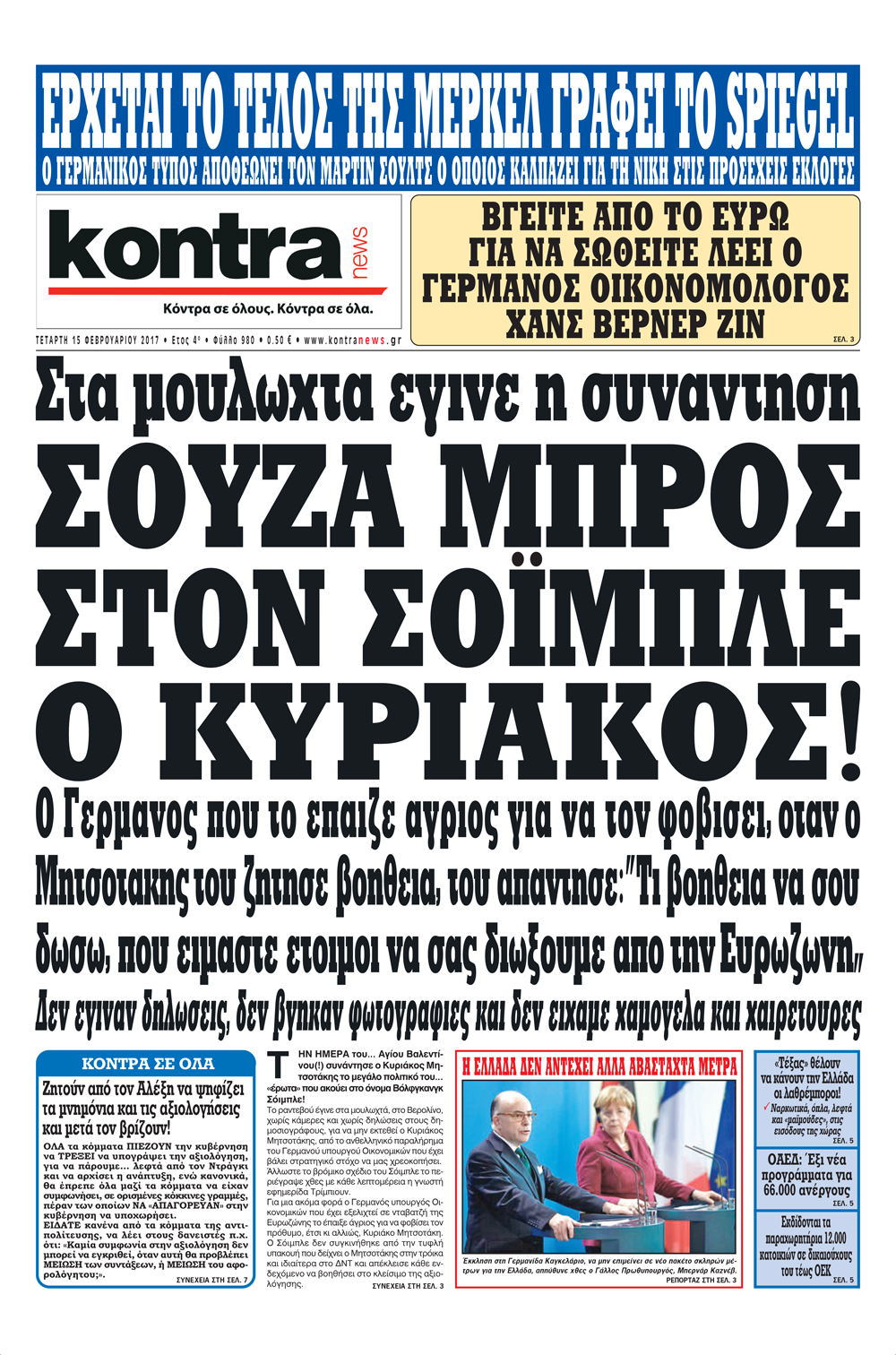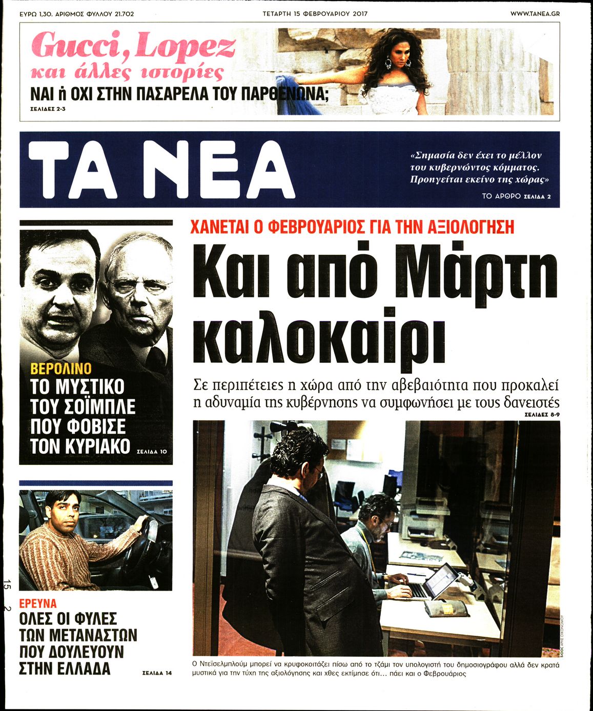 Οι πολιτικές εφημερίδες 15/2/2017 Enikos Newsroom 00:40, Τετάρτη 15 Φεβρουαρίου 2017 Media Διαβάστε τα σημερινά πρωτοσέλιδα των πολιτικών εφημερίδων: ΠΟΛΙΤΙΚΕΣ ΕΦΗΜΕΡΙΔΕΣ ΠΡΩΤΟΣΕΛΙΔΑ Μοιράσου το: σχολίασε κι εσύ (0 σχόλια) Ακολουθήστε το enikos.gr στο Google News και μάθετε πρώτοι όλες τις ειδήσεις Δείτε όλες τις τελευταίες ειδήσεις από την Ελλάδα και τον Κόσμο στο enikos.gr Ειδήσεις Ροή Ειδήσεων 1 ώρα πριν Υπόθεση Έπσταϊν: Το Υπουργείο Δικαιοσύνης δημοσιοποίησε μια σειρά από εξαιρετικά επεξεργασμένα αρχεία – «Λείπουν τα πιο σημαντικά έγγραφα», λένε οι Δημοκρατικοί 37 λεπτά πριν Ο «χάρτης» με τις αυξήσεις και τις φοροελαφρύνσεις του 2026 – Ποιοι και πόσα κερδίζουν 11 ώρες πριν Χριστούγεννα στα μπλόκα: Επιμένουν στις κινητοποιήσεις τους οι αγρότες – Ανοίγουν τα διόδια το Σαββατοκύριακο 2 ώρες πριν ΟΝΕΧ – MEGATUGS: Ξεκίνησε η ναυπήγηση ρυμουλκών στην Ελλάδα – Προθάλαμος πολεμικών πλοίων – Δείτε φωτογραφίες και βίντεο 2 ώρες πριν Καιρός: Αλλαγή σκηνικού σήμερα με βροχές και πτώση της θερμοκρασίας – Οι προβλέψεις των μετεωρολόγων για τα Χριστούγεννα 3 ώρες πριν Αυγά: Πόσα μπορείτε να τρώτε την ημέρα με ασφάλεια για μέγιστη πρόσληψη πρωτεΐνης 4 ώρες πριν Τα ζώδια σήμερα, Σάββατο 20 Δεκεμβρίου: Παρθένοι, το σύμπαν σας δίνει το κλειδί 3 ώρες πριν Οπτική ψευδαίσθηση: Μόνο αν είσαι ο Σέρλοκ Χολμς θα βρεις τον αριθμό «87» σε 7 δευτερόλεπτα 1 ώρα πριν Αρχαιολόγοι ανακάλυψαν σε χωράφι απεικόνιση 600 ετών ενός Αγίου – Τα στοιχεία που δείχνουν ότι μαρτύρησε 8 λεπτά πριν Παιδική υπέρταση: Μια σιωπηλή απειλή που αυξάνεται διεθνώς 9 λεπτά πριν Αγχώνεται για το χριστουγεννιάτικο δώρο που πήρε στην πλούσια σύντροφό του – «Φοβάμαι πως θα το βρει φθηνιάρικο, φοράει βραχιόλια Cartier» 16 λεπτά πριν Enerwave: Το νέο «ρεύμα» στη λιανική ενέργειας που αλλάζει την εμπειρία του καταναλωτή 20 λεπτά πριν Γιώργος Μαζωνάκης: Τη Δευτέρα η μήνυση του τραγουδιστή κατά του 22χρονου 29 λεπτά πριν Αμαλία Κωστοπούλου: Το μήνυμα για το χειρουργείο στο γόνατο – «Αυτός ο τραυματισμός μού στέρησε πολλά…» ENIKOS NETWORK Πόσα κιλά παίρνουμε πραγματικά τα Χριστούγεννα, σύμφωνα με την επιστήμη – Πώς να το αποτρέψουμε; Το δημοφιλές ρόφημα που αυξάνει την πίεση πιο γρήγορα και από το αλάτι Mega χριστουγεννιάτικη φορολοταρία: «Κλείδωσε» η ημερομηνία για την κλήρωση – Ερωτήσεις και απαντήσεις Αναστολή μέτρων αναγκαστικής εκτέλεσης για κτηνοτρόφους που πλήττονται από την ευλογιά των αιγοπροβάτων Χαρτογραφώντας το «σημείο χωρίς επιστροφή»: Για πρώτη φορά αποκαλύπτεται με λεπτομέρεια το ακανθώδες όριο της ατμόσφαιρας τ... Η Google καταργεί τη λειτουργία «dark web report» – Πώς θα μπορούν οι χρήστες να διαγράφουν τα δεδομένα τους περισσότερα 08:14 , Σάββατο 20 Δεκεμβρίου 2025 Τρομεροί γονείς: Η Μαρία Καβογιάννη εισβάλλει στο σπίτι της οικογένειας Στεφανίδη Όσα θα δούμε στο νέο διπλό επεισόδιο της σειράς «Τρομεροί γονείς», σήμερα Σάββατο 20 Δεκεμβρίο... 05:48 , Σάββατο 20 Δεκεμβρίου 2025 Οι οικονομικές εφημερίδες 20/12/2025 Διαβάστε τα πρωτοσέλιδα από τις οικονομικές εφημερίδες, σήμερα 20/12/2025. 05:43 , Σάββατο 20 Δεκεμβρίου 2025 Οι αθλητικές εφημερίδες 20/12/2025 Διαβάστε τα πρωτοσέλιδα από τις αθλητικές εφημερίδες, σήμερα 20/12/2025. 05:38 , Σάββατο 20 Δεκεμβρίου 2025 Οι πολιτικές εφημερίδες 20/12/2025 Διαβάστε τα πρωτοσέλιδα από τις πολιτικές εφημερίδες, σήμερα 20/12/2025. ΤΕΛΕΥΤΑΙΕΣ ΕΙΔΗΣΕΙΣ 8 λεπτά πριν Παιδική υπέρταση: Μια σιωπηλή απειλή που αυξάνεται... 9 λεπτά πριν Αγχώνεται για το χριστ