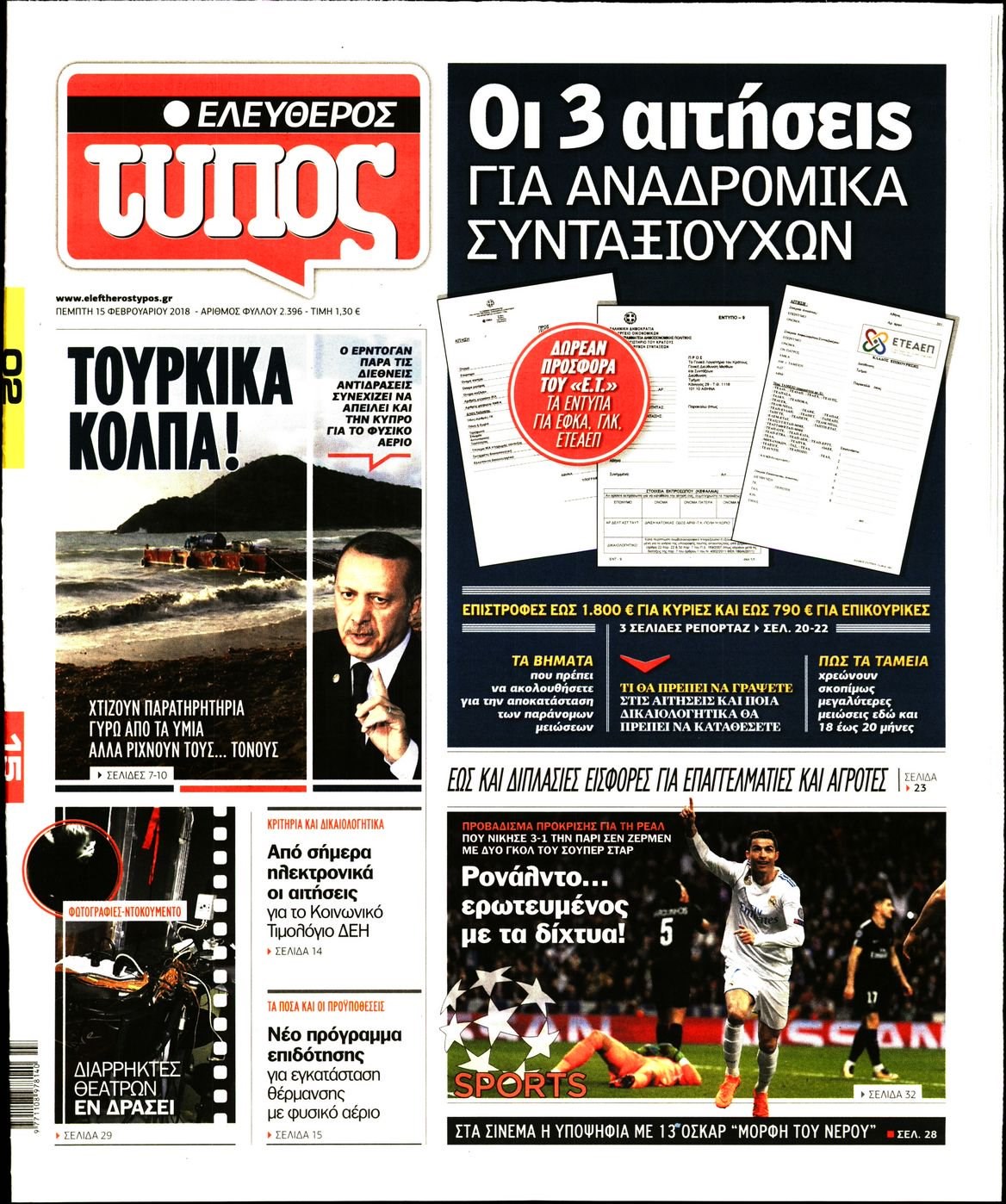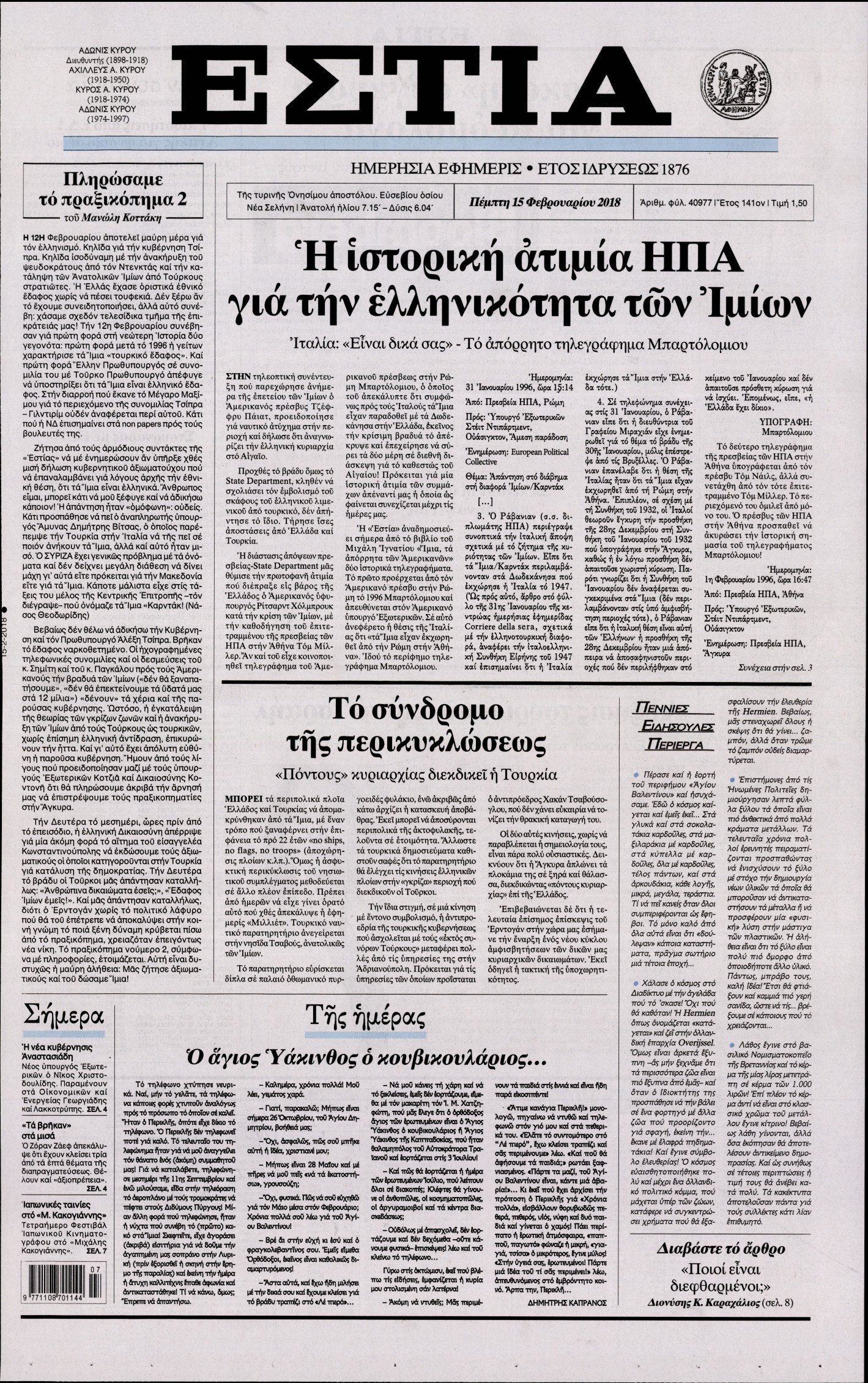 Οι πολιτικές εφημερίδες 15/2/2018 Enikos Newsroom 07:41, Πέμπτη 15 Φεβρουαρίου 2018 Media Διαβάστε τα σημερινά πρωτοσέλιδα των πολιτικών εφημερίδων: ΠΟΛΙΤΙΚΕΣ ΕΦΗΜΕΡΙΔΕΣ ΠΡΩΤΟΣΕΛΙΔΑ Μοιράσου το: σχολίασε κι εσύ (0 σχόλια) Ακολουθήστε το enikos.gr στο Google News και μάθετε πρώτοι όλες τις ειδήσεις Δείτε όλες τις τελευταίες ειδήσεις από την Ελλάδα και τον Κόσμο στο enikos.gr Ειδήσεις Ροή Ειδήσεων 2 ώρες πριν Πώς δρούσε το κύκλωμα που διακινούσε ναρκωτικά σε σχολεία – Υπέβαλαν σε βασανιστήρια όσους δεν τηρούσαν τους «κανόνες πειθαρχίας» 3 ώρες πριν Αγρότες: Γιορτές στα μπλόκα με ανοιχτά διόδια – Δικογραφία στα Ιωάννινα για το σήκωμα των μπαρών 2 ώρες πριν Ζελένσκι: Οι Αμερικανοί πρότειναν συνάντηση Ουκρανίας, ΗΠΑ, Ρωσίας στο Μαϊάμι 2 ώρες πριν Αττική: Εξαρθρώθηκε εγκληματική οργάνωση που έκλεβε οχήματα, τα παραποιούσε και τα μεταπωλούσε σε πολίτες – Πώς δρούσε το κύκλωμα 1 ώρα πριν Μικαέλα Μπέντχαους: Ο πρώτος άνθρωπος σε αναπηρικό αμαξίδιο που ταξίδεψε στο διάστημα – ΒΙΝΤΕΟ 3 ώρες πριν Η τύχη χαμογελά σε 3 ζώδια έως τις 28 Δεκεμβρίου – «Προσέξτε τις επιλογές σας και η επιμονή σας θα ανταμειφθεί» 7 ώρες πριν Διαιτολόγος αποκαλύπτει 9 πρωινές συνήθειες που «λιώνουν» το κοιλιακό λίπος – «Υποστηρίζουν την υγιεινή απώλεια βάρους» 4 ώρες πριν Μία ανεκμετάλλευτη πηγή θα μπορούσε να προσφέρει ανεξάντλητη ενέργεια – Οι επιστήμονες ίσως γνωρίζουν πώς να την ξεκλειδώσουν 10 ώρες πριν Enerwave: Το νέο «ρεύμα» στη λιανική ενέργειας που αλλάζει την εμπειρία του καταναλωτή 8 λεπτά πριν Μήπως οι γιορτές σας δεν είναι τόσο τέλειες; 7 χριστουγεννιάτικες συνήθειες που μαρτυρούν ότι μια οικογένεια είναι δυσλειτουργική 12 λεπτά πριν Φωτιά σε αυτοκίνητο στην Λεωφόρο Κηφισίας στο ύψος της Φιλοθέης – Μεγάλο μποτιλιάρισμα στο σημείο 16 λεπτά πριν Πηνελόπη Πλάκα: Η εξομολόγηση για την προσωπική της ζωή – «Γούσταρα πάρα πολύ την ελευθερία μου» 28 λεπτά πριν Λούλα: Προειδοποιεί πως μια επέμβαση των ΗΠΑ στη Βενεζουέλα θα μπορούσε να είναι καταστροφική 36 λεπτά πριν Τραμπ: Πώς περνάει τις γιορτές των Χριστουγέννων – Τα δώρα που κάνει στα εγγόνια του ENIKOS NETWORK Οι γυναίκες αποκαλύπτουν το πιο ελκυστικό πράγμα που μπορεί να κάνει ένας άνδρας Ομορφιά και αντιγήρανση: Ειδικοί μιλούν για συσκευές περιποίησης του δέρματος Ολοκληρώθηκαν πληρωμές 22,16 εκατ. ευρώ για το μεταφορικό ισοδύναμο – Κικίλιας: Στηρίζουμε τη νησιωτικότητα Η Realnews στο www.pressreader.com Χαρτογραφώντας το «σημείο χωρίς επιστροφή»: Για πρώτη φορά αποκαλύπτεται με λεπτομέρεια το ακανθώδες όριο της ατμόσφαιρας τ... Η Google καταργεί τη λειτουργία «dark web report» – Πώς θα μπορούν οι χρήστες να διαγράφουν τα δεδομένα τους περισσότερα 18:19 , Σάββατο 20 Δεκεμβρίου 2025 HOTΕΛ ΕΛVIRA: Η Ελβίρα μαθαίνει πως ο Χάρι μένει κρυφά στο ξενοδοχείο του Παντελή Συνεχίζονται οι εκλογές για πρόεδρο, στο νέο επεισόδιο της κωμικής σειράς του MEGA, HOTΕΛ ΕΛVI... 14:04 , Σάββατο 20 Δεκεμβρίου 2025 Η Realnews αυτής της Κυριακής (21/12/2025) Με τίτλο: «Ασπίδα προστασίας για την Ελλάδα» κυκλοφορεί, αυτήν την Κυριακή, η Realnews. Σημαντ... 12:53 , Σάββατο 20 Δεκεμβρίου 2025 Να μ’ αγαπάς: Το παρελθόν έρχεται στο φως – Καταιγιστικές εξελίξεις στα τελευταία επεισόδια του 2025 Ο Άγγελος αποκαλύπτεται, η Φωτεινή ανησυχεί για τον Λευτέρη και η Ζωή έρχεται αντιμέτωπη με το... 11:41 , Σάββατο 20 Δεκεμβρίου 2025 «Η αγάπη δεν χάνεται ποτέ»: Η μικρού μήκους ταινία κινουμένων σχεδίων που θέτει ερωτήματα για τη ζωή και τον θάνατο Ο θάνατος είν