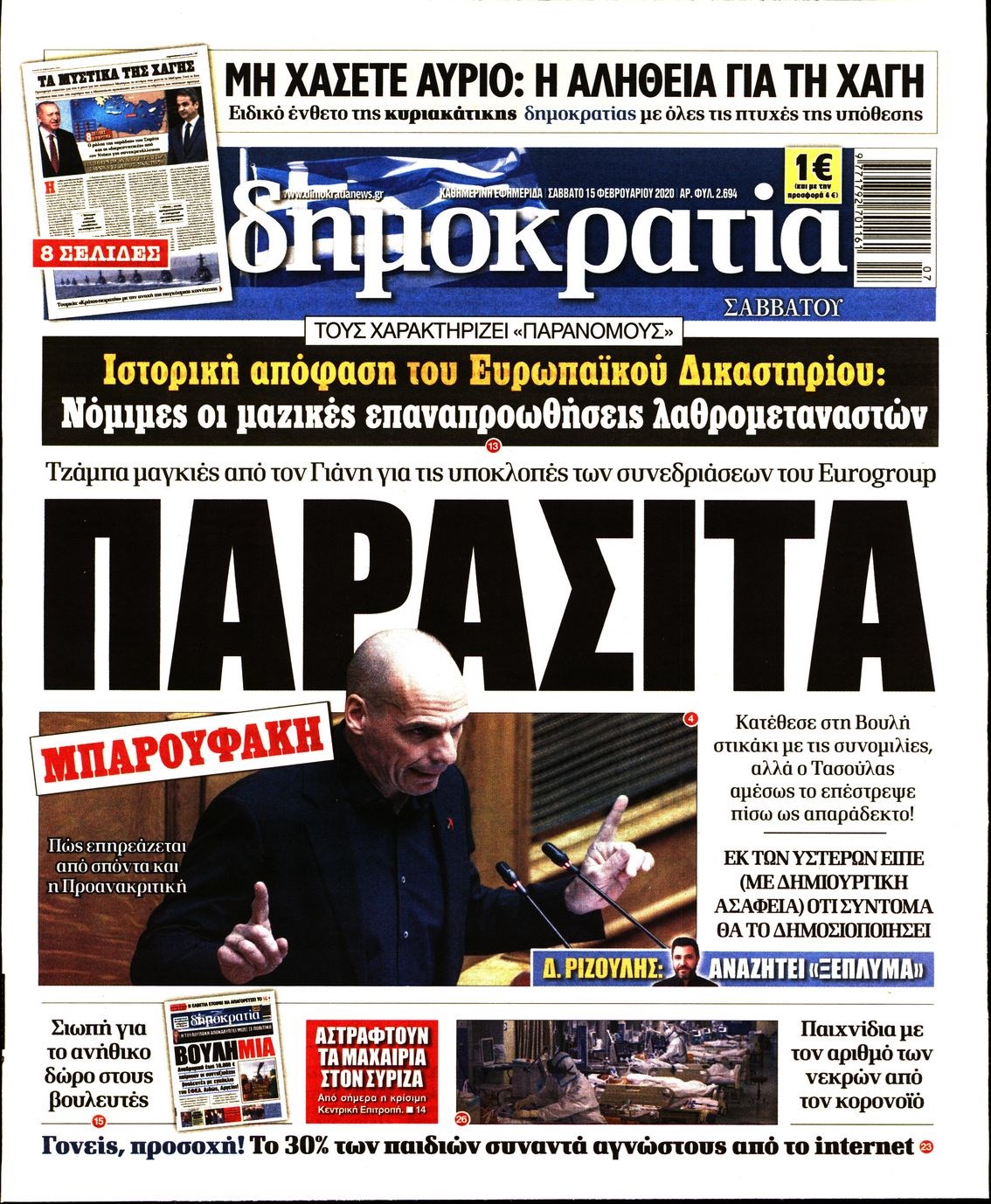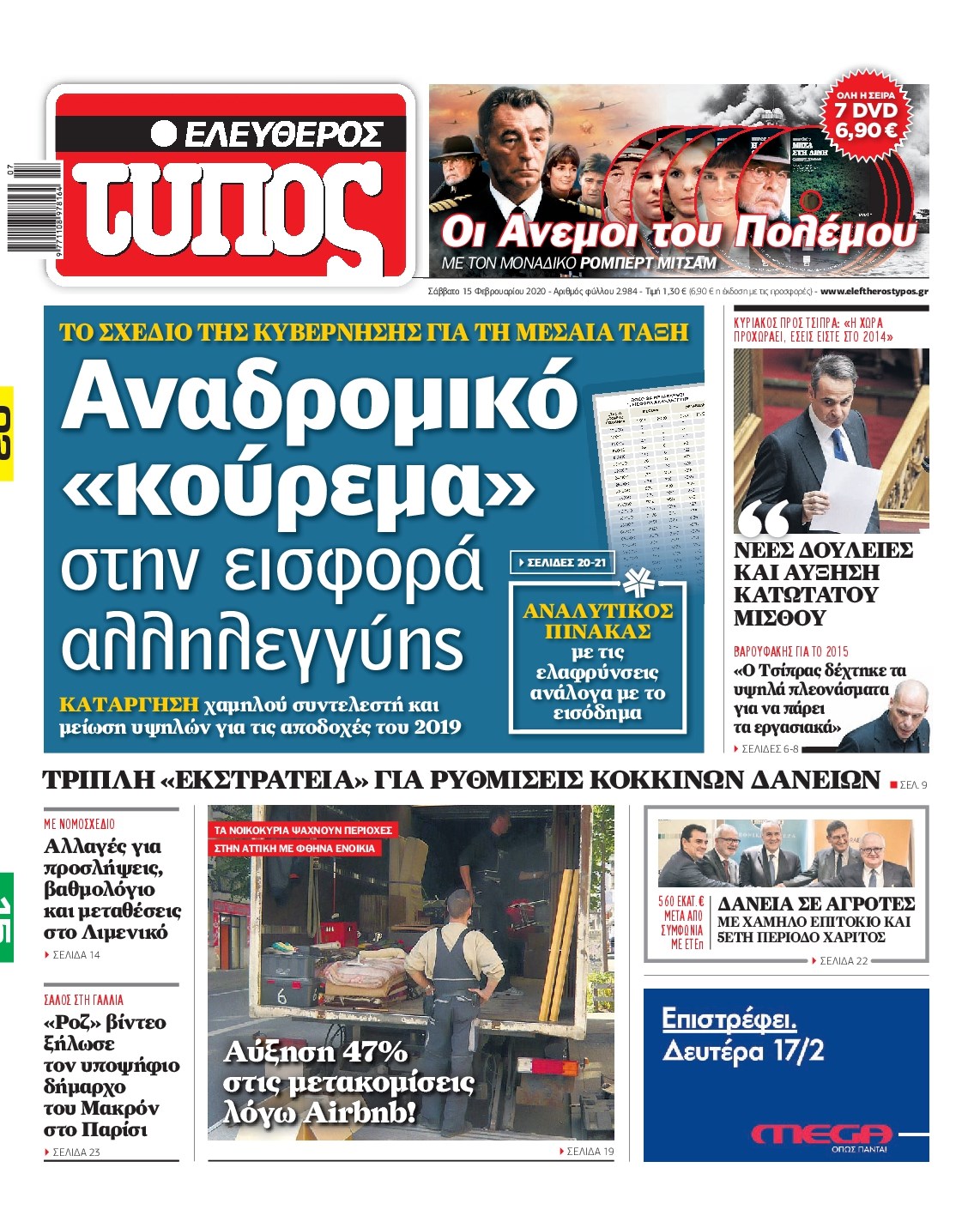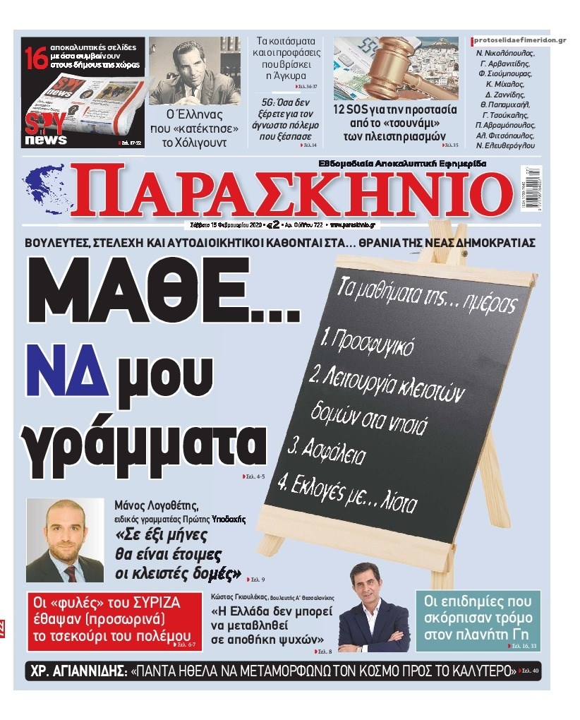 Οι πολιτικές εφημερίδες 15/2/2020 Διονύσης Νίκκας 07:32, Σάββατο 15 Φεβρουαρίου 2020 Media Διαβάστε τα πρωτοσέλιδα των πολιτικών εφημερίδων… ΕΦΗΜΕΡΙΔΕΣ ΠΟΛΙΤΙΚΕΣ ΠΡΩΤΟΣΕΛΙΔΑ Μοιράσου το: σχολίασε κι εσύ (0 σχόλια) Ακολουθήστε το enikos.gr στο Google News και μάθετε πρώτοι όλες τις ειδήσεις Δείτε όλες τις τελευταίες ειδήσεις από την Ελλάδα και τον Κόσμο στο enikos.gr Ειδήσεις Ροή Ειδήσεων 22 λεπτά πριν Τρίκαλα: Τα νέα δεδομένα για την «φονική» διαρροή μετά το πόρισμα της Πυροσβεστικής – Την Πέμπτη και την Παρασκευή οι κηδείες των 5 αδικοχαμένων γυναικών 2 λεπτά πριν Τα σενάρια για τα αίτια της τραγωδίας στη Ρουμανία – Γιατί οι αρχές εστιάζουν στα τελευταία δευτερόλεπτα πριν από τη μοιραία σύγκρουση 13 λεπτά πριν Γερμανία: Η μυστική περιουσία του Αμπράμοβιτς που «πυροδότησε» την έρευνα στην Deutsche Bank – Πού πήγαν τα δισεκατομμύρια από την πώληση της Τσέλσι; 2 ώρες πριν Δημοσκόπηση GPO: Προβάδισμα 13,7 μονάδων της ΝΔ έναντι του ΠΑΣΟΚ – Μεγάλη άνοδος για τους αναποφάσιστους 33 λεπτά πριν Τραγωδία στην Ρουμανία: Με λευκά τριαντάφυλλα στην Τούμπα ο Πατριάρχης Βαρθολομαίος – «Ο πόνος είναι δυσβάσταχτος» 1 ώρα πριν Ύπνος: Το βραδινό σνακ που μπορεί να σας κρατήσει ξύπνιους – Υγιεινές εναλλακτικές για ποιοτική ξεκούραση 2 ώρες πριν Η πιο τυχερή μέρα για κάθε ζώδιο τον Φεβρουάριο – «Είναι ο μήνας που θα κάνει τα πάντα στη ζωή σας να φαίνονται διαφορετικά» 3 ώρες πριν Στεγνωτήριο: Το απλό κόλπο που περιορίζει την φθορά των ρούχων με την πάροδο του χρόνου 4 λεπτά πριν Ανακαλύφθηκε σπάνιος σφραγισμένος μεσαιωνικός σταυρός-λειψανοθήκη σε βιβλική πόλη που ο Απόστολος Παύλος επισκέφθηκε 3 φορές 2 λεπτά πριν Τα σενάρια για τα αίτια της τραγωδίας στη Ρουμανία – Γιατί οι αρχές εστιάζουν στα τελευταία δευτερόλεπτα πριν από τη μοιραία σύγκρουση 4 λεπτά πριν Ανακαλύφθηκε σπάνιος σφραγισμένος μεσαιωνικός σταυρός-λειψανοθήκη σε βιβλική πόλη που ο Απόστολος Παύλος επισκέφθηκε 3 φορές 11 λεπτά πριν Αλίκη Βουγιουκλάκη: Οι αδημοσίευτες φωτογραφίες από τα γυρίσματα της ταινίας η «Αλίκη στο Ναυτικό» 13 λεπτά πριν Γερμανία: Η μυστική περιουσία του Αμπράμοβιτς που «πυροδότησε» την έρευνα στην Deutsche Bank – Πού πήγαν τα δισεκατομμύρια από την πώληση της Τσέλσι; 16 λεπτά πριν «Porto Leone: Στη γειτονιά με τα κόκκινα φανάρια»: Το παιχνίδι της εκδίκησης μόλις ξεκινά – Τι θα δούμε στα νέα επεισόδια ENIKOS NETWORK Δύο από τους τρεις τραυματίες οπαδούς του ΠΑΟΚ επιστρέφουν αύριο από τη Ρουμανία-Τι αναφέρει ο Άδωνις Γεωργιάδης Ξυπνάτε στις 3 τα ξημερώματα και δεν μπορείτε να ξανακοιμηθείτε; Οι ειδικοί αποκαλύπτουν ποια πάθηση μπορεί να έχετε Μελέτη του ΟΟΣΑ για την Εκπαίδευση στην Ελλάδα – Πού «βλέπει» πρόοδο και πού ανάγκη για περαιτέρω βελτίωση Γιάννης Μπρατάκος: «Η ισχυρή και βιώσιμη ανάπτυξη προϋποθέτει ισχυρές, υγιείς και χρηματοδοτούμενες επιχειρήσεις» Η Google αλλάζει το Gmail έπειτα από 20 χρόνια – Προσέξτε μην χάσετε τον λογαριασμό σας Γνωστός προπονητής ποδοσφαίρου απολύθηκε επειδή χρησιμοποιούσε το ChatGPT για «κρίσιμες αποφάσεις» περισσότερα 22:50 , Τετάρτη 28 Ιανουαρίου 2026 «Porto Leone: Στη γειτονιά με τα κόκκινα φανάρια»: Το παιχνίδι της εκδίκησης μόλις ξεκινά – Τι θα δούμε στα νέα επεισόδια Το «Porto Leone: Στη γειτονιά με τα κόκκινα φανάρια» επιστρέφει την Τρίτη 03 Φεβρουαρίου στις ... 20:56 , Τετάρτη 28 Ιανουαρίου 2026 HOTΕΛ ΕΛVIRA: O Χάρι κάνει ό,τι μπορεί για να πλησιάσει ξανά την Ελβίρα To HOTΕΛ ΕΛVIRA ανοίγει και πάλι τις πόρτες το