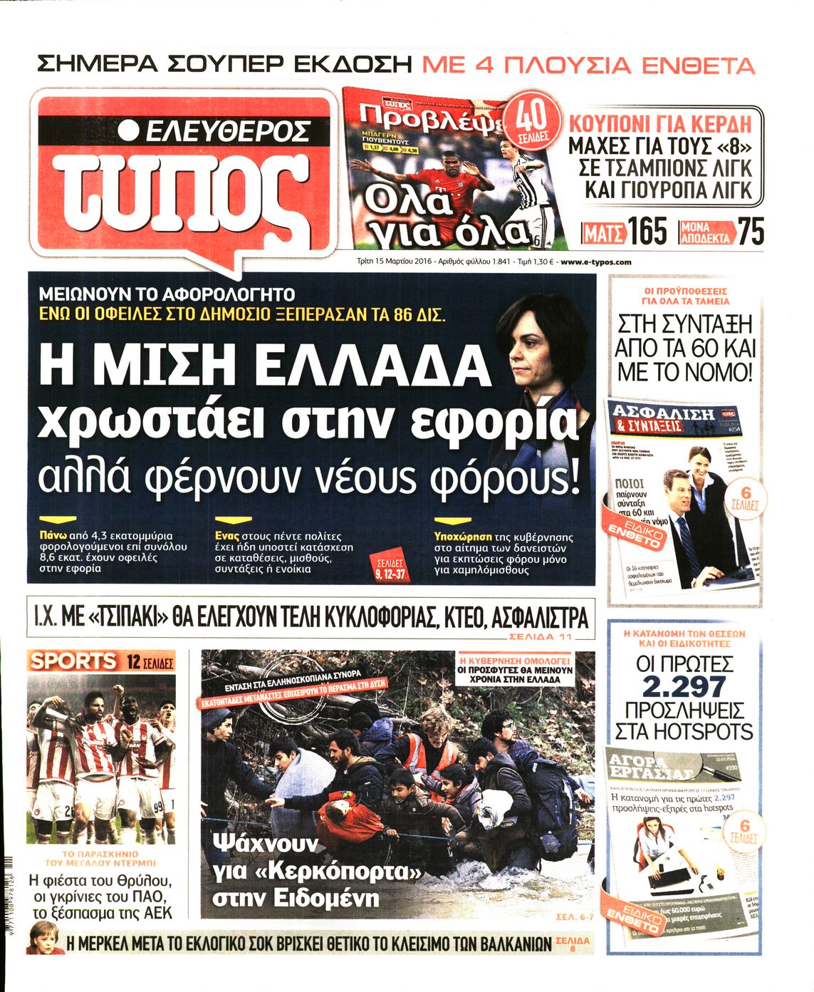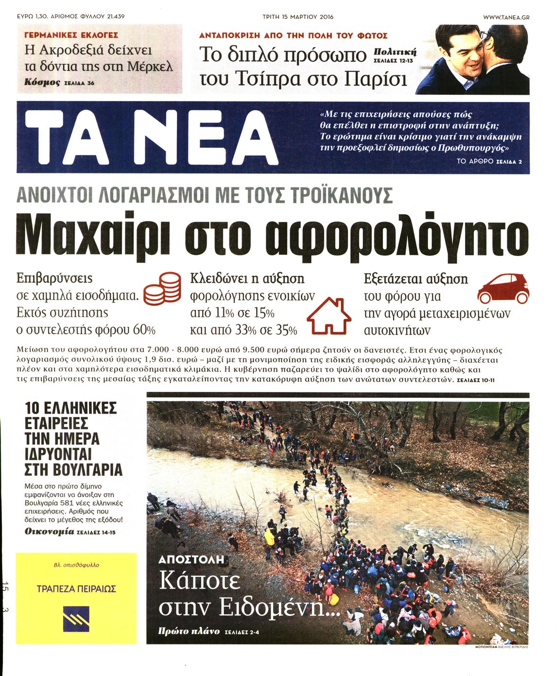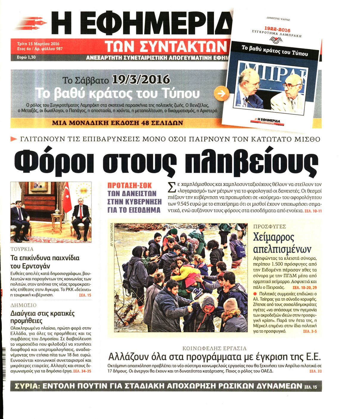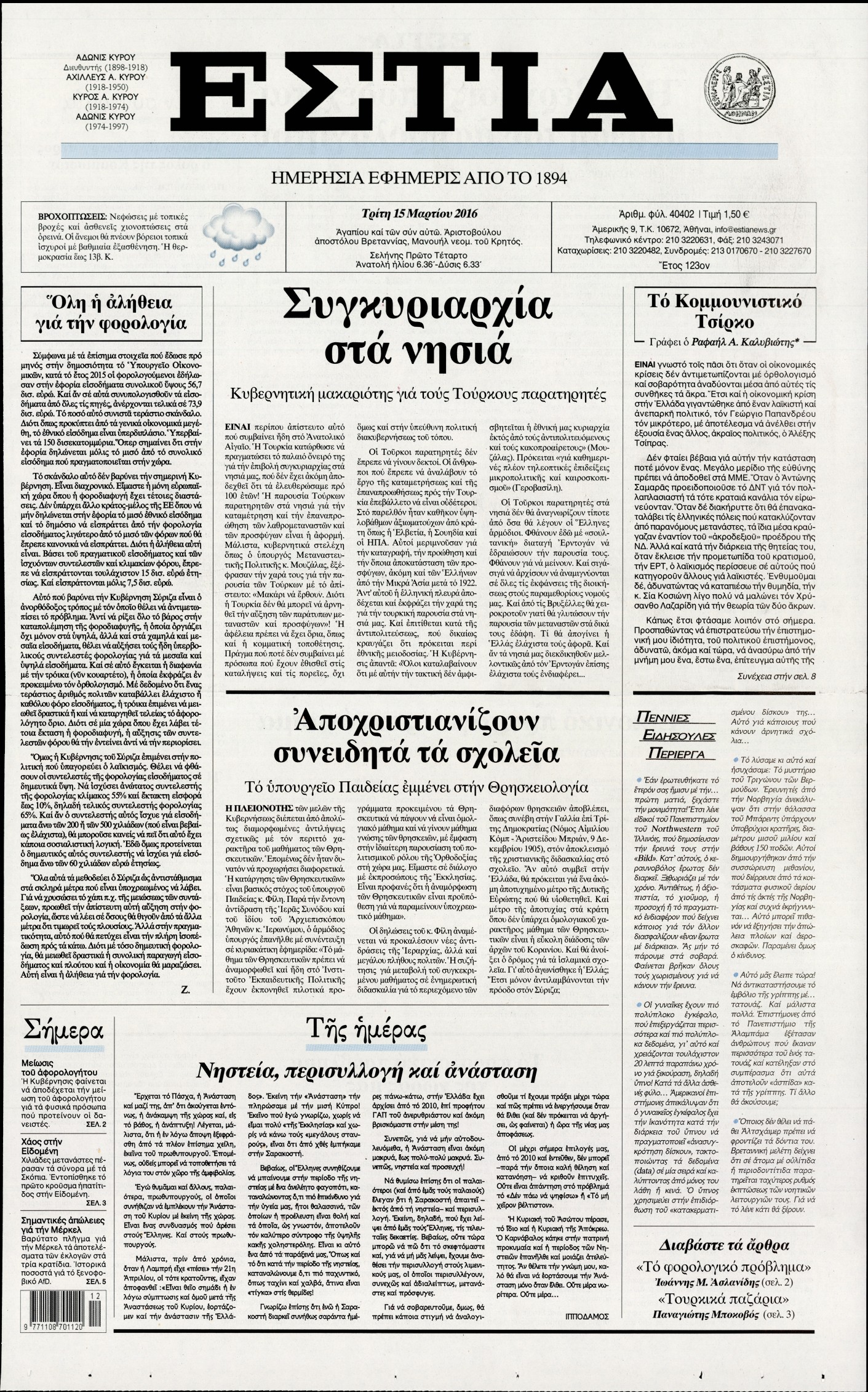 Oι πολιτικές εφημερίδες 15/3/2016 Enikos Newsroom 06:53, Τρίτη 15 Μαρτίου 2016 Media Διαβάστε τα σημερινά πρωτοσέλιδα των πολιτικών εφημερίδων… Μοιράσου το: σχολίασε κι εσύ (0 σχόλια) Ακολουθήστε το enikos.gr στο Google News και μάθετε πρώτοι όλες τις ειδήσεις Δείτε όλες τις τελευταίες ειδήσεις από την Ελλάδα και τον Κόσμο στο enikos.gr Ειδήσεις Ροή Ειδήσεων 3 ώρες πριν Χριστούγεννα στα μπλόκα: Επιμένουν στις κινητοποιήσεις τους οι αγρότες – Ανοίγουν τα διόδια το Σαββατοκύριακο 3 ώρες πριν Ουκρανία: Η άνευ προηγουμένου επίθεση σε ρωσικό τάνκερ στη Μεσόγειο και το μήνυμα προς στον Πούτιν – Το «μακρύ χέρι» του Κιέβου 2 ώρες πριν Πούτιν: Τα μηνύματα σε Ευρώπη και ΝΑΤΟ από το μαραθώνιο «σόου» του – Η απαίτηση για «σεβασμό» και η ειρήνη «με τους όρους» της Μόσχας 3 ώρες πριν Τραμπ: Δεν αποκλείει την πιθανότητα ενός πολέμου στη Βενεζουέλα – «Ο Μαδούρο ξέρει καλύτερα από τον καθένα τι ακριβώς θέλω» 4 ώρες πριν Συνεχίζει να προκαλεί ο Μίτσκοσκι: «Για μένα το όνομα Μακεδονία είναι ιερό» 2 ώρες πριν Ανακαλύφθηκαν αρχαία χρυσά νομίσματα 2.200 ετών που απεικονίζουν τον θεό Απόλλωνα – Η άγνωστη σύνδεση με τον Φίλιππο Β΄ της Μακεδονίας 3 ώρες πριν Ύπνος: Μια κρυφή κατάσταση του εγκεφάλου πριν από τον ύπνο μπορεί να είναι το “κλειδί” για υψηλή ευφυΐα και δημιουργικότητα 4 ώρες πριν Αριθμολογία: Οι άνθρωποι που έχουν γεννηθεί αυτές τις 4 ημερομηνίες, συχνά παρεξηγούνται – «Η καλοσύνη τους κρύβει τεράστια δύναμη» 5 ώρες πριν Ξεχάστε το καθάρισμα το Σαββατοκύριακο: Ο «κανόνας των 20 λεπτών» που θα σας λύσει τα χέρια 6 λεπτά πριν Συρία: Μαζικά πλήγματα των ΗΠΑ σε θέσεις του Ισλαμικού Κράτους – Χέγκσεθ: «Δεν είναι αρχή πολέμου, είναι μια δήλωση εκδίκησης» για το θάνατο των στρατιωτών μας 18 λεπτά πριν Ουκρανία: Ολοκληρώθηκαν οι συνομιλίες με τους Αμερικανούς κι Ευρωπαίους διαπραγματευτές 33 λεπτά πριν Μπαρτσελόνα – Μπασκόνια 134-124: Οι «μπλαουγκράνα» πήραν το ματς της χρονιάς ύστερα από τρεις παρατάσεις 48 λεπτά πριν Φαίη Σκορδά: «Παλιότερα τα κομπλιμέντα τα προσπερνούσα, τώρα τα έχω ανάγκη» 1 ώρα πριν Βασίλης Σπανούλης: Δεν εμφανίστηκε ούτε ένας δημοσιογράφος στην συνέντευξη Τύπου – «Καλησπέρα στον… κανέναν», δείτε βίντεο ENIKOS NETWORK Το ΕΚΑΒ τιμήθηκε από την Ακαδημία Αθηνών για τα 40 χρόνια προσφοράς του Έχετε πραγματικά μεγάλη καρδιά; 10 χαρακτηριστικά όσων έχουν καλοσύνη Αναστολή μέτρων αναγκαστικής εκτέλεσης για κτηνοτρόφους που πλήττονται από την ευλογιά των αιγοπροβάτων Πλήρης επάρκεια προϊόντων στις λαϊκές της Αττικής, παρά τις αγροτικές κινητοποιήσεις – Τι απαντούν οι πωλητές Χαρτογραφώντας το «σημείο χωρίς επιστροφή»: Για πρώτη φορά αποκαλύπτεται με λεπτομέρεια το ακανθώδες όριο της ατμόσφαιρας τ... Η Google καταργεί τη λειτουργία «dark web report» – Πώς θα μπορούν οι χρήστες να διαγράφουν τα δεδομένα τους περισσότερα 22:42 , Παρασκευή 19 Δεκεμβρίου 2025 Γιώργος Γιαννόπουλος για “Το σόι σου”: “Είναι ευτυχία και ευλογία αυτή η σειρά” «Είναι ευτυχία και ευλογία η συγκυρία αυτής της σειράς», θα πει ο Γιώργος Γιαννόπουλος -ο αγαπ... 20:37 , Παρασκευή 19 Δεκεμβρίου 2025 Don’t Forget The Lyrics: Η Έλλη Κοκκίνου υποδέχεται 4 παίκτες που θα κάνουν τα πάντα για να μη χάσουν ούτε… μισή λέξη από τους στίχους Το «Don’t Forget The Lyrics» επιστρέφει απόψε, Παρασκευή 19 Δεκεμβρίου, στις 21:00 με νέο επει... 19:31 , Παρασκευή 19 Δεκεμβρίου 2025 GNTM: Απόψε ο μεγάλος τελικός για τους 4 φιναλίστ Έπειτα από μήνες γεμάτους μόδα, δημιουργία και έντονες ανα