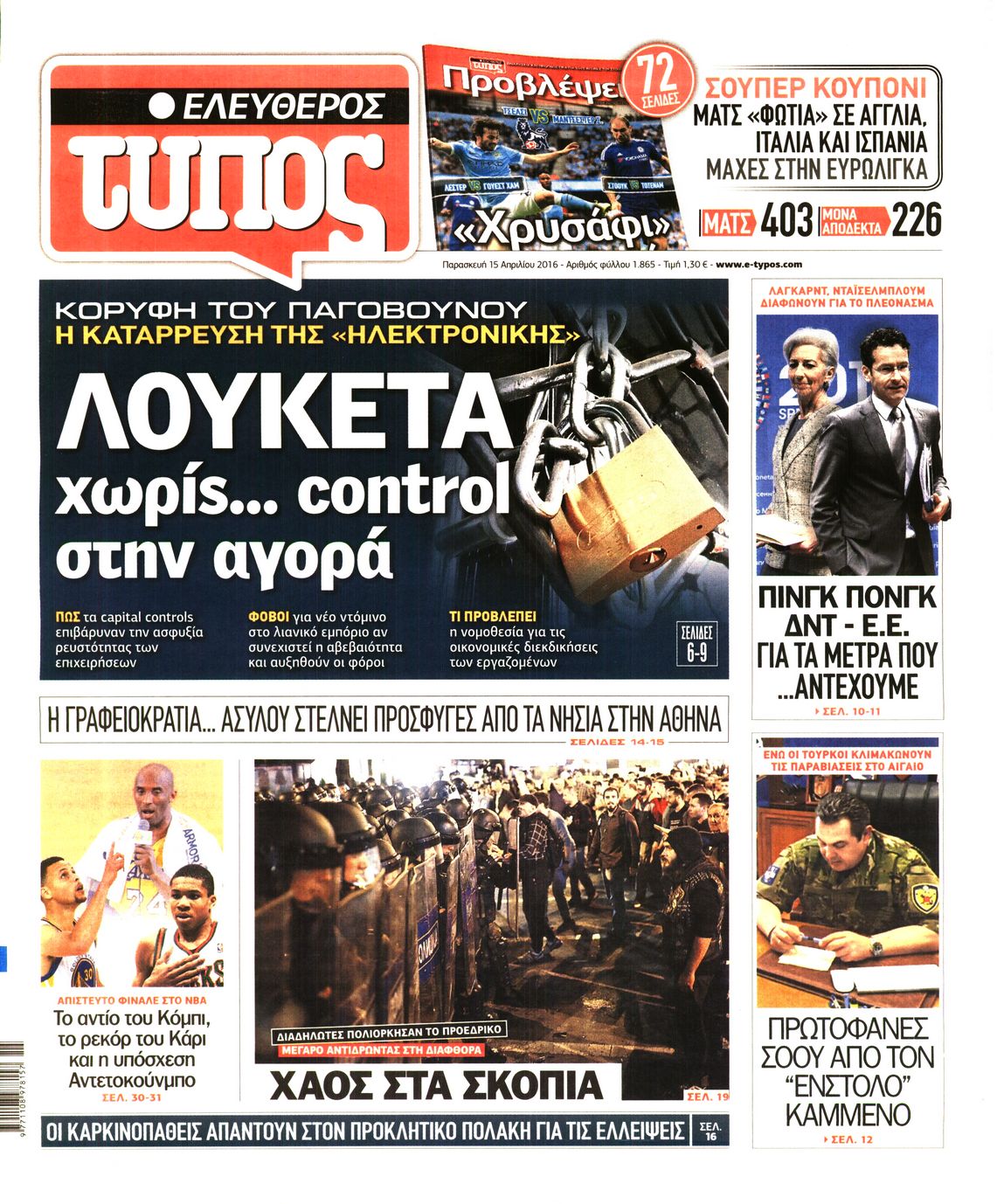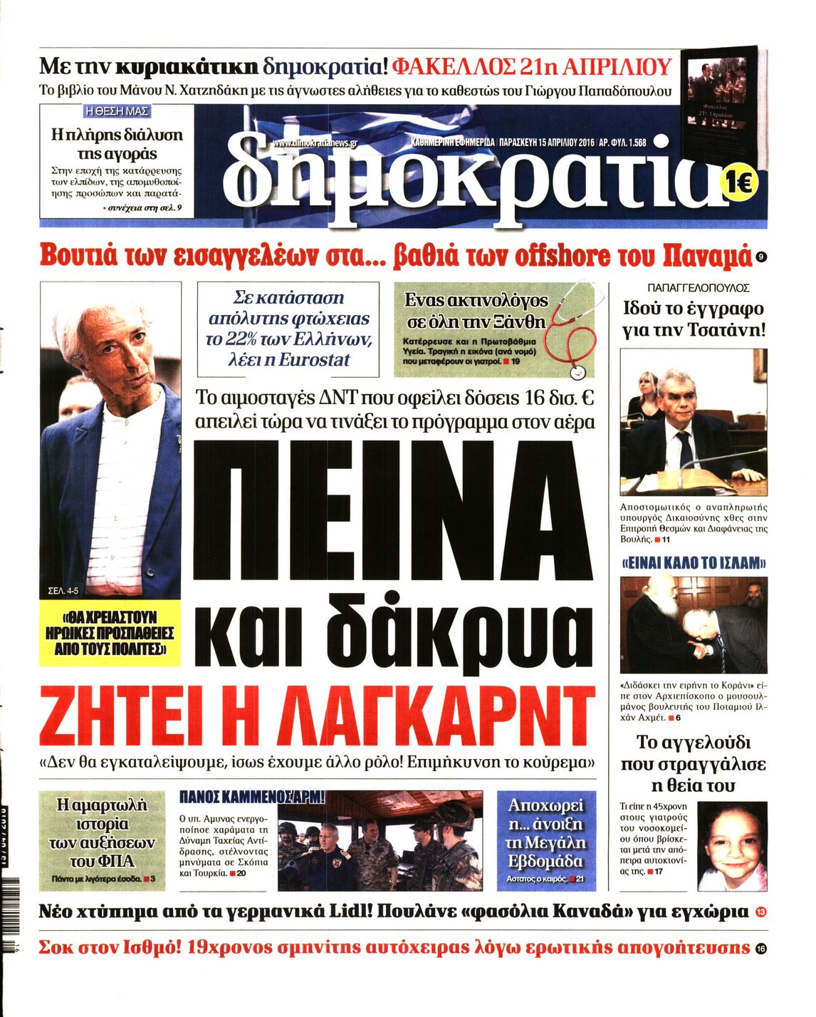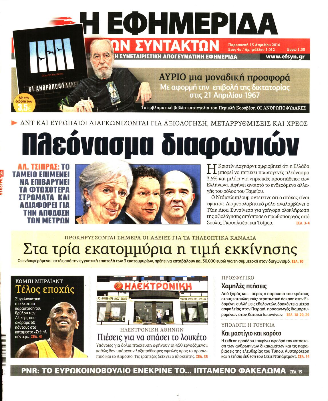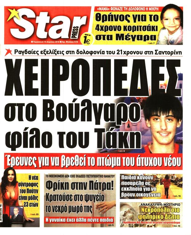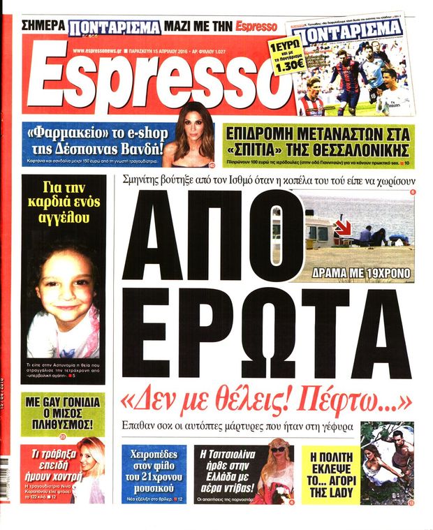 Οι πολιτικές εφημερίδες 15/4/2016 Enikos Newsroom 05:30, Παρασκευή 15 Απριλίου 2016 Media Διαβάστε τα σημερινά πρωτοσέλιδα των πολιτικών εφημερίδων: ΠΟΛΙΤΙΚΕΣ ΕΦΗΜΕΡΙΔΕΣ ΠΡΩΤΟΣΕΛΙΔΑ Μοιράσου το: σχολίασε κι εσύ (0 σχόλια) Ακολουθήστε το enikos.gr στο Google News και μάθετε πρώτοι όλες τις ειδήσεις Δείτε όλες τις τελευταίες ειδήσεις από την Ελλάδα και τον Κόσμο στο enikos.gr Ειδήσεις Ροή Ειδήσεων 1 ώρα πριν Μεσόγειος: Η διαδρομή του ρωσικού τάνκερ «Qendil» και η στοχευμένη επίθεση της Ουκρανίας με drone – Ο Πούτιν προειδοποίησε για αντίποινα 54 λεπτά πριν Αττική: Θρίλερ με νεκρό βρέφος 5 μηνών – Κοιμόταν στο ίδιο κρεβάτι με τους γονείς του 2 ώρες πριν Από το Ορμένιο ως τα Μάλγαρα κι από τη Σιάτιστα μέχρι τη Νίκαια: Μπλόκα σε όλη την Ελλάδα – Το Σάββατο ανοίγουν τα διόδια οι αγρότες 2 ώρες πριν «Έλληνας Εσκομπάρ»: Φωτογραφίες με τους 4 τόνους κοκαΐνης που κατασχέθηκαν από το σκάφος «Ουρανία» 3 ώρες πριν Πούτιν: Σαρκαστικά μηνύματα, παράπονα και απρόοπτα στη συνέντευξη Τύπου – Η πρόταση γάμου on air και οι ερωτήσεις για τα αγγούρια και τους… εξωγήινους 3 ώρες πριν Τα 5 ζώδια που ευνοούνται στην ερωτική ζωή τους την επόμενη εβδομάδα – «Η ενέργεια του Αιγόκερου φέρνει αγάπη και σταθερότητα» 7 ώρες πριν Ειδικός μοιράζεται 6 κόλπα για να διατηρείστε σε φόρμα με πάνω από 40 ώρες εργασίας την εβδομάδα: «Προπονηθείτε πριν από τη δουλειά, όχι μετά» 4 ώρες πριν Αυτό το έξυπνο μαθηματικό κόλπο θα μπορούσε να αλλάξει τον τρόπο με τον οποίο οι επιστήμονες μελετούν τους σεισμούς 2 ώρες πριν Κουίζ για την παλιά Αθήνα: Αναγνωρίζετε την περιοχή; Έχετε περάσει 100% από εκεί 44 δευτερόλεπτα πριν Λάρισα: Ασθενοφόρο έπεσε πάνω σε κλούβα της ΕΛ.ΑΣ στον Πλατύκαμπο – Τραυματίστηκε ο συνοδηγός – ΒΙΝΤΕΟ 7 λεπτά πριν Τέμπη: Διεκόπη για τις 9 Ιανουαρίου η δίκη για τα χαμένα βίντεο της εμπορικής αμαξοστοιχίας – «Απαιτούμε να μας σέβονται» 12 λεπτά πριν Hellenic Train: Αλλαγές και καταργήσεις δρομολογίων λεωφορείων λόγω των αγροτικών κινητοποιήσεων 18 λεπτά πριν Ζελένσκι: «Δεν χρειάζεται αναθεώρηση του Συντάγματος» για να εγκαταλείψει η Ουκρανία τον στόχο ένταξης στο ΝΑΤΟ 23 λεπτά πριν Παναγιώτα Βλαντή: Η τρυφερή εξομολόγηση για τον σύζυγό της – «Πραγματικά ήταν για μένα αυτό που ήθελα σε όλη μου τη ζωή» ENIKOS NETWORK «Η σούπερ» γρίπη εξαπλώνεται στην Ευρώπη-Στοιχεία από το ECDC για την αποτελεσματικότητα του εμβολίου ΕΛΣΤΑΤ: Αύξηση κατά 1,7% των επαγγελματιών υγείας το 2024 Η απάντηση της κυβέρνησης στα αιτήματα των αγροτών: 16 έχουν ικανοποιηθεί, 4 βρίσκονται υπό επεξεργασία και 7 δεν είναι εφι... Μισθολογική διαφάνεια: Το 68% των εργαζομένων αγνοεί τη νέα οδηγία – Αναλυτικά τα στοιχεία έρευνας Χαρτογραφώντας το «σημείο χωρίς επιστροφή»: Για πρώτη φορά αποκαλύπτεται με λεπτομέρεια το ακανθώδες όριο της ατμόσφαιρας τ... Η Google καταργεί τη λειτουργία «dark web report» – Πώς θα μπορούν οι χρήστες να διαγράφουν τα δεδομένα τους περισσότερα 18:11 , Παρασκευή 19 Δεκεμβρίου 2025 Το σόι σου: Ο Άρης έρχεται στην Ελλάδα για τις γιορτές των Χριστουγέννων – Τι θα δούμε στο αποψινό εορταστικό επεισόδιο Ένα απολαυστικό, εορταστικό επεισόδιο της σειράς “Το σόι σου”, γεμάτο ευτράπελα αλ... 15:15 , Παρασκευή 19 Δεκεμβρίου 2025 Την Κυριακή με τη Realnews: Ό,τι και αν αγοράσεις, σκανάρεις και κερδίζεις! Την Κυριακή με τη Realnews: Ό,τι και αν αγοράσεις, σκανάρεις και κερδίζεις! Με το PADU app, το... 08:00 , Παρασκευή 19 Δεκεμβρίου 2025 Την Κυριακή με τη Realnews: Δωροεπιταγή 10€ Δωροεπιταγή αξίας 10