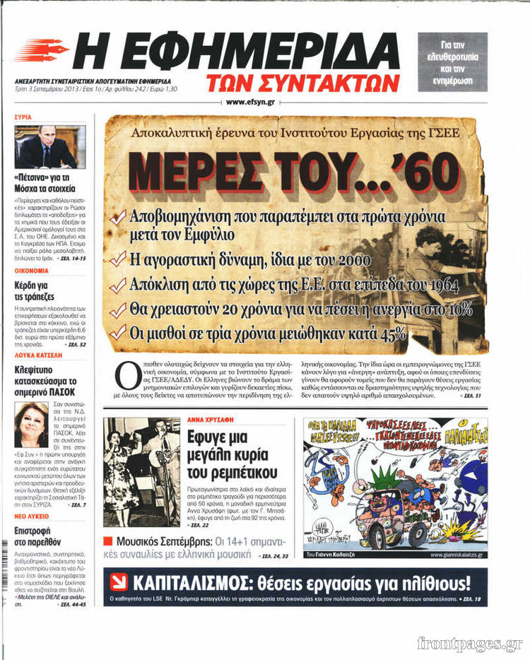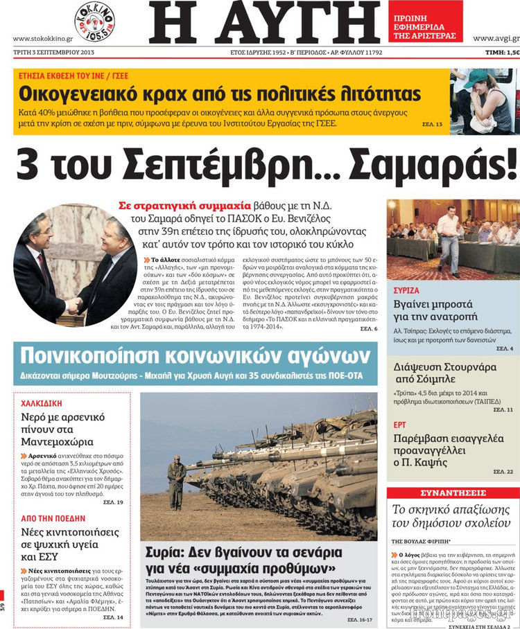 Οι πολιτικές εφημερίδες Enikos Newsroom 08:17, Τρίτη 03 Σεπτεμβρίου 2013 Media Οι πολιτικές εφημερίδες Διαβάστε τα πρωτοσέλιδα των πολιτικών εφημερίδων: ΕΦΗΜΕΡΙΔΕΣ ΠΟΛΙΤΙΚΕΣ ΕΦΗΜΕΡΙΔΕΣ ΠΡΩΤΟΣΕΛΙΔΑ Μοιράσου το: σχολίασε κι εσύ (0 σχόλια) Ακολουθήστε το enikos.gr στο Google News και μάθετε πρώτοι όλες τις ειδήσεις Δείτε όλες τις τελευταίες ειδήσεις από την Ελλάδα και τον Κόσμο στο enikos.gr Ειδήσεις Ροή Ειδήσεων 2 ώρες πριν Πώς δρούσε το κύκλωμα που διακινούσε ναρκωτικά σε σχολεία – Υπέβαλαν σε βασανιστήρια όσους δεν τηρούσαν τους «κανόνες πειθαρχίας» 2 ώρες πριν Αγρότες: Γιορτές στα μπλόκα με ανοιχτά διόδια – Δικογραφία στα Ιωάννινα για το σήκωμα των μπαρών 2 ώρες πριν Ζελένσκι: Οι Αμερικανοί πρότειναν συνάντηση Ουκρανίας, ΗΠΑ, Ρωσίας στο Μαϊάμι 1 ώρα πριν Αττική: Εξαρθρώθηκε εγκληματική οργάνωση που έκλεβε οχήματα, τα παραποιούσε και τα μεταπωλούσε σε πολίτες – Πώς δρούσε το κύκλωμα 55 λεπτά πριν Μικαέλα Μπέντχαους: Ο πρώτος άνθρωπος σε αναπηρικό αμαξίδιο που ταξίδεψε στο διάστημα – ΒΙΝΤΕΟ 2 ώρες πριν Η τύχη χαμογελά σε 3 ζώδια έως τις 28 Δεκεμβρίου – «Προσέξτε τις επιλογές σας και η επιμονή σας θα ανταμειφθεί» 7 ώρες πριν Διαιτολόγος αποκαλύπτει 9 πρωινές συνήθειες που «λιώνουν» το κοιλιακό λίπος – «Υποστηρίζουν την υγιεινή απώλεια βάρους» 4 ώρες πριν Μία ανεκμετάλλευτη πηγή θα μπορούσε να προσφέρει ανεξάντλητη ενέργεια – Οι επιστήμονες ίσως γνωρίζουν πώς να την ξεκλειδώσουν 10 ώρες πριν Enerwave: Το νέο «ρεύμα» στη λιανική ενέργειας που αλλάζει την εμπειρία του καταναλωτή 7 λεπτά πριν Τραμπ: Πώς περνάει τις γιορτές των Χριστουγέννων – Τα δώρα που κάνει στα εγγόνια του 19 λεπτά πριν HOTΕΛ ΕΛVIRA: Η Ελβίρα μαθαίνει πως ο Χάρι μένει κρυφά στο ξενοδοχείο του Παντελή 29 λεπτά πριν Ερντογάν: «Δεν έχουμε βλέψεις στα εδάφη κανενός, αλλά δεν θα επιτρέψουμε να παραβιαστούν τα δικαιώματά μας» 38 λεπτά πριν Η Realnews στο www.pressreader.com 45 λεπτά πριν Νιούκαστλ – Τσέλσι 2-2: Αλύγιστοι οι Λονδρέζοι ENIKOS NETWORK Γιατί πρέπει να ζητάμε χάρες; Ποιο είναι το φαινόμενο Ben Franklin που κάνει τους άλλους να μας συμπαθούν Η αποχή από την αναπαραγωγή παρατείνει τη ζωή στα ζώα, σύμφωνα με μελέτη – Τι ισχύει για τους ανθρώπους; Η Realnews στο www.pressreader.com Τράπεζες: Πόσες ημέρες θα είναι κλειστές μέσα στις γιορτές Χαρτογραφώντας το «σημείο χωρίς επιστροφή»: Για πρώτη φορά αποκαλύπτεται με λεπτομέρεια το ακανθώδες όριο της ατμόσφαιρας τ... Η Google καταργεί τη λειτουργία «dark web report» – Πώς θα μπορούν οι χρήστες να διαγράφουν τα δεδομένα τους περισσότερα 18:19 , Σάββατο 20 Δεκεμβρίου 2025 HOTΕΛ ΕΛVIRA: Η Ελβίρα μαθαίνει πως ο Χάρι μένει κρυφά στο ξενοδοχείο του Παντελή Συνεχίζονται οι εκλογές για πρόεδρο, στο νέο επεισόδιο της κωμικής σειράς του MEGA, HOTΕΛ ΕΛVI... 14:04 , Σάββατο 20 Δεκεμβρίου 2025 Η Realnews αυτής της Κυριακής (21/12/2025) Με τίτλο: «Ασπίδα προστασίας για την Ελλάδα» κυκλοφορεί, αυτήν την Κυριακή, η Realnews. Σημαντ... 12:53 , Σάββατο 20 Δεκεμβρίου 2025 Να μ’ αγαπάς: Το παρελθόν έρχεται στο φως – Καταιγιστικές εξελίξεις στα τελευταία επεισόδια του 2025 Ο Άγγελος αποκαλύπτεται, η Φωτεινή ανησυχεί για τον Λευτέρη και η Ζωή έρχεται αντιμέτωπη με το... 11:41 , Σάββατο 20 Δεκεμβρίου 2025 «Η αγάπη δεν χάνεται ποτέ»: Η μικρού μήκους ταινία κινουμένων σχεδίων που θέτει ερωτήματα για τη ζωή και τον θάνατο Ο θάνατος είναι ένα από τα πιο σκληρά θέματα που καλείται να διαχειριστεί κάποιος στη διάρκεια... ΤΕΛΕΥΤΑΙΕΣ ΕΙΔΗΣΕΙΣ 7 λεπτά πριν Τραμπ: Πώς περνάει τις γιορτές των Χρ