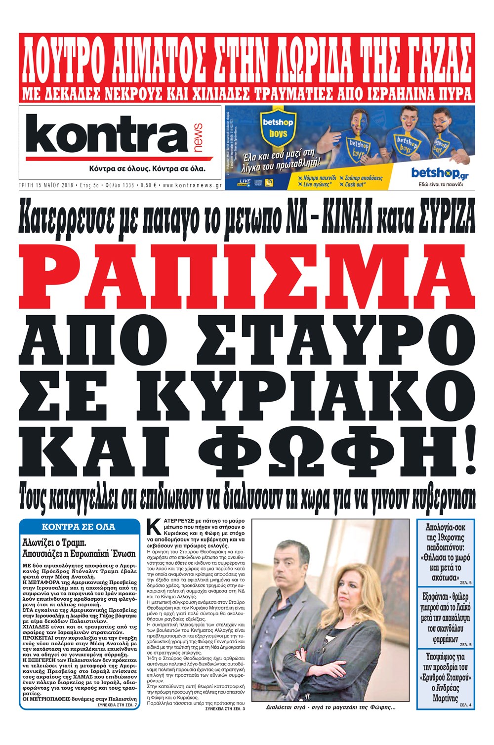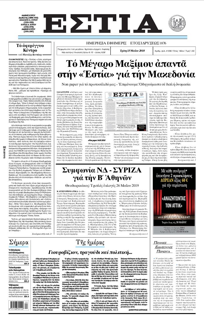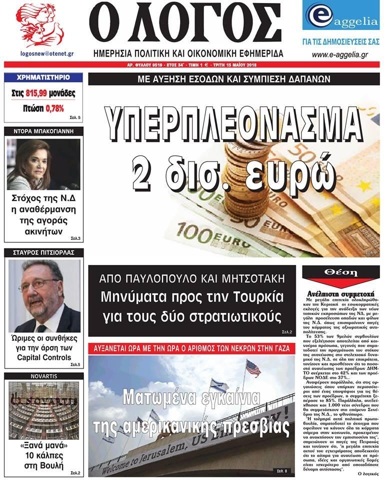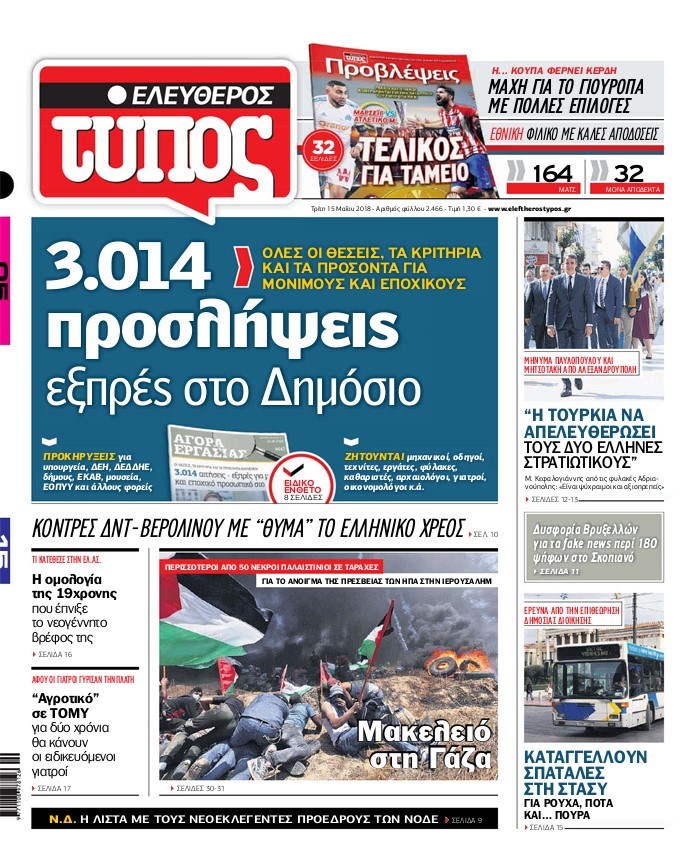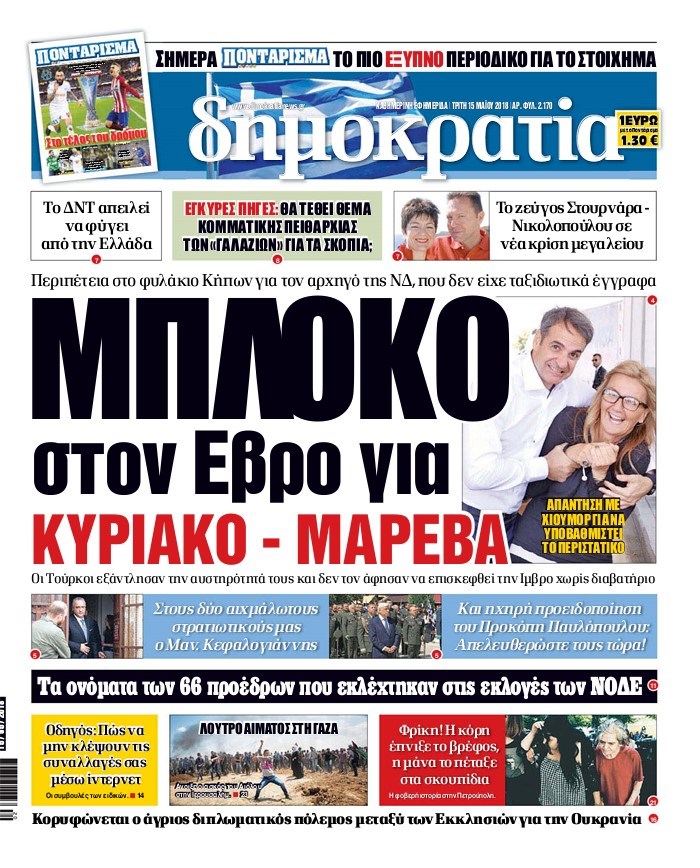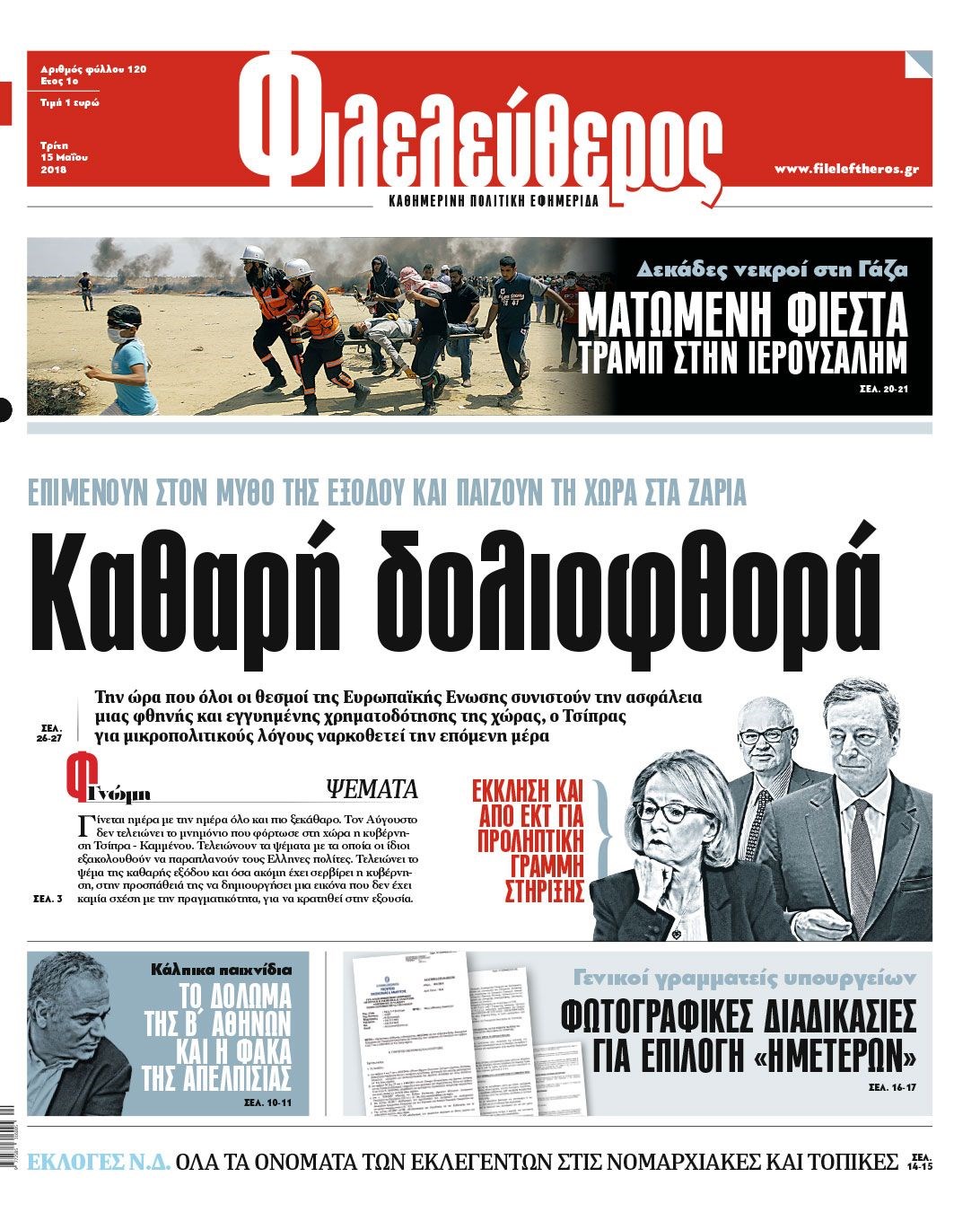 Οι πολιτικές εφημερίδες 15/5/2018 Κώστας Τεό 06:14, Τρίτη 15 Μαΐου 2018 Media Διαβάστε τα σημερινά πρωτοσέλιδα των πολιτικών εφημερίδων: ΠΟΛΙΤΙΚΕΣ ΕΦΗΜΕΡΙΔΕΣ ΠΡΩΤΟΣΕΛΙΔΑ Μοιράσου το: σχολίασε κι εσύ (0 σχόλια) Ακολουθήστε το enikos.gr στο Google News και μάθετε πρώτοι όλες τις ειδήσεις Δείτε όλες τις τελευταίες ειδήσεις από την Ελλάδα και τον Κόσμο στο enikos.gr Ειδήσεις Ροή Ειδήσεων 1 ώρα πριν Χριστούγεννα στα μπλόκα οι αγρότες: Άνοιξαν στα διόδια και μοίρασαν προϊόντα στους πολίτες – Νέα σύσκεψη την Κυριακή στη Νίκαια 1 ώρα πριν Κύκλωμα διακίνησης ναρκωτικών σε σχολεία: Τηλεφωνούσαν στους ανηλίκους την ώρα του μαθήματος – Οι διάλογοι-σοκ, τα «ψευδώνυμα» και τα βασανιστήρια 51 λεπτά πριν Αρχεία Επστάιν: Οι 500 σελίδες που λείπουν, τα αναπάντητα ερωτήματα και οι επώνυμοι – Τι έπεται 3 ώρες πριν Ζελένσκι: Μόνο οι ΗΠΑ και ο Τραμπ μπορούν να πιέσουν τη Ρωσία να βάλει τέλος στον πόλεμο 3 ώρες πριν Φοινικούντα: Προφυλακιστέος ο 30χρονος για συνέργεια στη διπλή δολοφονία – Και άλλα πρόσωπα στο «μικροσκόπιο» 3 ώρες πριν Αριθμολογία: Ο αριθμός του φύλακα αγγέλου σας, με βάση τον μήνα γέννησής σας – «Έτσι σας στέλνει σημάδια το σύμπαν» 4 ώρες πριν Πώς να απαλλαγείτε από τη μυρωδιά του τηγανητού φαγητού: Το μυστικό βρίσκεται στην κουζίνα σας 15 ώρες πριν Enerwave: Το νέο «ρεύμα» στη λιανική ενέργειας που αλλάζει την εμπειρία του καταναλωτή 2 ώρες πριν Ύπνος: Η διατροφή που μπορεί να σας βοηθήσει να κοιμάστε καλύτερα και να ζήσετε περισσότερο 17 λεπτά πριν Ανηλίκιο Μετσόβου: Δύο σπίτια παραδόθηκαν στις φλόγες – Επί ποδός η Πυροσβεστική 32 λεπτά πριν Super League: Η βαθμολογία, μετά την ισοπαλία του Ολυμπιακού 47 λεπτά πριν Αποκαλύφθηκε το άγνωστο «GPS» της αρχαιότητας – Πώς οι ναοί «φώτιζαν» τον δρόμο των ναυτικών πριν από την εφεύρεση των φάρων 51 λεπτά πριν Αρχεία Επστάιν: Οι 500 σελίδες που λείπουν, τα αναπάντητα ερωτήματα και οι επώνυμοι – Τι έπεται 1 ώρα πριν Χριστούγεννα στα μπλόκα οι αγρότες: Άνοιξαν στα διόδια και μοίρασαν προϊόντα στους πολίτες – Νέα σύσκεψη την Κυριακή στη Νίκαια ENIKOS NETWORK Οι γυναίκες αποκαλύπτουν το πιο ελκυστικό πράγμα που μπορεί να κάνει ένας άνδρας Ομορφιά και αντιγήρανση: Ειδικοί μιλούν για συσκευές περιποίησης του δέρματος «Πολεμική» προετοιμασία από την ευρωπαϊκή βιομηχανία ενέργειας – Η Eurelectric ζητεί «ομπρέλα» προστασίας για τις υποδομές Ακύρωση ΑΦΜ για απάτες – Ποιους βάζει στο στόχαστρο η ΑΑΔΕ Χαρτογραφώντας το «σημείο χωρίς επιστροφή»: Για πρώτη φορά αποκαλύπτεται με λεπτομέρεια το ακανθώδες όριο της ατμόσφαιρας τ... Η Google καταργεί τη λειτουργία «dark web report» – Πώς θα μπορούν οι χρήστες να διαγράφουν τα δεδομένα τους περισσότερα 20:30 , Σάββατο 20 Δεκεμβρίου 2025 Αυτή την Κυριακή με τη Realnews: Instyle, μαζί Drive και Realnews Geopolitics Αυτή την Κυριακή με τη Realnews: Instyle, μαζί Drive και Realnews Geopolitics Instyle Η Άννα Ρ... 20:28 , Σάββατο 20 Δεκεμβρίου 2025 Ο ΑΝΤ1 γεμίζει τις γιορτές με μουσική – Ποιους καλλιτέχνες θα απολαύσουμε Φέτος στον ΑΝΤ1 γιορτάζουμε τις νύχτες μας παρέα με αγαπημένους καλλιτέχνες και μεγάλες μουσι... 18:19 , Σάββατο 20 Δεκεμβρίου 2025 HOTΕΛ ΕΛVIRA: Η Ελβίρα μαθαίνει πως ο Χάρι μένει κρυφά στο ξενοδοχείο του Παντελή Συνεχίζονται οι εκλογές για πρόεδρο, στο νέο επεισόδιο της κωμικής σειράς του MEGA, HOTΕΛ ΕΛVI... 14:04 , Σάββατο 20 Δεκεμβρίου 2025 Η Realnews αυτής της Κυριακής (21/12/2025) Με τίτλο: «Ασπίδα προστασίας για την Ελλάδα» κυκλοφορεί, αυτήν την Κυριακή, η Realnews. Σημαντ... ΤΕΛΕΥΤΑΙΕΣ ΕΙΔΗΣΕΙΣ 17 λεπτά πρ
