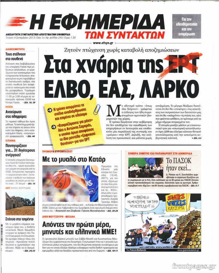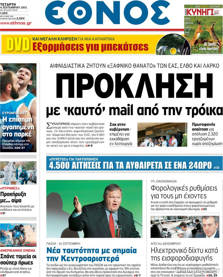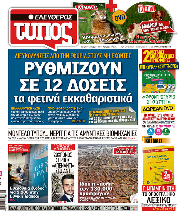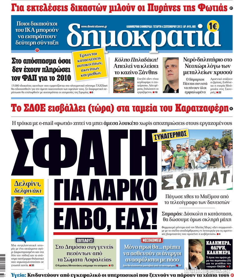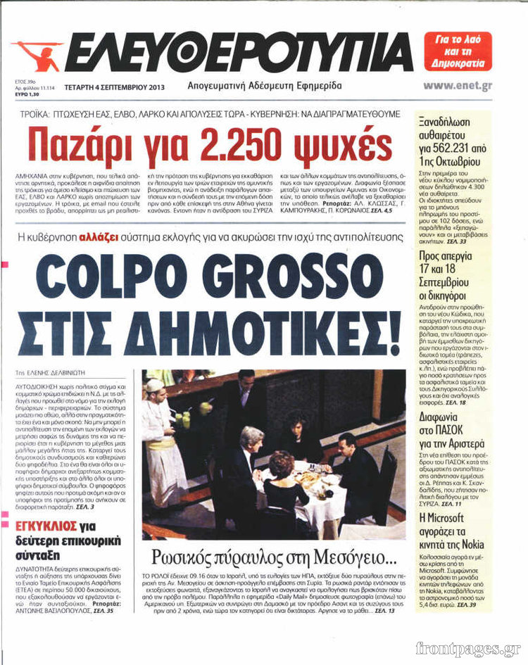 Οι πολιτικές εφημερίδες Enikos Newsroom 08:29, Τετάρτη 04 Σεπτεμβρίου 2013 Media Οι πολιτικές εφημερίδες Διαβάστε τα πρωτοσέλιδα των πολιτικών εφημερίδων: ΕΦΗΜΕΡΙΔΕΣ ΠΟΛΙΤΙΚΕΣ ΕΦΗΜΕΡΙΔΕΣ ΠΡΩΤΟΣΕΛΙΔΑ Μοιράσου το: σχολίασε κι εσύ (0 σχόλια) Ακολουθήστε το enikos.gr στο Google News και μάθετε πρώτοι όλες τις ειδήσεις Δείτε όλες τις τελευταίες ειδήσεις από την Ελλάδα και τον Κόσμο στο enikos.gr Ειδήσεις Ροή Ειδήσεων 1 ώρα πριν Υπόθεση Έπσταϊν: Το Υπουργείο Δικαιοσύνης δημοσιοποίησε μια σειρά από εξαιρετικά επεξεργασμένα αρχεία – «Λείπουν τα πιο σημαντικά έγγραφα», λένε οι Δημοκρατικοί 3 ώρες πριν Σαρωτικοί οι έλεγχοι στους δρόμους ενόψει εορτών – Μπλόκα της τροχαίας σε κεντρικές αρτηρίες της Αττικής 1 ώρα πριν ΟΝΕΧ – MEGATUGS: Ξεκίνησε η ναυπήγηση ρυμουλκών στην Ελλάδα – Προθάλαμος πολεμικών πλοίων – Δείτε φωτογραφίες και βίντεο 1 ώρα πριν Καιρός: Αλλαγή σκηνικού σήμερα με βροχές και πτώση της θερμοκρασίας – Οι προβλέψεις των μετεωρολόγων για τα Χριστούγεννα 10 ώρες πριν Χριστούγεννα στα μπλόκα: Επιμένουν στις κινητοποιήσεις τους οι αγρότες – Ανοίγουν τα διόδια το Σαββατοκύριακο 3 ώρες πριν Αυγά: Πόσα μπορείτε να τρώτε την ημέρα με ασφάλεια για μέγιστη πρόσληψη πρωτεΐνης 3 ώρες πριν Τα ζώδια σήμερα, Σάββατο 20 Δεκεμβρίου: Παρθένοι, το σύμπαν σας δίνει το κλειδί 3 ώρες πριν Οπτική ψευδαίσθηση: Μόνο αν είσαι ο Σέρλοκ Χολμς θα βρεις τον αριθμό «87» σε 7 δευτερόλεπτα 47 λεπτά πριν Αρχαιολόγοι ανακάλυψαν σε χωράφι απεικόνιση 600 ετών ενός Αγίου – Τα στοιχεία που δείχνουν ότι μαρτύρησε 4 δευτερόλεπτα πριν Γιώργος Μαζωνάκης: Τη Δευτέρα η μήνυση του τραγουδιστή κατά του 22χρονου 9 λεπτά πριν Αμαλία Κωστοπούλου: Το μήνυμα για το χειρουργείο στο γόνατο – «Αυτός ο τραυματισμός μού στέρησε πολλά…» 16 λεπτά πριν Ο «χάρτης» με τις αυξήσεις και τις φοροελαφρύνσεις του 2026 – Ποιοι και πόσα κερδίζουν 24 λεπτά πριν Η τέλεια συνταγή για cookies με κομμάτια σοκολάτας 32 λεπτά πριν MyHealth App: Τα στοιχεία για τον Προσωπικό Βοηθό Υγείας Πολίτη – Τι ερωτήματα έγιναν μέσα σε 7 ημέρες ENIKOS NETWORK Το τεστ των 10 δευτερολέπτων που μπορεί να προβλέψει το προσδόκιμο ζωής σας – Τι λέει ειδικός του Cleveland Επιλέξτε καρέκλα για να μάθετε ποια είναι τα κρυφά χαρακτηριστικά σας – Τι αποκάλυψε για εσάς αυτό το τεστ προσωπικότητας; Mega χριστουγεννιάτικη φορολοταρία: «Κλείδωσε» η ημερομηνία για την κλήρωση – Ερωτήσεις και απαντήσεις Αναστολή μέτρων αναγκαστικής εκτέλεσης για κτηνοτρόφους που πλήττονται από την ευλογιά των αιγοπροβάτων Χαρτογραφώντας το «σημείο χωρίς επιστροφή»: Για πρώτη φορά αποκαλύπτεται με λεπτομέρεια το ακανθώδες όριο της ατμόσφαιρας τ... Η Google καταργεί τη λειτουργία «dark web report» – Πώς θα μπορούν οι χρήστες να διαγράφουν τα δεδομένα τους περισσότερα 08:14 , Σάββατο 20 Δεκεμβρίου 2025 Τρομεροί γονείς: Η Μαρία Καβογιάννη εισβάλλει στο σπίτι της οικογένειας Στεφανίδη Όσα θα δούμε στο νέο διπλό επεισόδιο της σειράς «Τρομεροί γονείς», σήμερα Σάββατο 20 Δεκεμβρίο... 05:48 , Σάββατο 20 Δεκεμβρίου 2025 Οι οικονομικές εφημερίδες 20/12/2025 Διαβάστε τα πρωτοσέλιδα από τις οικονομικές εφημερίδες, σήμερα 20/12/2025. 05:43 , Σάββατο 20 Δεκεμβρίου 2025 Οι αθλητικές εφημερίδες 20/12/2025 Διαβάστε τα πρωτοσέλιδα από τις αθλητικές εφημερίδες, σήμερα 20/12/2025. 05:38 , Σάββατο 20 Δεκεμβρίου 2025 Οι πολιτικές εφημερίδες 20/12/2025 Διαβάστε τα πρωτοσέλιδα από τις πολιτικές εφημερίδες, σήμερα 20/12/2025. ΤΕΛΕΥΤΑΙΕΣ ΕΙΔΗΣΕΙΣ 9 λεπτά πριν Αμαλία Κωστοπούλου: Το μήνυμα γ