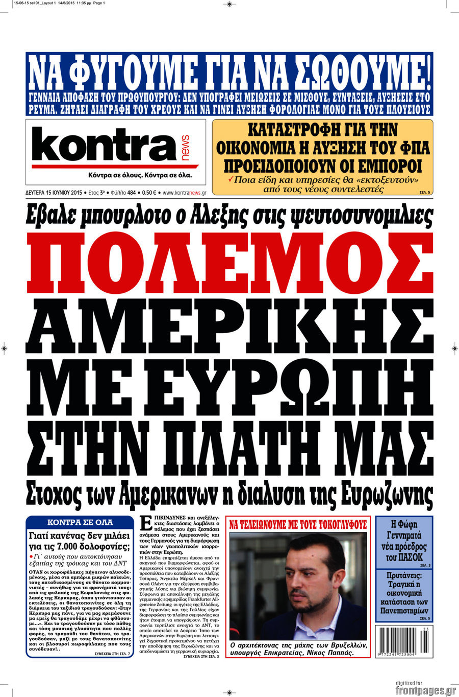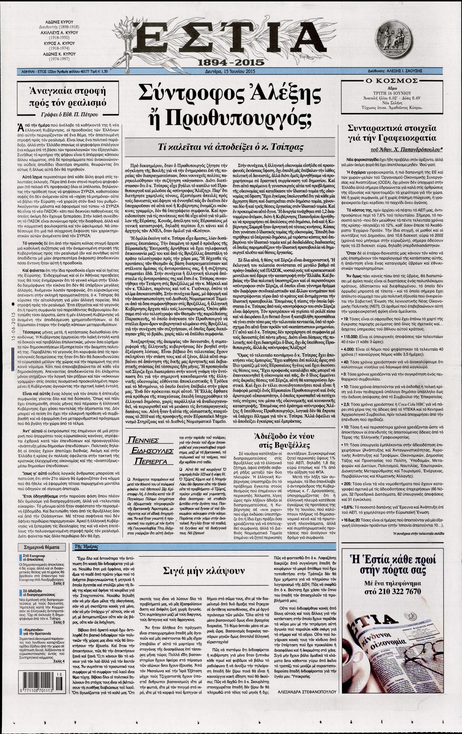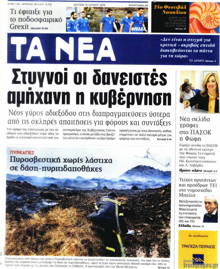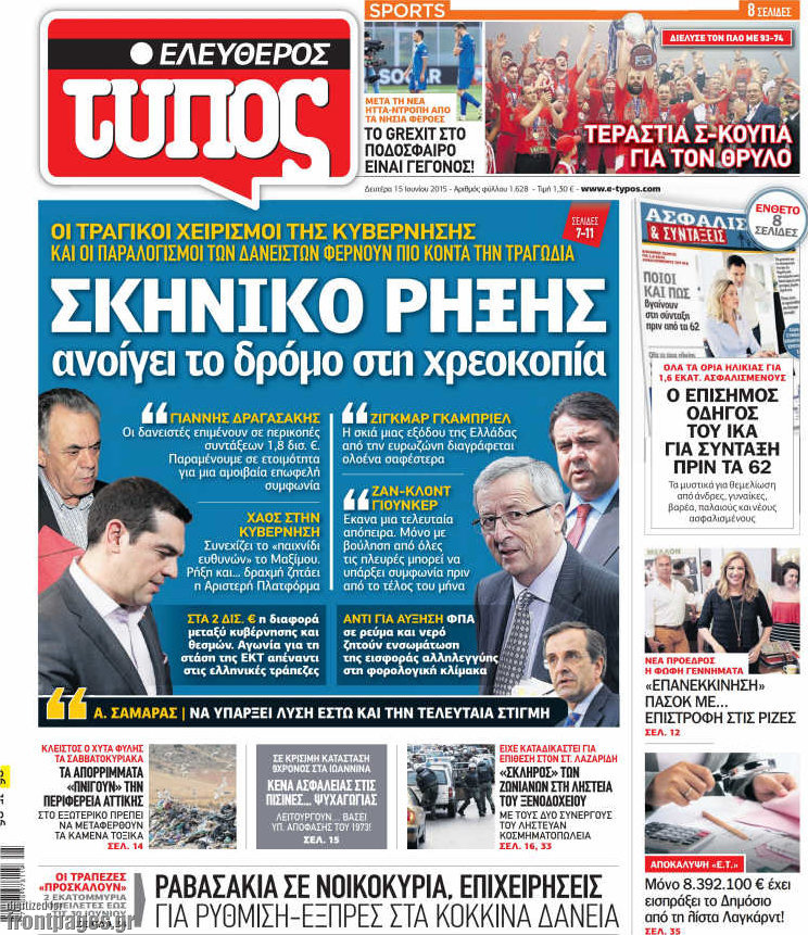 Οι πολιτικές εφημερίδες 15/6/2015 Enikos Newsroom 07:27, Δευτέρα 15 Ιουνίου 2015 Media Διαβάστε τα σημερινά πρωτοσέλιδα των πολιτικών εφημερίδων: ΠΟΛΙΤΙΚΕΣ ΕΦΗΜΕΡΙΔΕΣ ΠΡΩΤΟΣΕΛΙΔΑ Μοιράσου το: σχολίασε κι εσύ (0 σχόλια) Ακολουθήστε το enikos.gr στο Google News και μάθετε πρώτοι όλες τις ειδήσεις Δείτε όλες τις τελευταίες ειδήσεις από την Ελλάδα και τον Κόσμο στο enikos.gr Ειδήσεις Ροή Ειδήσεων 1 ώρα πριν Χριστούγεννα στα μπλόκα: Επιμένουν στις κινητοποιήσεις τους οι αγρότες – Ανοίγουν τα διόδια το Σαββατοκύριακο 2 ώρες πριν Ουκρανία: Η άνευ προηγουμένου επίθεση σε ρωσικό τάνκερ στη Μεσόγειο και το μήνυμα προς στον Πούτιν – Το «μακρύ χέρι» του Κιέβου 1 ώρα πριν Πούτιν: Τα μηνύματα σε Ευρώπη και ΝΑΤΟ από το μαραθώνιο «σόου» του – Η απαίτηση για «σεβασμό» και η ειρήνη «με τους όρους» της Μόσχας 2 ώρες πριν Τραμπ: Δεν αποκλείει την πιθανότητα ενός πολέμου στη Βενεζουέλα – «Ο Μαδούρο ξέρει καλύτερα από τον καθένα τι ακριβώς θέλω» 3 ώρες πριν Συνεχίζει να προκαλεί ο Μίτσκοσκι: «Για μένα το όνομα Μακεδονία είναι ιερό» 1 ώρα πριν Ανακαλύφθηκαν αρχαία χρυσά νομίσματα 2.200 ετών που απεικονίζουν τον θεό Απόλλωνα – Η άγνωστη σύνδεση με τον Φίλιππο Β΄ της Μακεδονίας 2 ώρες πριν Ύπνος: Μια κρυφή κατάσταση του εγκεφάλου πριν από τον ύπνο μπορεί να είναι το “κλειδί” για υψηλή ευφυΐα και δημιουργικότητα 3 ώρες πριν Αριθμολογία: Οι άνθρωποι που έχουν γεννηθεί αυτές τις 4 ημερομηνίες, συχνά παρεξηγούνται – «Η καλοσύνη τους κρύβει τεράστια δύναμη» 4 ώρες πριν Ξεχάστε το καθάρισμα το Σαββατοκύριακο: Ο «κανόνας των 20 λεπτών» που θα σας λύσει τα χέρια 6 λεπτά πριν Πόλεμος στην Ουκρανία: Εφτά νεκροί από ρωσική πυραυλική επίθεση στο λιμάνι της Οδησσού 9 λεπτά πριν ΗΠΑ: Η κυβέρνηση του Ντόναλντ Τραμπ άρχισε να δημοσιοποιεί τα αρχεία Έπσταϊν 21 λεπτά πριν Σάμος: Άνοιξε το μπλόκο των αγροτών στον κόμβο Κοκκαρίου – Σε νέα συνεδρίαση θα καθορίσουν την στάση τους 29 λεπτά πριν Άνω Λιόσια: Πυροβολισμοί σε επιχείρηση με χαλιά – Εντοπίστηκαν 10 κάλυκες 36 λεπτά πριν Γάζα: Ισραηλινό πλήγμα σε σχολείο που είχαν καταφύγει εκτοπισμένοι – Τουλάχιστον έξι νεκροί ENIKOS NETWORK Το ΕΚΑΒ τιμήθηκε από την Ακαδημία Αθηνών για τα 40 χρόνια προσφοράς του Έχετε πραγματικά μεγάλη καρδιά; 10 χαρακτηριστικά όσων έχουν καλοσύνη Αναστολή μέτρων αναγκαστικής εκτέλεσης για κτηνοτρόφους που πλήττονται από την ευλογιά των αιγοπροβάτων Πλήρης επάρκεια προϊόντων στις λαϊκές της Αττικής, παρά τις αγροτικές κινητοποιήσεις – Τι απαντούν οι πωλητές Χαρτογραφώντας το «σημείο χωρίς επιστροφή»: Για πρώτη φορά αποκαλύπτεται με λεπτομέρεια το ακανθώδες όριο της ατμόσφαιρας τ... Η Google καταργεί τη λειτουργία «dark web report» – Πώς θα μπορούν οι χρήστες να διαγράφουν τα δεδομένα τους περισσότερα 22:42 , Παρασκευή 19 Δεκεμβρίου 2025 Γιώργος Γιαννόπουλος για “Το σόι σου”: “Είναι ευτυχία και ευλογία αυτή η σειρά” «Είναι ευτυχία και ευλογία η συγκυρία αυτής της σειράς», θα πει ο Γιώργος Γιαννόπουλος -ο αγαπ... 20:37 , Παρασκευή 19 Δεκεμβρίου 2025 Don’t Forget The Lyrics: Η Έλλη Κοκκίνου υποδέχεται 4 παίκτες που θα κάνουν τα πάντα για να μη χάσουν ούτε… μισή λέξη από τους στίχους Το «Don’t Forget The Lyrics» επιστρέφει απόψε, Παρασκευή 19 Δεκεμβρίου, στις 21:00 με νέο επει... 19:31 , Παρασκευή 19 Δεκεμβρίου 2025 GNTM: Απόψε ο μεγάλος τελικός για τους 4 φιναλίστ Έπειτα από μήνες γεμάτους μόδα, δημιουργία και έντονες αναμετρήσεις, το GNTM 2025 κορυφώνεται,... 18:11 , Παρασκευή 19 Δεκεμβρίου 2025 Το σόι σου: Ο Άρης