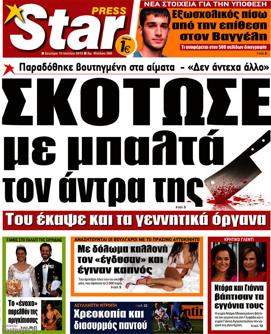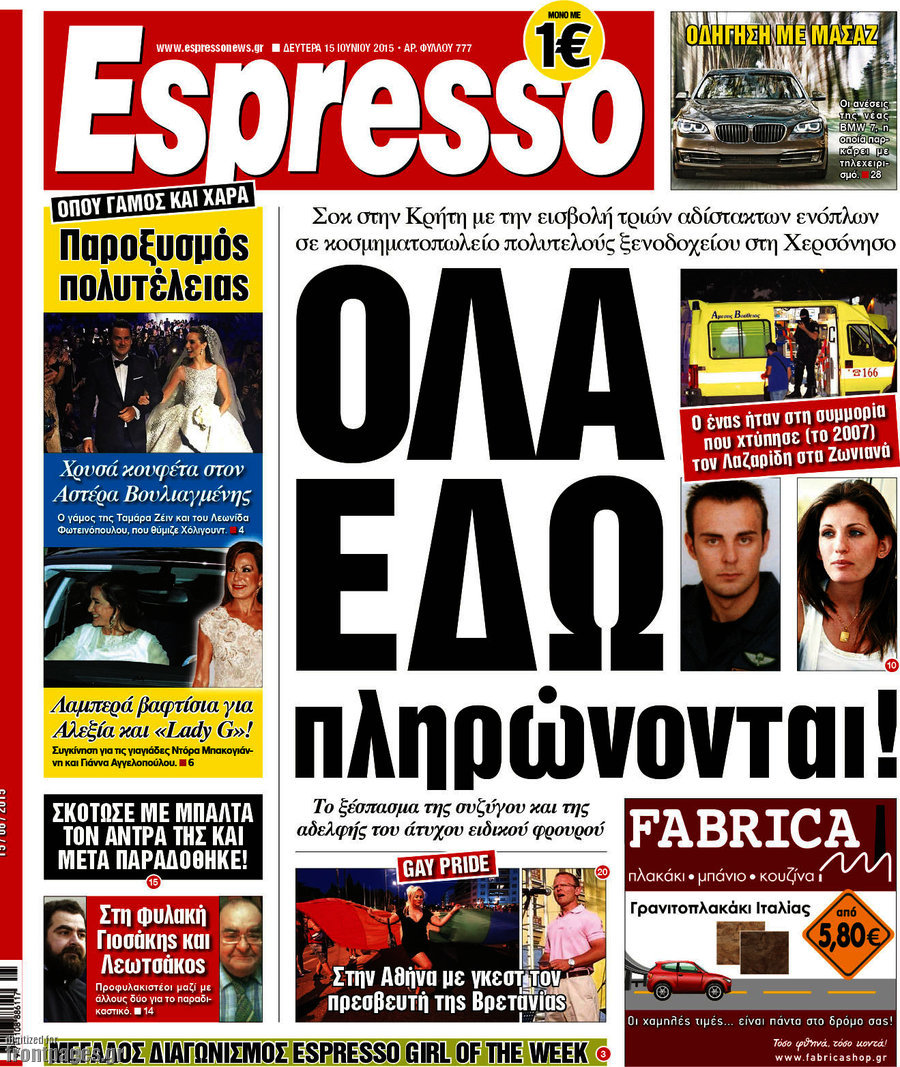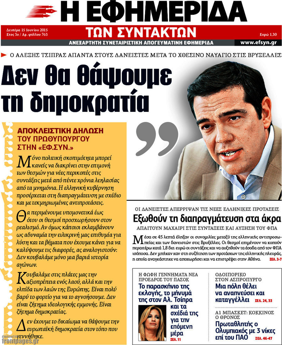 Οι πολιτικές εφημερίδες 15/6/2015 Enikos Newsroom 07:27, Δευτέρα 15 Ιουνίου 2015 Media Διαβάστε τα σημερινά πρωτοσέλιδα των πολιτικών εφημερίδων: ΠΟΛΙΤΙΚΕΣ ΕΦΗΜΕΡΙΔΕΣ ΠΡΩΤΟΣΕΛΙΔΑ Μοιράσου το: σχολίασε κι εσύ (0 σχόλια) Ακολουθήστε το enikos.gr στο Google News και μάθετε πρώτοι όλες τις ειδήσεις Δείτε όλες τις τελευταίες ειδήσεις από την Ελλάδα και τον Κόσμο στο enikos.gr Ειδήσεις Ροή Ειδήσεων 1 ώρα πριν Χριστούγεννα στα μπλόκα: Επιμένουν στις κινητοποιήσεις τους οι αγρότες – Ανοίγουν τα διόδια το Σαββατοκύριακο 2 ώρες πριν Ουκρανία: Η άνευ προηγουμένου επίθεση σε ρωσικό τάνκερ στη Μεσόγειο και το μήνυμα προς στον Πούτιν – Το «μακρύ χέρι» του Κιέβου 1 ώρα πριν Πούτιν: Τα μηνύματα σε Ευρώπη και ΝΑΤΟ από το μαραθώνιο «σόου» του – Η απαίτηση για «σεβασμό» και η ειρήνη «με τους όρους» της Μόσχας 2 ώρες πριν Τραμπ: Δεν αποκλείει την πιθανότητα ενός πολέμου στη Βενεζουέλα – «Ο Μαδούρο ξέρει καλύτερα από τον καθένα τι ακριβώς θέλω» 3 ώρες πριν Συνεχίζει να προκαλεί ο Μίτσκοσκι: «Για μένα το όνομα Μακεδονία είναι ιερό» 1 ώρα πριν Ανακαλύφθηκαν αρχαία χρυσά νομίσματα 2.200 ετών που απεικονίζουν τον θεό Απόλλωνα – Η άγνωστη σύνδεση με τον Φίλιππο Β΄ της Μακεδονίας 2 ώρες πριν Ύπνος: Μια κρυφή κατάσταση του εγκεφάλου πριν από τον ύπνο μπορεί να είναι το “κλειδί” για υψηλή ευφυΐα και δημιουργικότητα 3 ώρες πριν Αριθμολογία: Οι άνθρωποι που έχουν γεννηθεί αυτές τις 4 ημερομηνίες, συχνά παρεξηγούνται – «Η καλοσύνη τους κρύβει τεράστια δύναμη» 4 ώρες πριν Ξεχάστε το καθάρισμα το Σαββατοκύριακο: Ο «κανόνας των 20 λεπτών» που θα σας λύσει τα χέρια 6 λεπτά πριν Πόλεμος στην Ουκρανία: Εφτά νεκροί από ρωσική πυραυλική επίθεση στο λιμάνι της Οδησσού 9 λεπτά πριν ΗΠΑ: Η κυβέρνηση του Ντόναλντ Τραμπ άρχισε να δημοσιοποιεί τα αρχεία Έπσταϊν 21 λεπτά πριν Σάμος: Άνοιξε το μπλόκο των αγροτών στον κόμβο Κοκκαρίου – Σε νέα συνεδρίαση θα καθορίσουν την στάση τους 29 λεπτά πριν Άνω Λιόσια: Πυροβολισμοί σε επιχείρηση με χαλιά – Εντοπίστηκαν 10 κάλυκες 36 λεπτά πριν Γάζα: Ισραηλινό πλήγμα σε σχολείο που είχαν καταφύγει εκτοπισμένοι – Τουλάχιστον έξι νεκροί ENIKOS NETWORK Το ΕΚΑΒ τιμήθηκε από την Ακαδημία Αθηνών για τα 40 χρόνια προσφοράς του Έχετε πραγματικά μεγάλη καρδιά; 10 χαρακτηριστικά όσων έχουν καλοσύνη Αναστολή μέτρων αναγκαστικής εκτέλεσης για κτηνοτρόφους που πλήττονται από την ευλογιά των αιγοπροβάτων Πλήρης επάρκεια προϊόντων στις λαϊκές της Αττικής, παρά τις αγροτικές κινητοποιήσεις – Τι απαντούν οι πωλητές Χαρτογραφώντας το «σημείο χωρίς επιστροφή»: Για πρώτη φορά αποκαλύπτεται με λεπτομέρεια το ακανθώδες όριο της ατμόσφαιρας τ... Η Google καταργεί τη λειτουργία «dark web report» – Πώς θα μπορούν οι χρήστες να διαγράφουν τα δεδομένα τους περισσότερα 22:42 , Παρασκευή 19 Δεκεμβρίου 2025 Γιώργος Γιαννόπουλος για “Το σόι σου”: “Είναι ευτυχία και ευλογία αυτή η σειρά” «Είναι ευτυχία και ευλογία η συγκυρία αυτής της σειράς», θα πει ο Γιώργος Γιαννόπουλος -ο αγαπ... 20:37 , Παρασκευή 19 Δεκεμβρίου 2025 Don’t Forget The Lyrics: Η Έλλη Κοκκίνου υποδέχεται 4 παίκτες που θα κάνουν τα πάντα για να μη χάσουν ούτε… μισή λέξη από τους στίχους Το «Don’t Forget The Lyrics» επιστρέφει απόψε, Παρασκευή 19 Δεκεμβρίου, στις 21:00 με νέο επει... 19:31 , Παρασκευή 19 Δεκεμβρίου 2025 GNTM: Απόψε ο μεγάλος τελικός για τους 4 φιναλίστ Έπειτα από μήνες γεμάτους μόδα, δημιουργία και έντονες αναμετρήσεις, το GNTM 2025 κορυφώνεται,... 18:11 , Παρασκευή 19 Δεκεμβρίου 2025 Το σόι σου: Ο Άρης