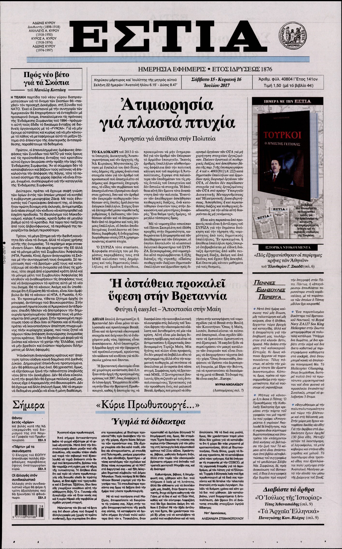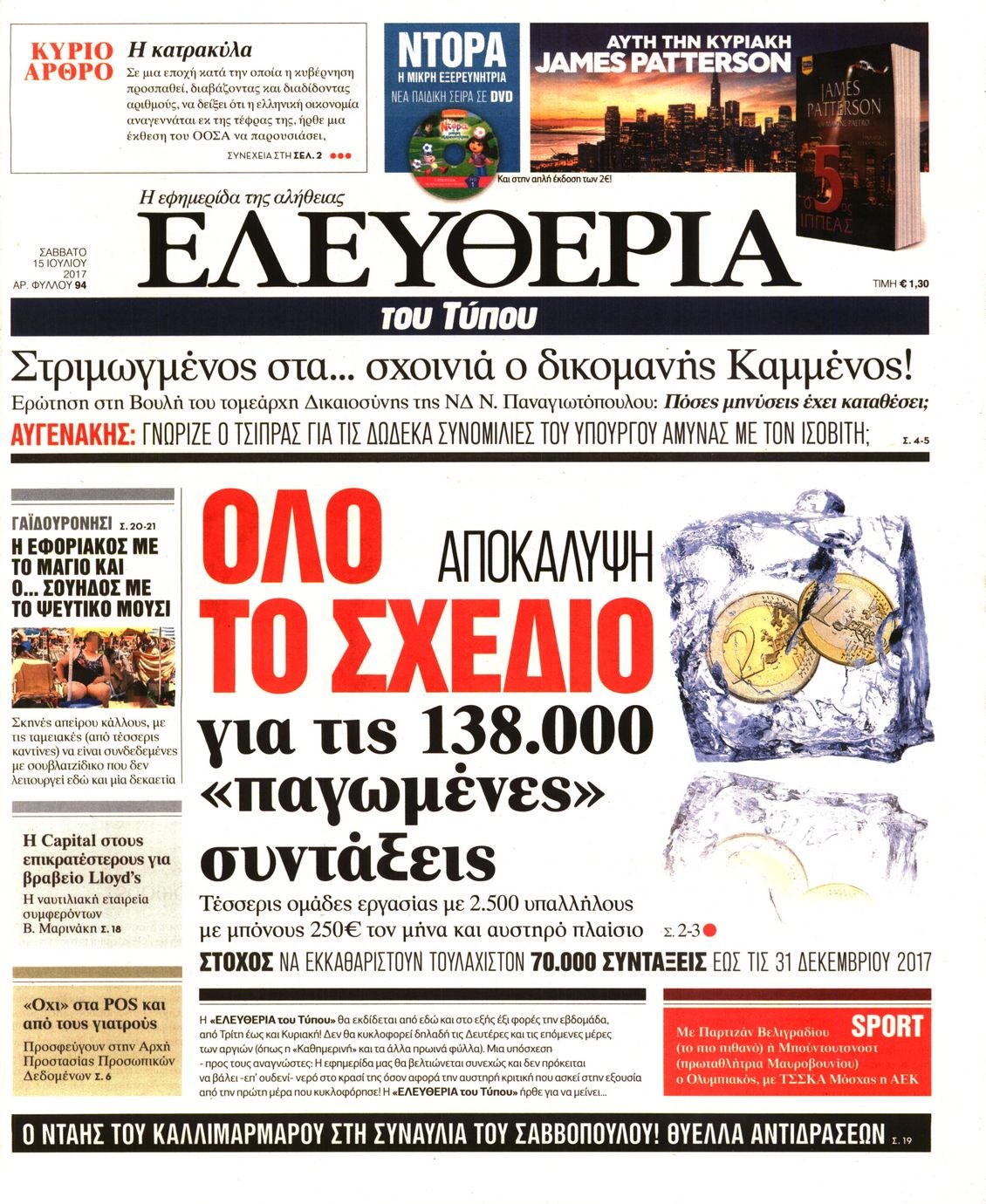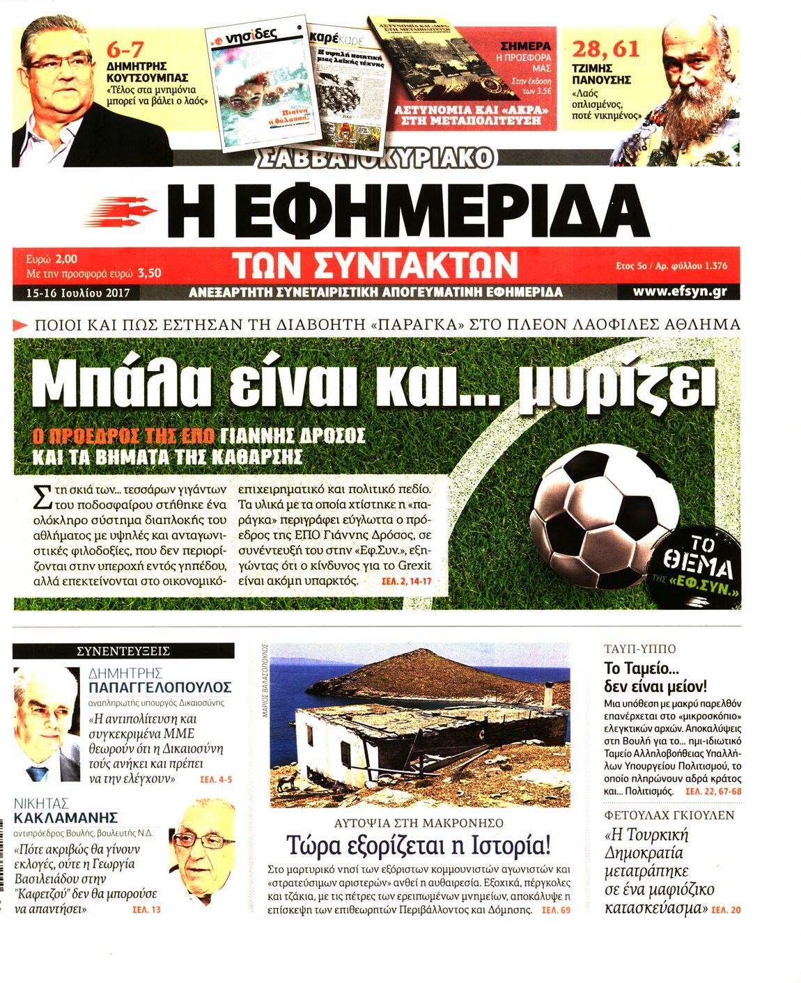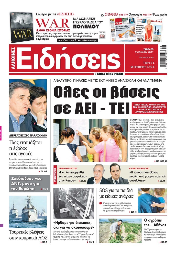 Οι πολιτικές εφημερίδες 15/7/2017 Enikos Newsroom 07:40, Σάββατο 15 Ιουλίου 2017 Media Διαβάστε τα σημερινά πρωτοσέλιδα των πολιτικών εφημερίδων: ΠΟΛΙΤΙΚΕΣ ΕΦΗΜΕΡΙΔΕΣ ΠΡΩΤΟΣΕΛΙΔΑ Μοιράσου το: σχολίασε κι εσύ (0 σχόλια) Ακολουθήστε το enikos.gr στο Google News και μάθετε πρώτοι όλες τις ειδήσεις Δείτε όλες τις τελευταίες ειδήσεις από την Ελλάδα και τον Κόσμο στο enikos.gr Ειδήσεις Ροή Ειδήσεων 2 ώρες πριν Υπόθεση Έπσταϊν: Το Υπουργείο Δικαιοσύνης δημοσιοποίησε μια σειρά από εξαιρετικά επεξεργασμένα αρχεία – «Λείπουν τα πιο σημαντικά έγγραφα», λένε οι Δημοκρατικοί 1 ώρα πριν Ο «χάρτης» με τις αυξήσεις και τις φοροελαφρύνσεις του 2026 – Ποιοι και πόσα κερδίζουν 11 ώρες πριν Χριστούγεννα στα μπλόκα: Επιμένουν στις κινητοποιήσεις τους οι αγρότες – Ανοίγουν τα διόδια το Σαββατοκύριακο 2 ώρες πριν ΟΝΕΧ – MEGATUGS: Ξεκίνησε η ναυπήγηση ρυμουλκών στην Ελλάδα – Προθάλαμος πολεμικών πλοίων – Δείτε φωτογραφίες και βίντεο 2 ώρες πριν Καιρός: Αλλαγή σκηνικού σήμερα με βροχές και πτώση της θερμοκρασίας – Οι προβλέψεις των μετεωρολόγων για τα Χριστούγεννα 4 ώρες πριν Αυγά: Πόσα μπορείτε να τρώτε την ημέρα με ασφάλεια για μέγιστη πρόσληψη πρωτεΐνης 4 ώρες πριν Οπτική ψευδαίσθηση: Μόνο αν είσαι ο Σέρλοκ Χολμς θα βρεις τον αριθμό «87» σε 7 δευτερόλεπτα 2 ώρες πριν Αρχαιολόγοι ανακάλυψαν σε χωράφι απεικόνιση 600 ετών ενός Αγίου – Τα στοιχεία που δείχνουν ότι μαρτύρησε 41 λεπτά πριν Αγχώνεται για το χριστουγεννιάτικο δώρο που πήρε στην πλούσια σύντροφό του – «Φοβάμαι πως θα το βρει φθηνιάρικο, φοράει βραχιόλια Cartier» 7 λεπτά πριν Θεσσαλονίκη: 24ωρη λειτουργία σήμερα σε μετρό και 6 λεωφορειακές γραμμές 15 λεπτά πριν «Porto Leone: Στη γειτονιά με τα κόκκινα φανάρια» – Ο Χρόνης αποκαλύπτει στην Αλεξάνδρα το μυστικό για το παιδί της Λένας 23 λεπτά πριν Νέες αιτήσεις για ίδρυση μη κρατικών πανεπιστημίων στο πρώτο δίμηνο του 2026 – Τι είπε η Ζαχαράκη 32 λεπτά πριν Ουκρανία: Drones έπληξαν εξέδρα πετρελαίου και πολεμικό πλοίο της Ρωσίας στην Κασπία 40 λεπτά πριν Παιδική υπέρταση: Μια σιωπηλή απειλή που αυξάνεται διεθνώς ENIKOS NETWORK Πόσα κιλά παίρνουμε πραγματικά τα Χριστούγεννα, σύμφωνα με την επιστήμη – Πώς να το αποτρέψουμε; Το δημοφιλές ρόφημα που αυξάνει την πίεση πιο γρήγορα και από το αλάτι Mega χριστουγεννιάτικη φορολοταρία: «Κλείδωσε» η ημερομηνία για την κλήρωση – Ερωτήσεις και απαντήσεις Αναστολή μέτρων αναγκαστικής εκτέλεσης για κτηνοτρόφους που πλήττονται από την ευλογιά των αιγοπροβάτων Χαρτογραφώντας το «σημείο χωρίς επιστροφή»: Για πρώτη φορά αποκαλύπτεται με λεπτομέρεια το ακανθώδες όριο της ατμόσφαιρας τ... Η Google καταργεί τη λειτουργία «dark web report» – Πώς θα μπορούν οι χρήστες να διαγράφουν τα δεδομένα τους περισσότερα 09:30 , Σάββατο 20 Δεκεμβρίου 2025 «Porto Leone: Στη γειτονιά με τα κόκκινα φανάρια» – Ο Χρόνης αποκαλύπτει στην Αλεξάνδρα το μυστικό για το παιδί της Λένας Η μεγάλη δραματική σειρά του Apha «Porto Leone: Στη γειτονιά με τα κόκκινα φανάρια» μας μεταφέ... 08:14 , Σάββατο 20 Δεκεμβρίου 2025 Τρομεροί γονείς: Η Μαρία Καβογιάννη εισβάλλει στο σπίτι της οικογένειας Στεφανίδη Όσα θα δούμε στο νέο διπλό επεισόδιο της σειράς «Τρομεροί γονείς», σήμερα Σάββατο 20 Δεκεμβρίο... 05:48 , Σάββατο 20 Δεκεμβρίου 2025 Οι οικονομικές εφημερίδες 20/12/2025 Διαβάστε τα πρωτοσέλιδα από τις οικονομικές εφημερίδες, σήμερα 20/12/2025. 05:43 , Σάββατο 20 Δεκεμβρίου 2025 Οι αθλητικές εφημερίδες 20/12/2025 Διαβάστε τα πρωτοσέλιδα από τις αθλητικές εφημερίδες, σή