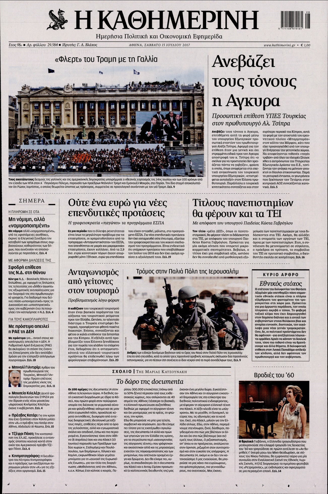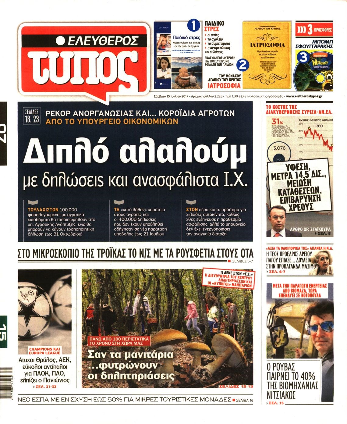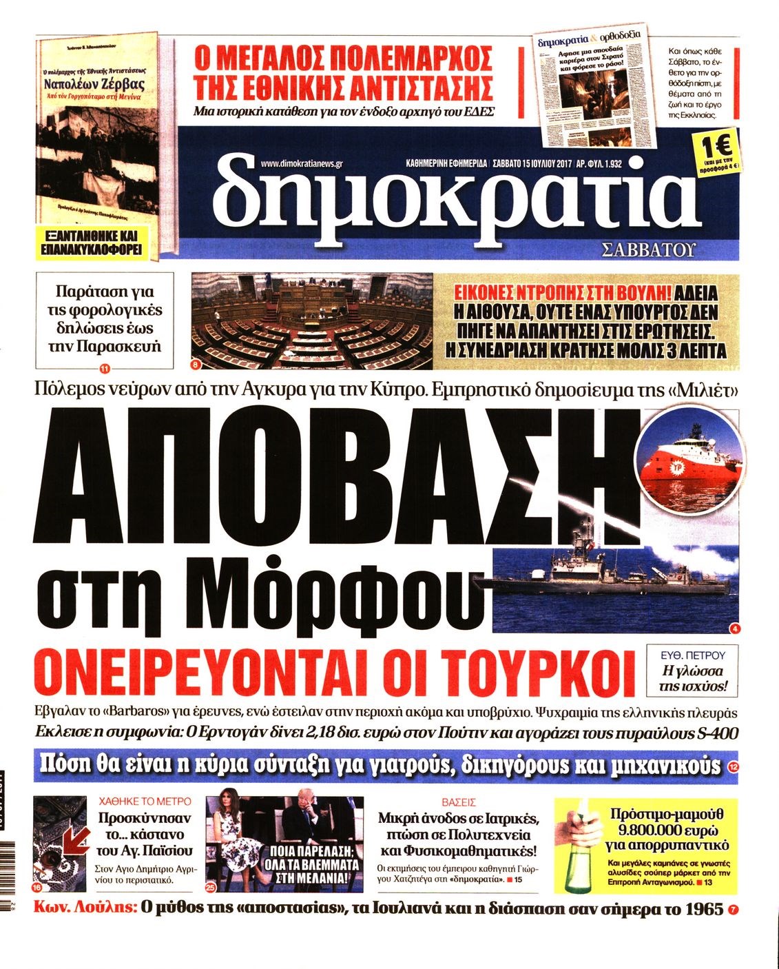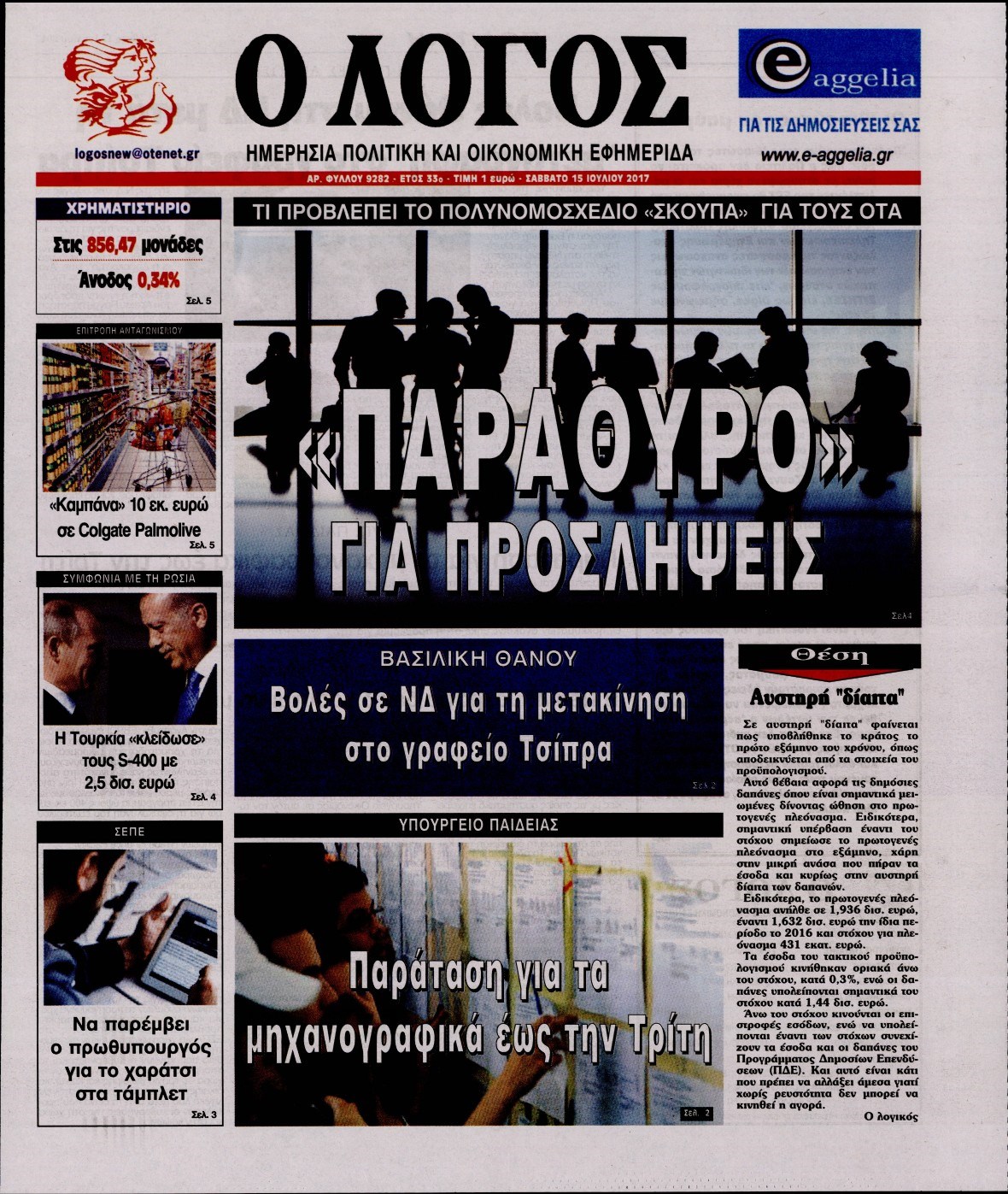 Οι πολιτικές εφημερίδες 15/7/2017 Enikos Newsroom 07:40, Σάββατο 15 Ιουλίου 2017 Media Διαβάστε τα σημερινά πρωτοσέλιδα των πολιτικών εφημερίδων: ΠΟΛΙΤΙΚΕΣ ΕΦΗΜΕΡΙΔΕΣ ΠΡΩΤΟΣΕΛΙΔΑ Μοιράσου το: σχολίασε κι εσύ (0 σχόλια) Ακολουθήστε το enikos.gr στο Google News και μάθετε πρώτοι όλες τις ειδήσεις Δείτε όλες τις τελευταίες ειδήσεις από την Ελλάδα και τον Κόσμο στο enikos.gr Ειδήσεις Ροή Ειδήσεων 2 ώρες πριν Υπόθεση Έπσταϊν: Το Υπουργείο Δικαιοσύνης δημοσιοποίησε μια σειρά από εξαιρετικά επεξεργασμένα αρχεία – «Λείπουν τα πιο σημαντικά έγγραφα», λένε οι Δημοκρατικοί 1 ώρα πριν Ο «χάρτης» με τις αυξήσεις και τις φοροελαφρύνσεις του 2026 – Ποιοι και πόσα κερδίζουν 11 ώρες πριν Χριστούγεννα στα μπλόκα: Επιμένουν στις κινητοποιήσεις τους οι αγρότες – Ανοίγουν τα διόδια το Σαββατοκύριακο 2 ώρες πριν ΟΝΕΧ – MEGATUGS: Ξεκίνησε η ναυπήγηση ρυμουλκών στην Ελλάδα – Προθάλαμος πολεμικών πλοίων – Δείτε φωτογραφίες και βίντεο 2 ώρες πριν Καιρός: Αλλαγή σκηνικού σήμερα με βροχές και πτώση της θερμοκρασίας – Οι προβλέψεις των μετεωρολόγων για τα Χριστούγεννα 4 ώρες πριν Αυγά: Πόσα μπορείτε να τρώτε την ημέρα με ασφάλεια για μέγιστη πρόσληψη πρωτεΐνης 4 ώρες πριν Οπτική ψευδαίσθηση: Μόνο αν είσαι ο Σέρλοκ Χολμς θα βρεις τον αριθμό «87» σε 7 δευτερόλεπτα 2 ώρες πριν Αρχαιολόγοι ανακάλυψαν σε χωράφι απεικόνιση 600 ετών ενός Αγίου – Τα στοιχεία που δείχνουν ότι μαρτύρησε 41 λεπτά πριν Αγχώνεται για το χριστουγεννιάτικο δώρο που πήρε στην πλούσια σύντροφό του – «Φοβάμαι πως θα το βρει φθηνιάρικο, φοράει βραχιόλια Cartier» 7 λεπτά πριν Θεσσαλονίκη: 24ωρη λειτουργία σήμερα σε μετρό και 6 λεωφορειακές γραμμές 15 λεπτά πριν «Porto Leone: Στη γειτονιά με τα κόκκινα φανάρια» – Ο Χρόνης αποκαλύπτει στην Αλεξάνδρα το μυστικό για το παιδί της Λένας 23 λεπτά πριν Νέες αιτήσεις για ίδρυση μη κρατικών πανεπιστημίων στο πρώτο δίμηνο του 2026 – Τι είπε η Ζαχαράκη 32 λεπτά πριν Ουκρανία: Drones έπληξαν εξέδρα πετρελαίου και πολεμικό πλοίο της Ρωσίας στην Κασπία 40 λεπτά πριν Παιδική υπέρταση: Μια σιωπηλή απειλή που αυξάνεται διεθνώς ENIKOS NETWORK Πόσα κιλά παίρνουμε πραγματικά τα Χριστούγεννα, σύμφωνα με την επιστήμη – Πώς να το αποτρέψουμε; Το δημοφιλές ρόφημα που αυξάνει την πίεση πιο γρήγορα και από το αλάτι Mega χριστουγεννιάτικη φορολοταρία: «Κλείδωσε» η ημερομηνία για την κλήρωση – Ερωτήσεις και απαντήσεις Αναστολή μέτρων αναγκαστικής εκτέλεσης για κτηνοτρόφους που πλήττονται από την ευλογιά των αιγοπροβάτων Χαρτογραφώντας το «σημείο χωρίς επιστροφή»: Για πρώτη φορά αποκαλύπτεται με λεπτομέρεια το ακανθώδες όριο της ατμόσφαιρας τ... Η Google καταργεί τη λειτουργία «dark web report» – Πώς θα μπορούν οι χρήστες να διαγράφουν τα δεδομένα τους περισσότερα 09:30 , Σάββατο 20 Δεκεμβρίου 2025 «Porto Leone: Στη γειτονιά με τα κόκκινα φανάρια» – Ο Χρόνης αποκαλύπτει στην Αλεξάνδρα το μυστικό για το παιδί της Λένας Η μεγάλη δραματική σειρά του Apha «Porto Leone: Στη γειτονιά με τα κόκκινα φανάρια» μας μεταφέ... 08:14 , Σάββατο 20 Δεκεμβρίου 2025 Τρομεροί γονείς: Η Μαρία Καβογιάννη εισβάλλει στο σπίτι της οικογένειας Στεφανίδη Όσα θα δούμε στο νέο διπλό επεισόδιο της σειράς «Τρομεροί γονείς», σήμερα Σάββατο 20 Δεκεμβρίο... 05:48 , Σάββατο 20 Δεκεμβρίου 2025 Οι οικονομικές εφημερίδες 20/12/2025 Διαβάστε τα πρωτοσέλιδα από τις οικονομικές εφημερίδες, σήμερα 20/12/2025. 05:43 , Σάββατο 20 Δεκεμβρίου 2025 Οι αθλητικές εφημερίδες 20/12/2025 Διαβάστε τα πρωτοσέλιδα από τις αθλητικές εφημερίδες, σή