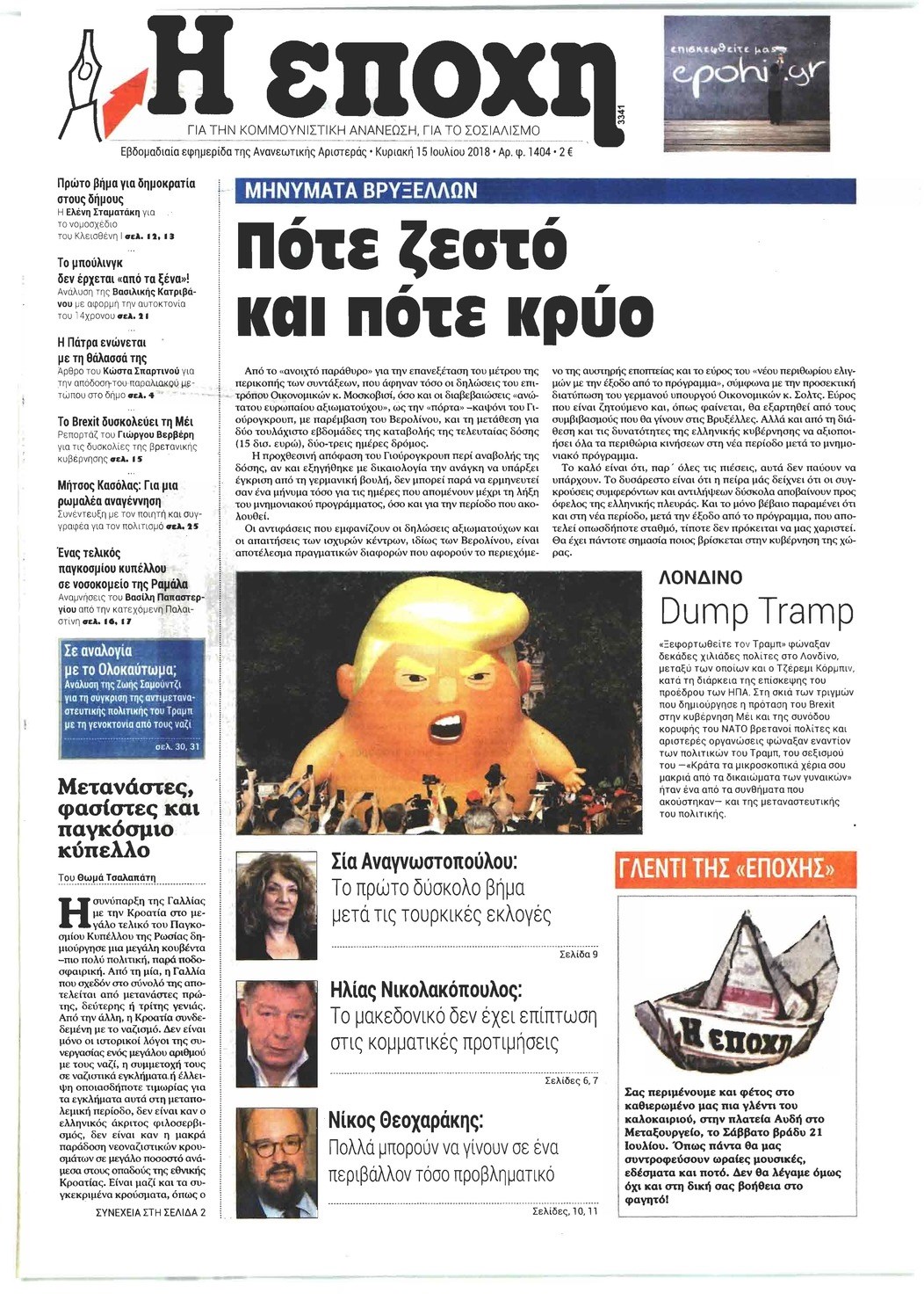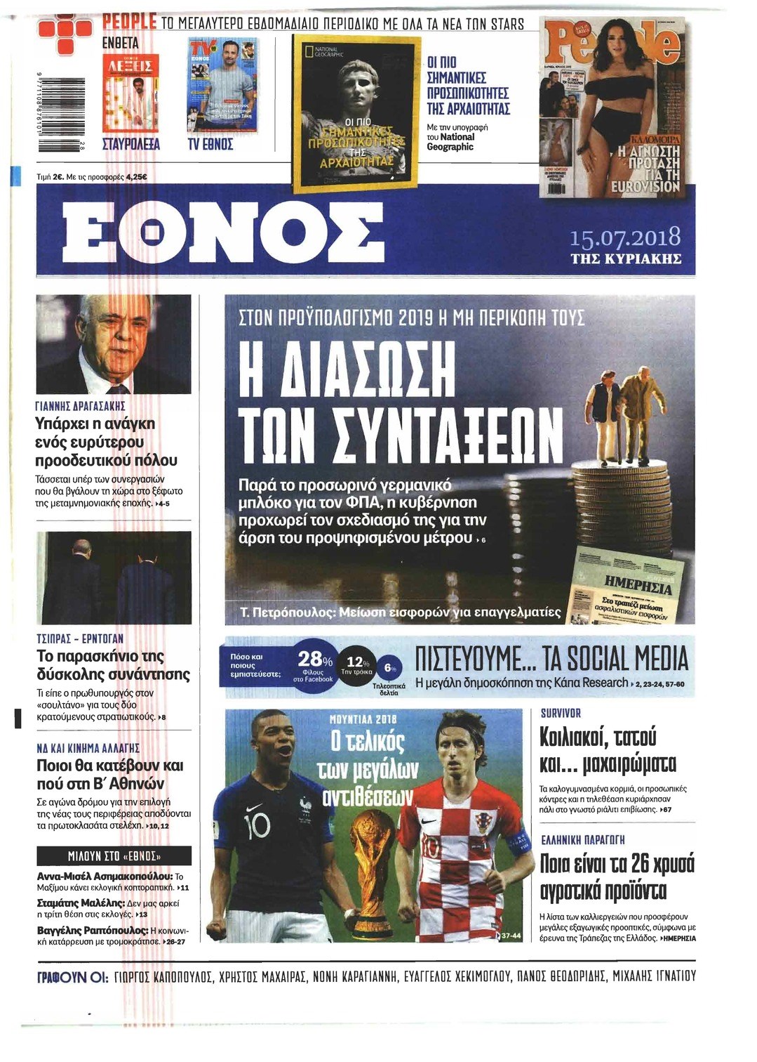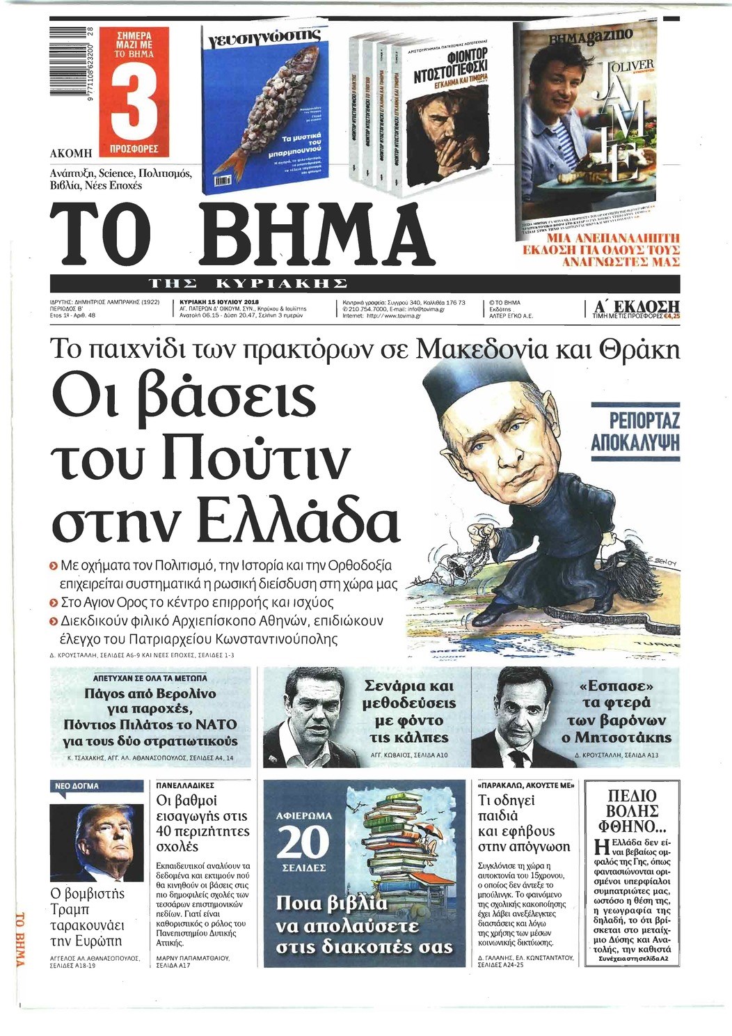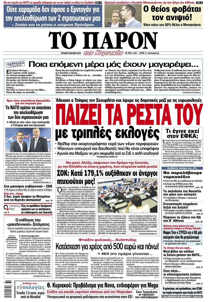 Οι πολιτικές εφημερίδες 15/7/2018 Κώστας Τεό 06:50, Κυριακή 15 Ιουλίου 2018 Media Διαβάστε τα σημερινά πρωτοσέλιδα των πολιτικών εφημερίδων: ΠΟΛΙΤΙΚΕΣ ΕΦΗΜΕΡΙΔΕΣ ΠΡΩΤΟΣΕΛΙΔΑ Μοιράσου το: σχολίασε κι εσύ (0 σχόλια) Ακολουθήστε το enikos.gr στο Google News και μάθετε πρώτοι όλες τις ειδήσεις Δείτε όλες τις τελευταίες ειδήσεις από την Ελλάδα και τον Κόσμο στο enikos.gr Ειδήσεις Ροή Ειδήσεων 22 λεπτά πριν Ζελένσκι: Μόνο οι ΗΠΑ και ο Τραμπ μπορούν να πιέσουν τη Ρωσία να βάλει τέλος στον πόλεμο 41 λεπτά πριν Φοινικούντα: Προφυλακιστέος ο 30χρονος για συνέργεια στη διπλή δολοφονία – Και άλλα πρόσωπα στο «μικροσκόπιο» 2 ώρες πριν Κυριάκος Μητσοτάκης: Στην Ιερουσαλήμ την Τρίτη ο Πρωθυπουργός για την τριμερή Ελλάδας, Κύπρου, Ισραήλ – Θα συναντηθεί και με τον Αμπάς 5 ώρες πριν Πώς δρούσε το κύκλωμα που διακινούσε ναρκωτικά σε σχολεία – Υπέβαλαν σε βασανιστήρια όσους δεν τηρούσαν τους «κανόνες πειθαρχίας» 1 ώρα πριν Πάπας Λέων: Όταν έχει αϋπνίες επενδύει παραγωγικά τον χρόνο του – Ποιο παιχνίδι παίζει στο κινητό 32 λεπτά πριν Αριθμολογία: Ο αριθμός του φύλακα αγγέλου σας, με βάση τον μήνα γέννησής σας – «Έτσι σας στέλνει σημάδια το σύμπαν» 2 ώρες πριν Πώς να απαλλαγείτε από τη μυρωδιά του τηγανητού φαγητού: Το μυστικό βρίσκεται στην κουζίνα σας 3 ώρες πριν Μήπως οι γιορτές σας δεν είναι τόσο τέλειες; 7 χριστουγεννιάτικες συνήθειες που μαρτυρούν ότι μια οικογένεια είναι δυσλειτουργική 13 ώρες πριν Enerwave: Το νέο «ρεύμα» στη λιανική ενέργειας που αλλάζει την εμπειρία του καταναλωτή 15 λεπτά πριν Εριέττα Μανούρη: «Έχω νιώσει ανταγωνισμό από άντρες, μύθος αυτό που λένε για τις γυναίκες» 22 λεπτά πριν Ζελένσκι: Μόνο οι ΗΠΑ και ο Τραμπ μπορούν να πιέσουν τη Ρωσία να βάλει τέλος στον πόλεμο 32 λεπτά πριν Αριθμολογία: Ο αριθμός του φύλακα αγγέλου σας, με βάση τον μήνα γέννησής σας – «Έτσι σας στέλνει σημάδια το σύμπαν» 41 λεπτά πριν Φοινικούντα: Προφυλακιστέος ο 30χρονος για συνέργεια στη διπλή δολοφονία – Και άλλα πρόσωπα στο «μικροσκόπιο» 52 λεπτά πριν Super League: Ο Σιαμπάνης «κατέβασε ρολά» και ο Βόλος νίκησε 1-0 τον Παναιτωλικό ENIKOS NETWORK Οι γυναίκες αποκαλύπτουν το πιο ελκυστικό πράγμα που μπορεί να κάνει ένας άνδρας Ομορφιά και αντιγήρανση: Ειδικοί μιλούν για συσκευές περιποίησης του δέρματος Εφορία: 7 αλλαγές σε δηλώσεις και ελέγχους ακινήτων – Όλα όσα πρέπει να γνωρίζετε Πορτοκαλί τιμολόγια ρεύματος: Τα σημεία που πρέπει να προσέξουν οι καταναλωτές – Πότε θα εφαρμοστούν Χαρτογραφώντας το «σημείο χωρίς επιστροφή»: Για πρώτη φορά αποκαλύπτεται με λεπτομέρεια το ακανθώδες όριο της ατμόσφαιρας τ... Η Google καταργεί τη λειτουργία «dark web report» – Πώς θα μπορούν οι χρήστες να διαγράφουν τα δεδομένα τους περισσότερα 20:30 , Σάββατο 20 Δεκεμβρίου 2025 Αυτή την Κυριακή με τη Realnews: Instyle, μαζί Drive και Realnews Geopolitics Αυτή την Κυριακή με τη Realnews: Instyle, μαζί Drive και Realnews Geopolitics Instyle Η Άννα Ρ... 20:28 , Σάββατο 20 Δεκεμβρίου 2025 Ο ΑΝΤ1 γεμίζει τις γιορτές με μουσική – Ποιους καλλιτέχνες θα απολαύσουμε Φέτος στον ΑΝΤ1 γιορτάζουμε τις νύχτες μας παρέα με αγαπημένους καλλιτέχνες και μεγάλες μουσι... 18:19 , Σάββατο 20 Δεκεμβρίου 2025 HOTΕΛ ΕΛVIRA: Η Ελβίρα μαθαίνει πως ο Χάρι μένει κρυφά στο ξενοδοχείο του Παντελή Συνεχίζονται οι εκλογές για πρόεδρο, στο νέο επεισόδιο της κωμικής σειράς του MEGA, HOTΕΛ ΕΛVI... 14:04 , Σάββατο 20 Δεκεμβρίου 2025 Η Realnews αυτής της Κυριακής (21/12/2025) Με τίτλο: «Ασπίδα προστασίας για την Ελλάδα» κυκλοφορεί, αυτήν την Κυριακή, η Real
