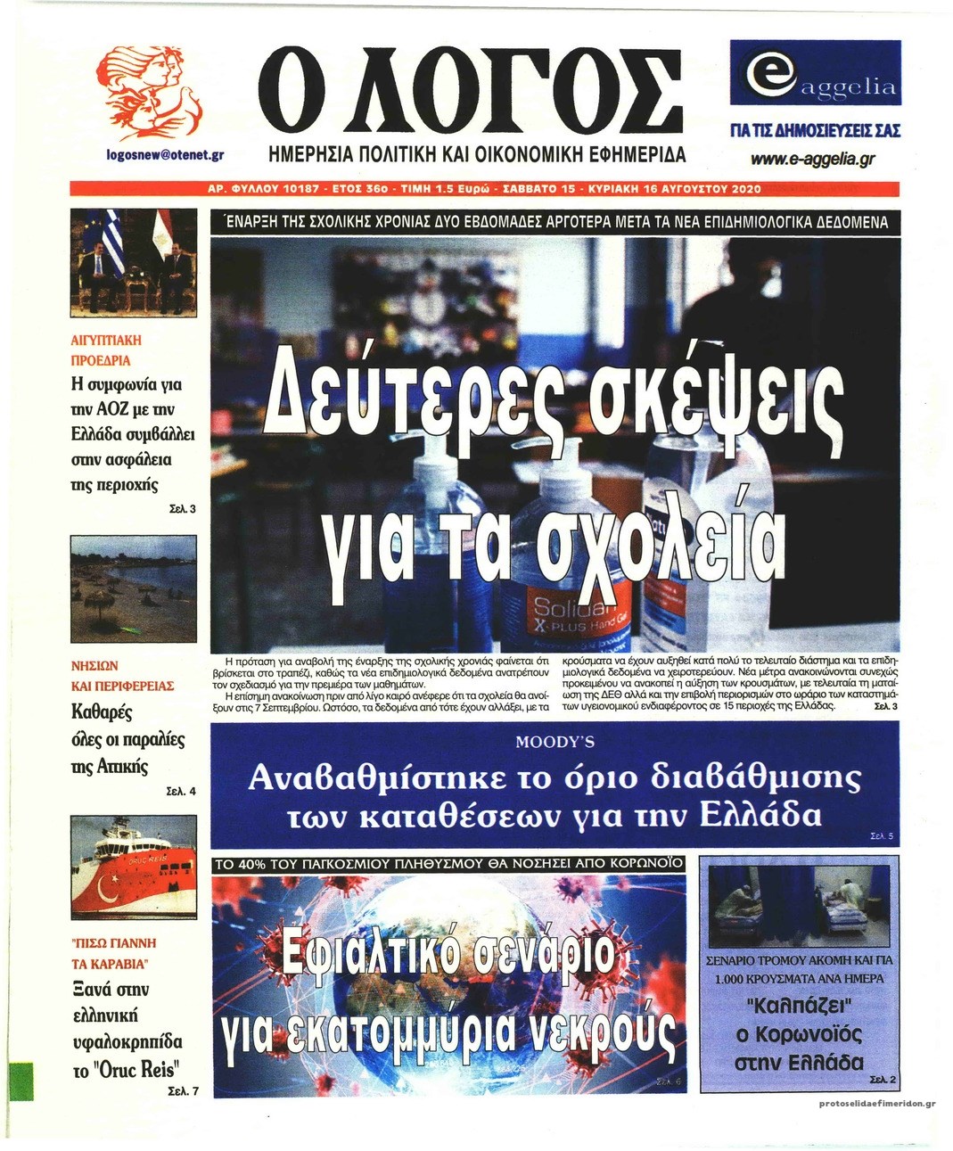 Οι πολιτικές εφημερίδες 15/8/2020 Σήφης Γαρυφαλάκης 07:13, Σάββατο 15 Αυγούστου 2020 Media Διαβάστε τα πρωτοσέλιδα των πολιτικών εφημερίδων… ΕΦΗΜΕΡΙΔΕΣ ΠΟΛΙΤΙΚΕΣ ΕΦΗΜΕΡΙΔΕΣ ΠΡΩΤΟΣΕΛΙΔΑ ΠΡΩΤΟΣΕΛΙΔΑ ΕΦΗΜΕΡΙΔΩΝ Μοιράσου το: σχολίασε κι εσύ (0 σχόλια) Ακολουθήστε το enikos.gr στο Google News και μάθετε πρώτοι όλες τις ειδήσεις Δείτε όλες τις τελευταίες ειδήσεις από την Ελλάδα και τον Κόσμο στο enikos.gr Ειδήσεις Ροή Ειδήσεων 29 λεπτά πριν Ευρωπαϊκή Ένωση: Συμφωνία για δάνειο 90 δισ. ευρώ στην Ουκρανία τη διετία 2026-2027 5 ώρες πριν ΟΠΕΚΕΠΕ: Προφυλακιστέος ο φερόμενος αρχηγός και ο λογιστής της εγκληματικής οργάνωσης 6 ώρες πριν Αυξάνουν την πίεση προς την κυβέρνηση οι αγρότες: Κλείνουν παρακαμπτήριους και ανοίγουν διόδια – Τι θα γίνει τις γιορτές 6 ώρες πριν Φοινικούντα: Το Σάββατο απολογείται ο 30χρονος γιος γνωστού επιχειρηματία της Πλάκας που παραδόθηκε – Όσα είπε στους αστυνομικούς και ο ρόλος του στο έγκλημα 5 ώρες πριν ΑΕΚ – Κραϊόβα 3-2: Επική ανατροπή και πρόκριση στους «16» του Conference League η Ένωση 6 ώρες πριν Αρχαιολόγοι ανακάλυψαν ρωμαϊκά τεχνουργήματα από μια πόλη που δεν υπήρξε ποτέ – Τα τρία εντυπωσιακά κτίρια και ο αμφορέας με τις… σαρδέλες 7 ώρες πριν Ύπνος: Η απλή βραδινή ρουτίνα για να προστατεύσετε τα μαλλιά σας από το κρύο κατά τη διάρκεια του χειμώνα 8 ώρες πριν Manifesting: Πώς να συναντήσετε τον σύντροφο της ζωής σας, ανάλογα με τον μήνα γέννησής σας 2 ημέρες πριν 20 χρόνια τα Χριστούγεννα ξεκινούν στα Public με μεγάλη ποικιλία σε δώρα! 17 λεπτά πριν Γουατεμάλα: Εξαρθρώθηκε κύκλωμα διακίνησης μεταναστών προς τις ΗΠΑ – Συνελήφθησαν 14 άτομα 22 λεπτά πριν Βουλγαρία: Χιλιάδες πολίτες στους δρόμους κατά της απερχόμενης κυβέρνησης και της διαφθοράς 29 λεπτά πριν Ευρωπαϊκή Ένωση: Συμφωνία για δάνειο 90 δισ. ευρώ στην Ουκρανία τη διετία 2026-2027 53 λεπτά πριν Αιματηρή βομβιστική επίθεση στην Υεμένη: Τουλάχιστον τρεις νεκροί και 13 τραυματίες 56 λεπτά πριν Στη Φλόριντα σήμερα οι διαβουλεύσεις σχετικά με τα επόμενα στάδια για τη Λωρίδα της Γάζας ENIKOS NETWORK Σε περίοδο αυξημένης δραστηριότητας η γρίπη στην Ελλάδα-Μέτρα προστασίας από τον ΕΟΔΥ Σκέφτεστε συνέχεια συζητήσεις που έχετε κάνει; Τι σημαίνει αυτό, σύμφωνα με ειδικό Στεγαστικό: Τι λέει η ΠΟΜΙΔΑ για τα νέα μέτρα που ανακοίνωσε ο Κυριάκος Μητσοτάκης Λαγκάρντ: Αισιόδοξη για την ανάπτυξη της Ευρωζώνης, αβέβαιη για τον πληθωρισμό Χαρτογραφώντας το «σημείο χωρίς επιστροφή»: Για πρώτη φορά αποκαλύπτεται με λεπτομέρεια το ακανθώδες όριο της ατμόσφαιρας τ... Η Google καταργεί τη λειτουργία «dark web report» – Πώς θα μπορούν οι χρήστες να διαγράφουν τα δεδομένα τους περισσότερα 02:50 , Παρασκευή 19 Δεκεμβρίου 2025 GNTM: «Κλείδωσαν» οι τέσσερις φιναλίστ – Μεγάλη ανατροπή στις τελευταίες αποχωρήσεις Για προτελευταία φορά εμφανίστηκαν στο πλατό του GNTM οι φιναλίστ του φετινού κύκλου, το βράδυ... 17:45 , Πέμπτη 18 Δεκεμβρίου 2025 ROUK ZOUK: Εορταστικό επεισόδιο με καλεσμένους τους πρωταγωνιστές του «Γιατί ρε πατέρα» Το Σάββατο 20 Δεκεμβρίου στις 21:00, η Ζέτα Μακρυπούλια υποδέχεται εκλεκτούς ηθοποιούς που όλο... 17:20 , Πέμπτη 18 Δεκεμβρίου 2025 Άγιος έρωτας: Η Χριστίνα εξομολογείται στον πατέρα Νικόλαο, απόψε στις 21:00 στον Alpha Η Νότα αποφασίζει να εκδικηθεί τον Πέτρο και τον Στέφανο, για χάρη του Λούη, όμως τα πράγματα ... 16:50 , Πέμπτη 18 Δεκεμβρίου 2025 Να μ’ αγαπάς: Ζωή και Φωτεινή συμφιλιώνονται ως μάνα με κόρη, απόψε στις 20:00 Η ταυτότητα του Άγγελου αποκαλύπτεται στο νέο επεισ