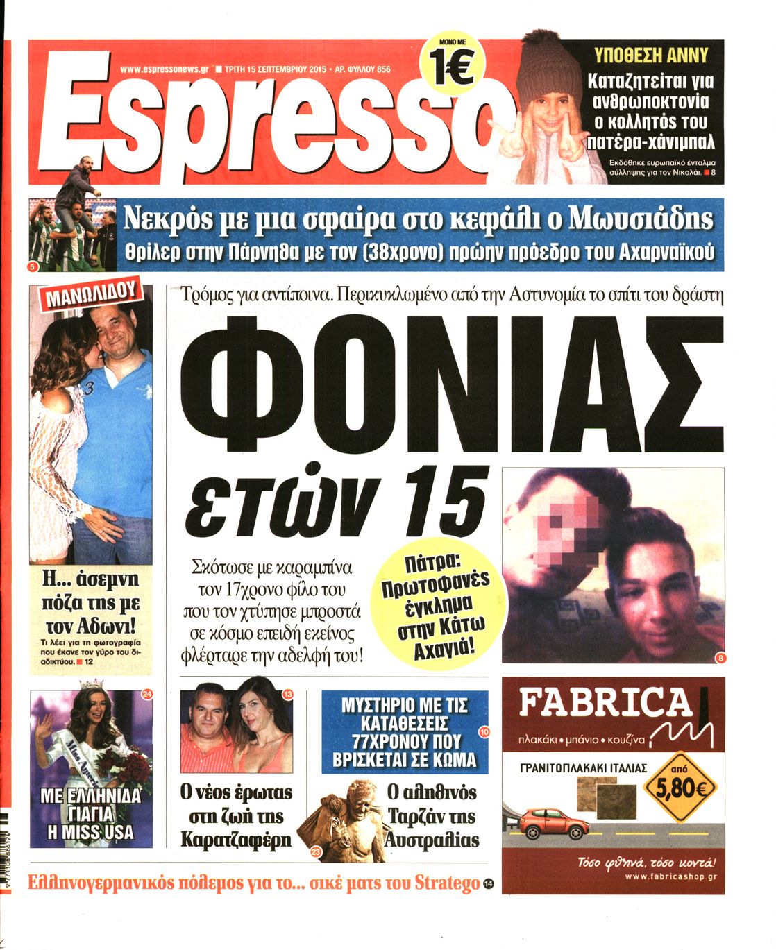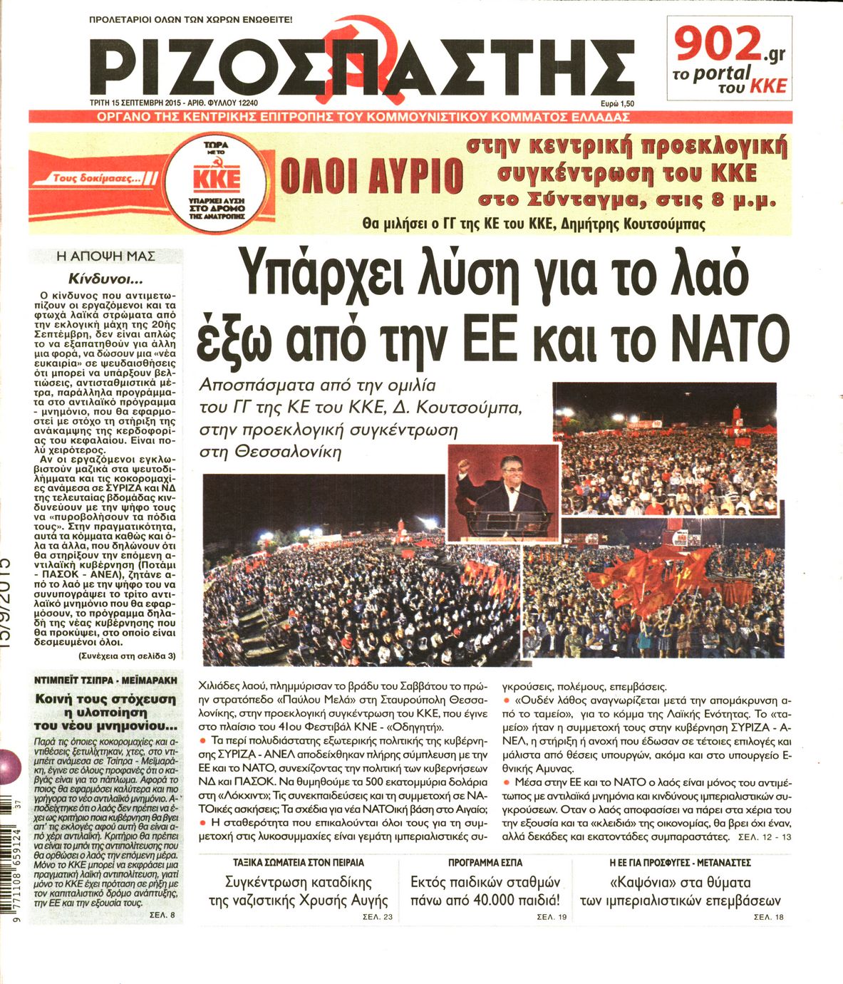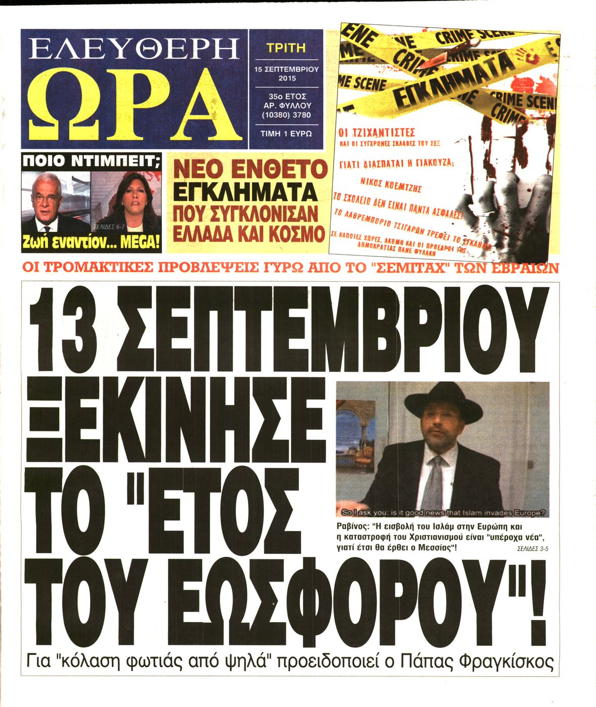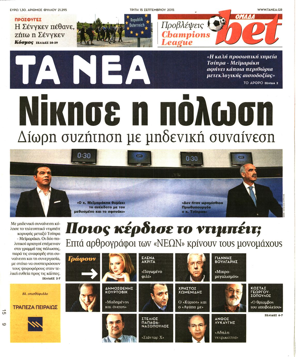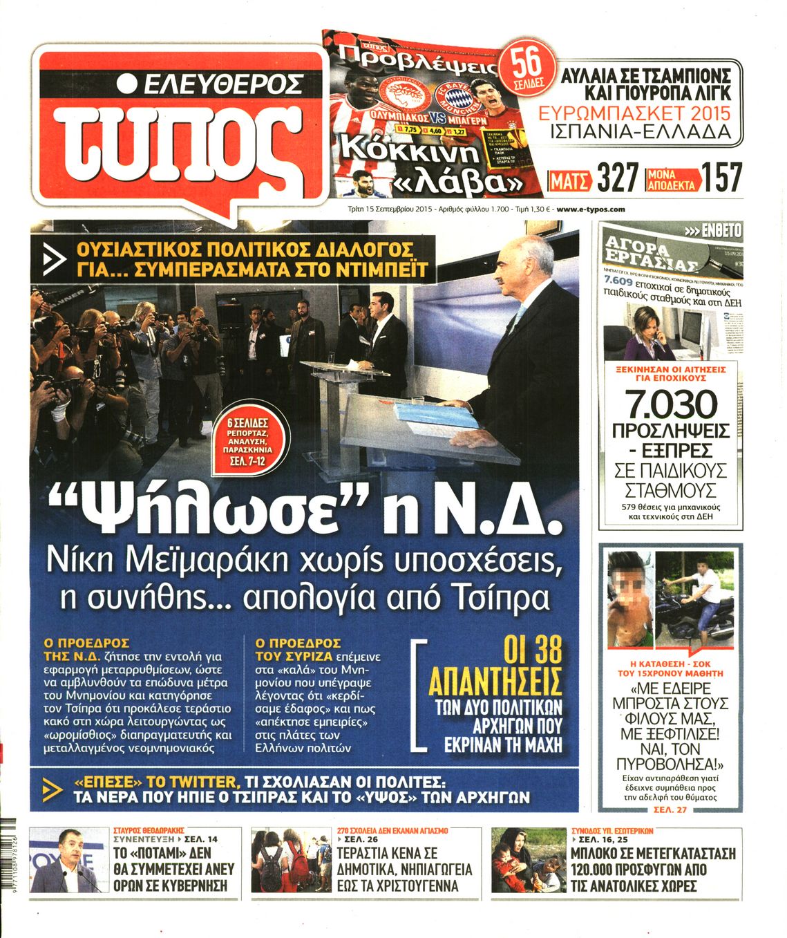Oι πολιτικές εφημερίδες 15/9/2015 Enikos Newsroom 07:20, Τρίτη 15 Σεπτεμβρίου 2015 Media Διαβάστε τα σημερινά πρωτοσέλιδα των πολιτικών εφημερίδων: ΠΟΛΙΤΙΚΕΣ ΕΦΗΜΕΡΙΔΕΣ ΠΡΩΤΟΣΕΛΙΔΑ Μοιράσου το: σχολίασε κι εσύ (0 σχόλια) Ακολουθήστε το enikos.gr στο Google News και μάθετε πρώτοι όλες τις ειδήσεις Δείτε όλες τις τελευταίες ειδήσεις από την Ελλάδα και τον Κόσμο στο enikos.gr Ειδήσεις Ροή Ειδήσεων 2 ώρες πριν Χριστούγεννα στα μπλόκα: Επιμένουν στις κινητοποιήσεις τους οι αγρότες – Ανοίγουν τα διόδια το Σαββατοκύριακο 3 ώρες πριν Ουκρανία: Η άνευ προηγουμένου επίθεση σε ρωσικό τάνκερ στη Μεσόγειο και το μήνυμα προς στον Πούτιν – Το «μακρύ χέρι» του Κιέβου 2 ώρες πριν Πούτιν: Τα μηνύματα σε Ευρώπη και ΝΑΤΟ από το μαραθώνιο «σόου» του – Η απαίτηση για «σεβασμό» και η ειρήνη «με τους όρους» της Μόσχας 3 ώρες πριν Τραμπ: Δεν αποκλείει την πιθανότητα ενός πολέμου στη Βενεζουέλα – «Ο Μαδούρο ξέρει καλύτερα από τον καθένα τι ακριβώς θέλω» 3 ώρες πριν Συνεχίζει να προκαλεί ο Μίτσκοσκι: «Για μένα το όνομα Μακεδονία είναι ιερό» 2 ώρες πριν Ανακαλύφθηκαν αρχαία χρυσά νομίσματα 2.200 ετών που απεικονίζουν τον θεό Απόλλωνα – Η άγνωστη σύνδεση με τον Φίλιππο Β΄ της Μακεδονίας 3 ώρες πριν Ύπνος: Μια κρυφή κατάσταση του εγκεφάλου πριν από τον ύπνο μπορεί να είναι το “κλειδί” για υψηλή ευφυΐα και δημιουργικότητα 4 ώρες πριν Αριθμολογία: Οι άνθρωποι που έχουν γεννηθεί αυτές τις 4 ημερομηνίες, συχνά παρεξηγούνται – «Η καλοσύνη τους κρύβει τεράστια δύναμη» 5 ώρες πριν Ξεχάστε το καθάρισμα το Σαββατοκύριακο: Ο «κανόνας των 20 λεπτών» που θα σας λύσει τα χέρια 4 λεπτά πριν Μπαρτσελόνα – Μπασκόνια 134-124: Οι «μπλαουγκράνα» πήραν το ματς της χρονιάς ύστερα από τρεις παρατάσεις 19 λεπτά πριν Φαίη Σκορδά: «Παλιότερα τα κομπλιμέντα τα προσπερνούσα, τώρα τα έχω ανάγκη» 35 λεπτά πριν Βασίλης Σπανούλης: Δεν εμφανίστηκε ούτε ένας δημοσιογράφος στην συνέντευξη Τύπου – «Καλησπέρα στον… κανέναν», δείτε βίντεο 46 λεπτά πριν Πόλεμος στην Ουκρανία: Εφτά νεκροί από ρωσική πυραυλική επίθεση στο λιμάνι της Οδησσού 50 λεπτά πριν ΗΠΑ: Η κυβέρνηση του Ντόναλντ Τραμπ άρχισε να δημοσιοποιεί τα αρχεία Έπσταϊν ENIKOS NETWORK Το ΕΚΑΒ τιμήθηκε από την Ακαδημία Αθηνών για τα 40 χρόνια προσφοράς του Έχετε πραγματικά μεγάλη καρδιά; 10 χαρακτηριστικά όσων έχουν καλοσύνη Αναστολή μέτρων αναγκαστικής εκτέλεσης για κτηνοτρόφους που πλήττονται από την ευλογιά των αιγοπροβάτων Πλήρης επάρκεια προϊόντων στις λαϊκές της Αττικής, παρά τις αγροτικές κινητοποιήσεις – Τι απαντούν οι πωλητές Χαρτογραφώντας το «σημείο χωρίς επιστροφή»: Για πρώτη φορά αποκαλύπτεται με λεπτομέρεια το ακανθώδες όριο της ατμόσφαιρας τ... Η Google καταργεί τη λειτουργία «dark web report» – Πώς θα μπορούν οι χρήστες να διαγράφουν τα δεδομένα τους περισσότερα 22:42 , Παρασκευή 19 Δεκεμβρίου 2025 Γιώργος Γιαννόπουλος για “Το σόι σου”: “Είναι ευτυχία και ευλογία αυτή η σειρά” «Είναι ευτυχία και ευλογία η συγκυρία αυτής της σειράς», θα πει ο Γιώργος Γιαννόπουλος -ο αγαπ... 20:37 , Παρασκευή 19 Δεκεμβρίου 2025 Don’t Forget The Lyrics: Η Έλλη Κοκκίνου υποδέχεται 4 παίκτες που θα κάνουν τα πάντα για να μη χάσουν ούτε… μισή λέξη από τους στίχους Το «Don’t Forget The Lyrics» επιστρέφει απόψε, Παρασκευή 19 Δεκεμβρίου, στις 21:00 με νέο επει... 19:31 , Παρασκευή 19 Δεκεμβρίου 2025 GNTM: Απόψε ο μεγάλος τελικός για τους 4 φιναλίστ Έπειτα από μήνες γεμάτους μόδα, δημιουργία και έντονες αναμετρήσεις, το GNTM 2025 κορυφώνεται,... 18:11 , Παρασκ