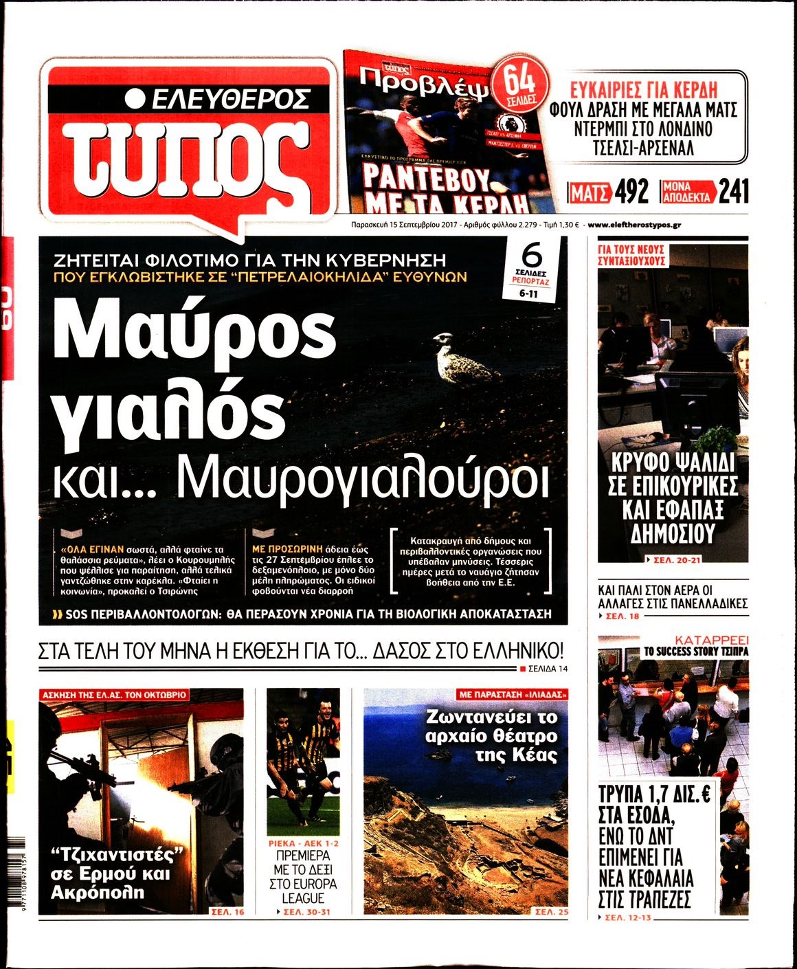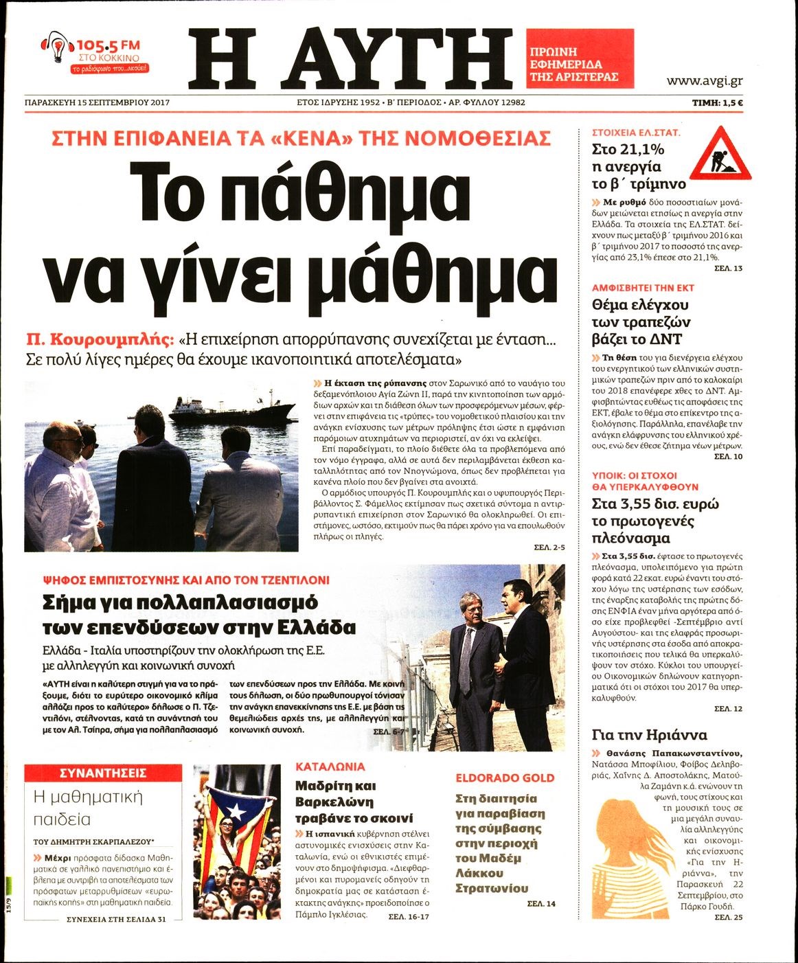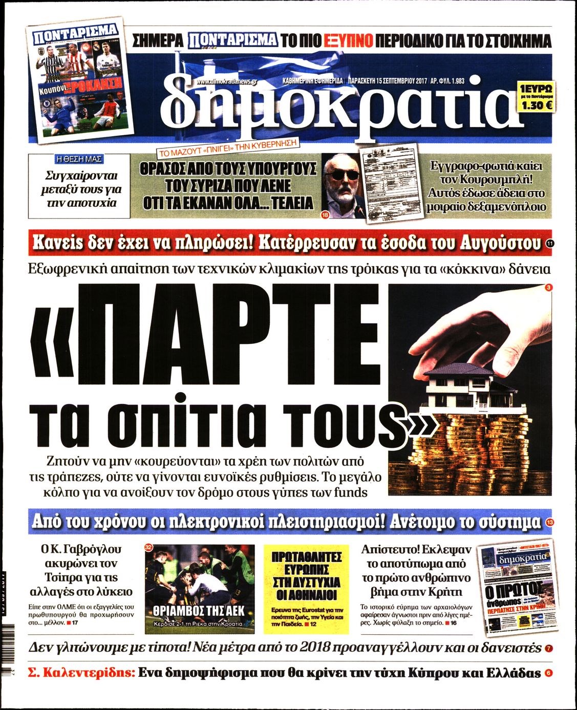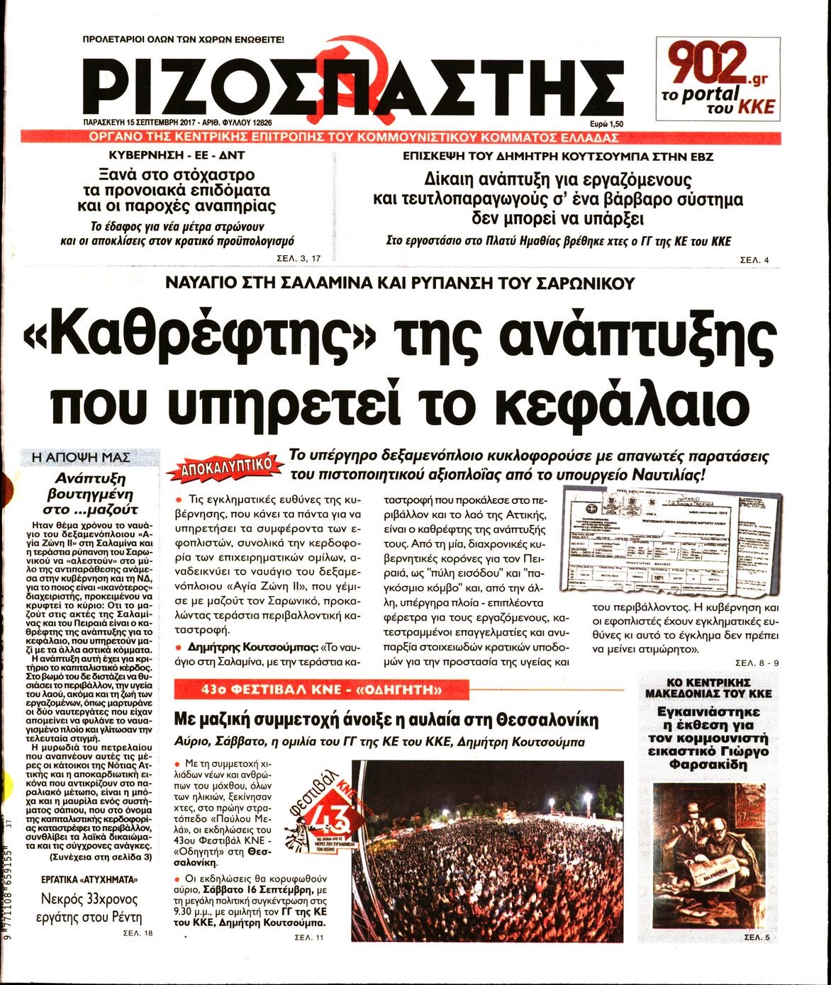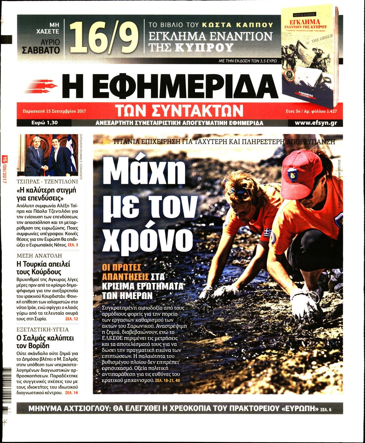 Οι πολιτικές εφημερίδες 15/9/2017 Enikos Newsroom 07:37, Παρασκευή 15 Σεπτεμβρίου 2017 Media Διαβάστε τα σημερινά πρωτοσέλιδα των πολιτικών εφημερίδων: ΠΟΛΙΤΙΚΕΣ ΕΦΗΜΕΡΙΔΕΣ ΠΡΩΤΟΣΕΛΙΔΑ Μοιράσου το: σχολίασε κι εσύ (0 σχόλια) Ακολουθήστε το enikos.gr στο Google News και μάθετε πρώτοι όλες τις ειδήσεις Δείτε όλες τις τελευταίες ειδήσεις από την Ελλάδα και τον Κόσμο στο enikos.gr Ειδήσεις Ροή Ειδήσεων 23 λεπτά πριν Τραμπ: Δεν αποκλείει την πιθανότητα ενός πολέμου στη Βενεζουέλα – «Ο Μαδούρο ξέρει καλύτερα από τον καθένα τι ακριβώς θέλω» 17 λεπτά πριν Ουκρανία: Η άνευ προηγουμένου επίθεση σε ρωσικό τάνκερ στη Μεσόγειο και το μήνυμα προς στον Πούτιν – Το «μακρύ χέρι» του Κιέβου 3 ώρες πριν Εμπλοκή και αερομαχίες με οπλισμένα τουρκικά F-16 στο Αιγαίο 3 ώρες πριν Πούτιν: «Ναι, είμαι ερωτευμένος» – Βίντεο από τη σπάνια προσωπική παραδοχή του 1 ώρα πριν Ανδρέας Λυκουρέντζος: Υπέβαλε την παραίτησή του ο πρόεδρος του ΕΛΓΑ, αλλά δεν έγινε δεκτή – Όλο το παρασκήνιο 2 ώρες πριν Αριθμολογία: Οι άνθρωποι που έχουν γεννηθεί αυτές τις 4 ημερομηνίες, συχνά παρεξηγούνται – «Η καλοσύνη τους κρύβει τεράστια δύναμη» 4 ώρες πριν Μήπως έχετε χάσει τον εαυτό σας στη σχέση σας; 7 «αθόρυβες» υποχωρήσεις που μάλλον κάνατε, χωρίς να το συνειδητοποιήσετε 3 ώρες πριν Ξεχάστε το καθάρισμα το Σαββατοκύριακο: Ο «κανόνας των 20 λεπτών» που θα σας λύσει τα χέρια 32 λεπτά πριν Ύπνος: Μια κρυφή κατάσταση του εγκεφάλου πριν από τον ύπνο μπορεί να είναι το “κλειδί” για υψηλή ευφυΐα και δημιουργικότητα 6 λεπτά πριν Χάρι και Μέγκαν: Η σπάνια οικογενειακή φωτογραφία με τον Άρτσι και τη Λίλιμπετ – Τι σχεδιάζουν για τα Χριστούγεννα 13 λεπτά πριν Βασίλης Καρράς: «Είναι πάντα δίπλα μου, δεν έφυγε…», λέει ο αδελφός του 17 λεπτά πριν Ουκρανία: Η άνευ προηγουμένου επίθεση σε ρωσικό τάνκερ στη Μεσόγειο και το μήνυμα προς στον Πούτιν – Το «μακρύ χέρι» του Κιέβου 23 λεπτά πριν Τραμπ: Δεν αποκλείει την πιθανότητα ενός πολέμου στη Βενεζουέλα – «Ο Μαδούρο ξέρει καλύτερα από τον καθένα τι ακριβώς θέλω» 24 λεπτά πριν Κηφισιά: Με πολλές απουσίες κόντρα στον Ολυμπιακό – «Last dance» για τον Τεττέη ENIKOS NETWORK Το ΕΚΑΒ τιμήθηκε από την Ακαδημία Αθηνών για τα 40 χρόνια προσφοράς του Έχετε πραγματικά μεγάλη καρδιά; 10 χαρακτηριστικά όσων έχουν καλοσύνη ΑΑΔΕ: Νέες αναβαθμίσεις στο Ψηφιακό Πελατολόγιο και την εφαρμογή myDATAapp – Τι πρέπει να γνωρίζετε Όμιλος ΔΕΗ: Νέα ορόσημα και ενισχυμένη διαφάνεια στην ετήσια Έκθεση Βιώσιμης Ανάπτυξης Χαρτογραφώντας το «σημείο χωρίς επιστροφή»: Για πρώτη φορά αποκαλύπτεται με λεπτομέρεια το ακανθώδες όριο της ατμόσφαιρας τ... Η Google καταργεί τη λειτουργία «dark web report» – Πώς θα μπορούν οι χρήστες να διαγράφουν τα δεδομένα τους περισσότερα 20:37 , Παρασκευή 19 Δεκεμβρίου 2025 Don’t Forget The Lyrics: Η Έλλη Κοκκίνου υποδέχεται 4 παίκτες που θα κάνουν τα πάντα για να μη χάσουν ούτε… μισή λέξη από τους στίχους Το «Don’t Forget The Lyrics» επιστρέφει απόψε, Παρασκευή 19 Δεκεμβρίου, στις 21:00 με νέο επει... 19:31 , Παρασκευή 19 Δεκεμβρίου 2025 GNTM: Απόψε ο μεγάλος τελικός για τους 4 φιναλίστ Έπειτα από μήνες γεμάτους μόδα, δημιουργία και έντονες αναμετρήσεις, το GNTM 2025 κορυφώνεται,... 18:11 , Παρασκευή 19 Δεκεμβρίου 2025 Το σόι σου: Ο Άρης έρχεται στην Ελλάδα για τις γιορτές των Χριστουγέννων – Τι θα δούμε στο αποψινό εορταστικό επεισόδιο Ένα απολαυστικό, εορταστικό επεισόδιο της σειράς “Το σόι σου”, γεμάτο ευτράπελα αλ... 15:15 , Παρασκευή 19 Δεκεμβρίου 2025 Την Κυριακή με τη R