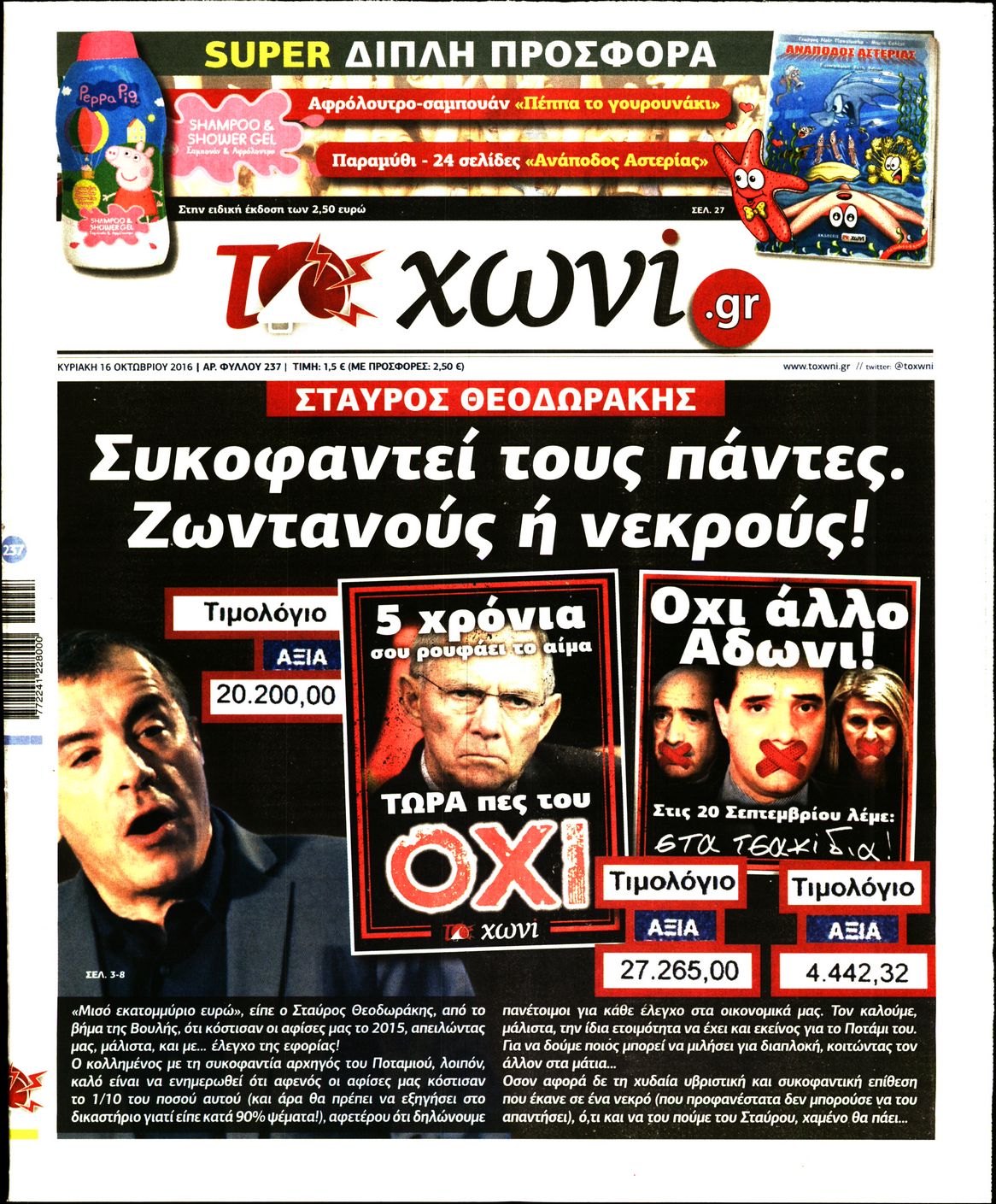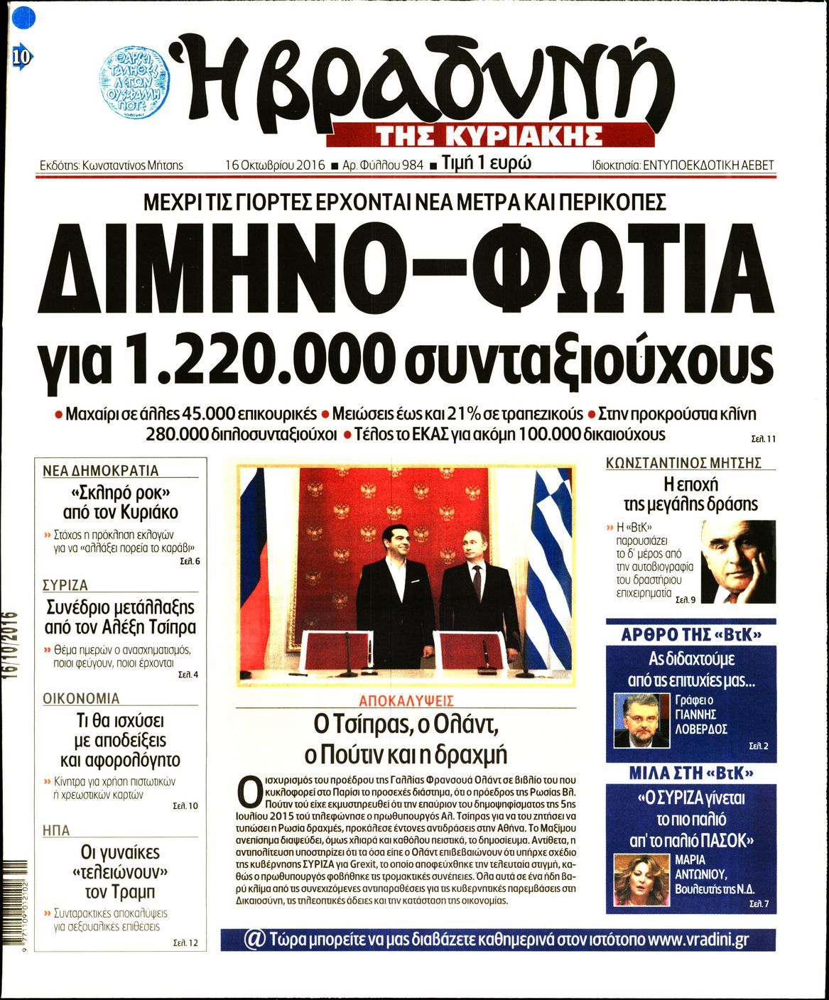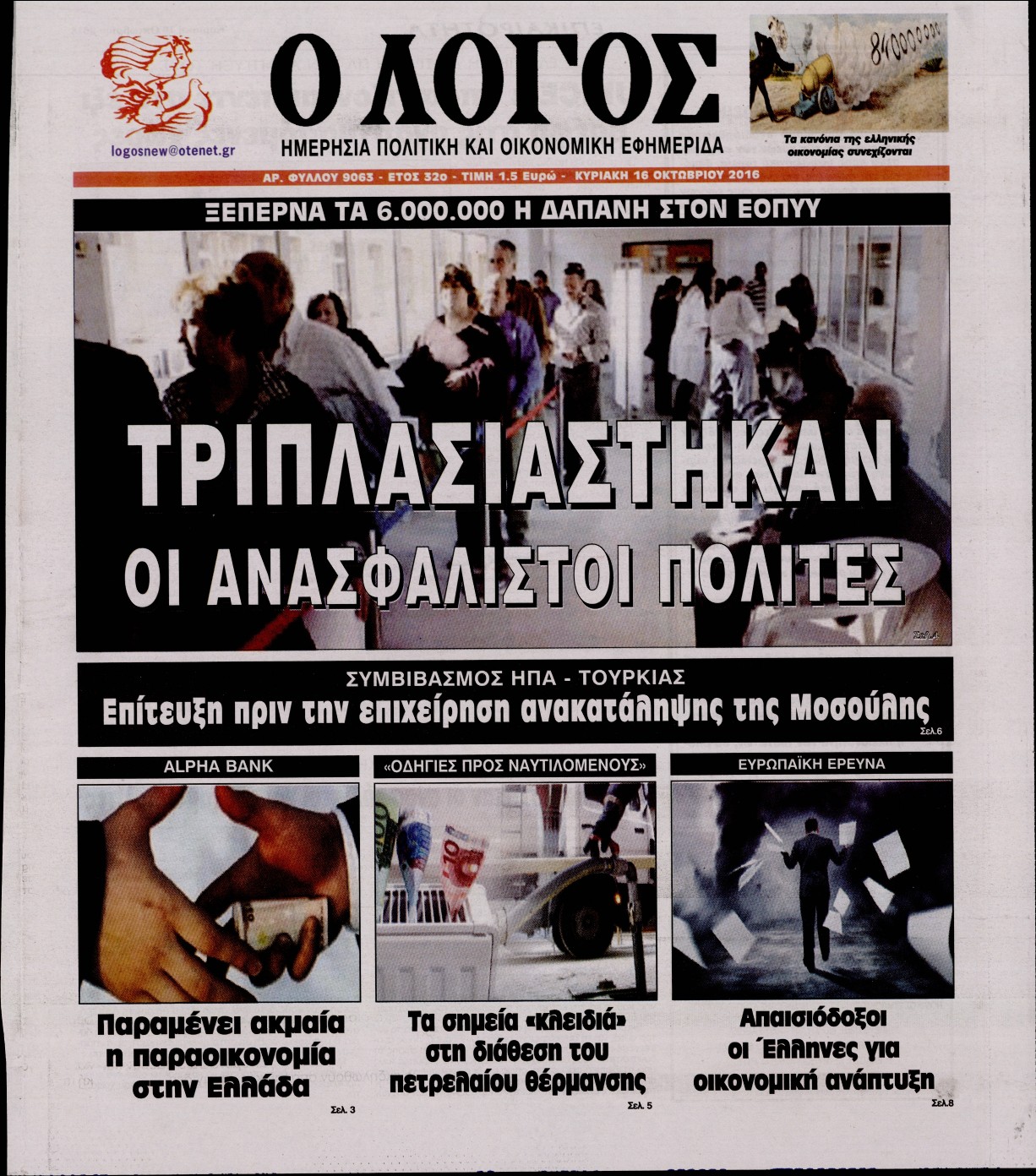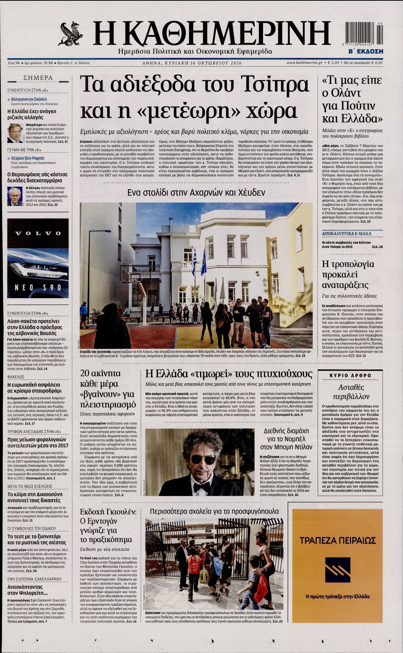 Οι πολιτικές εφημερίδες 16/10/2016 Enikos Newsroom 04:32, Κυριακή 16 Οκτωβρίου 2016 Media Διαβάστε τα σημερινά πρωτοσέλιδα των πολιτικών εφημερίδων: ΠΟΛΙΤΙΚΕΣ ΕΦΗΜΕΡΙΔΕΣ ΠΡΩΤΟΣΕΛΙΔΑ Μοιράσου το: σχολίασε κι εσύ (0 σχόλια) Ακολουθήστε το enikos.gr στο Google News και μάθετε πρώτοι όλες τις ειδήσεις Δείτε όλες τις τελευταίες ειδήσεις από την Ελλάδα και τον Κόσμο στο enikos.gr Ειδήσεις Ροή Ειδήσεων 1 ώρα πριν Ζελένσκι: Μόνο οι ΗΠΑ και ο Τραμπ μπορούν να πιέσουν τη Ρωσία να βάλει τέλος στον πόλεμο 1 ώρα πριν Φοινικούντα: Προφυλακιστέος ο 30χρονος για συνέργεια στη διπλή δολοφονία – Και άλλα πρόσωπα στο «μικροσκόπιο» 3 ώρες πριν Κυριάκος Μητσοτάκης: Στην Ιερουσαλήμ την Τρίτη ο Πρωθυπουργός για την τριμερή Ελλάδας, Κύπρου, Ισραήλ – Θα συναντηθεί και με τον Αμπάς 5 ώρες πριν Πώς δρούσε το κύκλωμα που διακινούσε ναρκωτικά σε σχολεία – Υπέβαλαν σε βασανιστήρια όσους δεν τηρούσαν τους «κανόνες πειθαρχίας» 2 ώρες πριν Πάπας Λέων: Όταν έχει αϋπνίες επενδύει παραγωγικά τον χρόνο του – Ποιο παιχνίδι παίζει στο κινητό 1 ώρα πριν Αριθμολογία: Ο αριθμός του φύλακα αγγέλου σας, με βάση τον μήνα γέννησής σας – «Έτσι σας στέλνει σημάδια το σύμπαν» 2 ώρες πριν Πώς να απαλλαγείτε από τη μυρωδιά του τηγανητού φαγητού: Το μυστικό βρίσκεται στην κουζίνα σας 3 ώρες πριν Μήπως οι γιορτές σας δεν είναι τόσο τέλειες; 7 χριστουγεννιάτικες συνήθειες που μαρτυρούν ότι μια οικογένεια είναι δυσλειτουργική 13 ώρες πριν Enerwave: Το νέο «ρεύμα» στη λιανική ενέργειας που αλλάζει την εμπειρία του καταναλωτή 5 λεπτά πριν Ξένια Τσίρκοβα: Έμαθε από την τηλεόραση ότι είναι η μεγάλη νικήτρια του GNTM – Η αντίδρασή της – ΒΙΝΤΕΟ 13 λεπτά πριν Ύπνος: Η διατροφή που μπορεί να σας βοηθήσει να κοιμάστε καλύτερα και να ζήσετε περισσότερο 25 λεπτά πριν Ιταλία: Επεισόδια και τραυματίες σε διαδήλωση μελών ακροαριστερού “κοινωνικού κέντρου ” στο Τορίνο 37 λεπτά πριν Γαλλία: Αστυνομικοί πυροβόλησαν και σκότωσαν έναν 26χρονο που απειλούσε περαστικούς με μαχαίρι – BINTEO 46 λεπτά πριν Εβελίνα Παπούλια για «Δύο Ξένους»: «Είχα κατάθλιψη τότε, συνδυάστηκε στο μυαλό μου με κάτι πάρα πολύ άσχημο» ENIKOS NETWORK Οι γυναίκες αποκαλύπτουν το πιο ελκυστικό πράγμα που μπορεί να κάνει ένας άνδρας Ομορφιά και αντιγήρανση: Ειδικοί μιλούν για συσκευές περιποίησης του δέρματος Ρεύμα: Πώς μπορείτε να αλλάξετε πάροχο γρήγορα και εύκολα – Τα βήματα της διαδικασίας Εφορία: 7 αλλαγές σε δηλώσεις και ελέγχους ακινήτων – Όλα όσα πρέπει να γνωρίζετε Χαρτογραφώντας το «σημείο χωρίς επιστροφή»: Για πρώτη φορά αποκαλύπτεται με λεπτομέρεια το ακανθώδες όριο της ατμόσφαιρας τ... Η Google καταργεί τη λειτουργία «dark web report» – Πώς θα μπορούν οι χρήστες να διαγράφουν τα δεδομένα τους περισσότερα 20:30 , Σάββατο 20 Δεκεμβρίου 2025 Αυτή την Κυριακή με τη Realnews: Instyle, μαζί Drive και Realnews Geopolitics Αυτή την Κυριακή με τη Realnews: Instyle, μαζί Drive και Realnews Geopolitics Instyle Η Άννα Ρ... 20:28 , Σάββατο 20 Δεκεμβρίου 2025 Ο ΑΝΤ1 γεμίζει τις γιορτές με μουσική – Ποιους καλλιτέχνες θα απολαύσουμε Φέτος στον ΑΝΤ1 γιορτάζουμε τις νύχτες μας παρέα με αγαπημένους καλλιτέχνες και μεγάλες μουσι... 18:19 , Σάββατο 20 Δεκεμβρίου 2025 HOTΕΛ ΕΛVIRA: Η Ελβίρα μαθαίνει πως ο Χάρι μένει κρυφά στο ξενοδοχείο του Παντελή Συνεχίζονται οι εκλογές για πρόεδρο, στο νέο επεισόδιο της κωμικής σειράς του MEGA, HOTΕΛ ΕΛVI... 14:04 , Σάββατο 20 Δεκεμβρίου 2025 Η Realnews αυτής της Κυριακής (21/12/2025) Με τίτλο: «Ασπίδα προστασίας για την Ελλάδα» κυκλοφορεί, αυτήν την Κυριακή