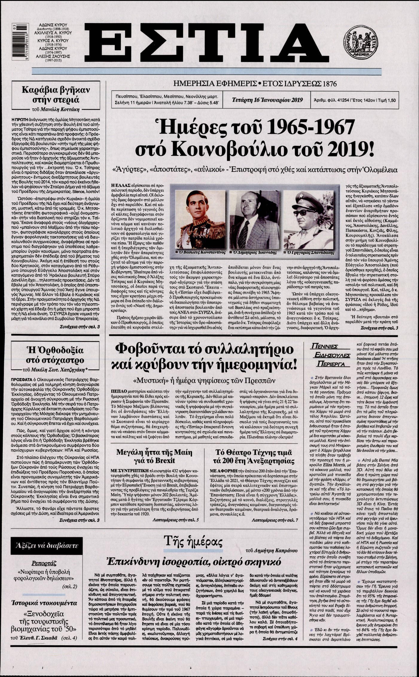 Οι πολιτικές εφημερίδες 16/1/19 Enikos Newsroom 06:37, Τετάρτη 16 Ιανουαρίου 2019 Media Διαβάστε τα πρωτοσέλιδα των πολιτικών εφημερίδων: ΠΟΛΙΤΙΚΕΣ ΕΦΗΜΕΡΙΔΕΣ ΠΡΩΤΟΣΕΛΙΔΑ Μοιράσου το: σχολίασε κι εσύ (0 σχόλια) Ακολουθήστε το enikos.gr στο Google News και μάθετε πρώτοι όλες τις ειδήσεις Δείτε όλες τις τελευταίες ειδήσεις από την Ελλάδα και τον Κόσμο στο enikos.gr Ειδήσεις Ροή Ειδήσεων 2 ώρες πριν Γιορτές με μπλόκα για τους αγρότες: Ανοίγουν διόδια και μοιράζουν προϊόντα στους ταξιδιώτες 2 ώρες πριν Τα αρχεία του Έπσταϊν αποκαλύπτουν φωτογραφία του έκπτωτου πρίγκιπα Άντριου – Είναι ξαπλωμένος στην αγκαλιά 5 γυναικών 1 ώρα πριν Νέες ταυτότητες: Μεγάλη αναμονή για ραντεβού στην Αττική – Τέλος τα ταξίδια εκτός Ελλάδος από τον Αύγουστο για όσους δεν έχουν αλλάξει 2 ώρες πριν Εξαφάνιση 33χρονου γιατρού στην Κρήτη: «Άναψα τα φώτα, τρόμαξε και άρχισε να τρέχει στα χωράφια» – Η τελευταία διαδρομή και η μαρτυρία «κλειδί» 19 λεπτά πριν Ινδία: Επτά ελέφαντες σκοτώθηκαν κατά τη σύγκρουση επιβατικού τρένου με κοπάδι 2 ώρες πριν Μία νέα «χρυσή» περίοδος αρχίζει για 3 ζώδια από σήμερα – «Μία αναπάντεχη ευκαιρία οδηγεί στην επιτυχία» 4 ώρες πριν Αρχαιολόγοι ανακάλυψαν σε χωράφι απεικόνιση 600 ετών ενός Αγίου – Τα στοιχεία που δείχνουν ότι μαρτύρησε 3 ώρες πριν Αγχώνεται για το χριστουγεννιάτικο δώρο που πήρε στην πλούσια σύντροφό του – «Φοβάμαι πως θα το βρει φθηνιάρικο, φοράει βραχιόλια Cartier» 17 λεπτά πριν Διαιτολόγος αποκαλύπτει 9 πρωινές συνήθειες που «λιώνουν» το κοιλιακό λίπος – «Υποστηρίζουν την υγιεινή απώλεια βάρους» 3 λεπτά πριν Εντυπωσιακό βίντεο από «τσουνάμι» πάγου στη Σιβηρία – Πώς προκαλείται το σπάνιο φαινόμενο 12 λεπτά πριν Μυλωνάκης κατά Τζάκρη: Την καλώ να ανασκευάσει το αδιανόητο ψέμα της. Η ανοχή έχει και τα όρια της» 17 λεπτά πριν Διαιτολόγος αποκαλύπτει 9 πρωινές συνήθειες που «λιώνουν» το κοιλιακό λίπος – «Υποστηρίζουν την υγιεινή απώλεια βάρους» 19 λεπτά πριν Ινδία: Επτά ελέφαντες σκοτώθηκαν κατά τη σύγκρουση επιβατικού τρένου με κοπάδι 28 λεπτά πριν Βούλα: Συνελήφθη 24χρονος με 69 κιλά ακατέργαστης κάνναβης – Κυκλοφορούσε με κλεμμένο αυτοκίνητο ENIKOS NETWORK Είστε μόνιμα απρόσεκτοι; 3 σημάδια που δείχνουν ότι μπορεί να είναι σύμπτωμα πάθησης Πόσα κιλά παίρνουμε πραγματικά τα Χριστούγεννα, σύμφωνα με την επιστήμη – Πώς να το αποτρέψουμε; Χριστούγεννα και Πρωτοχρονιά: Πώς αμείβονται όσοι εργαστούν e-ΕΦΚΑ και ΔΥΠΑ: Έρχονται νέες πληρωμές έως τις 24 Δεκεμβρίου – Ποιοι πάνε ταμείο Χαρτογραφώντας το «σημείο χωρίς επιστροφή»: Για πρώτη φορά αποκαλύπτεται με λεπτομέρεια το ακανθώδες όριο της ατμόσφαιρας τ... Η Google καταργεί τη λειτουργία «dark web report» – Πώς θα μπορούν οι χρήστες να διαγράφουν τα δεδομένα τους περισσότερα 11:41 , Σάββατο 20 Δεκεμβρίου 2025 «Η αγάπη δεν χάνεται ποτέ»: Η μικρού μήκους ταινία κινουμένων σχεδίων που θέτει ερωτήματα για τη ζωή και τον θάνατο Ο θάνατος είναι ένα από τα πιο σκληρά θέματα που καλείται να διαχειριστεί κάποιος στη διάρκεια... 09:30 , Σάββατο 20 Δεκεμβρίου 2025 «Porto Leone: Στη γειτονιά με τα κόκκινα φανάρια» – Ο Χρόνης αποκαλύπτει στην Αλεξάνδρα το μυστικό για το παιδί της Λένας Η μεγάλη δραματική σειρά του Apha «Porto Leone: Στη γειτονιά με τα κόκκινα φανάρια» μας μεταφέ... 08:14 , Σάββατο 20 Δεκεμβρίου 2025 Τρομεροί γονείς: Η Μαρία Καβογιάννη εισβάλλει στο σπίτι της οικογένειας Στεφανίδη Όσα θα δούμε στο νέο διπλό επεισόδιο της σειράς «Τρομεροί γονείς», σήμερα Σ