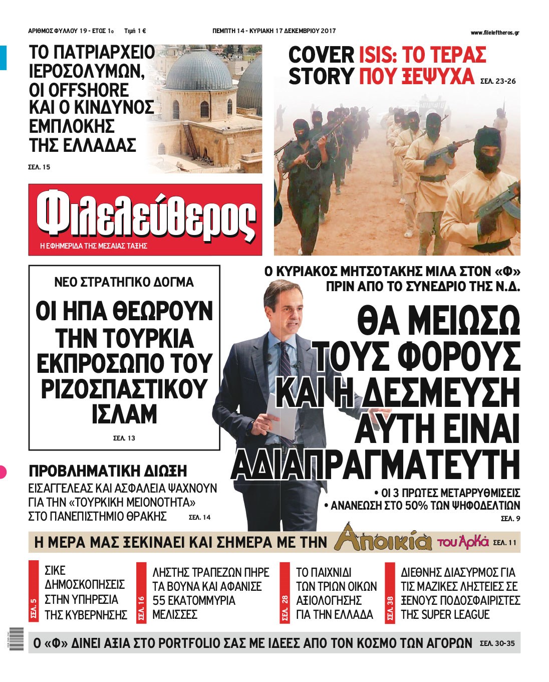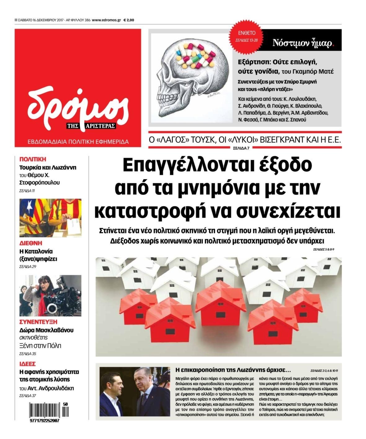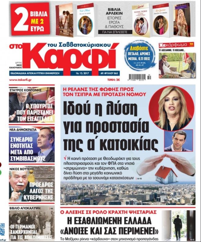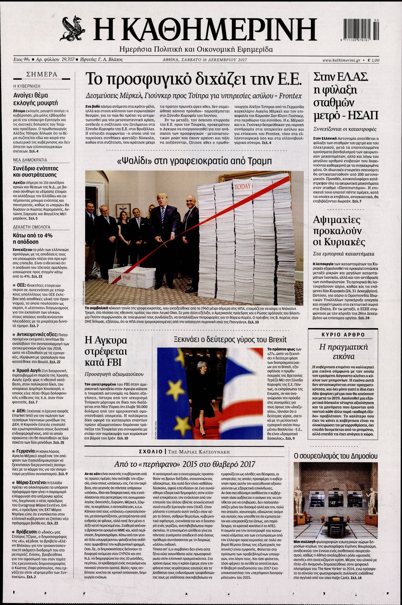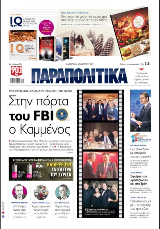 Οι πολιτικές εφημερίδες 16/12/2017 Κώστας Τεό 07:02, Σάββατο 16 Δεκεμβρίου 2017 Media Διαβάστε τα σημερινά πρωτοσέλιδα των πολιτικών εφημερίδων: ΠΟΛΙΤΙΚΕΣ ΕΦΗΜΕΡΙΔΕΣ ΠΡΩΤΟΣΕΛΙΔΑ Μοιράσου το: σχολίασε κι εσύ (0 σχόλια) Ακολουθήστε το enikos.gr στο Google News και μάθετε πρώτοι όλες τις ειδήσεις Δείτε όλες τις τελευταίες ειδήσεις από την Ελλάδα και τον Κόσμο στο enikos.gr Ειδήσεις Ροή Ειδήσεων 5 ώρες πριν Χριστούγεννα στα μπλόκα: Επιμένουν στις κινητοποιήσεις τους οι αγρότες – Ανοίγουν τα διόδια το Σαββατοκύριακο 6 ώρες πριν Ουκρανία: Η άνευ προηγουμένου επίθεση σε ρωσικό τάνκερ στη Μεσόγειο και το μήνυμα προς στον Πούτιν – Το «μακρύ χέρι» του Κιέβου 5 ώρες πριν Πούτιν: Τα μηνύματα σε Ευρώπη και ΝΑΤΟ από το μαραθώνιο «σόου» του – Η απαίτηση για «σεβασμό» και η ειρήνη «με τους όρους» της Μόσχας 6 ώρες πριν Τραμπ: Δεν αποκλείει την πιθανότητα ενός πολέμου στη Βενεζουέλα – «Ο Μαδούρο ξέρει καλύτερα από τον καθένα τι ακριβώς θέλω» 6 ώρες πριν Συνεχίζει να προκαλεί ο Μίτσκοσκι: «Για μένα το όνομα Μακεδονία είναι ιερό» 5 ώρες πριν Ανακαλύφθηκαν αρχαία χρυσά νομίσματα 2.200 ετών που απεικονίζουν τον θεό Απόλλωνα – Η άγνωστη σύνδεση με τον Φίλιππο Β΄ της Μακεδονίας 6 ώρες πριν Ύπνος: Μια κρυφή κατάσταση του εγκεφάλου πριν από τον ύπνο μπορεί να είναι το “κλειδί” για υψηλή ευφυΐα και δημιουργικότητα 7 ώρες πριν Αριθμολογία: Οι άνθρωποι που έχουν γεννηθεί αυτές τις 4 ημερομηνίες, συχνά παρεξηγούνται – «Η καλοσύνη τους κρύβει τεράστια δύναμη» 8 ώρες πριν Ξεχάστε το καθάρισμα το Σαββατοκύριακο: Ο «κανόνας των 20 λεπτών» που θα σας λύσει τα χέρια 3 λεπτά πριν Φως στο Τούνελ: Έφτασε η ώρα της αλήθειας για την δολοφονία της χήρας του πρώην υπουργού στο Κολωνάκι 19 λεπτά πριν Ντόναλντ Τραμπ: Προστέθηκε το όνομά του στην πρόσοψη του Κέντρου Κένεντι – Οργισμένη αντίδραση των συγγενών του JFK 34 λεπτά πριν Ταμίλα Κουλίεβα: «Δεν θέλω να είμαι κάποια που πορεύεται συνεχώς με τις ίδιες αναφορές» 49 λεπτά πριν Η Ελλάδα προσχωρεί στη Διεθνή Επιτροπή Αποζημιώσεων για την Ουκρανία 1 ώρα πριν GNTM: Η Ξένια Τσίρκοβα αναδείχθηκε μεγάλη νικήτρια και πήρε τις 50.000 ευρώ – Ποιος βρέθηκε σε απόσταση αναπνοής; ENIKOS NETWORK Το ΕΚΑΒ τιμήθηκε από την Ακαδημία Αθηνών για τα 40 χρόνια προσφοράς του Έχετε πραγματικά μεγάλη καρδιά; 10 χαρακτηριστικά όσων έχουν καλοσύνη Αναστολή μέτρων αναγκαστικής εκτέλεσης για κτηνοτρόφους που πλήττονται από την ευλογιά των αιγοπροβάτων Πλήρης επάρκεια προϊόντων στις λαϊκές της Αττικής, παρά τις αγροτικές κινητοποιήσεις – Τι απαντούν οι πωλητές Χαρτογραφώντας το «σημείο χωρίς επιστροφή»: Για πρώτη φορά αποκαλύπτεται με λεπτομέρεια το ακανθώδες όριο της ατμόσφαιρας τ... Η Google καταργεί τη λειτουργία «dark web report» – Πώς θα μπορούν οι χρήστες να διαγράφουν τα δεδομένα τους περισσότερα 02:50 , Σάββατο 20 Δεκεμβρίου 2025 GNTM: Η Ξένια Τσίρκοβα αναδείχθηκε μεγάλη νικήτρια και πήρε τις 50.000 ευρώ – Ποιος βρέθηκε σε απόσταση αναπνοής; Με φαντασμαγορικό τρόπο ολοκληρώθηκε το βράδυ της Παρασκευής ο μεγάλος τελικός του GNTM, μέσα ... 22:42 , Παρασκευή 19 Δεκεμβρίου 2025 Γιώργος Γιαννόπουλος για “Το σόι σου”: “Είναι ευτυχία και ευλογία αυτή η σειρά” «Είναι ευτυχία και ευλογία η συγκυρία αυτής της σειράς», θα πει ο Γιώργος Γιαννόπουλος -ο αγαπ... 20:37 , Παρασκευή 19 Δεκεμβρίου 2025 Don’t Forget The Lyrics: Η Έλλη Κοκκίνου υποδέχεται 4 παίκτες που θα κάνουν τα πάντα για να μη χάσουν ούτε… μισή λέξη από τους στίχους Το «Don’t Forget The Ly