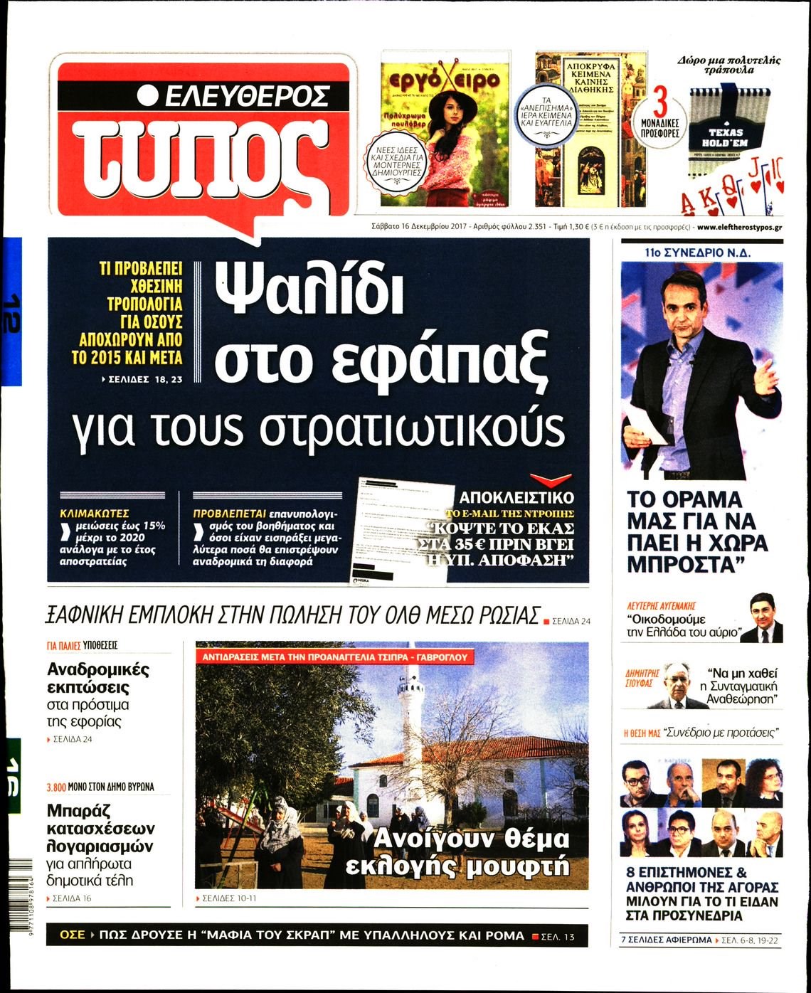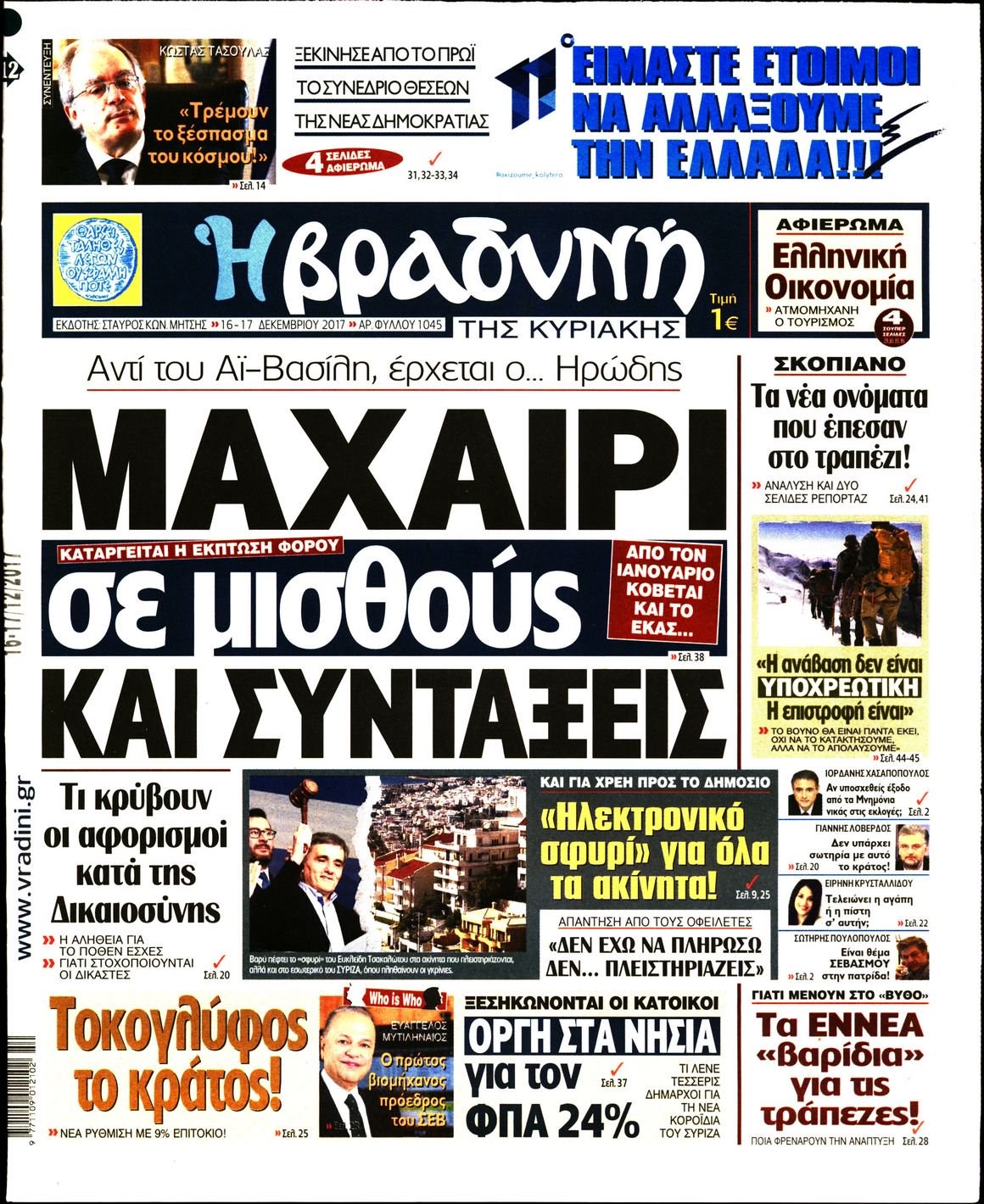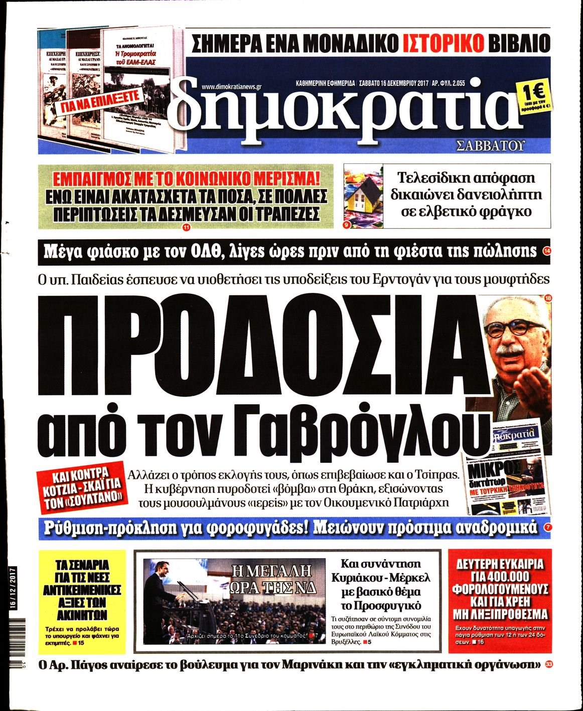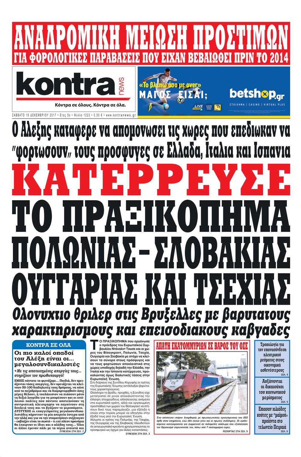 Οι πολιτικές εφημερίδες 16/12/2017 Κώστας Τεό 07:02, Σάββατο 16 Δεκεμβρίου 2017 Media Διαβάστε τα σημερινά πρωτοσέλιδα των πολιτικών εφημερίδων: ΠΟΛΙΤΙΚΕΣ ΕΦΗΜΕΡΙΔΕΣ ΠΡΩΤΟΣΕΛΙΔΑ Μοιράσου το: σχολίασε κι εσύ (0 σχόλια) Ακολουθήστε το enikos.gr στο Google News και μάθετε πρώτοι όλες τις ειδήσεις Δείτε όλες τις τελευταίες ειδήσεις από την Ελλάδα και τον Κόσμο στο enikos.gr Ειδήσεις Ροή Ειδήσεων 5 ώρες πριν Χριστούγεννα στα μπλόκα: Επιμένουν στις κινητοποιήσεις τους οι αγρότες – Ανοίγουν τα διόδια το Σαββατοκύριακο 6 ώρες πριν Ουκρανία: Η άνευ προηγουμένου επίθεση σε ρωσικό τάνκερ στη Μεσόγειο και το μήνυμα προς στον Πούτιν – Το «μακρύ χέρι» του Κιέβου 5 ώρες πριν Πούτιν: Τα μηνύματα σε Ευρώπη και ΝΑΤΟ από το μαραθώνιο «σόου» του – Η απαίτηση για «σεβασμό» και η ειρήνη «με τους όρους» της Μόσχας 6 ώρες πριν Τραμπ: Δεν αποκλείει την πιθανότητα ενός πολέμου στη Βενεζουέλα – «Ο Μαδούρο ξέρει καλύτερα από τον καθένα τι ακριβώς θέλω» 6 ώρες πριν Συνεχίζει να προκαλεί ο Μίτσκοσκι: «Για μένα το όνομα Μακεδονία είναι ιερό» 5 ώρες πριν Ανακαλύφθηκαν αρχαία χρυσά νομίσματα 2.200 ετών που απεικονίζουν τον θεό Απόλλωνα – Η άγνωστη σύνδεση με τον Φίλιππο Β΄ της Μακεδονίας 6 ώρες πριν Ύπνος: Μια κρυφή κατάσταση του εγκεφάλου πριν από τον ύπνο μπορεί να είναι το “κλειδί” για υψηλή ευφυΐα και δημιουργικότητα 7 ώρες πριν Αριθμολογία: Οι άνθρωποι που έχουν γεννηθεί αυτές τις 4 ημερομηνίες, συχνά παρεξηγούνται – «Η καλοσύνη τους κρύβει τεράστια δύναμη» 8 ώρες πριν Ξεχάστε το καθάρισμα το Σαββατοκύριακο: Ο «κανόνας των 20 λεπτών» που θα σας λύσει τα χέρια 3 λεπτά πριν Φως στο Τούνελ: Έφτασε η ώρα της αλήθειας για την δολοφονία της χήρας του πρώην υπουργού στο Κολωνάκι 19 λεπτά πριν Ντόναλντ Τραμπ: Προστέθηκε το όνομά του στην πρόσοψη του Κέντρου Κένεντι – Οργισμένη αντίδραση των συγγενών του JFK 34 λεπτά πριν Ταμίλα Κουλίεβα: «Δεν θέλω να είμαι κάποια που πορεύεται συνεχώς με τις ίδιες αναφορές» 49 λεπτά πριν Η Ελλάδα προσχωρεί στη Διεθνή Επιτροπή Αποζημιώσεων για την Ουκρανία 1 ώρα πριν GNTM: Η Ξένια Τσίρκοβα αναδείχθηκε μεγάλη νικήτρια και πήρε τις 50.000 ευρώ – Ποιος βρέθηκε σε απόσταση αναπνοής; ENIKOS NETWORK Το ΕΚΑΒ τιμήθηκε από την Ακαδημία Αθηνών για τα 40 χρόνια προσφοράς του Έχετε πραγματικά μεγάλη καρδιά; 10 χαρακτηριστικά όσων έχουν καλοσύνη Αναστολή μέτρων αναγκαστικής εκτέλεσης για κτηνοτρόφους που πλήττονται από την ευλογιά των αιγοπροβάτων Πλήρης επάρκεια προϊόντων στις λαϊκές της Αττικής, παρά τις αγροτικές κινητοποιήσεις – Τι απαντούν οι πωλητές Χαρτογραφώντας το «σημείο χωρίς επιστροφή»: Για πρώτη φορά αποκαλύπτεται με λεπτομέρεια το ακανθώδες όριο της ατμόσφαιρας τ... Η Google καταργεί τη λειτουργία «dark web report» – Πώς θα μπορούν οι χρήστες να διαγράφουν τα δεδομένα τους περισσότερα 02:50 , Σάββατο 20 Δεκεμβρίου 2025 GNTM: Η Ξένια Τσίρκοβα αναδείχθηκε μεγάλη νικήτρια και πήρε τις 50.000 ευρώ – Ποιος βρέθηκε σε απόσταση αναπνοής; Με φαντασμαγορικό τρόπο ολοκληρώθηκε το βράδυ της Παρασκευής ο μεγάλος τελικός του GNTM, μέσα ... 22:42 , Παρασκευή 19 Δεκεμβρίου 2025 Γιώργος Γιαννόπουλος για “Το σόι σου”: “Είναι ευτυχία και ευλογία αυτή η σειρά” «Είναι ευτυχία και ευλογία η συγκυρία αυτής της σειράς», θα πει ο Γιώργος Γιαννόπουλος -ο αγαπ... 20:37 , Παρασκευή 19 Δεκεμβρίου 2025 Don’t Forget The Lyrics: Η Έλλη Κοκκίνου υποδέχεται 4 παίκτες που θα κάνουν τα πάντα για να μη χάσουν ούτε… μισή λέξη από τους στίχους Το «Don’t Forget The Ly