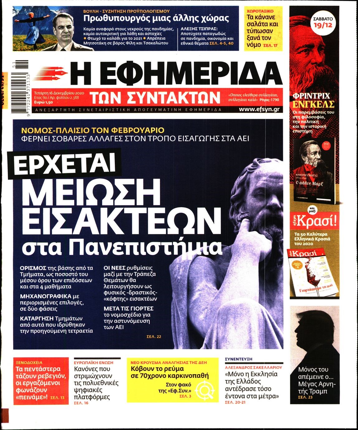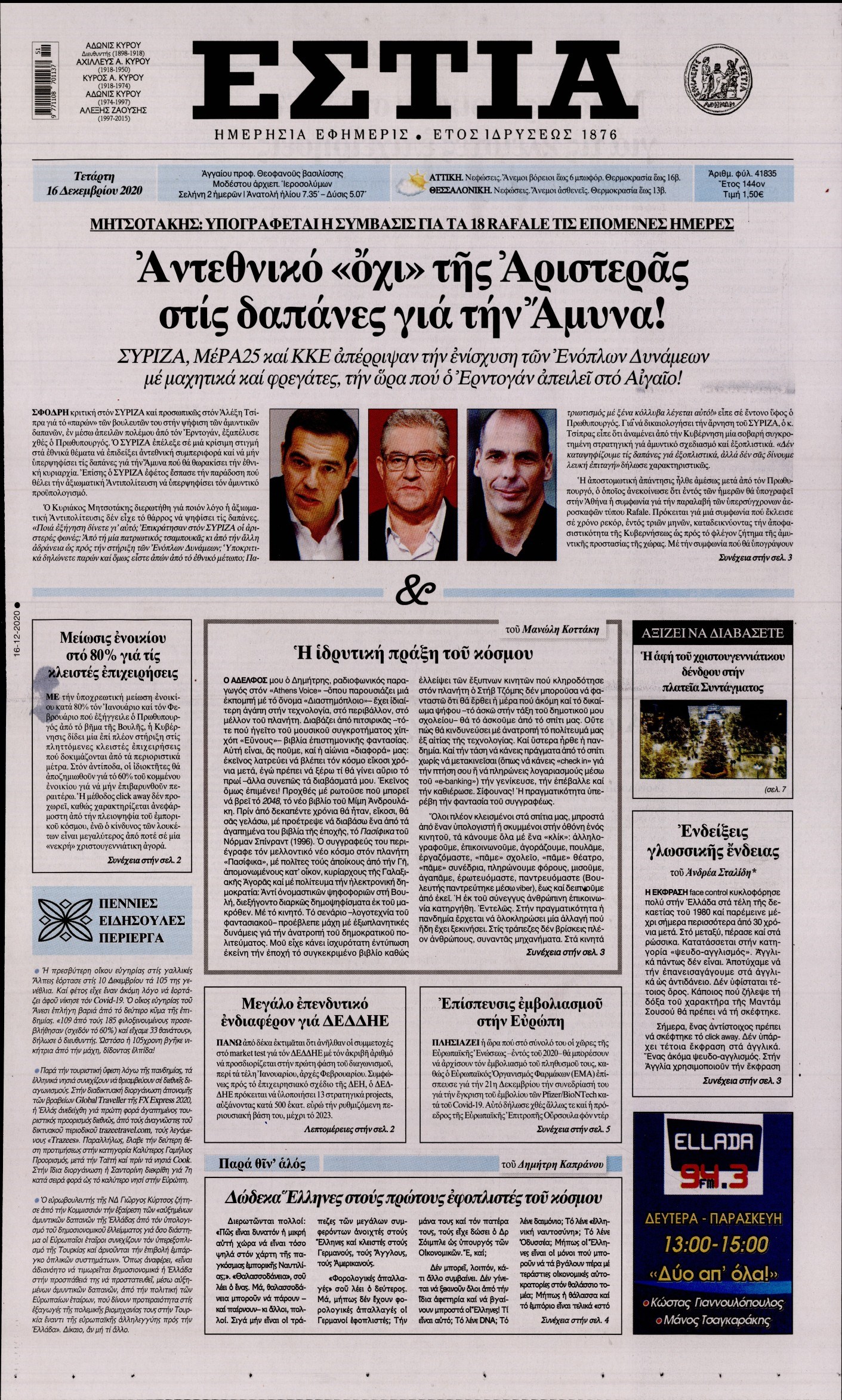 Οι πολιτικές εφημερίδες 16/12/2020 Διονύσης Νίκκας 06:06, Τετάρτη 16 Δεκεμβρίου 2020 Media Διαβάστε τα πρωτοσέλιδα των πολιτικών εφημερίδων… ΕΦΗΜΕΡΙΔΕΣ ΠΟΛΙΤΙΚΕΣ ΕΦΗΜΕΡΙΔΕΣ ΠΡΩΤΟΣΕΛΙΔΑ Μοιράσου το: σχολίασε κι εσύ (0 σχόλια) Ακολουθήστε το enikos.gr στο Google News και μάθετε πρώτοι όλες τις ειδήσεις Δείτε όλες τις τελευταίες ειδήσεις από την Ελλάδα και τον Κόσμο στο enikos.gr Ειδήσεις Ροή Ειδήσεων 1 ώρα πριν Μπλόκα: Οι αγρότες σηκώνουν τις μπάρες σε διόδια για τους εκδρομείς των Χριστουγέννων και μοιράζουν προϊόντα – Βίντεο 2 ώρες πριν Τσιάρας προς αγρότες: Τα μπλόκα και τα πείσματα δεν ωφελούν – Οι λύσεις περνούν μέσα από τον διάλογο 2 ώρες πριν Αρχεία Έπσταϊν: Οι συγκλονιστικές φωτογραφίες – Ο Μάικλ Τζάκσον, ο Μικ Τζάγκερ και ο Κέβιν Σπέισι ανάμεσα στους διάσημους που απεικονίζονται 23 λεπτά πριν Μαθητές διακινούσαν κοκαΐνη και χασίς σε σχολείο της Αττικής – 12 συλλήψεις 3 ώρες πριν Ινδία: Επτά ελέφαντες σκοτώθηκαν κατά τη σύγκρουση επιβατικού τρένου με κοπάδι 5 ώρες πριν Μία νέα «χρυσή» περίοδος αρχίζει για 3 ζώδια από σήμερα – «Μία αναπάντεχη ευκαιρία οδηγεί στην επιτυχία» 6 ώρες πριν Αγχώνεται για το χριστουγεννιάτικο δώρο που πήρε στην πλούσια σύντροφό του – «Φοβάμαι πως θα το βρει φθηνιάρικο, φοράει βραχιόλια Cartier» 3 ώρες πριν Διαιτολόγος αποκαλύπτει 9 πρωινές συνήθειες που «λιώνουν» το κοιλιακό λίπος – «Υποστηρίζουν την υγιεινή απώλεια βάρους» 4 ώρες πριν Οι 7 φράσεις που δεν λένε ποτέ οι συναισθηματικά έξυπνοι άνθρωποι κατά τη διάρκεια ενός καβγά 3 λεπτά πριν Θεσσαλονίκη: Ανήλικος που είχε εξαφανιστεί βρέθηκε στο σπίτι Τούρκων μετά από αστυνομική επιχείρηση 12 λεπτά πριν Ιταλία: 384 συλλήψεις και κατάσχεση 1,4 τόνων ναρκωτικών σε μεγάλη αστυνομική επιχείρηση 20 λεπτά πριν Γερμανού για Μαζωνάκη: «Η σχέση μας μετράει 30 χρόνια – Σαφώς και έχω άποψη» 23 λεπτά πριν Μαθητές διακινούσαν κοκαΐνη και χασίς σε σχολείο της Αττικής – 12 συλλήψεις 29 λεπτά πριν Βέλγιο: Άγνωστοι έριξαν κόκκινη μπογιά στο προξενείο της Πολωνίας στις Βρυξέλλες ENIKOS NETWORK Η αποχή από την αναπαραγωγή παρατείνει τη ζωή στα ζώα, σύμφωνα με μελέτη – Τι ισχύει για τους ανθρώπους; Σημαντικές επαφές στις ΗΠΑ είχε ο υπουργός Υγείας Άδωνις Γεωργιάδης Τσιάρας προς αγρότες: Έχει ικανοποιηθεί το 74% των αιτημάτων – Τα μπλόκα και τα πείσματα δεν ωφελούν MyHealth App: Τα στοιχεία για τον Προσωπικό Βοηθό Υγείας Πολίτη – Τι ερωτήματα έγιναν μέσα σε 7 ημέρες Χαρτογραφώντας το «σημείο χωρίς επιστροφή»: Για πρώτη φορά αποκαλύπτεται με λεπτομέρεια το ακανθώδες όριο της ατμόσφαιρας τ... Η Google καταργεί τη λειτουργία «dark web report» – Πώς θα μπορούν οι χρήστες να διαγράφουν τα δεδομένα τους περισσότερα 14:04 , Σάββατο 20 Δεκεμβρίου 2025 Η Realnews αυτής της Κυριακής (21/12/2025) Με τίτλο: «Ασπίδα προστασίας για την Ελλάδα» κυκλοφορεί, αυτήν την Κυριακή, η Realnews. Σημαντ... 12:53 , Σάββατο 20 Δεκεμβρίου 2025 Να μ’ αγαπάς: Το παρελθόν έρχεται στο φως – Καταιγιστικές εξελίξεις στα τελευταία επεισόδια του 2025 Ο Άγγελος αποκαλύπτεται, η Φωτεινή ανησυχεί για τον Λευτέρη και η Ζωή έρχεται αντιμέτωπη με το... 11:41 , Σάββατο 20 Δεκεμβρίου 2025 «Η αγάπη δεν χάνεται ποτέ»: Η μικρού μήκους ταινία κινουμένων σχεδίων που θέτει ερωτήματα για τη ζωή και τον θάνατο Ο θάνατος είναι ένα από τα πιο σκληρά θέματα που καλείται να διαχειριστεί κάποιος στη διάρκεια... 09:30 , Σάββατο 20 Δεκεμβρίου 2025 «Porto Leone: Στη γειτονιά με τα κόκκινα φανάρια» – Ο Χρόνης αποκαλύπτει στην Αλεξάνδρα