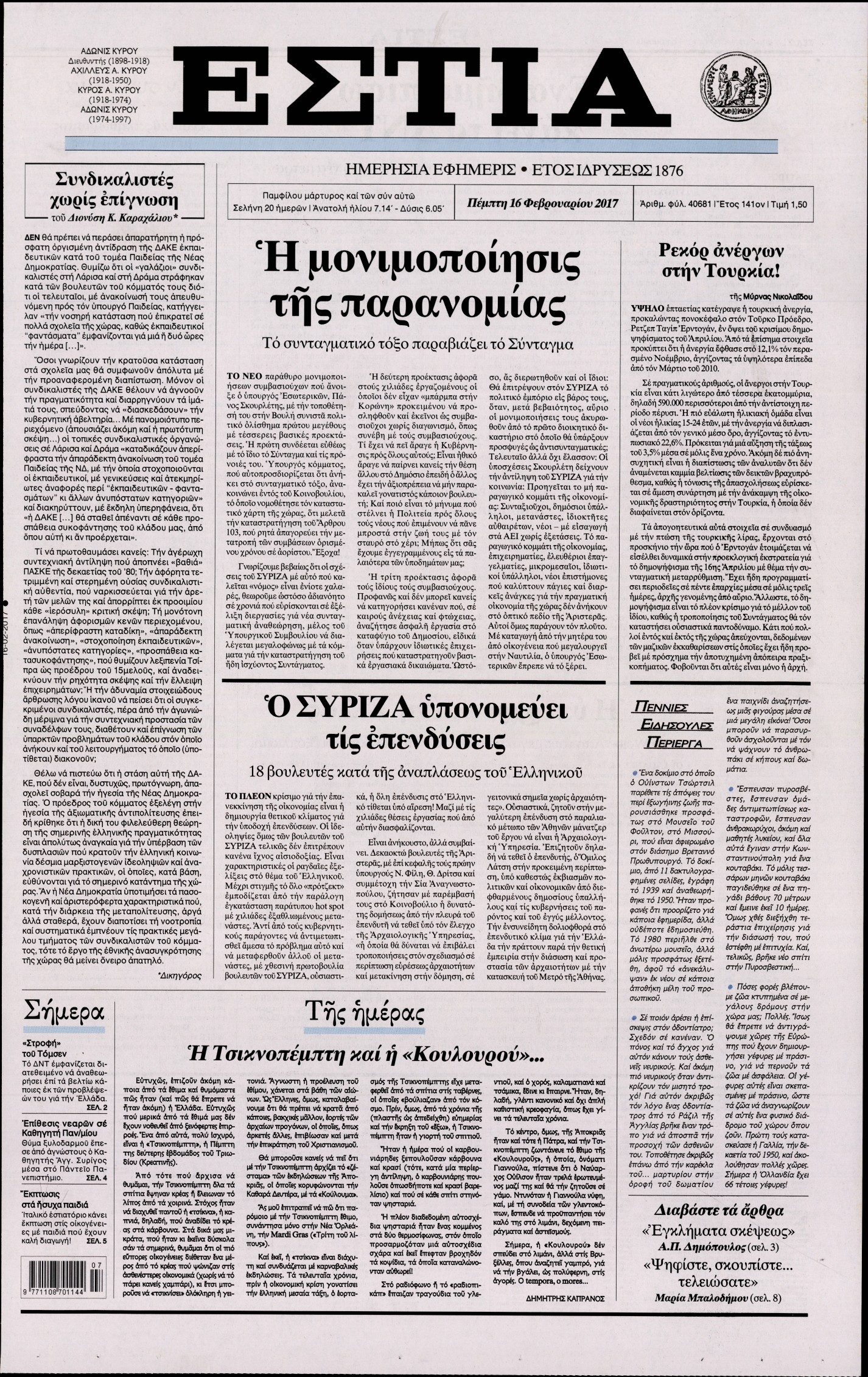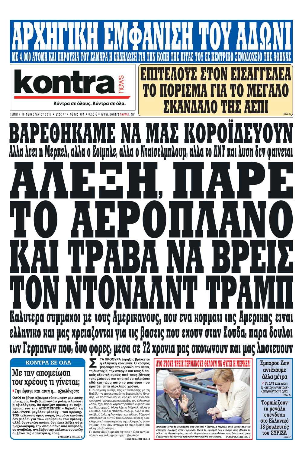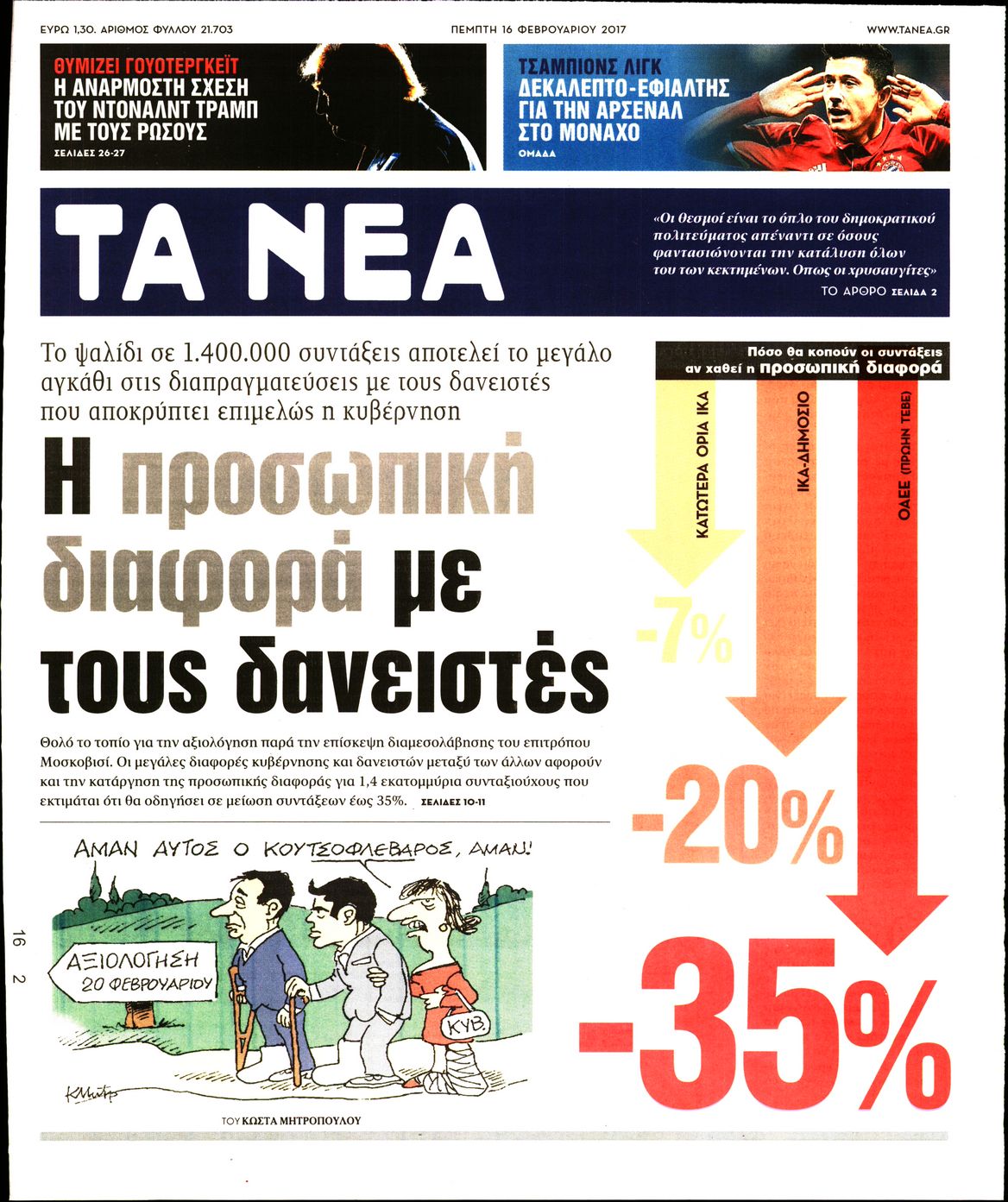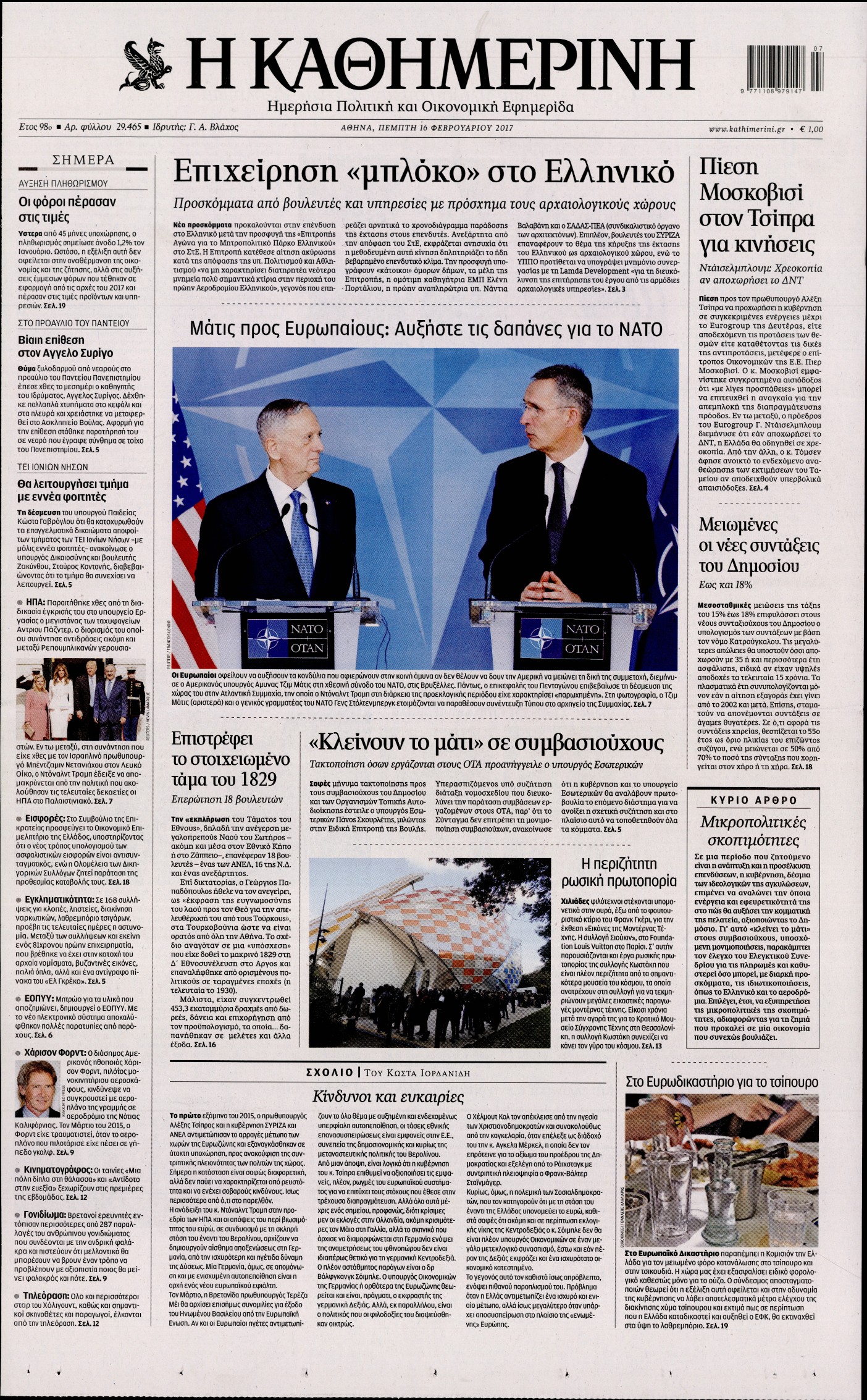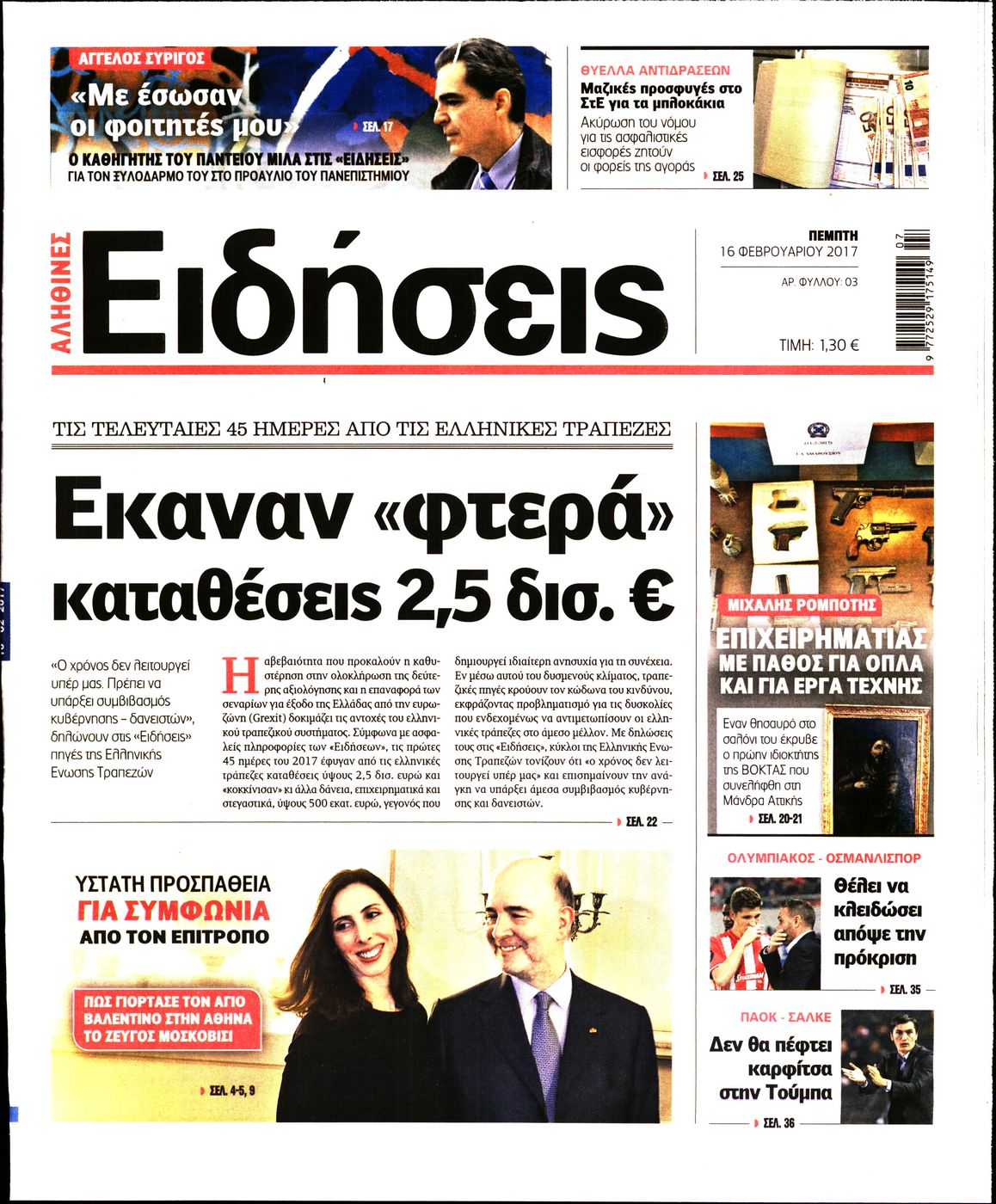 Οι πολιτικές εφημερίδες 16/2/2017 Enikos Newsroom 01:36, Πέμπτη 16 Φεβρουαρίου 2017 Media Διαβάστε τα σημερινά πρωτοσέλιδα των πολιτικών εφημερίδων: ΠΟΛΙΤΙΚΕΣ ΕΦΗΜΕΡΙΔΕΣ ΠΡΩΤΟΣΕΛΙΔΑ Μοιράσου το: σχολίασε κι εσύ (0 σχόλια) Ακολουθήστε το enikos.gr στο Google News και μάθετε πρώτοι όλες τις ειδήσεις Δείτε όλες τις τελευταίες ειδήσεις από την Ελλάδα και τον Κόσμο στο enikos.gr Ειδήσεις Ροή Ειδήσεων 2 ώρες πριν Γιορτές με μπλόκα για τους αγρότες: Ανοίγουν διόδια και μοιράζουν προϊόντα στους ταξιδιώτες 2 ώρες πριν Τα αρχεία του Έπσταϊν αποκαλύπτουν φωτογραφία του έκπτωτου πρίγκιπα Άντριου – Είναι ξαπλωμένος στην αγκαλιά 5 γυναικών 1 ώρα πριν Νέες ταυτότητες: Μεγάλη αναμονή για ραντεβού στην Αττική – Τέλος τα ταξίδια εκτός Ελλάδος από τον Αύγουστο για όσους δεν έχουν αλλάξει 2 ώρες πριν Εξαφάνιση 33χρονου γιατρού στην Κρήτη: «Άναψα τα φώτα, τρόμαξε και άρχισε να τρέχει στα χωράφια» – Η τελευταία διαδρομή και η μαρτυρία «κλειδί» 27 λεπτά πριν Ινδία: Επτά ελέφαντες σκοτώθηκαν κατά τη σύγκρουση επιβατικού τρένου με κοπάδι 2 ώρες πριν Μία νέα «χρυσή» περίοδος αρχίζει για 3 ζώδια από σήμερα – «Μία αναπάντεχη ευκαιρία οδηγεί στην επιτυχία» 4 ώρες πριν Αρχαιολόγοι ανακάλυψαν σε χωράφι απεικόνιση 600 ετών ενός Αγίου – Τα στοιχεία που δείχνουν ότι μαρτύρησε 3 ώρες πριν Αγχώνεται για το χριστουγεννιάτικο δώρο που πήρε στην πλούσια σύντροφό του – «Φοβάμαι πως θα το βρει φθηνιάρικο, φοράει βραχιόλια Cartier» 25 λεπτά πριν Διαιτολόγος αποκαλύπτει 9 πρωινές συνήθειες που «λιώνουν» το κοιλιακό λίπος – «Υποστηρίζουν την υγιεινή απώλεια βάρους» 4 λεπτά πριν Χρήστος Μάντακας: «Θα μπορούσα να είχα φύγει από τη ζωή, δεν μπορούσα να περπατήσω…» 11 λεπτά πριν Εντυπωσιακό βίντεο από «τσουνάμι» πάγου στη Σιβηρία – Πώς προκαλείται το σπάνιο φαινόμενο 19 λεπτά πριν Μυλωνάκης κατά Τζάκρη: Την καλώ να ανασκευάσει το αδιανόητο ψέμα της. Η ανοχή έχει και τα όρια της» 25 λεπτά πριν Διαιτολόγος αποκαλύπτει 9 πρωινές συνήθειες που «λιώνουν» το κοιλιακό λίπος – «Υποστηρίζουν την υγιεινή απώλεια βάρους» 27 λεπτά πριν Ινδία: Επτά ελέφαντες σκοτώθηκαν κατά τη σύγκρουση επιβατικού τρένου με κοπάδι ENIKOS NETWORK Είστε μόνιμα απρόσεκτοι; 3 σημάδια που δείχνουν ότι μπορεί να είναι σύμπτωμα πάθησης Πόσα κιλά παίρνουμε πραγματικά τα Χριστούγεννα, σύμφωνα με την επιστήμη – Πώς να το αποτρέψουμε; Χριστούγεννα και Πρωτοχρονιά: Πώς αμείβονται όσοι εργαστούν e-ΕΦΚΑ και ΔΥΠΑ: Έρχονται νέες πληρωμές έως τις 24 Δεκεμβρίου – Ποιοι πάνε ταμείο Χαρτογραφώντας το «σημείο χωρίς επιστροφή»: Για πρώτη φορά αποκαλύπτεται με λεπτομέρεια το ακανθώδες όριο της ατμόσφαιρας τ... Η Google καταργεί τη λειτουργία «dark web report» – Πώς θα μπορούν οι χρήστες να διαγράφουν τα δεδομένα τους περισσότερα 11:41 , Σάββατο 20 Δεκεμβρίου 2025 «Η αγάπη δεν χάνεται ποτέ»: Η μικρού μήκους ταινία κινουμένων σχεδίων που θέτει ερωτήματα για τη ζωή και τον θάνατο Ο θάνατος είναι ένα από τα πιο σκληρά θέματα που καλείται να διαχειριστεί κάποιος στη διάρκεια... 09:30 , Σάββατο 20 Δεκεμβρίου 2025 «Porto Leone: Στη γειτονιά με τα κόκκινα φανάρια» – Ο Χρόνης αποκαλύπτει στην Αλεξάνδρα το μυστικό για το παιδί της Λένας Η μεγάλη δραματική σειρά του Apha «Porto Leone: Στη γειτονιά με τα κόκκινα φανάρια» μας μεταφέ... 08:14 , Σάββατο 20 Δεκεμβρίου 2025 Τρομεροί γονείς: Η Μαρία Καβογιάννη εισβάλλει στο σπίτι της οικογένειας Στεφανίδη Όσα θα δούμε στο νέο διπλό επεισόδιο της σειράς «Τρομεροί γονείς», σήμερα Σάβ