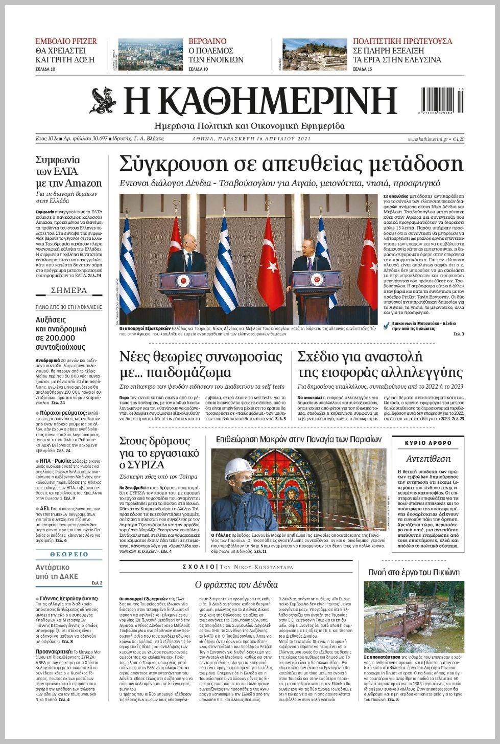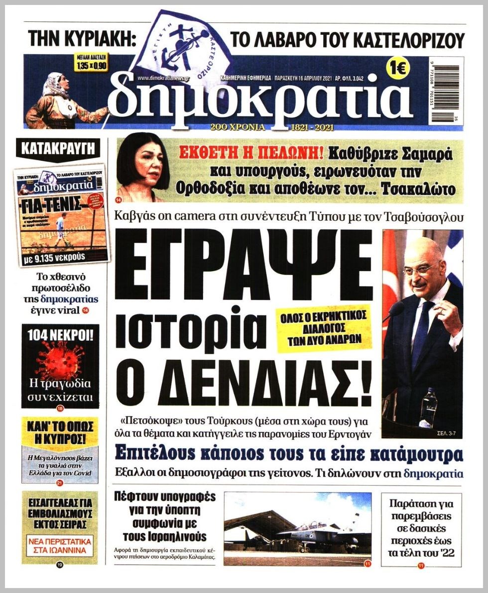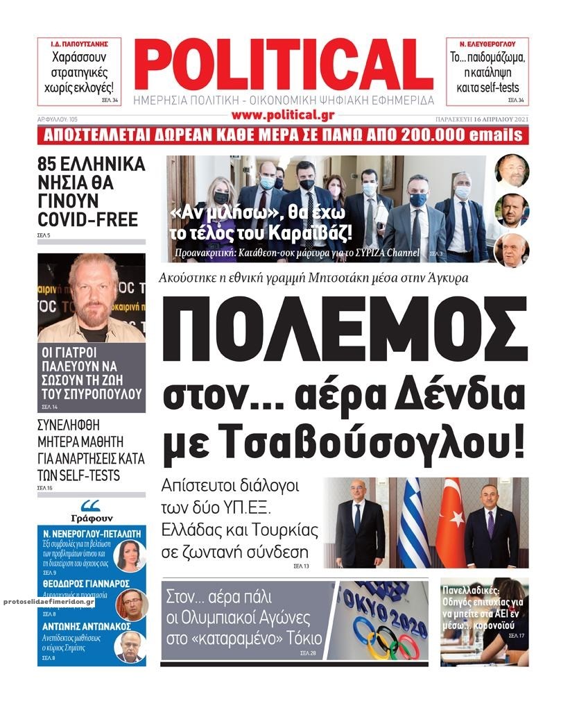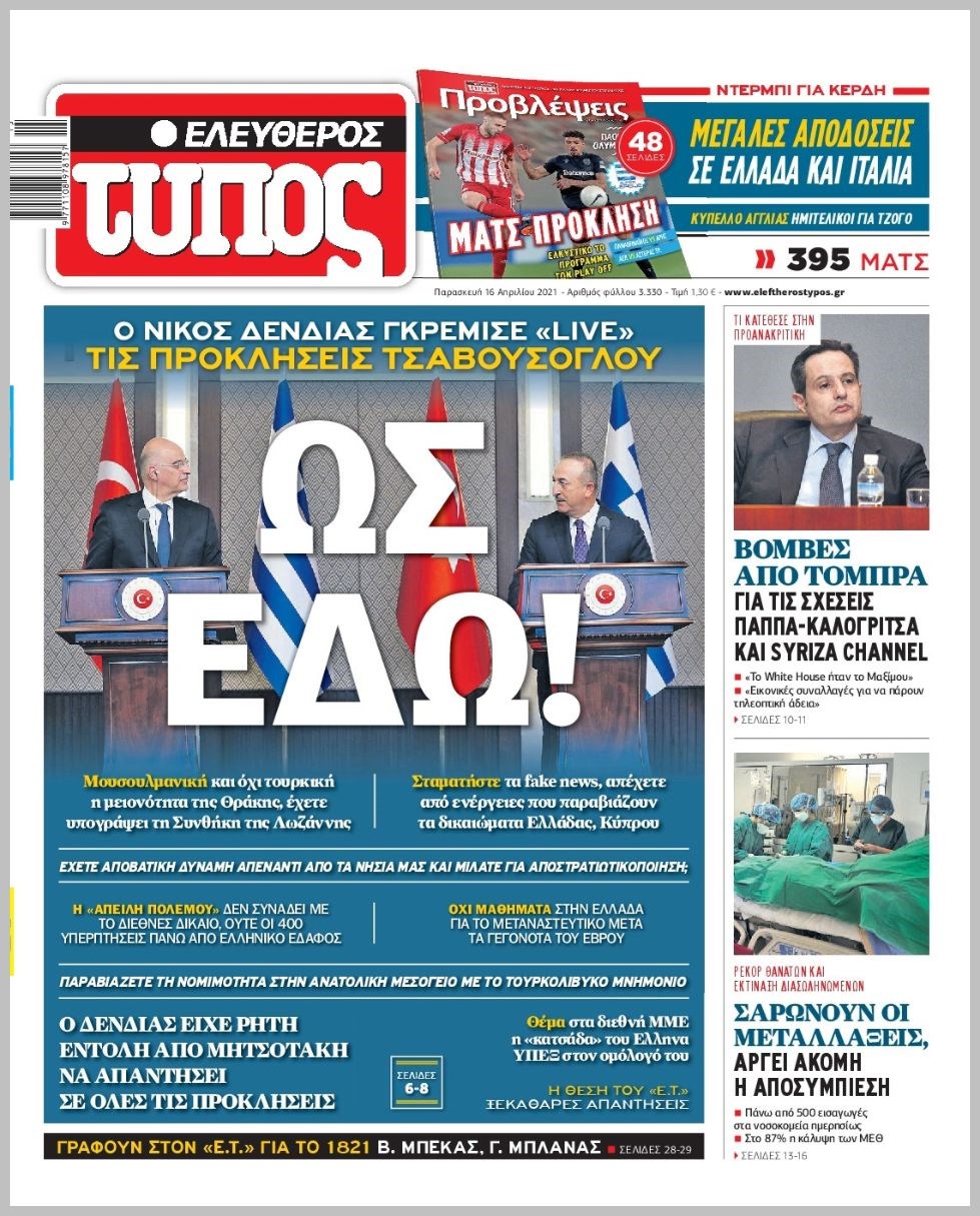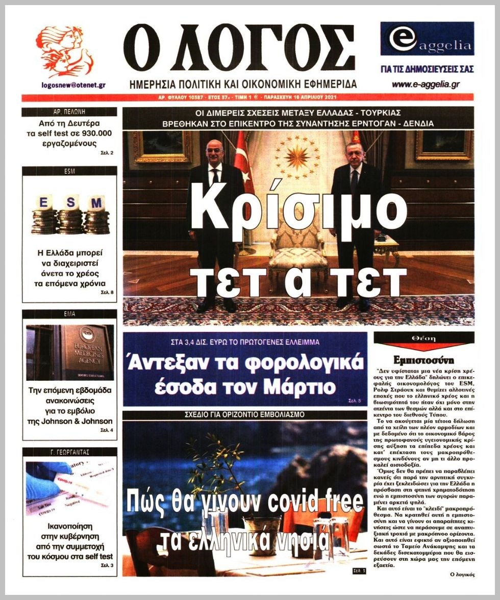 Οι πολιτικές εφημερίδες 16/4/2021 Διονύσης Νίκκας 06:34, Παρασκευή 16 Απριλίου 2021 Media Διαβάστε τα πρωτοσέλιδα των πολιτικών εφημερίδων… ΕΦΗΜΕΡΙΔΕΣ ΠΡΩΤΟΣΕΛΙΔΑ Μοιράσου το: σχολίασε κι εσύ (0 σχόλια) Ακολουθήστε το enikos.gr στο Google News και μάθετε πρώτοι όλες τις ειδήσεις Δείτε όλες τις τελευταίες ειδήσεις από την Ελλάδα και τον Κόσμο στο enikos.gr Ειδήσεις Ροή Ειδήσεων 7 ώρες πριν Χριστούγεννα στα μπλόκα οι αγρότες: Άνοιξαν στα διόδια και μοίρασαν προϊόντα στους πολίτες – Νέα σύσκεψη την Κυριακή στη Νίκαια 5 ώρες πριν Ρετζέπ Ταγίπ Ερντογάν: Δεν έχουμε καμία βλέψη στα εδάφη ή την κυριαρχία κανενός – Δεν θα επιτρέψουμε να παραβιαστούν τα δικαιώματά μας 6 ώρες πριν H ακτοφυλακή των ΗΠΑ κατάσχεσε και δεύτερο τάνκερ στα ανοιχτά της Βενεζουέλας – Δείτε βίντεο 7 ώρες πριν Κύκλωμα διακίνησης ναρκωτικών σε σχολεία: Τηλεφωνούσαν στους ανηλίκους την ώρα του μαθήματος – Οι διάλογοι-σοκ, τα «ψευδώνυμα» και τα βασανιστήρια 7 ώρες πριν Αρχεία Επστάιν: Οι 500 σελίδες που λείπουν, τα αναπάντητα ερωτήματα και οι επώνυμοι – Τι έπεται 7 ώρες πριν Αποκαλύφθηκε το άγνωστο «GPS» της αρχαιότητας – Πώς οι ναοί «φώτιζαν» τον δρόμο των ναυτικών πριν από την εφεύρεση των φάρων 8 ώρες πριν Ύπνος: Η διατροφή που μπορεί να σας βοηθήσει να κοιμάστε καλύτερα και να ζήσετε περισσότερο 9 ώρες πριν Αριθμολογία: Ο αριθμός του φύλακα αγγέλου σας, με βάση τον μήνα γέννησής σας – «Έτσι σας στέλνει σημάδια το σύμπαν» 21 ώρες πριν Enerwave: Το νέο «ρεύμα» στη λιανική ενέργειας που αλλάζει την εμπειρία του καταναλωτή 6 λεπτά πριν Οι πολιτικές εφημερίδες 21/12/2025 15 λεπτά πριν Τα ζώδια σήμερα, Κυριακή 21 Δεκεμβρίου: Αιγόκεροι, αποφασίζετε για το επόμενο κεφάλαιο της ζωής σας 23 λεπτά πριν Εφημερεύοντα φαρμακεία σε Αθήνα και Θεσσαλονίκη (21/12) 30 λεπτά πριν Γιαννούλης Λαρεντζάκης: Πρόταση γάμου στην αρραβωνιαστικιά του, Γιώτα Γεωργοπούλου, έκανε ο παίκτης του Ολυμπιακού – Δείτε φωτογραφίες και βίντεο 36 λεπτά πριν Σήμερα με τη Realnews: Δωροεπιταγή 10€ ENIKOS NETWORK Οι γυναίκες αποκαλύπτουν το πιο ελκυστικό πράγμα που μπορεί να κάνει ένας άνδρας Ομορφιά και αντιγήρανση: Ειδικοί μιλούν για συσκευές περιποίησης του δέρματος «Πολεμική» προετοιμασία από την ευρωπαϊκή βιομηχανία ενέργειας – Η Eurelectric ζητεί «ομπρέλα» προστασίας για τις υποδομές Ακύρωση ΑΦΜ για απάτες – Ποιους βάζει στο στόχαστρο η ΑΑΔΕ Χαρτογραφώντας το «σημείο χωρίς επιστροφή»: Για πρώτη φορά αποκαλύπτεται με λεπτομέρεια το ακανθώδες όριο της ατμόσφαιρας τ... Η Google καταργεί τη λειτουργία «dark web report» – Πώς θα μπορούν οι χρήστες να διαγράφουν τα δεδομένα τους περισσότερα 05:38 , Κυριακή 21 Δεκεμβρίου 2025 Οι πολιτικές εφημερίδες 21/12/2025 Διαβάστε τα πρωτοσέλιδα από τις πολιτικές εφημερίδες, σήμερα 21/12/2025. 05:08 , Κυριακή 21 Δεκεμβρίου 2025 Σήμερα με τη Realnews: Δωροεπιταγή 10€ Δωροεπιταγή αξίας 10€ για αγορές άνω των 60€ από τα πολυκαταστήματα FactoryOutlet H προσφορά ι... 04:08 , Κυριακή 21 Δεκεμβρίου 2025 Σήμερα με τη Realnews: Ό,τι και αν αγοράσεις, σκανάρεις και κερδίζεις! Σήμερα με τη Realnews: Ό,τι και αν αγοράσεις, σκανάρεις και κερδίζεις! Με το PADU app, το κορυ... 03:08 , Κυριακή 21 Δεκεμβρίου 2025 Σήμερα με τη Realnews: Instyle, μαζί Drive και Realnews Geopolitics Σήμερα με τη Realnews: Instyle, μαζί Drive και Realnews Geopolitics Instyle Η Άννα Ρεζάν, η Ch... ΤΕΛΕΥΤΑΙΕΣ ΕΙΔΗΣΕΙΣ 6 λεπτά πριν Οι πολιτικές εφημερίδες 21/12/2025 15 λεπτά πριν Τα ζώδια σήμερα, Κυριακή 21 Δεκεμβρίου: Αιγόκεροι,... 23 λεπτά πριν Εφημερεύοντα φαρμακεία σε Αθήνα και Θεσσαλονίκη (21/12) 30 λε