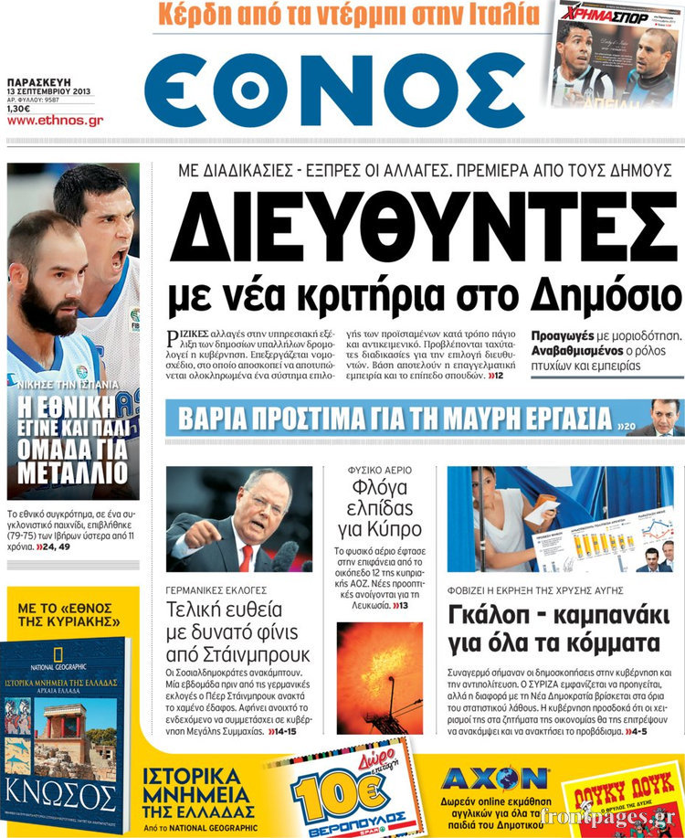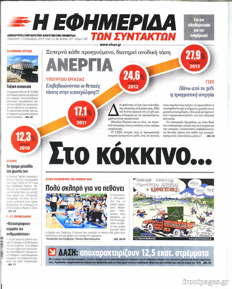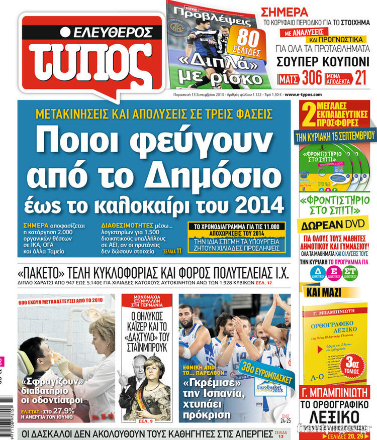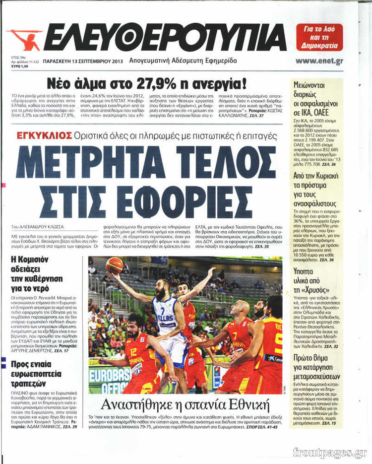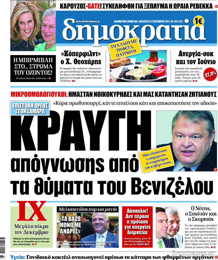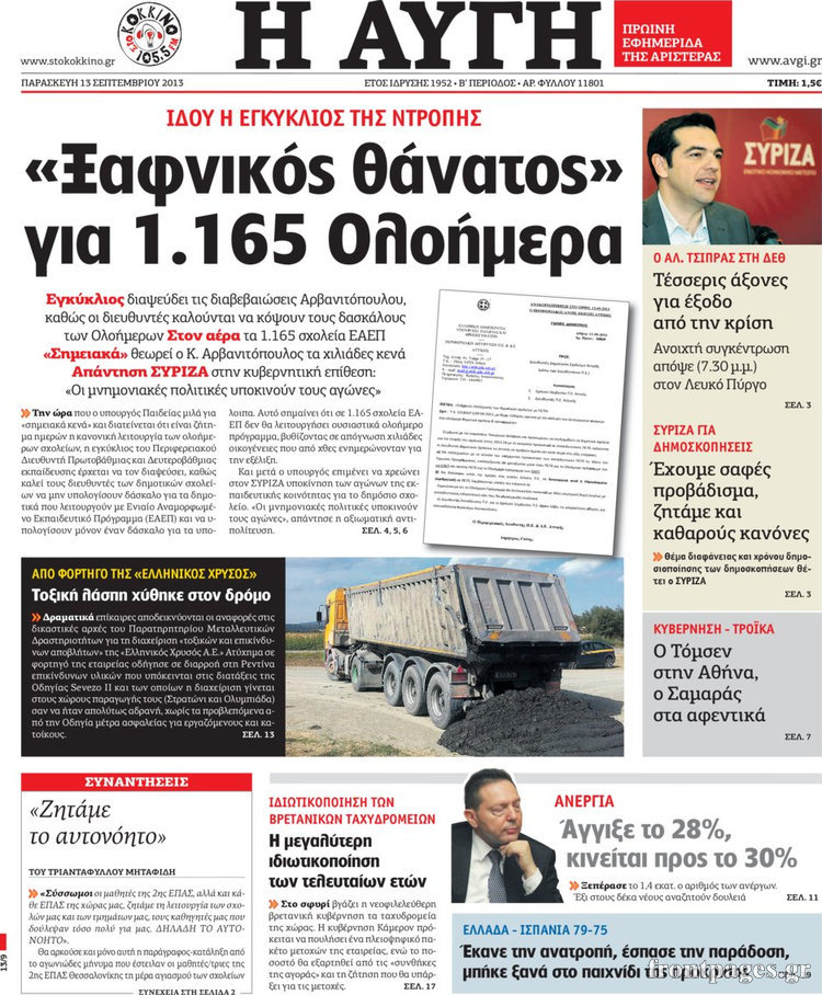 Οι πολιτικές εφημερίδες Enikos Newsroom 08:29, Παρασκευή 13 Σεπτεμβρίου 2013 Media Οι πολιτικές εφημερίδες Διαβάστε τα πρωτοσέλιδα των πολιτικών εφημερίδων. ΕΦΗΜΕΡΙΔΕΣ ΠΟΛΙΤΙΚΕΣ ΕΦΗΜΕΡΙΔΕΣ ΠΡΩΤΟΣΕΛΙΔΑ Μοιράσου το: σχολίασε κι εσύ (0 σχόλια) Ακολουθήστε το enikos.gr στο Google News και μάθετε πρώτοι όλες τις ειδήσεις Δείτε όλες τις τελευταίες ειδήσεις από την Ελλάδα και τον Κόσμο στο enikos.gr Ειδήσεις Ροή Ειδήσεων 24 λεπτά πριν Αγρότες: Γιορτές στα μπλόκα με ανοιχτά διόδια – Δικογραφία στα Ιωάννινα για το σήκωμα των μπαρών 1 ώρα πριν ΕΛΑΣ: Συνελήφθησαν Υπαρχιπυροσβέστης και δύο ακόμη άτομα για κατοχή και διακίνηση ναρκωτικών ουσιών – Η καταγγελία και ο τιμοκατάλογος 4 ώρες πριν Αρχεία Έπσταϊν: Οι συγκλονιστικές φωτογραφίες – Ο Μάικλ Τζάκσον, ο Μικ Τζάγκερ και ο Κέβιν Σπέισι ανάμεσα στους διάσημους που απεικονίζονται 2 ώρες πριν Μαθητές διακινούσαν κοκαΐνη και χασίς σε σχολείο της Αττικής – 12 συλλήψεις 2 ώρες πριν Βέλγιο: Άγνωστοι έριξαν κόκκινη μπογιά στο προξενείο της Πολωνίας στις Βρυξέλλες 36 λεπτά πριν Η τύχη χαμογελά σε 3 ζώδια έως τις 28 Δεκεμβρίου – «Προσέξτε τις επιλογές σας και η επιμονή σας θα ανταμειφθεί» 5 ώρες πριν Διαιτολόγος αποκαλύπτει 9 πρωινές συνήθειες που «λιώνουν» το κοιλιακό λίπος – «Υποστηρίζουν την υγιεινή απώλεια βάρους» 6 ώρες πριν Οι 7 φράσεις που δεν λένε ποτέ οι συναισθηματικά έξυπνοι άνθρωποι κατά τη διάρκεια ενός καβγά 8 ώρες πριν Enerwave: Το νέο «ρεύμα» στη λιανική ενέργειας που αλλάζει την εμπειρία του καταναλωτή 34 δευτερόλεπτα πριν Πώς δρούσε το κύκλωμα που διακινούσε ναρκωτικά σε σχολεία – Υπέβαλαν σε βασανιστήρια όσους δεν τηρούσαν τους «κανόνες πειθαρχίας» 6 λεπτά πριν Φάμελλος: «Η πρόταση για τις εκλογές έχει να κάνει με το συμφέρον της χώρας» 18 λεπτά πριν Παναθηναϊκός: Στο… «μικροσκόπιο» ο Γένσεν της Μπρέντφορντ 24 λεπτά πριν Αγρότες: Γιορτές στα μπλόκα με ανοιχτά διόδια – Δικογραφία στα Ιωάννινα για το σήκωμα των μπαρών 28 λεπτά πριν Νίκος Γιαννόπουλος: «Όποιος με χαρακτηρίζει δημοσίως μέθυσο, προκλητικό ή οτιδήποτε άλλο θα κληθεί στις δικαστικές αίθουσες» ENIKOS NETWORK Η αποχή από την αναπαραγωγή παρατείνει τη ζωή στα ζώα, σύμφωνα με μελέτη – Τι ισχύει για τους ανθρώπους; Σημαντικές επαφές στις ΗΠΑ είχε ο υπουργός Υγείας Άδωνις Γεωργιάδης Τέλη κυκλοφορίας 2026: Προσοχή στην προθεσμία εξόφλησής τους – Πώς διαμορφώνονται τα πρόστιμα σε περίπτωση καθυστέρησης Επιτροπή Ανταγωνισμού: Στο μικροσκόπιο σχολικές τσάντες και επώνυμα brands – Τι ερευνάται Χαρτογραφώντας το «σημείο χωρίς επιστροφή»: Για πρώτη φορά αποκαλύπτεται με λεπτομέρεια το ακανθώδες όριο της ατμόσφαιρας τ... Η Google καταργεί τη λειτουργία «dark web report» – Πώς θα μπορούν οι χρήστες να διαγράφουν τα δεδομένα τους περισσότερα 14:04 , Σάββατο 20 Δεκεμβρίου 2025 Η Realnews αυτής της Κυριακής (21/12/2025) Με τίτλο: «Ασπίδα προστασίας για την Ελλάδα» κυκλοφορεί, αυτήν την Κυριακή, η Realnews. Σημαντ... 12:53 , Σάββατο 20 Δεκεμβρίου 2025 Να μ’ αγαπάς: Το παρελθόν έρχεται στο φως – Καταιγιστικές εξελίξεις στα τελευταία επεισόδια του 2025 Ο Άγγελος αποκαλύπτεται, η Φωτεινή ανησυχεί για τον Λευτέρη και η Ζωή έρχεται αντιμέτωπη με το... 11:41 , Σάββατο 20 Δεκεμβρίου 2025 «Η αγάπη δεν χάνεται ποτέ»: Η μικρού μήκους ταινία κινουμένων σχεδίων που θέτει ερωτήματα για τη ζωή και τον θάνατο Ο θάνατος είναι ένα από τα πιο σκληρά θέματα που καλείται να διαχειριστεί κάποιος στη διάρκεια... 09:30 , Σάββατο 20 Δεκεμβρίου 2025 «Porto Leone: Σ