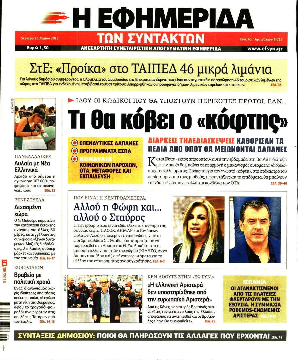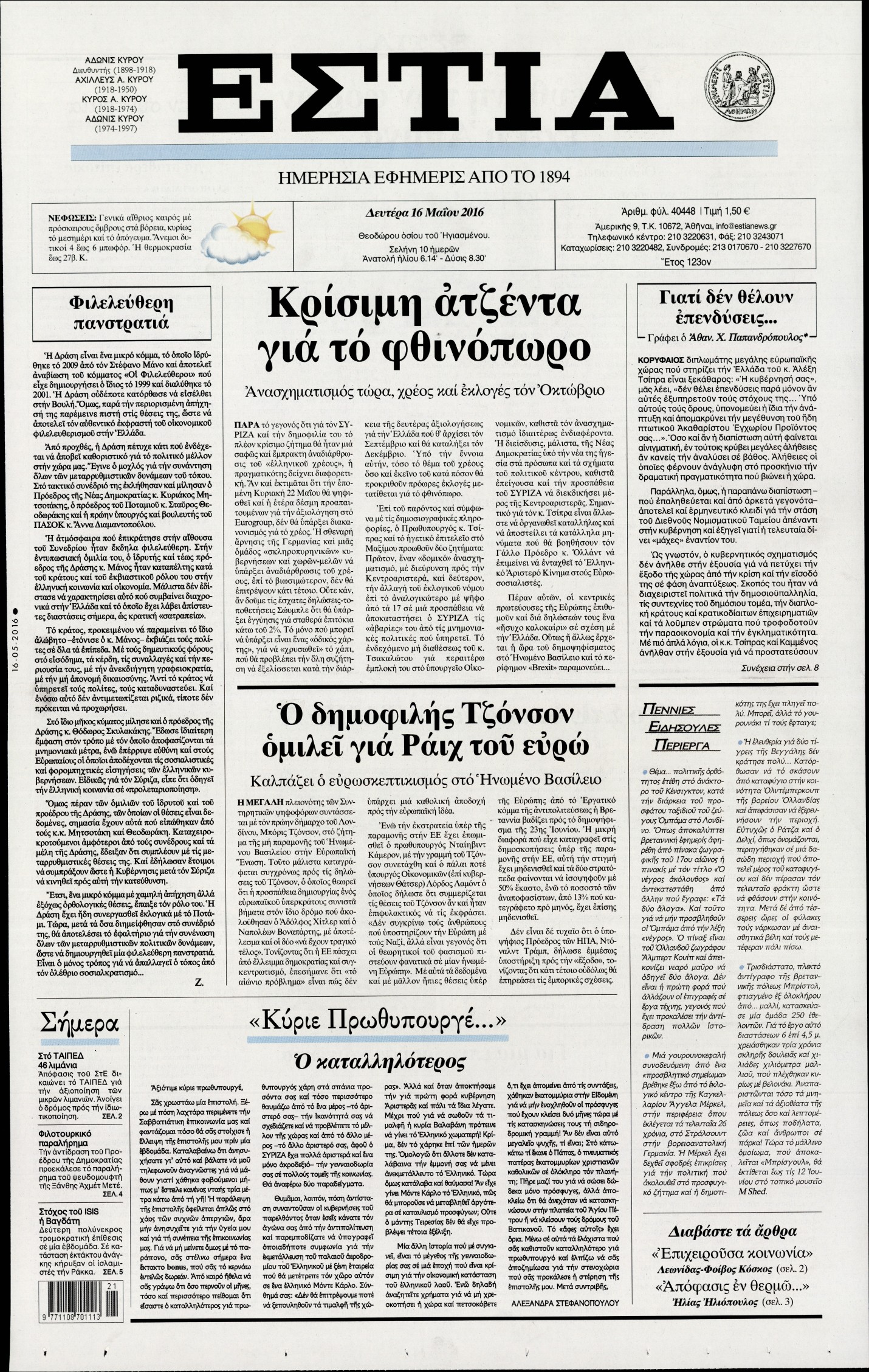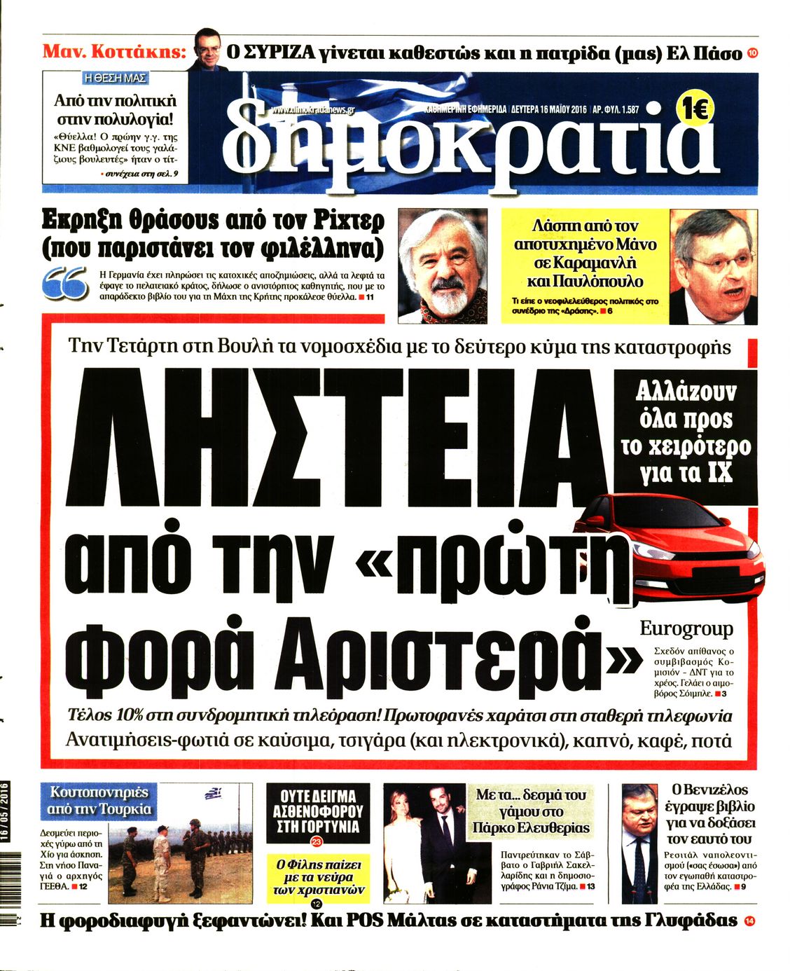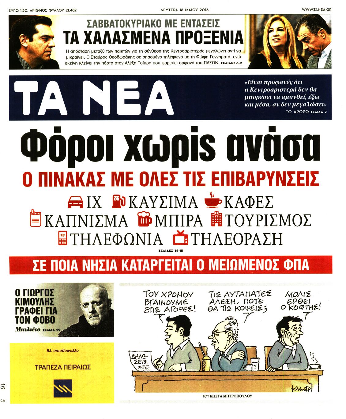 Oι πολιτικές εφημερίδες 16/5/2016 Enikos Newsroom 06:11, Δευτέρα 16 Μαΐου 2016 Media Διαβάστε τα σημερινά πρωτοσέλιδα των πολιτικών εφημερίδων: ΠΟΛΙΤΙΚΕΣ ΕΦΗΜΕΡΙΔΕΣ ΠΡΩΤΟΣΕΛΙΔΑ Μοιράσου το: σχολίασε κι εσύ (0 σχόλια) Ακολουθήστε το enikos.gr στο Google News και μάθετε πρώτοι όλες τις ειδήσεις Δείτε όλες τις τελευταίες ειδήσεις από την Ελλάδα και τον Κόσμο στο enikos.gr Ειδήσεις Ροή Ειδήσεων 6 ώρες πριν Χριστούγεννα στα μπλόκα οι αγρότες: Άνοιξαν στα διόδια και μοίρασαν προϊόντα στους πολίτες – Νέα σύσκεψη την Κυριακή στη Νίκαια 7 ώρες πριν Κύκλωμα διακίνησης ναρκωτικών σε σχολεία: Τηλεφωνούσαν στους ανηλίκους την ώρα του μαθήματος – Οι διάλογοι-σοκ, τα «ψευδώνυμα» και τα βασανιστήρια 6 ώρες πριν Αρχεία Επστάιν: Οι 500 σελίδες που λείπουν, τα αναπάντητα ερωτήματα και οι επώνυμοι – Τι έπεται 8 ώρες πριν Ζελένσκι: Μόνο οι ΗΠΑ και ο Τραμπ μπορούν να πιέσουν τη Ρωσία να βάλει τέλος στον πόλεμο 8 ώρες πριν Φοινικούντα: Προφυλακιστέος ο 30χρονος για συνέργεια στη διπλή δολοφονία – Και άλλα πρόσωπα στο «μικροσκόπιο» 6 ώρες πριν Αποκαλύφθηκε το άγνωστο «GPS» της αρχαιότητας – Πώς οι ναοί «φώτιζαν» τον δρόμο των ναυτικών πριν από την εφεύρεση των φάρων 7 ώρες πριν Ύπνος: Η διατροφή που μπορεί να σας βοηθήσει να κοιμάστε καλύτερα και να ζήσετε περισσότερο 8 ώρες πριν Αριθμολογία: Ο αριθμός του φύλακα αγγέλου σας, με βάση τον μήνα γέννησής σας – «Έτσι σας στέλνει σημάδια το σύμπαν» 20 ώρες πριν Enerwave: Το νέο «ρεύμα» στη λιανική ενέργειας που αλλάζει την εμπειρία του καταναλωτή 57 δευτερόλεπτα πριν Γιαννούλης Λαρεντζάκης: Πρόταση γάμου στην αρραβωνιαστικιά του, Γιώτα Γεωργοπούλου, έκανε ο παίκτης του Ολυμπιακού – Δείτε φωτογραφίες και βίντεο 7 λεπτά πριν Σήμερα με τη Realnews: Δωροεπιταγή 10€ 15 λεπτά πριν Χριστουγεννιάτικο τραπέζι: Την… ανηφόρα έχουν πάρει οι τιμές στα αμνοερίφια – Σε έτοιμα παρασκευάσματα κρέατος καταλήγουν οι καταναλωτές 31 λεπτά πριν «Εσκεμμένη παράλυση» της διαδικασίας καταμέτρησης των αποτελεσμάτων των εκλογών στην Ονδούρα, καταγγέλλει η αποστολή παρατηρητών της ΕΕ 46 λεπτά πριν Λευτέρης Πετρούνιας – Βασιλική Μιλλούση: Οι μαγευτικές φωτογραφίες από το ταξίδι τους στο Στρασβούργο με τις κόρες τους ENIKOS NETWORK Οι γυναίκες αποκαλύπτουν το πιο ελκυστικό πράγμα που μπορεί να κάνει ένας άνδρας Ομορφιά και αντιγήρανση: Ειδικοί μιλούν για συσκευές περιποίησης του δέρματος «Πολεμική» προετοιμασία από την ευρωπαϊκή βιομηχανία ενέργειας – Η Eurelectric ζητεί «ομπρέλα» προστασίας για τις υποδομές Ακύρωση ΑΦΜ για απάτες – Ποιους βάζει στο στόχαστρο η ΑΑΔΕ Χαρτογραφώντας το «σημείο χωρίς επιστροφή»: Για πρώτη φορά αποκαλύπτεται με λεπτομέρεια το ακανθώδες όριο της ατμόσφαιρας τ... Η Google καταργεί τη λειτουργία «dark web report» – Πώς θα μπορούν οι χρήστες να διαγράφουν τα δεδομένα τους περισσότερα 05:08 , Κυριακή 21 Δεκεμβρίου 2025 Σήμερα με τη Realnews: Δωροεπιταγή 10€ Δωροεπιταγή αξίας 10€ για αγορές άνω των 60€ από τα πολυκαταστήματα FactoryOutlet H προσφορά ι... 04:08 , Κυριακή 21 Δεκεμβρίου 2025 Σήμερα με τη Realnews: Ό,τι και αν αγοράσεις, σκανάρεις και κερδίζεις! Σήμερα με τη Realnews: Ό,τι και αν αγοράσεις, σκανάρεις και κερδίζεις! Με το PADU app, το κορυ... 03:08 , Κυριακή 21 Δεκεμβρίου 2025 Σήμερα με τη Realnews: Instyle, μαζί Drive και Realnews Geopolitics Σήμερα με τη Realnews: Instyle, μαζί Drive και Realnews Geopolitics Instyle Η Άννα Ρεζάν, η Ch... 01:30 , Κυριακή 21 Δεκεμβρίου 2025 Άννα Βίσση: Τα… Social Media «προσκύνησαν» την «απόλυτη» για την συναυλία της στο Καλλιμάρμαρο που π