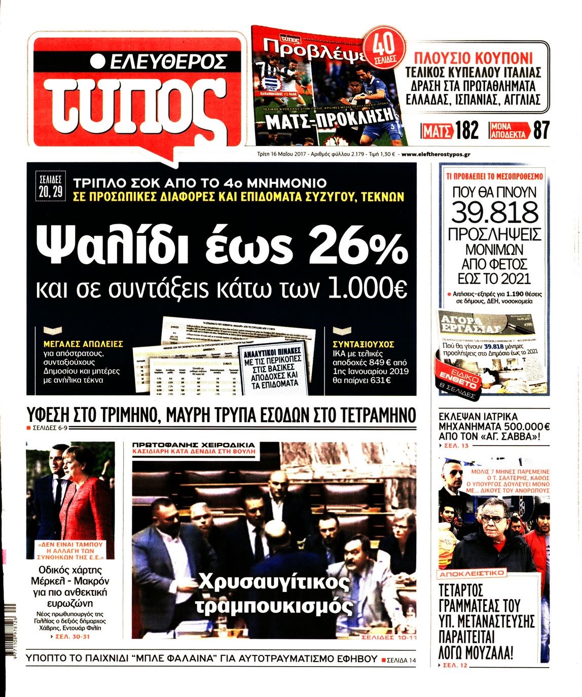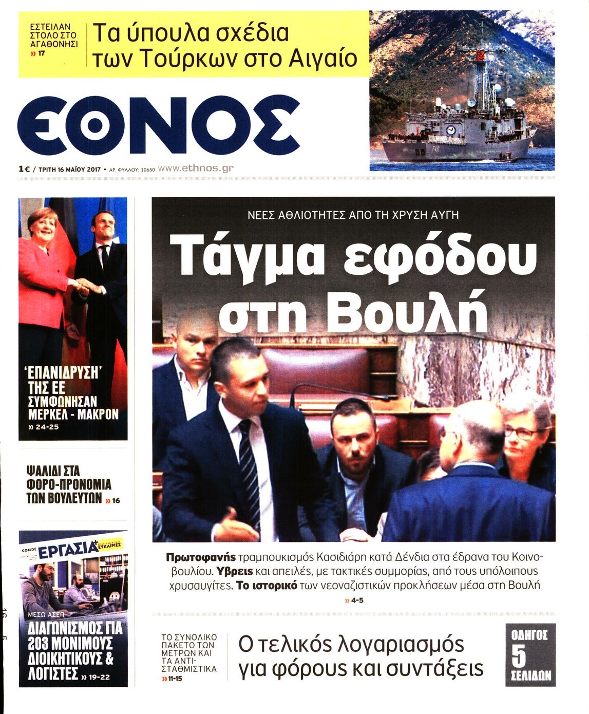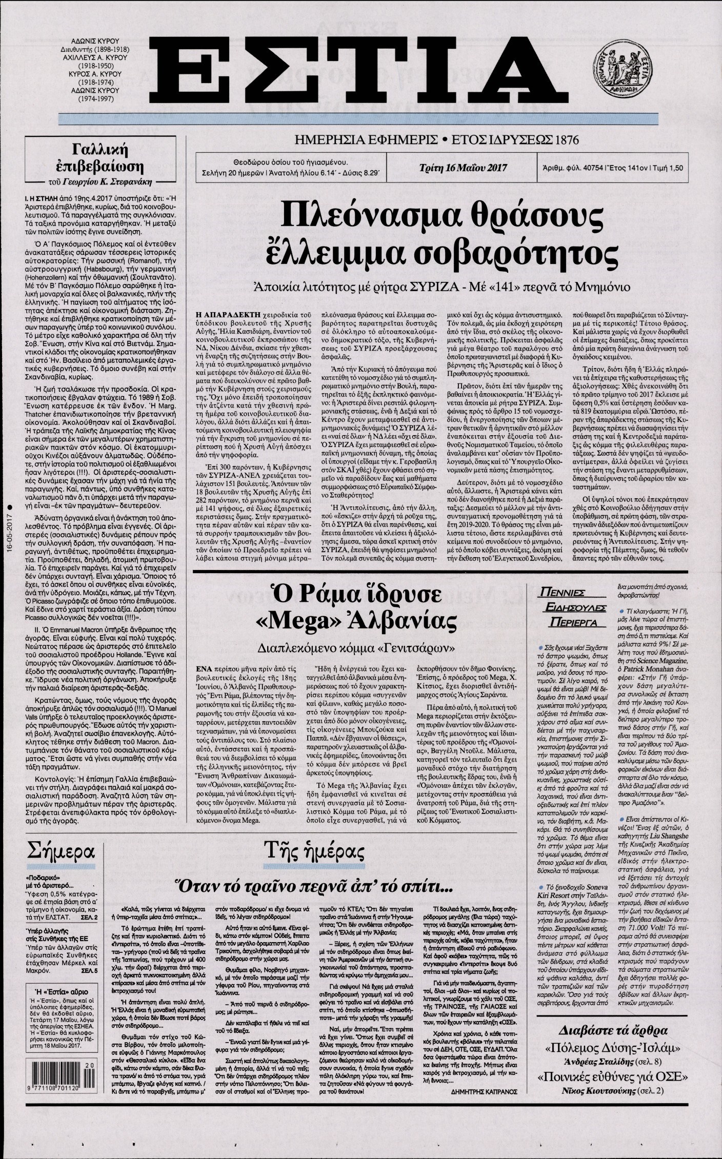 Οι πολιτικές εφημερίδες 16/5/2017 Enikos Newsroom 06:47, Τρίτη 16 Μαΐου 2017 Media Διαβάστε τα σημερινά πρωτοσέλιδα των πολιτικών εφημερίδων: ΠΟΛΙΤΙΚΕΣ ΕΦΗΜΕΡΙΔΕΣ ΠΡΩΤΟΣΕΛΙΔΑ Μοιράσου το: σχολίασε κι εσύ (0 σχόλια) Ακολουθήστε το enikos.gr στο Google News και μάθετε πρώτοι όλες τις ειδήσεις Δείτε όλες τις τελευταίες ειδήσεις από την Ελλάδα και τον Κόσμο στο enikos.gr Ειδήσεις Ροή Ειδήσεων 5 ώρες πριν Εκτός ευρωομάδας ΣΥΡΙΖΑ ο Νίκος Παππάς μετά την επίθεση στον δημοσιογράφο Νίκο Γιαννόπουλο – Η μήνυση και οι νέες δηλώσεις 6 ώρες πριν «Αγριεύουν» οι αγρότες: «Δεν συντρέχει λόγος συνάντησης με τον πρωθυπουργό» – Ώρα αποφάσεων στη σύσκεψη της Πέμπτης 6 ώρες πριν Κυψέλη: Χωρίς την οικογένειά της δίπλα της απολογήθηκε η 16χρονη – «Της είχε επιτεθεί κάποιος για να την βιάσει, φοβήθηκε και κυκλοφορούσε με μαχαίρι» 5 ώρες πριν Politico: Το πρόβλημα της Ευρώπης δεν είναι το Βέλγιο αλλά ο Ντόναλντ Τραμπ 7 ώρες πριν Αλεξανδρούπολη: Πολυοργανική ανεπάρκεια λόγω υποσιτισμού η αιτία θανάτου του 3χρονου αγοριού 6 ώρες πριν Μυστήριο με τεράστιες κυκλικές πέτρες 200 κιλών – Ανακαλύφθηκαν τυχαία κατά τη διάρκεια οδικών έργων και κανείς δεν ξέρει από πού προέρχονται 7 ώρες πριν Ύπνος: Ειδικός εξηγεί τον πραγματικό λόγο που ξυπνάτε στις 4 τα ξημερώματα – Ο ρόλος των ορμονών και του κιρκάδιου ρυθμού 8 ώρες πριν Αριθμολογία: Οι άνθρωποι που έχουν γεννηθεί αυτές τις 4 ημερομηνίες, είναι τρυφεροί και αγαπούν ανιδιοτελώς 19 ώρες πριν 20 χρόνια τα Χριστούγεννα ξεκινούν στα Public με μεγάλη ποικιλία σε δώρα! 4 λεπτά πριν Κτηνοτρόφοι: Με δάκρυα στα μάτια ζουν τον εφιάλτη των άδειων στάβλων – «Καταστράφηκαν οι ζωές μας» 19 λεπτά πριν Νέο αμερικανικό πλήγμα σε σκάφος που φέρεται να μετέφερε ναρκωτικά στον Ειρηνικό – Τέσσερις νεκροί 34 λεπτά πριν Αλ Τσαντίρι Νιουζ: «Λύγισε» ο Δημήτρης Λάλος για τον Δημήτρη Ήμελλο – «Τον μνημονεύω, να ‘ναι καλά εκεί που είναι» 49 λεπτά πριν GNTM: Με δάκρυα τον αποχαιρέτησε η Ηλιάνα Παπαγεωργίου πριν από τον ημιτελικό – «Αισθάνομαι πολύ παράξενα» 1 ώρα πριν Αμερικανικά στρατεύματα στον Ισημερινό για «προσωρινή» επιχείρηση κατά των ναρκωτικών ENIKOS NETWORK Αϋπνία: Το κόλπο που θα σας βοηθήσει να κοιμηθείτε απόψε – Είναι απλό και έχει αποτέλεσμα 2,6 εκατομμύρια πολίτες έχουν ήδη εμβολιαστεί κατά της γρίπης ΕΛΣΤΑΤ: Τι δείχνουν τα νέα στοιχεία για τις ηλεκτρονικές παραγγελίες των επιχειρήσεων ΚΕΠΕ: Οι 3 διακριτές συμβολές των ΜμΕ και της μεταποίησης στην ελληνική οικονομία Χαρτογραφώντας το «σημείο χωρίς επιστροφή»: Για πρώτη φορά αποκαλύπτεται με λεπτομέρεια το ακανθώδες όριο της ατμόσφαιρας τ... Η Google καταργεί τη λειτουργία «dark web report» – Πώς θα μπορούν οι χρήστες να διαγράφουν τα δεδομένα τους περισσότερα 02:30 , Πέμπτη 18 Δεκεμβρίου 2025 Αλ Τσαντίρι Νιουζ: Η κόρη της Πάολα στο κοινό – Η ατάκα Λαζόπουλου που την έκανε να «κοκκινήσει» Γιορτινή διάθεση και ευχάριστες στιγμές γέμισε η αποψινή, τελευταία για το 2025, εκπομπή του «... 22:24 , Τετάρτη 17 Δεκεμβρίου 2025 Το Σπίτι Δίπλα Στο Ποτάμι: Σε κίνδυνο η υγεία του Απόστολου – Τι θα δούμε απόψε “Το Σπίτι Δίπλα στο Ποτάμι” ξετυλίγει το νήμα της ζωής των πέντε αδελφών με καταισ... 21:14 , Τετάρτη 17 Δεκεμβρίου 2025 Παιχνίδια Εκδίκησης: Θα καταφέρει ο Χρήστος να κλονίσει την εμπιστοσύνη της Μάγιας απέναντι στον Άγη; Τα «Παιχνίδια Εκδίκησης» έρχονται απόψε στις 22:30, στον Αντ1, με το τελευταίο επεισόδιο της χ... 20:57 , Τετάρτη 17 Δεκεμβρίου 2025 Άγιος Έρωτας: Η Χλόη καταθέ