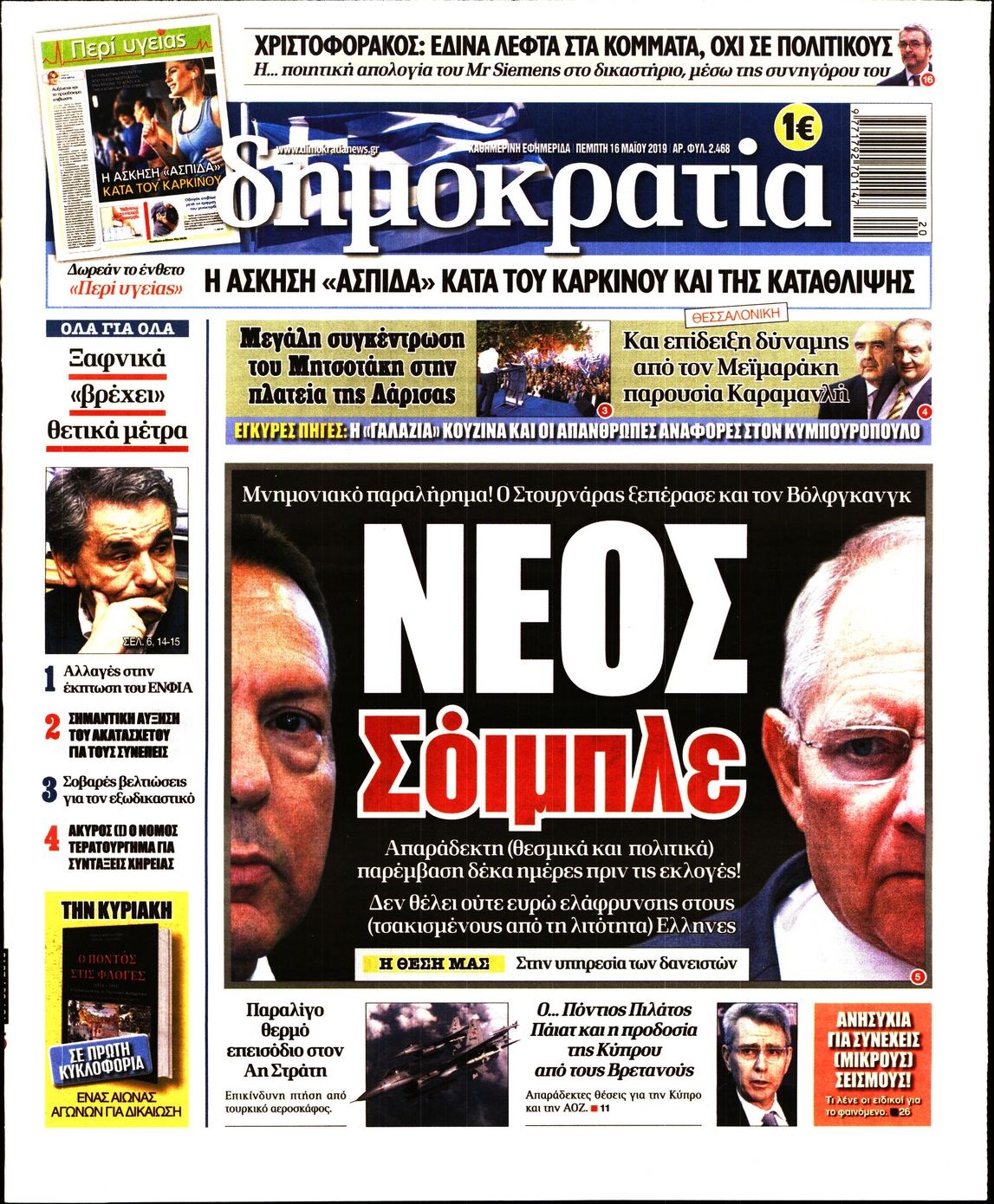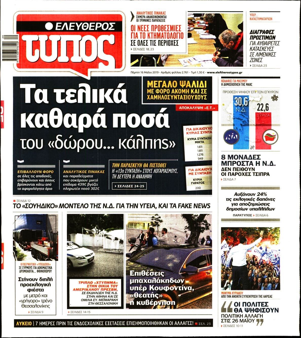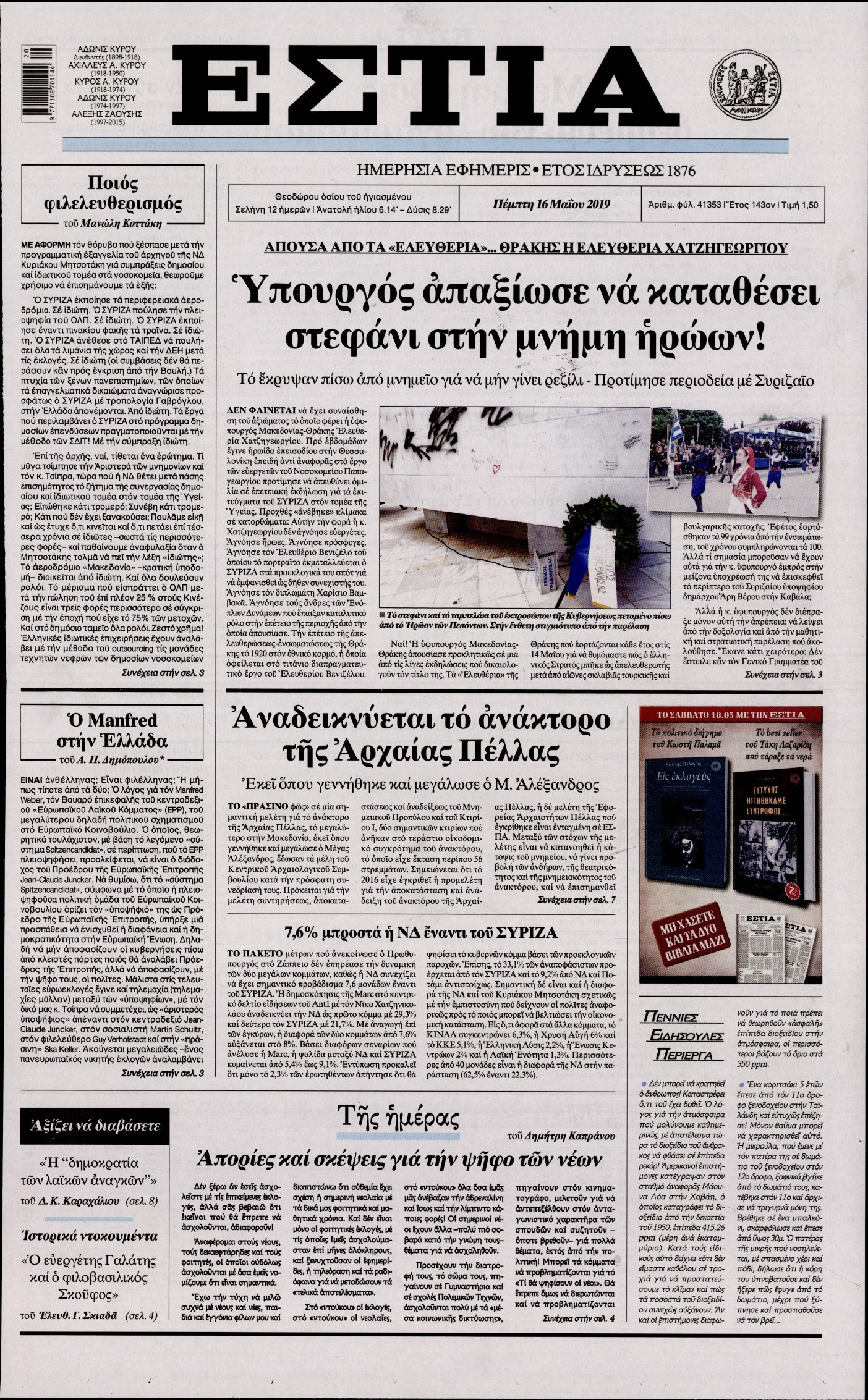 Οι πολιτικές εφημερίδες 16/5/2019 Enikos Newsroom 06:51, Πέμπτη 16 Μαΐου 2019 Media Διαβάστε τα πρωτοσέλιδα των πολιτικών εφημερίδων: ΠΟΛΙΤΙΚΕΣ ΕΦΗΜΕΡΙΔΕΣ ΠΡΩΤΟΣΕΛΙΔΑ Μοιράσου το: σχολίασε κι εσύ (0 σχόλια) Ακολουθήστε το enikos.gr στο Google News και μάθετε πρώτοι όλες τις ειδήσεις Δείτε όλες τις τελευταίες ειδήσεις από την Ελλάδα και τον Κόσμο στο enikos.gr Ειδήσεις Ροή Ειδήσεων 18 λεπτά πριν Ζελένσκι: Μόνο οι ΗΠΑ και ο Τραμπ μπορούν να πιέσουν τη Ρωσία να βάλει τέλος στον πόλεμο 36 λεπτά πριν Φοινικούντα: Προφυλακιστέος ο 30χρονος για συνέργεια στη διπλή δολοφονία – Και άλλα πρόσωπα στο «μικροσκόπιο» 2 ώρες πριν Κυριάκος Μητσοτάκης: Στην Ιερουσαλήμ την Τρίτη ο Πρωθυπουργός για την τριμερή Ελλάδας, Κύπρου, Ισραήλ – Θα συναντηθεί και με τον Αμπάς 5 ώρες πριν Πώς δρούσε το κύκλωμα που διακινούσε ναρκωτικά σε σχολεία – Υπέβαλαν σε βασανιστήρια όσους δεν τηρούσαν τους «κανόνες πειθαρχίας» 1 ώρα πριν Πάπας Λέων: Όταν έχει αϋπνίες επενδύει παραγωγικά τον χρόνο του – Ποιο παιχνίδι παίζει στο κινητό 28 λεπτά πριν Αριθμολογία: Ο αριθμός του φύλακα αγγέλου σας, με βάση τον μήνα γέννησής σας – «Έτσι σας στέλνει σημάδια το σύμπαν» 1 ώρα πριν Πώς να απαλλαγείτε από τη μυρωδιά του τηγανητού φαγητού: Το μυστικό βρίσκεται στην κουζίνα σας 2 ώρες πριν Μήπως οι γιορτές σας δεν είναι τόσο τέλειες; 7 χριστουγεννιάτικες συνήθειες που μαρτυρούν ότι μια οικογένεια είναι δυσλειτουργική 12 ώρες πριν Enerwave: Το νέο «ρεύμα» στη λιανική ενέργειας που αλλάζει την εμπειρία του καταναλωτή 10 λεπτά πριν Εριέττα Μανούρη: «Έχω νιώσει ανταγωνισμό από άντρες, μύθος αυτό που λένε για τις γυναίκες» 18 λεπτά πριν Ζελένσκι: Μόνο οι ΗΠΑ και ο Τραμπ μπορούν να πιέσουν τη Ρωσία να βάλει τέλος στον πόλεμο 28 λεπτά πριν Αριθμολογία: Ο αριθμός του φύλακα αγγέλου σας, με βάση τον μήνα γέννησής σας – «Έτσι σας στέλνει σημάδια το σύμπαν» 36 λεπτά πριν Φοινικούντα: Προφυλακιστέος ο 30χρονος για συνέργεια στη διπλή δολοφονία – Και άλλα πρόσωπα στο «μικροσκόπιο» 48 λεπτά πριν Super League: Ο Σιαμπάνης «κατέβασε ρολά» και ο Βόλος νίκησε 1-0 τον Παναιτωλικό ENIKOS NETWORK Οι γυναίκες αποκαλύπτουν το πιο ελκυστικό πράγμα που μπορεί να κάνει ένας άνδρας Ομορφιά και αντιγήρανση: Ειδικοί μιλούν για συσκευές περιποίησης του δέρματος Εφορία: 7 αλλαγές σε δηλώσεις και ελέγχους ακινήτων – Όλα όσα πρέπει να γνωρίζετε Πορτοκαλί τιμολόγια ρεύματος: Τα σημεία που πρέπει να προσέξουν οι καταναλωτές – Πότε θα εφαρμοστούν Χαρτογραφώντας το «σημείο χωρίς επιστροφή»: Για πρώτη φορά αποκαλύπτεται με λεπτομέρεια το ακανθώδες όριο της ατμόσφαιρας τ... Η Google καταργεί τη λειτουργία «dark web report» – Πώς θα μπορούν οι χρήστες να διαγράφουν τα δεδομένα τους περισσότερα 20:30 , Σάββατο 20 Δεκεμβρίου 2025 Αυτή την Κυριακή με τη Realnews: Instyle, μαζί Drive και Realnews Geopolitics Αυτή την Κυριακή με τη Realnews: Instyle, μαζί Drive και Realnews Geopolitics Instyle Η Άννα Ρ... 20:28 , Σάββατο 20 Δεκεμβρίου 2025 Ο ΑΝΤ1 γεμίζει τις γιορτές με μουσική – Ποιους καλλιτέχνες θα απολαύσουμε Φέτος στον ΑΝΤ1 γιορτάζουμε τις νύχτες μας παρέα με αγαπημένους καλλιτέχνες και μεγάλες μουσι... 18:19 , Σάββατο 20 Δεκεμβρίου 2025 HOTΕΛ ΕΛVIRA: Η Ελβίρα μαθαίνει πως ο Χάρι μένει κρυφά στο ξενοδοχείο του Παντελή Συνεχίζονται οι εκλογές για πρόεδρο, στο νέο επεισόδιο της κωμικής σειράς του MEGA, HOTΕΛ ΕΛVI... 14:04 , Σάββατο 20 Δεκεμβρίου 2025 Η Realnews αυτής της Κυριακής (21/12/2025) Με τίτλο: «Ασπίδα προστασίας για την Ελλάδα» κυκλοφορεί, αυτήν την Κυριακή, η Realnews. Σημαντ... ΤΕΛ