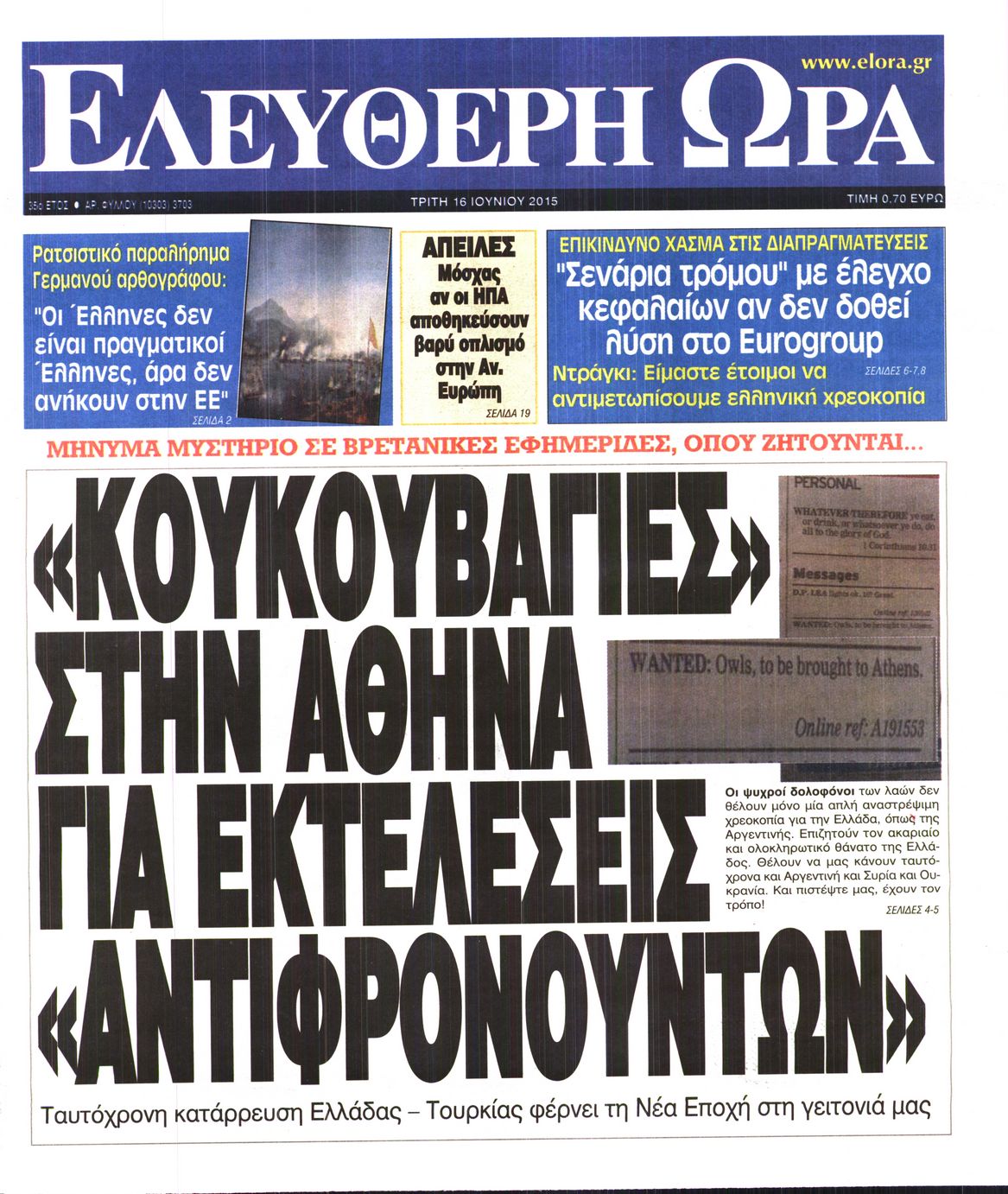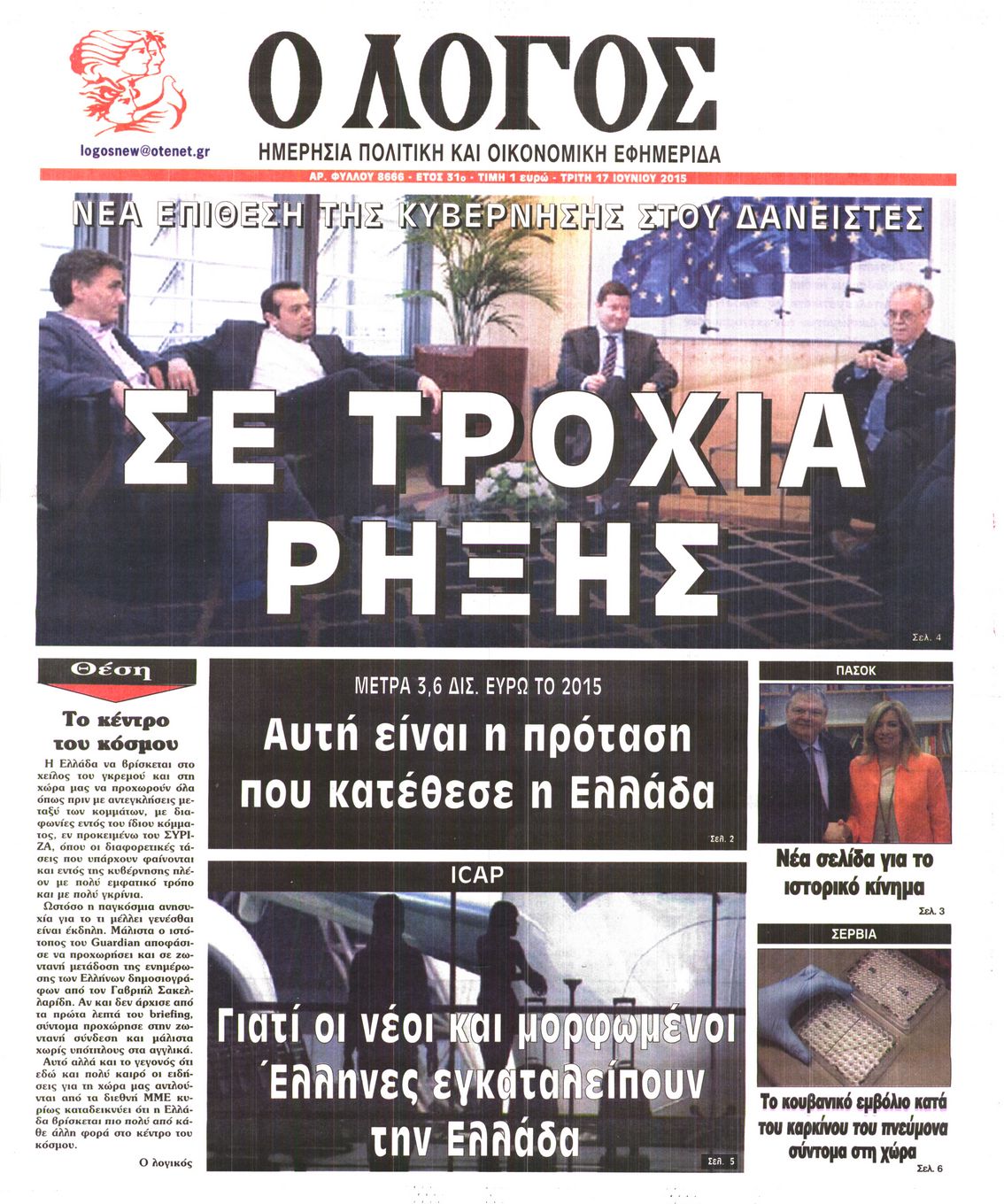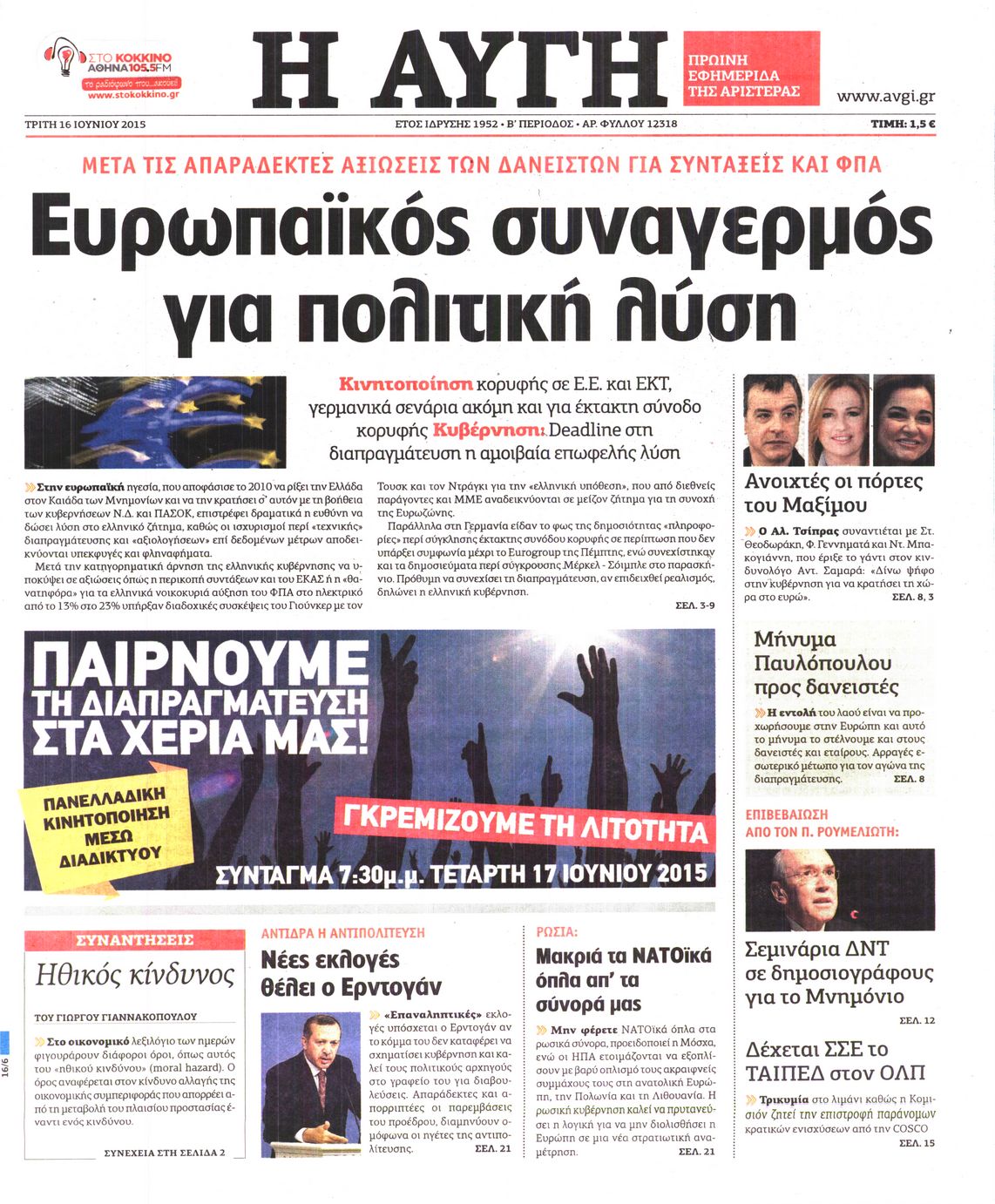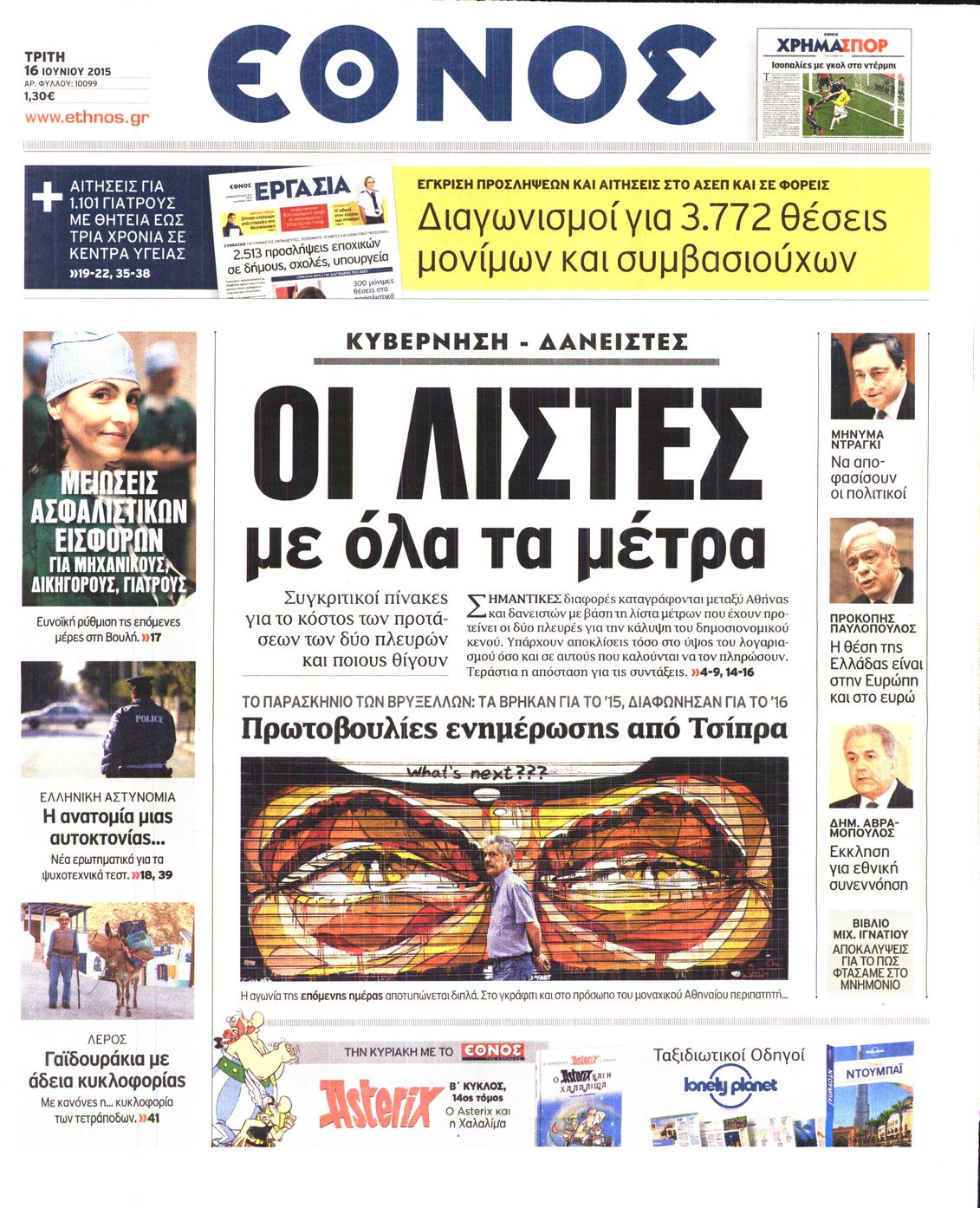 Οι πολιτικές εφημερίδες 16/6/2015 Enikos Newsroom 06:49, Τρίτη 16 Ιουνίου 2015 Media Διαβάστε τα σημερινά πρωτοσέλιδα των πολιτικών εφημερίδων: ΠΟΛΙΤΙΚΕΣ ΕΦΗΜΕΡΙΔΕΣ ΠΡΩΤΟΣΕΛΙΔΑ Μοιράσου το: σχολίασε κι εσύ (0 σχόλια) Ακολουθήστε το enikos.gr στο Google News και μάθετε πρώτοι όλες τις ειδήσεις Δείτε όλες τις τελευταίες ειδήσεις από την Ελλάδα και τον Κόσμο στο enikos.gr Ειδήσεις Ροή Ειδήσεων 58 λεπτά πριν Μεσόγειος: Η διαδρομή του ρωσικού τάνκερ «Qendil» και η στοχευμένη επίθεση της Ουκρανίας με drone – Ο Πούτιν προειδοποίησε για αντίποινα 53 λεπτά πριν Αττική: Θρίλερ με νεκρό βρέφος 5 μηνών – Κοιμόταν στο ίδιο κρεβάτι με τους γονείς του 2 ώρες πριν Από το Ορμένιο ως τα Μάλγαρα κι από τη Σιάτιστα μέχρι τη Νίκαια: Μπλόκα σε όλη την Ελλάδα – Το Σάββατο ανοίγουν τα διόδια οι αγρότες 2 ώρες πριν «Έλληνας Εσκομπάρ»: Φωτογραφίες με τους 4 τόνους κοκαΐνης που κατασχέθηκαν από το σκάφος «Ουρανία» 3 ώρες πριν Πούτιν: Σαρκαστικά μηνύματα, παράπονα και απρόοπτα στη συνέντευξη Τύπου – Η πρόταση γάμου on air και οι ερωτήσεις για τα αγγούρια και τους… εξωγήινους 3 ώρες πριν Τα 5 ζώδια που ευνοούνται στην ερωτική ζωή τους την επόμενη εβδομάδα – «Η ενέργεια του Αιγόκερου φέρνει αγάπη και σταθερότητα» 7 ώρες πριν Ειδικός μοιράζεται 6 κόλπα για να διατηρείστε σε φόρμα με πάνω από 40 ώρες εργασίας την εβδομάδα: «Προπονηθείτε πριν από τη δουλειά, όχι μετά» 4 ώρες πριν Αυτό το έξυπνο μαθηματικό κόλπο θα μπορούσε να αλλάξει τον τρόπο με τον οποίο οι επιστήμονες μελετούν τους σεισμούς 2 ώρες πριν Κουίζ για την παλιά Αθήνα: Αναγνωρίζετε την περιοχή; Έχετε περάσει 100% από εκεί 5 λεπτά πριν Τέμπη: Διεκόπη για τις 9 Ιανουαρίου η δίκη για τα χαμένα βίντεο της εμπορικής αμαξοστοιχίας – «Απαιτούμε να μας σέβονται» 10 λεπτά πριν Hellenic Train: Αλλαγές και καταργήσεις δρομολογίων λεωφορείων λόγω των αγροτικών κινητοποιήσεων 16 λεπτά πριν Ζελένσκι: «Δεν χρειάζεται αναθεώρηση του Συντάγματος» για να εγκαταλείψει η Ουκρανία τον στόχο ένταξης στο ΝΑΤΟ 21 λεπτά πριν Παναγιώτα Βλαντή: Η τρυφερή εξομολόγηση για τον σύζυγό της – «Πραγματικά ήταν για μένα αυτό που ήθελα σε όλη μου τη ζωή» 27 λεπτά πριν Επίσημη η «βόμβα»: Ο ΠΑΟΚ ανακοίνωσε την απόκτηση του Πάτρικ Μπέβερλι ENIKOS NETWORK «Η σούπερ» γρίπη εξαπλώνεται στην Ευρώπη-Στοιχεία για την αποτελεσματικότητα του εμβολίου από το ECDC ΕΛΣΤΑΤ: Αύξηση κατά 1,7% των επαγγελματιών υγείας το 2024 Η απάντηση της κυβέρνησης στα αιτήματα των αγροτών: 16 έχουν ικανοποιηθεί, 4 βρίσκονται υπό επεξεργασία και 7 δεν είναι εφι... Μισθολογική διαφάνεια: Το 68% των εργαζομένων αγνοεί τη νέα οδηγία – Αναλυτικά τα στοιχεία έρευνας Χαρτογραφώντας το «σημείο χωρίς επιστροφή»: Για πρώτη φορά αποκαλύπτεται με λεπτομέρεια το ακανθώδες όριο της ατμόσφαιρας τ... Η Google καταργεί τη λειτουργία «dark web report» – Πώς θα μπορούν οι χρήστες να διαγράφουν τα δεδομένα τους περισσότερα 18:11 , Παρασκευή 19 Δεκεμβρίου 2025 Το σόι σου: Ο Άρης έρχεται στην Ελλάδα για τις γιορτές των Χριστουγέννων – Τι θα δούμε στο αποψινό εορταστικό επεισόδιο Ένα απολαυστικό, εορταστικό επεισόδιο της σειράς “Το σόι σου”, γεμάτο ευτράπελα αλ... 15:15 , Παρασκευή 19 Δεκεμβρίου 2025 Την Κυριακή με τη Realnews: Ό,τι και αν αγοράσεις, σκανάρεις και κερδίζεις! Την Κυριακή με τη Realnews: Ό,τι και αν αγοράσεις, σκανάρεις και κερδίζεις! Με το PADU app, το... 08:00 , Παρασκευή 19 Δεκεμβρίου 2025 Την Κυριακή με τη Realnews: Δωροεπιταγή 10€ Δωροεπιταγή αξίας 10€ για αγορές άνω των 60€ από τα πολυκαταστήμα