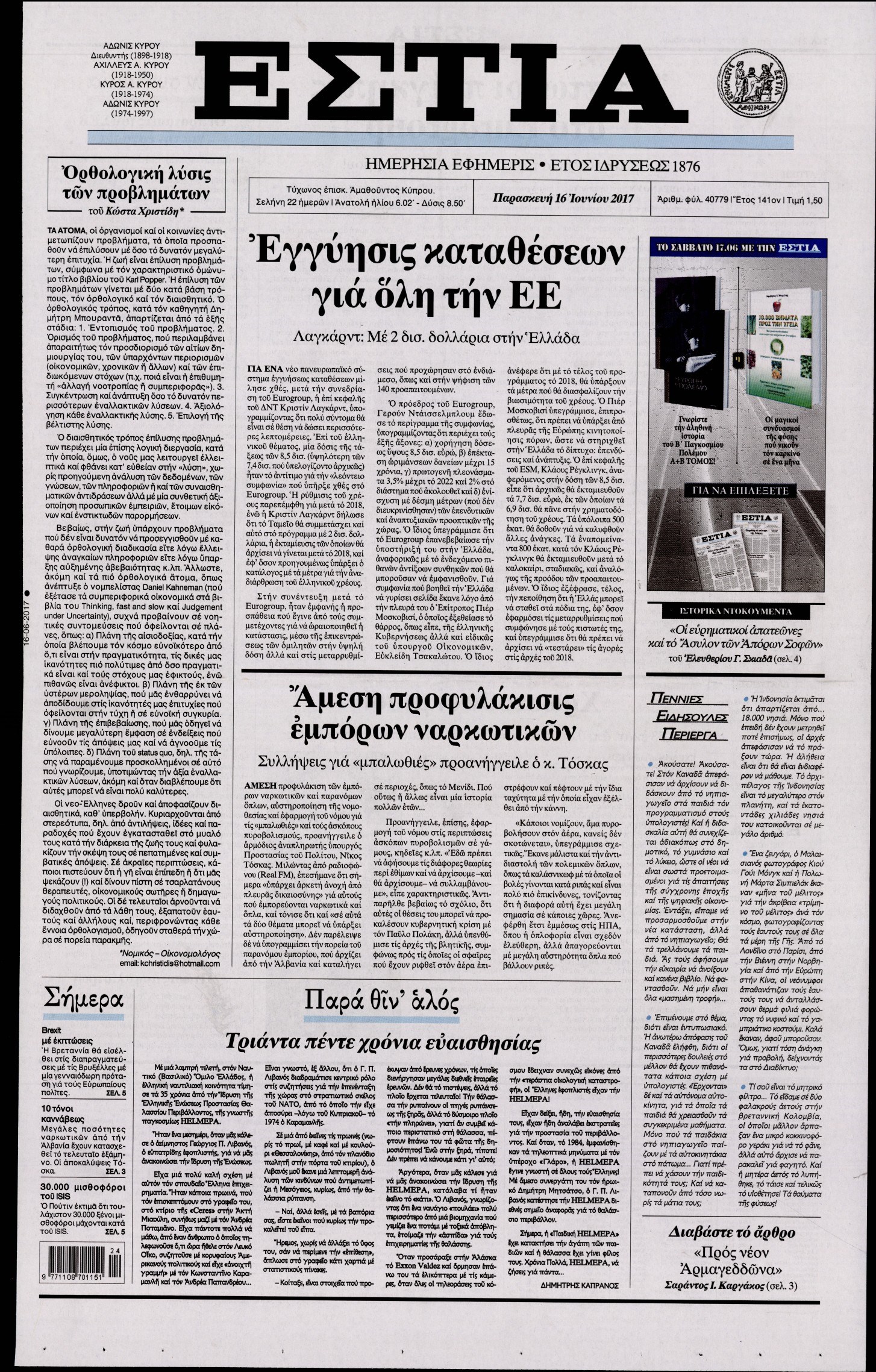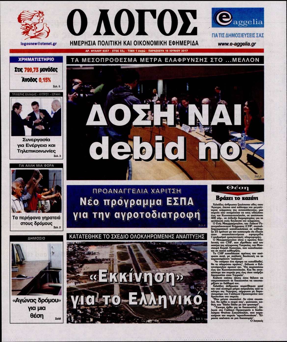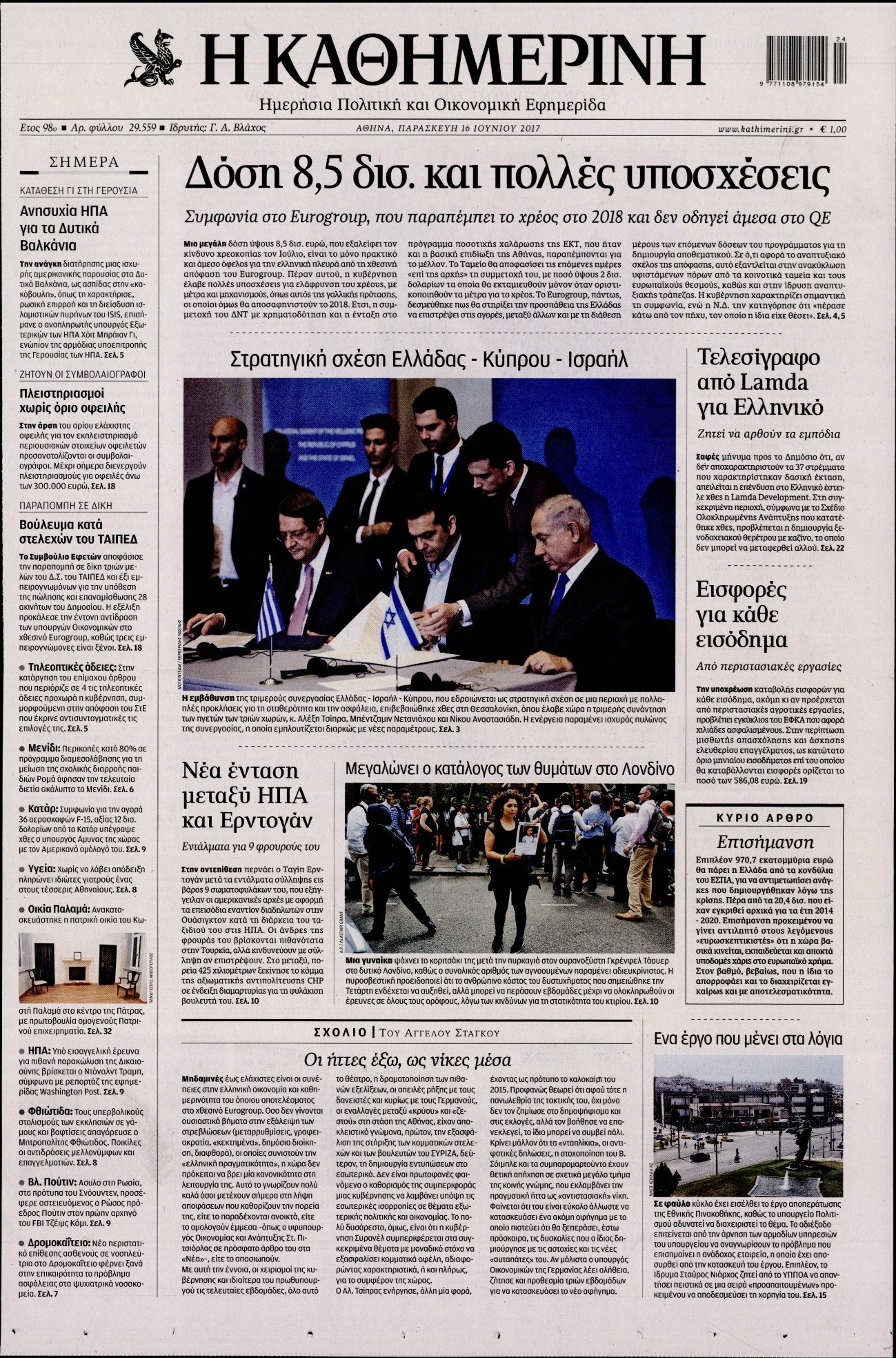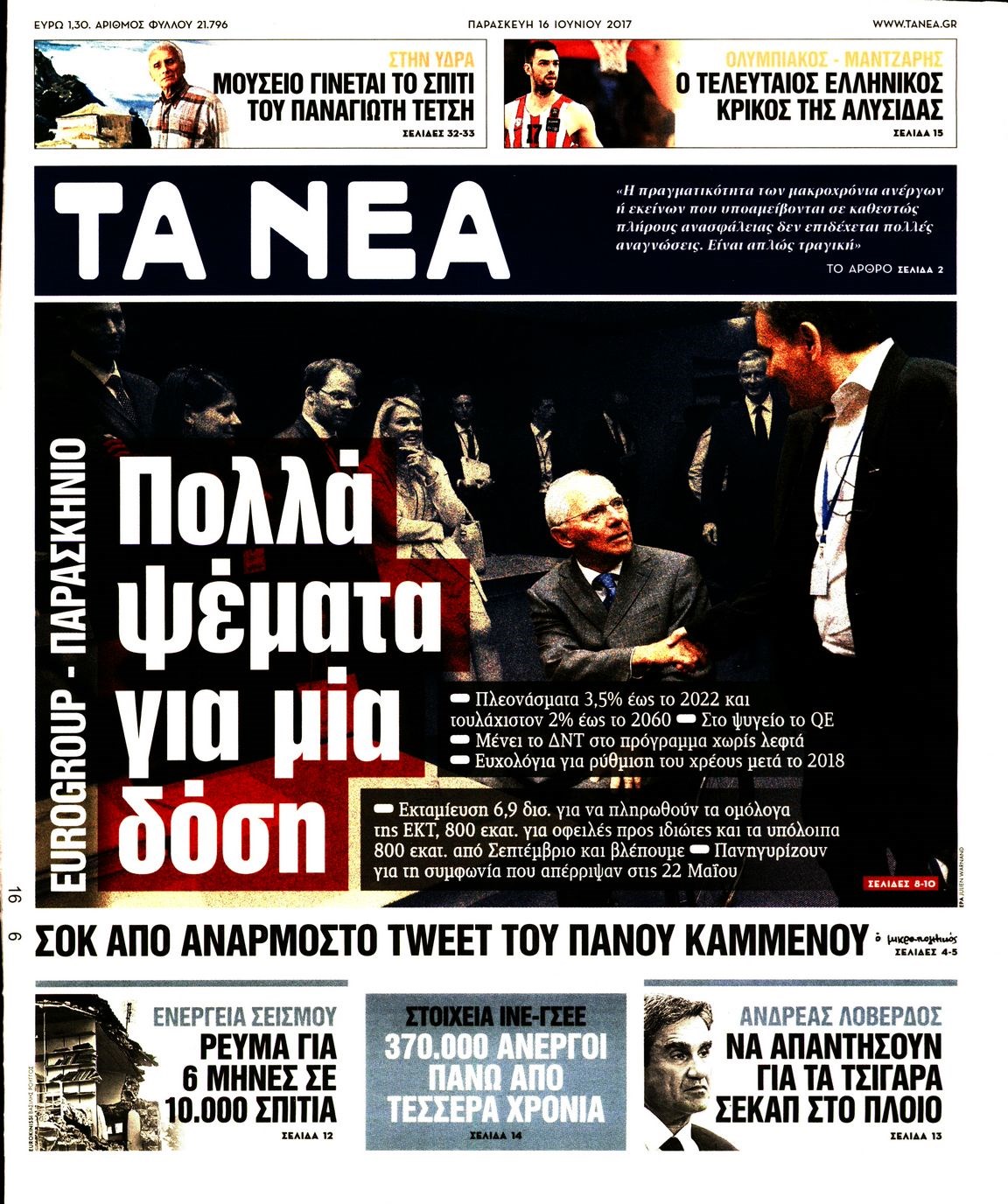 Οι πολιτικές εφημερίδες 16/6/2017 Enikos Newsroom 07:05, Παρασκευή 16 Ιουνίου 2017 Media Διαβάστε τα σημερινά πρωτοσέλιδα των πολιτικών εφημερίδων: ΠΟΛΙΤΙΚΕΣ ΕΦΗΜΕΡΙΔΕΣ ΠΡΩΤΟΣΕΛΙΔΑ Μοιράσου το: σχολίασε κι εσύ (0 σχόλια) Ακολουθήστε το enikos.gr στο Google News και μάθετε πρώτοι όλες τις ειδήσεις Δείτε όλες τις τελευταίες ειδήσεις από την Ελλάδα και τον Κόσμο στο enikos.gr Ειδήσεις Ροή Ειδήσεων 2 ώρες πριν Κλιμακώνουν από σήμερα τις κινητοποιήσεις οι αγρότες: Νέα μπλόκα, κλείσιμο παρακαμπτηρίων και άνοιγμα διοδίων – Το νέο μήνυμα Μητσοτάκη 42 λεπτά πριν Ευρωπαϊκό Συμβούλιο: Όλες οι λεπτομέρειες για το δάνειο των 90 δισ. ευρώ στην Ουκρανία – Τα συμπεράσματα της Συνόδου Κορυφής 25 λεπτά πριν Νίκος Παππάς: Δρομολογήθηκαν οι διαδικασίες για τη διαγραφή του από τον ΣΥΡΙΖΑ μέσα στις γιορτές 2 ώρες πριν Συντάξεις: Οι κερδισμένοι και οι χαμένοι από τις αυξήσεις – Αναλυτικός οδηγός και παραδείγματα 45 λεπτά πριν Peter Greene: Ο πρωταγωνιστής του «Pulp Fiction» είχε τραύματα στο σώμα του όταν βρέθηκε νεκρός στο αιματοβαμμένο διαμέρισμα 3 ώρες πριν Κρύα χέρια και πόδια: Γιατρός εξηγεί ποια είναι η αίτια και πότε πρέπει να ανησυχήσετε 1 ώρα πριν Πώς το αρχαίο DNA του κυνηγού – συλλέκτη ξεκλείδωσε τα μυστικά της μακροζωίας 2 ημέρες πριν 20 χρόνια τα Χριστούγεννα ξεκινούν στα Public με μεγάλη ποικιλία σε δώρα! 20 λεπτά πριν Ο σύζυγός της συμπεριφέρεται όπως το παιδί τους – «Χρησιμοποιεί αστείες δικαιολογίες για να μην κάνει δουλειές και να ξοδεύει λεφτά» 4 λεπτά πριν Στην Ουάσινγκτον ο Άδωνις Γεωργιάδης – Επαφές σε Καπιτώλιο και Λευκό Οίκο για Υγεία και αμερικανικές επενδύσεις 10 λεπτά πριν Ηρώ Κυριακάκη: Η σπάνια δημόσια εμφάνιση της 94χρονης ηθοποιού – «Είναι τόσο μεγάλη η συγκίνησή μου» 15 λεπτά πριν Πούτιν: Σήμερα η μαραθώνια συνέντευξη Τύπου για τον ετήσιο απολογισμό του – Τι αναμένεται να πει 20 λεπτά πριν Ο σύζυγός της συμπεριφέρεται όπως το παιδί τους – «Χρησιμοποιεί αστείες δικαιολογίες για να μην κάνει δουλειές και να ξοδεύει λεφτά» 25 λεπτά πριν Νίκος Παππάς: Δρομολογήθηκαν οι διαδικασίες για τη διαγραφή του από τον ΣΥΡΙΖΑ μέσα στις γιορτές ENIKOS NETWORK 24χρονη που έπασχε από καρκίνο του εντέρου αγνόησε 3 βασικά συμπτώματα: «Μην κάνετε το ίδιο λάθος με μένα» Άνοια: Ειδικοί προειδοποιούν για 5 κοινές συνήθειες που μπορεί να αυξήσουν τον κίνδυνο Συντάξεις: Οι κερδισμένοι και οι χαμένοι από τις αυξήσεις – Αναλυτικός οδηγός Στεγαστικό: Τι λέει η ΠΟΜΙΔΑ για τα νέα μέτρα που ανακοίνωσε ο Κυριάκος Μητσοτάκης Χαρτογραφώντας το «σημείο χωρίς επιστροφή»: Για πρώτη φορά αποκαλύπτεται με λεπτομέρεια το ακανθώδες όριο της ατμόσφαιρας τ... Η Google καταργεί τη λειτουργία «dark web report» – Πώς θα μπορούν οι χρήστες να διαγράφουν τα δεδομένα τους περισσότερα 08:00 , Παρασκευή 19 Δεκεμβρίου 2025 Την Κυριακή με τη Realnews: Δωροεπιταγή 10€ Δωροεπιταγή αξίας 10€ για αγορές άνω των 60€ από τα πολυκαταστήματα FactoryOutlet H προσφορά ι... 05:48 , Παρασκευή 19 Δεκεμβρίου 2025 Οι οικονομικές εφημερίδες 19/12/2025 Διαβάστε τα πρωτοσέλιδα από τις οικονομικές εφημερίδες, σήμερα 19/12/2025. 05:43 , Παρασκευή 19 Δεκεμβρίου 2025 Οι αθλητικές εφημερίδες 19/12/2025 Διαβάστε τα πρωτοσέλιδα από τις αθλητικές εφημερίδες, σήμερα 19/12/2025. 05:38 , Παρασκευή 19 Δεκεμβρίου 2025 Οι πολιτικές εφημερίδες 19/12/2025 Διαβάστε τα πρωτοσέλιδα από τις πολιτικές εφημερίδες, σήμερα 19/12/2025. ΤΕΛΕΥΤΑΙΕΣ ΕΙΔΗΣΕΙΣ 4 λεπτά πριν Στην Ουάσινγκτον ο Άδωνις Γεωργιάδης – Επαφές σε... 10 λεπτά πριν Ηρώ Κυριακάκη: Η σπ