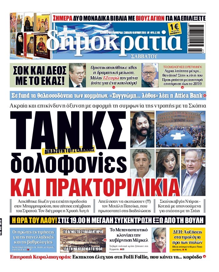 Οι πολιτικές εφημερίδες 16/6/2018 Enikos Newsroom 06:07, Σάββατο 16 Ιουνίου 2018 Media Διαβάστε τα σημερινά πρωτοσέλιδα των πολιτικών εφημερίδων. ΕΦΗΜΕΡΙΔΕΣ ΠΟΛΙΤΙΚΕΣ ΕΦΗΜΕΡΙΔΕΣ ΠΡΩΤΟΣΕΛΙΔΑ Μοιράσου το: σχολίασε κι εσύ (0 σχόλια) Ακολουθήστε το enikos.gr στο Google News και μάθετε πρώτοι όλες τις ειδήσεις Δείτε όλες τις τελευταίες ειδήσεις από την Ελλάδα και τον Κόσμο στο enikos.gr Ειδήσεις Ροή Ειδήσεων 1 ώρα πριν Υπόθεση Έπσταϊν: Το Υπουργείο Δικαιοσύνης δημοσιοποίησε μια σειρά από εξαιρετικά επεξεργασμένα αρχεία – «Λείπουν τα πιο σημαντικά έγγραφα», λένε οι Δημοκρατικοί 31 λεπτά πριν Ο «χάρτης» με τις αυξήσεις και τις φοροελαφρύνσεις του 2026 – Ποιοι και πόσα κερδίζουν 11 ώρες πριν Χριστούγεννα στα μπλόκα: Επιμένουν στις κινητοποιήσεις τους οι αγρότες – Ανοίγουν τα διόδια το Σαββατοκύριακο 2 ώρες πριν ΟΝΕΧ – MEGATUGS: Ξεκίνησε η ναυπήγηση ρυμουλκών στην Ελλάδα – Προθάλαμος πολεμικών πλοίων – Δείτε φωτογραφίες και βίντεο 1 ώρα πριν Καιρός: Αλλαγή σκηνικού σήμερα με βροχές και πτώση της θερμοκρασίας – Οι προβλέψεις των μετεωρολόγων για τα Χριστούγεννα 3 ώρες πριν Αυγά: Πόσα μπορείτε να τρώτε την ημέρα με ασφάλεια για μέγιστη πρόσληψη πρωτεΐνης 4 ώρες πριν Τα ζώδια σήμερα, Σάββατο 20 Δεκεμβρίου: Παρθένοι, το σύμπαν σας δίνει το κλειδί 3 ώρες πριν Οπτική ψευδαίσθηση: Μόνο αν είσαι ο Σέρλοκ Χολμς θα βρεις τον αριθμό «87» σε 7 δευτερόλεπτα 1 ώρα πριν Αρχαιολόγοι ανακάλυψαν σε χωράφι απεικόνιση 600 ετών ενός Αγίου – Τα στοιχεία που δείχνουν ότι μαρτύρησε 3 λεπτά πριν Παιδική υπέρταση: Μια σιωπηλή απειλή που αυξάνεται διεθνώς 4 λεπτά πριν Αγχώνεται για το χριστουγεννιάτικο δώρο που πήρε στην πλούσια σύντροφό του – «Φοβάμαι πως θα το βρει φθηνιάρικο, φοράει βραχιόλια Cartier» 10 λεπτά πριν Enerwave: Το νέο «ρεύμα» στη λιανική ενέργειας που αλλάζει την εμπειρία του καταναλωτή 15 λεπτά πριν Γιώργος Μαζωνάκης: Τη Δευτέρα η μήνυση του τραγουδιστή κατά του 22χρονου 24 λεπτά πριν Αμαλία Κωστοπούλου: Το μήνυμα για το χειρουργείο στο γόνατο – «Αυτός ο τραυματισμός μού στέρησε πολλά…» ENIKOS NETWORK Πόσα κιλά παίρνουμε πραγματικά τα Χριστούγεννα, σύμφωνα με την επιστήμη – Πώς να το αποτρέψουμε; Το δημοφιλές ρόφημα που αυξάνει την πίεση πιο γρήγορα και από το αλάτι Mega χριστουγεννιάτικη φορολοταρία: «Κλείδωσε» η ημερομηνία για την κλήρωση – Ερωτήσεις και απαντήσεις Αναστολή μέτρων αναγκαστικής εκτέλεσης για κτηνοτρόφους που πλήττονται από την ευλογιά των αιγοπροβάτων Χαρτογραφώντας το «σημείο χωρίς επιστροφή»: Για πρώτη φορά αποκαλύπτεται με λεπτομέρεια το ακανθώδες όριο της ατμόσφαιρας τ... Η Google καταργεί τη λειτουργία «dark web report» – Πώς θα μπορούν οι χρήστες να διαγράφουν τα δεδομένα τους περισσότερα 08:14 , Σάββατο 20 Δεκεμβρίου 2025 Τρομεροί γονείς: Η Μαρία Καβογιάννη εισβάλλει στο σπίτι της οικογένειας Στεφανίδη Όσα θα δούμε στο νέο διπλό επεισόδιο της σειράς «Τρομεροί γονείς», σήμερα Σάββατο 20 Δεκεμβρίο... 05:48 , Σάββατο 20 Δεκεμβρίου 2025 Οι οικονομικές εφημερίδες 20/12/2025 Διαβάστε τα πρωτοσέλιδα από τις οικονομικές εφημερίδες, σήμερα 20/12/2025. 05:43 , Σάββατο 20 Δεκεμβρίου 2025 Οι αθλητικές εφημερίδες 20/12/2025 Διαβάστε τα πρωτοσέλιδα από τις αθλητικές εφημερίδες, σήμερα 20/12/2025. 05:38 , Σάββατο 20 Δεκεμβρίου 2025 Οι πολιτικές εφημερίδες 20/12/2025 Διαβάστε τα πρωτοσέλιδα από τις πολιτικές εφημερίδες, σήμερα 20/12/2025. ΤΕΛΕΥΤΑΙΕΣ ΕΙΔΗΣΕΙΣ 3 λεπτά πριν Παιδική υπέρταση: Μια σιωπηλή απειλή που αυξάνεται... 4 λεπτά πριν Αγχώνεται για το 