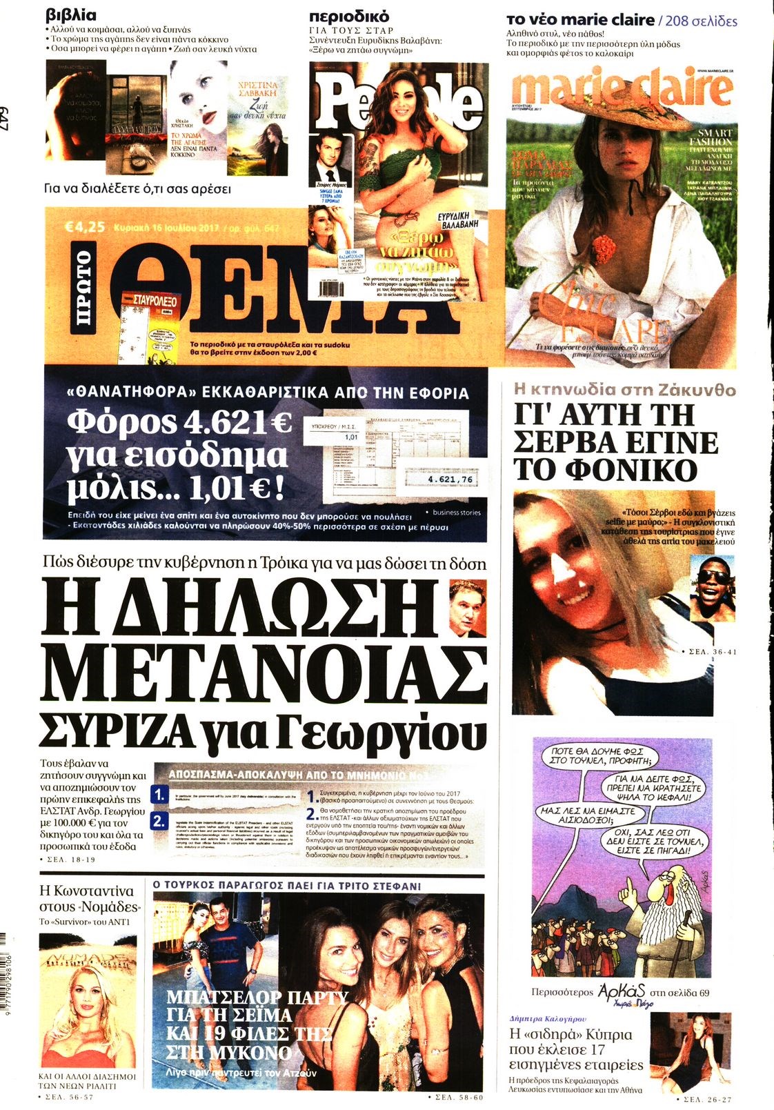 Οι πολιτικές εφημερίδες 16/7/2017 Enikos Newsroom 07:39, Κυριακή 16 Ιουλίου 2017 Media Διαβάστε τα σημερινά πρωτοσέλιδα των πολιτικών εφημερίδων: ΠΟΛΙΤΙΚΕΣ ΕΦΗΜΕΡΙΔΕΣ ΠΡΩΤΟΣΕΛΙΔΑ Μοιράσου το: σχολίασε κι εσύ (0 σχόλια) Ακολουθήστε το enikos.gr στο Google News και μάθετε πρώτοι όλες τις ειδήσεις Δείτε όλες τις τελευταίες ειδήσεις από την Ελλάδα και τον Κόσμο στο enikos.gr Ειδήσεις Ροή Ειδήσεων 3 ώρες πριν Χριστούγεννα στα μπλόκα: Επιμένουν στις κινητοποιήσεις τους οι αγρότες – Ανοίγουν τα διόδια το Σαββατοκύριακο 3 ώρες πριν Ουκρανία: Η άνευ προηγουμένου επίθεση σε ρωσικό τάνκερ στη Μεσόγειο και το μήνυμα προς στον Πούτιν – Το «μακρύ χέρι» του Κιέβου 2 ώρες πριν Πούτιν: Τα μηνύματα σε Ευρώπη και ΝΑΤΟ από το μαραθώνιο «σόου» του – Η απαίτηση για «σεβασμό» και η ειρήνη «με τους όρους» της Μόσχας 3 ώρες πριν Τραμπ: Δεν αποκλείει την πιθανότητα ενός πολέμου στη Βενεζουέλα – «Ο Μαδούρο ξέρει καλύτερα από τον καθένα τι ακριβώς θέλω» 4 ώρες πριν Συνεχίζει να προκαλεί ο Μίτσκοσκι: «Για μένα το όνομα Μακεδονία είναι ιερό» 2 ώρες πριν Ανακαλύφθηκαν αρχαία χρυσά νομίσματα 2.200 ετών που απεικονίζουν τον θεό Απόλλωνα – Η άγνωστη σύνδεση με τον Φίλιππο Β΄ της Μακεδονίας 3 ώρες πριν Ύπνος: Μια κρυφή κατάσταση του εγκεφάλου πριν από τον ύπνο μπορεί να είναι το “κλειδί” για υψηλή ευφυΐα και δημιουργικότητα 4 ώρες πριν Αριθμολογία: Οι άνθρωποι που έχουν γεννηθεί αυτές τις 4 ημερομηνίες, συχνά παρεξηγούνται – «Η καλοσύνη τους κρύβει τεράστια δύναμη» 5 ώρες πριν Ξεχάστε το καθάρισμα το Σαββατοκύριακο: Ο «κανόνας των 20 λεπτών» που θα σας λύσει τα χέρια 11 λεπτά πριν Ουκρανία: Ολοκληρώθηκαν οι συνομιλίες με τους Αμερικανούς κι Ευρωπαίους διαπραγματευτές 26 λεπτά πριν Μπαρτσελόνα – Μπασκόνια 134-124: Οι «μπλαουγκράνα» πήραν το ματς της χρονιάς ύστερα από τρεις παρατάσεις 41 λεπτά πριν Φαίη Σκορδά: «Παλιότερα τα κομπλιμέντα τα προσπερνούσα, τώρα τα έχω ανάγκη» 57 λεπτά πριν Βασίλης Σπανούλης: Δεν εμφανίστηκε ούτε ένας δημοσιογράφος στην συνέντευξη Τύπου – «Καλησπέρα στον… κανέναν», δείτε βίντεο 1 ώρα πριν Πόλεμος στην Ουκρανία: Εφτά νεκροί από ρωσική πυραυλική επίθεση στο λιμάνι της Οδησσού ENIKOS NETWORK Το ΕΚΑΒ τιμήθηκε από την Ακαδημία Αθηνών για τα 40 χρόνια προσφοράς του Έχετε πραγματικά μεγάλη καρδιά; 10 χαρακτηριστικά όσων έχουν καλοσύνη Αναστολή μέτρων αναγκαστικής εκτέλεσης για κτηνοτρόφους που πλήττονται από την ευλογιά των αιγοπροβάτων Πλήρης επάρκεια προϊόντων στις λαϊκές της Αττικής, παρά τις αγροτικές κινητοποιήσεις – Τι απαντούν οι πωλητές Χαρτογραφώντας το «σημείο χωρίς επιστροφή»: Για πρώτη φορά αποκαλύπτεται με λεπτομέρεια το ακανθώδες όριο της ατμόσφαιρας τ... Η Google καταργεί τη λειτουργία «dark web report» – Πώς θα μπορούν οι χρήστες να διαγράφουν τα δεδομένα τους περισσότερα 22:42 , Παρασκευή 19 Δεκεμβρίου 2025 Γιώργος Γιαννόπουλος για “Το σόι σου”: “Είναι ευτυχία και ευλογία αυτή η σειρά” «Είναι ευτυχία και ευλογία η συγκυρία αυτής της σειράς», θα πει ο Γιώργος Γιαννόπουλος -ο αγαπ... 20:37 , Παρασκευή 19 Δεκεμβρίου 2025 Don’t Forget The Lyrics: Η Έλλη Κοκκίνου υποδέχεται 4 παίκτες που θα κάνουν τα πάντα για να μη χάσουν ούτε… μισή λέξη από τους στίχους Το «Don’t Forget The Lyrics» επιστρέφει απόψε, Παρασκευή 19 Δεκεμβρίου, στις 21:00 με νέο επει... 19:31 , Παρασκευή 19 Δεκεμβρίου 2025 GNTM: Απόψε ο μεγάλος τελικός για τους 4 φιναλίστ Έπειτα από μήνες γεμάτους μόδα, δημιουργία και έντονες αναμετρήσεις, το GNTM 2025 κορυφώνεται,... 18: