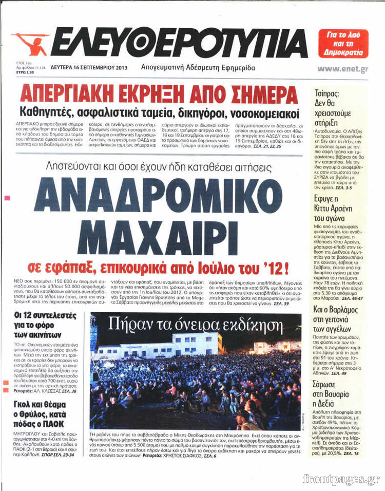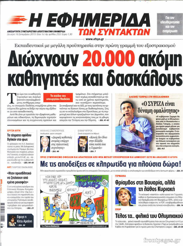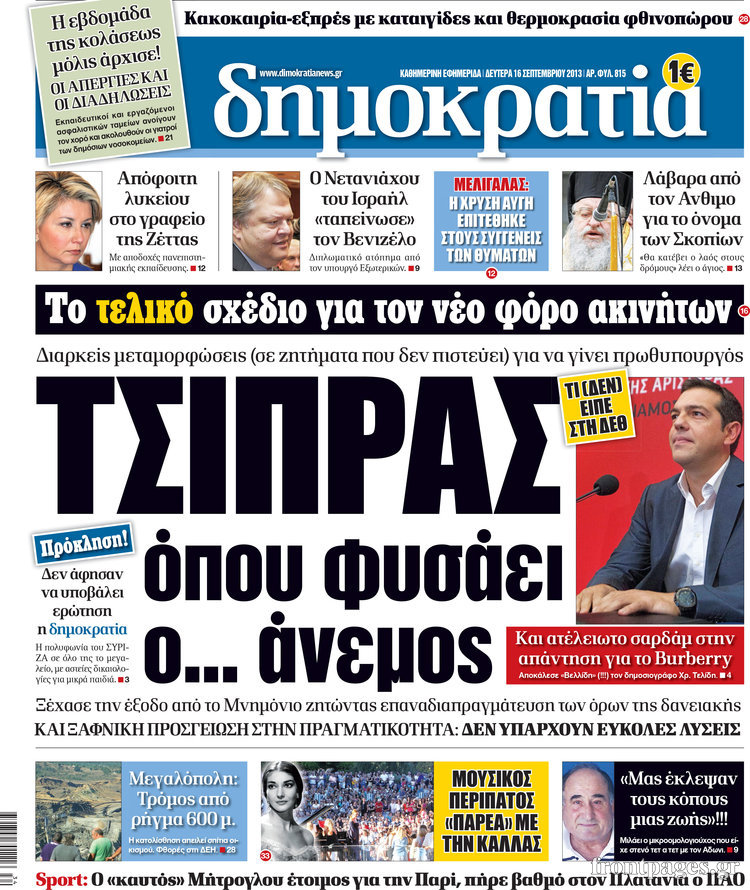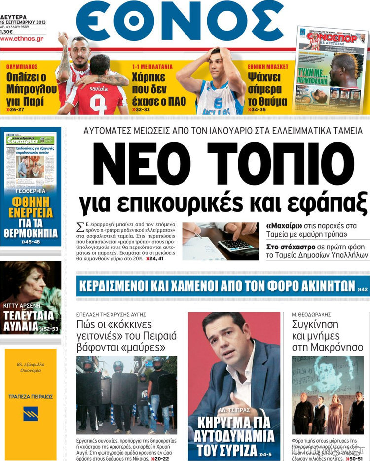 Οι πολιτικές εφημερίδες Enikos Newsroom 08:30, Δευτέρα 16 Σεπτεμβρίου 2013 Media Οι πολιτικές εφημερίδες Διαβάστε τα πρωτοσέλιδα των πολιτικών εφημερίδων: ΕΦΗΜΕΡΙΔΕΣ ΠΟΛΙΤΙΚΕΣ ΕΦΗΜΕΡΙΔΕΣ ΠΡΩΤΟΣΕΛΙΔΑ Μοιράσου το: σχολίασε κι εσύ (0 σχόλια) Ακολουθήστε το enikos.gr στο Google News και μάθετε πρώτοι όλες τις ειδήσεις Δείτε όλες τις τελευταίες ειδήσεις από την Ελλάδα και τον Κόσμο στο enikos.gr Ειδήσεις Ροή Ειδήσεων 3 ώρες πριν Χριστούγεννα στα μπλόκα οι αγρότες: Άνοιξαν στα διόδια και μοίρασαν προϊόντα στους πολίτες – Νέα σύσκεψη την Κυριακή στη Νίκαια 3 ώρες πριν Κύκλωμα διακίνησης ναρκωτικών σε σχολεία: Τηλεφωνούσαν στους ανηλίκους την ώρα του μαθήματος – Οι διάλογοι-σοκ, τα «ψευδώνυμα» και τα βασανιστήρια 3 ώρες πριν Αρχεία Επστάιν: Οι 500 σελίδες που λείπουν, τα αναπάντητα ερωτήματα και οι επώνυμοι – Τι έπεται 4 ώρες πριν Ζελένσκι: Μόνο οι ΗΠΑ και ο Τραμπ μπορούν να πιέσουν τη Ρωσία να βάλει τέλος στον πόλεμο 5 ώρες πριν Φοινικούντα: Προφυλακιστέος ο 30χρονος για συνέργεια στη διπλή δολοφονία – Και άλλα πρόσωπα στο «μικροσκόπιο» 2 ώρες πριν Αποκαλύφθηκε το άγνωστο «GPS» της αρχαιότητας – Πώς οι ναοί «φώτιζαν» τον δρόμο των ναυτικών πριν από την εφεύρεση των φάρων 3 ώρες πριν Ύπνος: Η διατροφή που μπορεί να σας βοηθήσει να κοιμάστε καλύτερα και να ζήσετε περισσότερο 5 ώρες πριν Αριθμολογία: Ο αριθμός του φύλακα αγγέλου σας, με βάση τον μήνα γέννησής σας – «Έτσι σας στέλνει σημάδια το σύμπαν» 17 ώρες πριν Enerwave: Το νέο «ρεύμα» στη λιανική ενέργειας που αλλάζει την εμπειρία του καταναλωτή 14 λεπτά πριν Φωτεινή Αθερίδου: «Προσπαθώ να είμαι κάθετη και αυστηρή σαν μαμά πια» 29 λεπτά πριν ΗΠΑ, Αίγυπτος, Κατάρ και Τουρκία συζήτησαν τη δεύτερη φάση του ειρηνευτικού σχεδίου για τη Γάζα 45 λεπτά πριν Γιάννης Αντετοκούνμπο: Έμεινε στην 6η θέση της ψηφοφορίας του ESPN για το βραβείο του MVP του NBA 60 λεπτά πριν Ρετζέπ Ταγίπ Ερντογάν: Δεν έχουμε καμία βλέψη στα εδάφη ή την κυριαρχία κανενός – Δεν θα επιτρέψουμε να παραβιαστούν τα δικαιώματά μας 1 ώρα πριν Γερμανία: Εκδήλωση μνήμης για τα θύματα της επίθεσης στη χριστουγεννιάτικη αγορά του Μαγδεμβούργου ENIKOS NETWORK Οι γυναίκες αποκαλύπτουν το πιο ελκυστικό πράγμα που μπορεί να κάνει ένας άνδρας Ομορφιά και αντιγήρανση: Ειδικοί μιλούν για συσκευές περιποίησης του δέρματος «Πολεμική» προετοιμασία από την ευρωπαϊκή βιομηχανία ενέργειας – Η Eurelectric ζητεί «ομπρέλα» προστασίας για τις υποδομές Ακύρωση ΑΦΜ για απάτες – Ποιους βάζει στο στόχαστρο η ΑΑΔΕ Χαρτογραφώντας το «σημείο χωρίς επιστροφή»: Για πρώτη φορά αποκαλύπτεται με λεπτομέρεια το ακανθώδες όριο της ατμόσφαιρας τ... Η Google καταργεί τη λειτουργία «dark web report» – Πώς θα μπορούν οι χρήστες να διαγράφουν τα δεδομένα τους περισσότερα 00:00 , Κυριακή 21 Δεκεμβρίου 2025 The Voice: Η επιστροφή της Έλενας Παπαρίζου και η ατάκα του Γιώργου Μαζωνάκη μετά τις καταγγελίες Στη φάση των Cross Battles Live μπήκε το The Voice, με την Έλενα Παπαρίζου να επιστρέφει στο π... 20:30 , Σάββατο 20 Δεκεμβρίου 2025 Αυτή την Κυριακή με τη Realnews: Instyle, μαζί Drive και Realnews Geopolitics Αυτή την Κυριακή με τη Realnews: Instyle, μαζί Drive και Realnews Geopolitics Instyle Η Άννα Ρ... 20:28 , Σάββατο 20 Δεκεμβρίου 2025 Ο ΑΝΤ1 γεμίζει τις γιορτές με μουσική – Ποιους καλλιτέχνες θα απολαύσουμε Φέτος στον ΑΝΤ1 γιορτάζουμε τις νύχτες μας παρέα με αγαπημένους καλλιτέχνες και μεγάλες μουσι... 18:19 , Σάββατο 20 Δεκεμβρίου 2025 HOTΕΛ ΕΛVIRA: Η Ελβίρα μαθαίνει πως ο Χάρι μένει κρυφά στο ξενοδοχείο του Παντελή Συνε