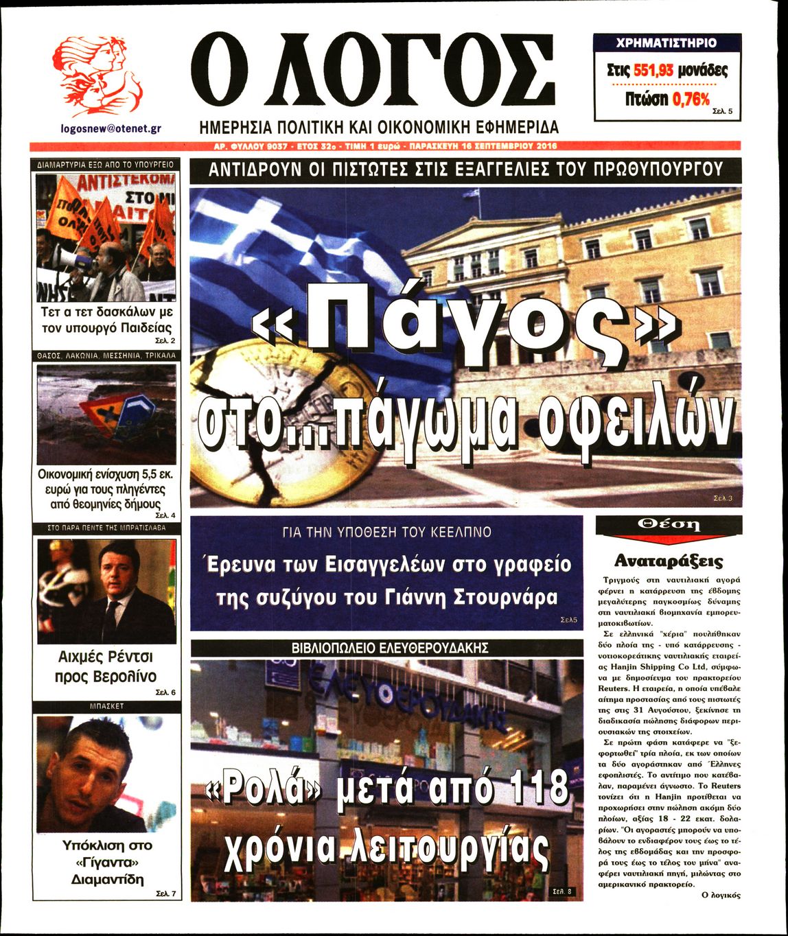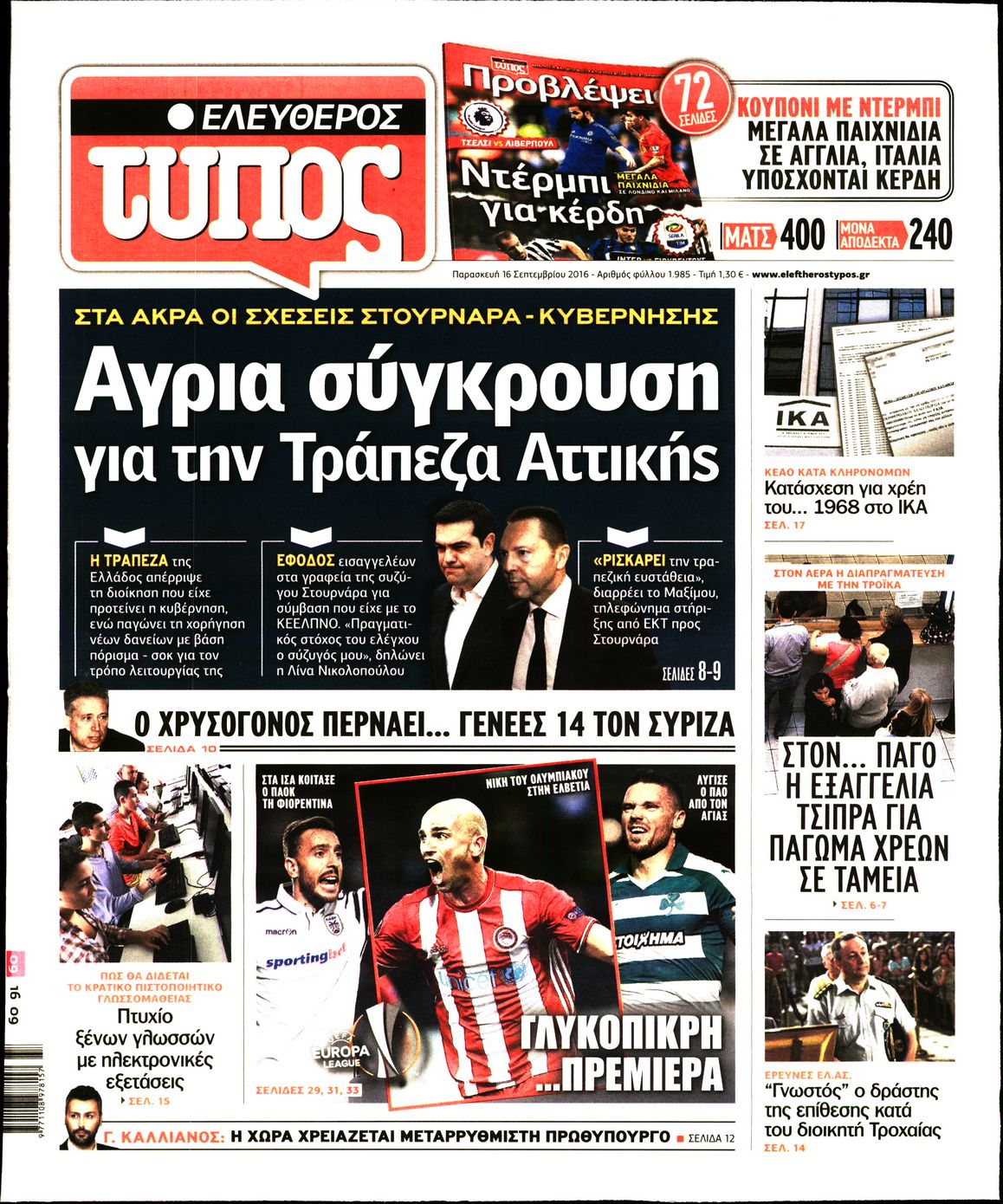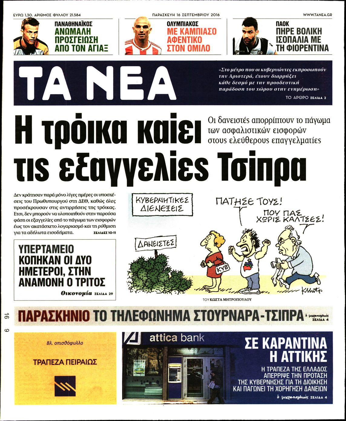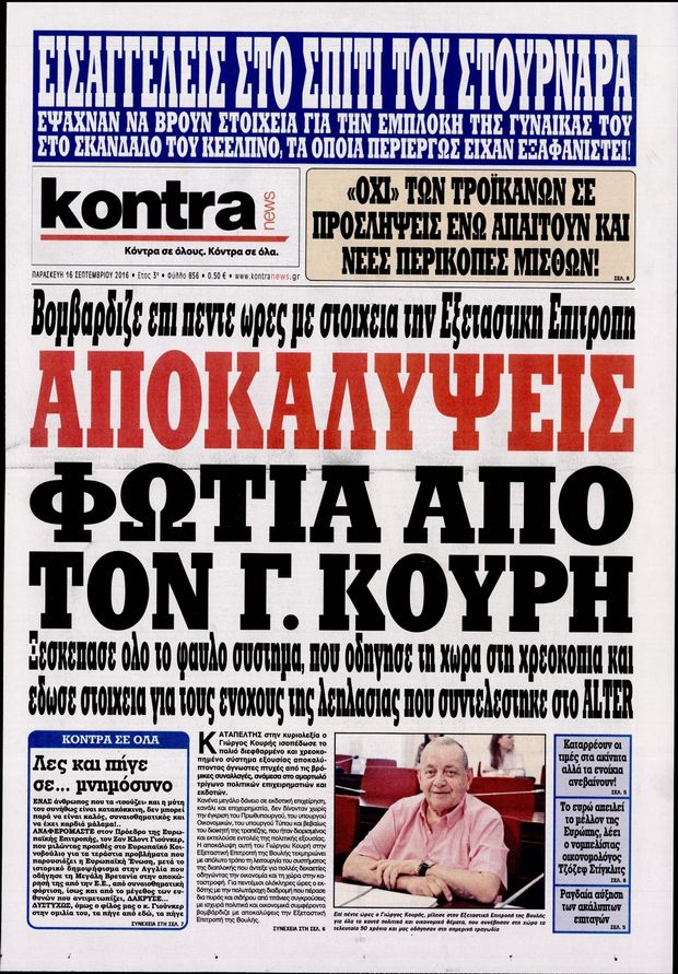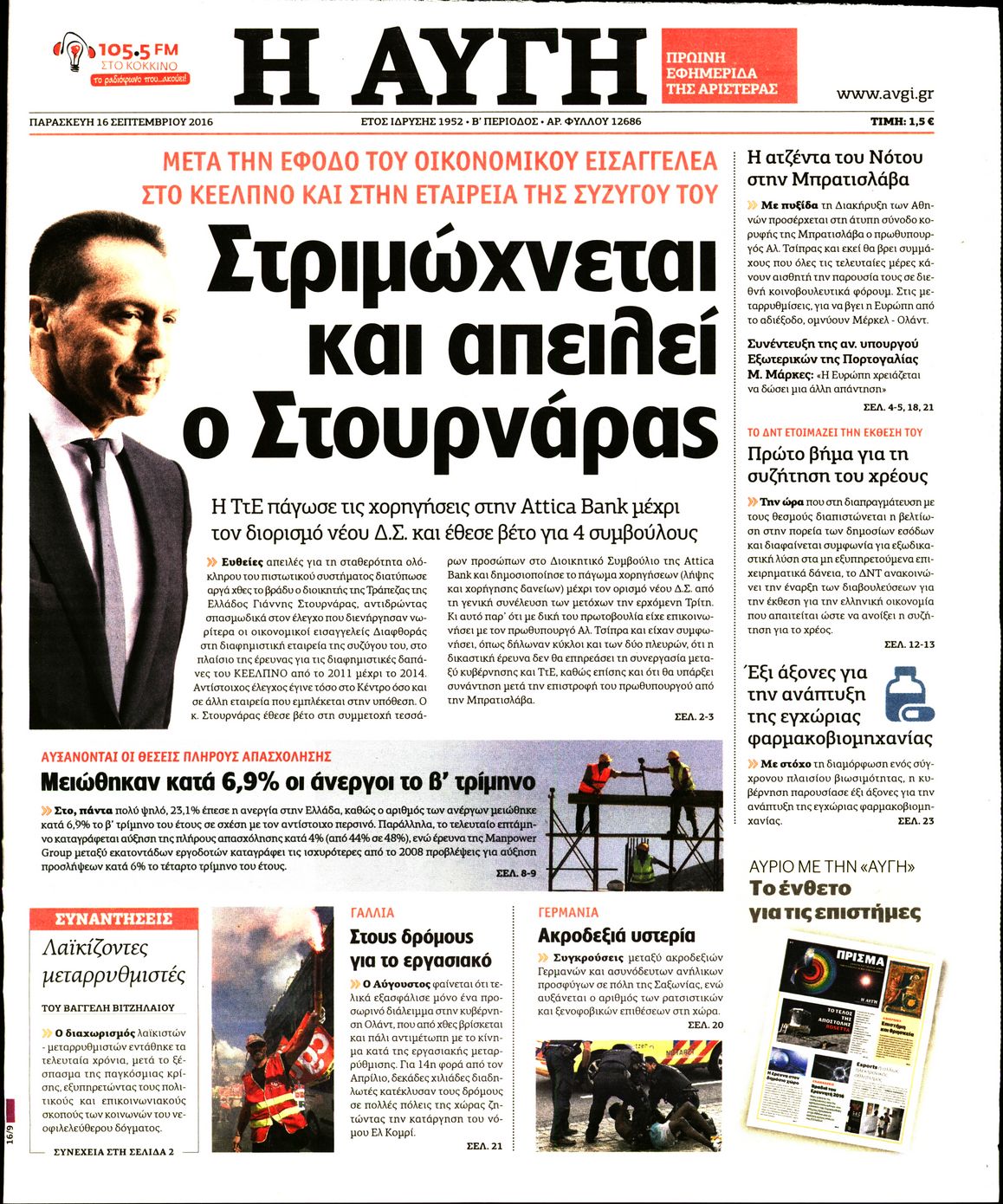 Οι πολιτικές εφημερίδες 16/9/2016 Enikos Newsroom 05:11, Παρασκευή 16 Σεπτεμβρίου 2016 Media Διαβάστε τα σημερινά πρωτοσέλιδα των πολιτικών εφημερίδων: ΠΟΛΙΤΙΚΕΣ ΕΦΗΜΕΡΙΔΕΣ ΠΡΩΤΟΣΕΛΙΔΑ Μοιράσου το: σχολίασε κι εσύ (0 σχόλια) Ακολουθήστε το enikos.gr στο Google News και μάθετε πρώτοι όλες τις ειδήσεις Δείτε όλες τις τελευταίες ειδήσεις από την Ελλάδα και τον Κόσμο στο enikos.gr Ειδήσεις Ροή Ειδήσεων 7 ώρες πριν Χριστούγεννα στα μπλόκα: Επιμένουν στις κινητοποιήσεις τους οι αγρότες – Ανοίγουν τα διόδια το Σαββατοκύριακο 7 ώρες πριν Ουκρανία: Η άνευ προηγουμένου επίθεση σε ρωσικό τάνκερ στη Μεσόγειο και το μήνυμα προς στον Πούτιν – Το «μακρύ χέρι» του Κιέβου 6 ώρες πριν Πούτιν: Τα μηνύματα σε Ευρώπη και ΝΑΤΟ από το μαραθώνιο «σόου» του – Η απαίτηση για «σεβασμό» και η ειρήνη «με τους όρους» της Μόσχας 7 ώρες πριν Τραμπ: Δεν αποκλείει την πιθανότητα ενός πολέμου στη Βενεζουέλα – «Ο Μαδούρο ξέρει καλύτερα από τον καθένα τι ακριβώς θέλω» 8 ώρες πριν Συνεχίζει να προκαλεί ο Μίτσκοσκι: «Για μένα το όνομα Μακεδονία είναι ιερό» 6 ώρες πριν Ανακαλύφθηκαν αρχαία χρυσά νομίσματα 2.200 ετών που απεικονίζουν τον θεό Απόλλωνα – Η άγνωστη σύνδεση με τον Φίλιππο Β΄ της Μακεδονίας 7 ώρες πριν Ύπνος: Μια κρυφή κατάσταση του εγκεφάλου πριν από τον ύπνο μπορεί να είναι το “κλειδί” για υψηλή ευφυΐα και δημιουργικότητα 8 ώρες πριν Αριθμολογία: Οι άνθρωποι που έχουν γεννηθεί αυτές τις 4 ημερομηνίες, συχνά παρεξηγούνται – «Η καλοσύνη τους κρύβει τεράστια δύναμη» 9 ώρες πριν Ξεχάστε το καθάρισμα το Σαββατοκύριακο: Ο «κανόνας των 20 λεπτών» που θα σας λύσει τα χέρια 4 λεπτά πριν ΟΗΕ: Το Συμβούλιο Ασφαλείας παρατείνει για έναν χρόνο την εντολή της ειρηνευτικής δύναμης στο Κονγκό 19 λεπτά πριν Μοχάμεντ Σαλάχ: Ζήτησε «συγγνώμη» από τους συμπαίκτες του στη Λίβερπουλ για το ξέσπασμά του 34 λεπτά πριν Μάρκο Ρούμπιο: Ανθρωπιστική κατάπαυση του πυρός στο Σουδάν ζητά ο Αμερικανός υπουργός Εξωτερικών 49 λεπτά πριν Αγγελική Νικολούλη: Τα συλλυπητήρια για την απώλεια της Ειρήνης Μαρινάκη 1 ώρα πριν Βολιβία: Μαζική διαδηλώσεις εναντίον της κατάργησης των επιδοτήσεων των τιμών των καυσίμων ENIKOS NETWORK Το ΕΚΑΒ τιμήθηκε από την Ακαδημία Αθηνών για τα 40 χρόνια προσφοράς του Έχετε πραγματικά μεγάλη καρδιά; 10 χαρακτηριστικά όσων έχουν καλοσύνη Αναστολή μέτρων αναγκαστικής εκτέλεσης για κτηνοτρόφους που πλήττονται από την ευλογιά των αιγοπροβάτων Πλήρης επάρκεια προϊόντων στις λαϊκές της Αττικής, παρά τις αγροτικές κινητοποιήσεις – Τι απαντούν οι πωλητές Χαρτογραφώντας το «σημείο χωρίς επιστροφή»: Για πρώτη φορά αποκαλύπτεται με λεπτομέρεια το ακανθώδες όριο της ατμόσφαιρας τ... Η Google καταργεί τη λειτουργία «dark web report» – Πώς θα μπορούν οι χρήστες να διαγράφουν τα δεδομένα τους περισσότερα 04:20 , Σάββατο 20 Δεκεμβρίου 2025 Αγγελική Νικολούλη: Τα συλλυπητήρια για την απώλεια της Ειρήνης Μαρινάκη Τα συλληπητήρια στον πρόεδρο του Mega, τον Βαγγέλη Μαρινάκη, για την απώλεια της μητέρας του Ε... 02:50 , Σάββατο 20 Δεκεμβρίου 2025 GNTM: Η Ξένια Τσίρκοβα αναδείχθηκε μεγάλη νικήτρια και πήρε τις 50.000 ευρώ – Ποιος βρέθηκε σε απόσταση αναπνοής; Με φαντασμαγορικό τρόπο ολοκληρώθηκε το βράδυ της Παρασκευής ο μεγάλος τελικός του GNTM, μέσα ... 22:42 , Παρασκευή 19 Δεκεμβρίου 2025 Γιώργος Γιαννόπουλος για “Το σόι σου”: “Είναι ευτυχία και ευλογία αυτή η σειρά” «Είναι ευτυχία και ευλογία η συγκυρία αυτής της σειράς», θα πει ο Γιώργος Γιαννόπουλος -ο αγαπ