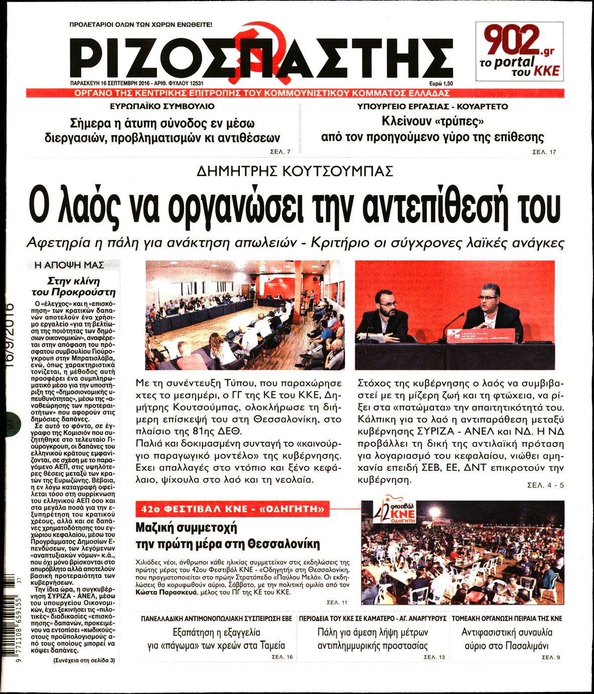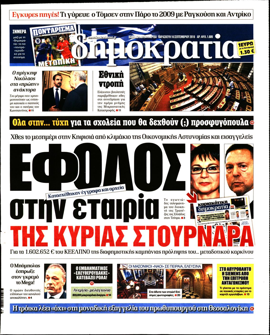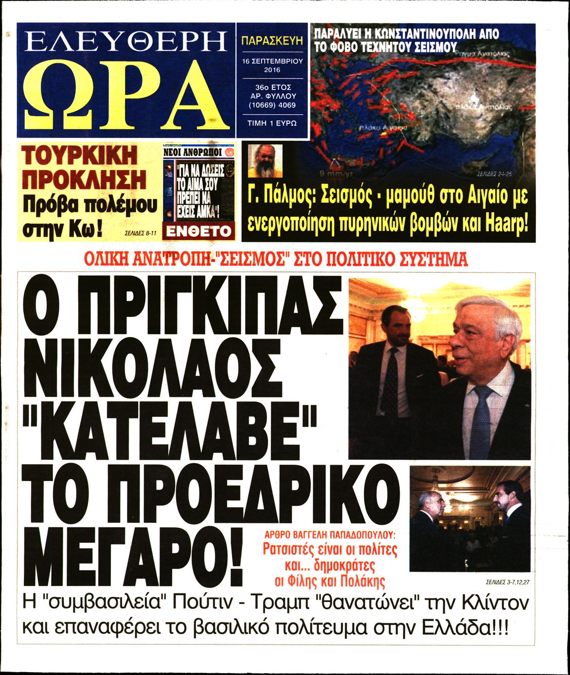 Οι πολιτικές εφημερίδες 16/9/2016 Enikos Newsroom 05:11, Παρασκευή 16 Σεπτεμβρίου 2016 Media Διαβάστε τα σημερινά πρωτοσέλιδα των πολιτικών εφημερίδων: ΠΟΛΙΤΙΚΕΣ ΕΦΗΜΕΡΙΔΕΣ ΠΡΩΤΟΣΕΛΙΔΑ Μοιράσου το: σχολίασε κι εσύ (0 σχόλια) Ακολουθήστε το enikos.gr στο Google News και μάθετε πρώτοι όλες τις ειδήσεις Δείτε όλες τις τελευταίες ειδήσεις από την Ελλάδα και τον Κόσμο στο enikos.gr Ειδήσεις Ροή Ειδήσεων 7 ώρες πριν Χριστούγεννα στα μπλόκα: Επιμένουν στις κινητοποιήσεις τους οι αγρότες – Ανοίγουν τα διόδια το Σαββατοκύριακο 7 ώρες πριν Ουκρανία: Η άνευ προηγουμένου επίθεση σε ρωσικό τάνκερ στη Μεσόγειο και το μήνυμα προς στον Πούτιν – Το «μακρύ χέρι» του Κιέβου 6 ώρες πριν Πούτιν: Τα μηνύματα σε Ευρώπη και ΝΑΤΟ από το μαραθώνιο «σόου» του – Η απαίτηση για «σεβασμό» και η ειρήνη «με τους όρους» της Μόσχας 7 ώρες πριν Τραμπ: Δεν αποκλείει την πιθανότητα ενός πολέμου στη Βενεζουέλα – «Ο Μαδούρο ξέρει καλύτερα από τον καθένα τι ακριβώς θέλω» 8 ώρες πριν Συνεχίζει να προκαλεί ο Μίτσκοσκι: «Για μένα το όνομα Μακεδονία είναι ιερό» 6 ώρες πριν Ανακαλύφθηκαν αρχαία χρυσά νομίσματα 2.200 ετών που απεικονίζουν τον θεό Απόλλωνα – Η άγνωστη σύνδεση με τον Φίλιππο Β΄ της Μακεδονίας 7 ώρες πριν Ύπνος: Μια κρυφή κατάσταση του εγκεφάλου πριν από τον ύπνο μπορεί να είναι το “κλειδί” για υψηλή ευφυΐα και δημιουργικότητα 8 ώρες πριν Αριθμολογία: Οι άνθρωποι που έχουν γεννηθεί αυτές τις 4 ημερομηνίες, συχνά παρεξηγούνται – «Η καλοσύνη τους κρύβει τεράστια δύναμη» 9 ώρες πριν Ξεχάστε το καθάρισμα το Σαββατοκύριακο: Ο «κανόνας των 20 λεπτών» που θα σας λύσει τα χέρια 4 λεπτά πριν ΟΗΕ: Το Συμβούλιο Ασφαλείας παρατείνει για έναν χρόνο την εντολή της ειρηνευτικής δύναμης στο Κονγκό 19 λεπτά πριν Μοχάμεντ Σαλάχ: Ζήτησε «συγγνώμη» από τους συμπαίκτες του στη Λίβερπουλ για το ξέσπασμά του 34 λεπτά πριν Μάρκο Ρούμπιο: Ανθρωπιστική κατάπαυση του πυρός στο Σουδάν ζητά ο Αμερικανός υπουργός Εξωτερικών 49 λεπτά πριν Αγγελική Νικολούλη: Τα συλλυπητήρια για την απώλεια της Ειρήνης Μαρινάκη 1 ώρα πριν Βολιβία: Μαζική διαδηλώσεις εναντίον της κατάργησης των επιδοτήσεων των τιμών των καυσίμων ENIKOS NETWORK Το ΕΚΑΒ τιμήθηκε από την Ακαδημία Αθηνών για τα 40 χρόνια προσφοράς του Έχετε πραγματικά μεγάλη καρδιά; 10 χαρακτηριστικά όσων έχουν καλοσύνη Αναστολή μέτρων αναγκαστικής εκτέλεσης για κτηνοτρόφους που πλήττονται από την ευλογιά των αιγοπροβάτων Πλήρης επάρκεια προϊόντων στις λαϊκές της Αττικής, παρά τις αγροτικές κινητοποιήσεις – Τι απαντούν οι πωλητές Χαρτογραφώντας το «σημείο χωρίς επιστροφή»: Για πρώτη φορά αποκαλύπτεται με λεπτομέρεια το ακανθώδες όριο της ατμόσφαιρας τ... Η Google καταργεί τη λειτουργία «dark web report» – Πώς θα μπορούν οι χρήστες να διαγράφουν τα δεδομένα τους περισσότερα 04:20 , Σάββατο 20 Δεκεμβρίου 2025 Αγγελική Νικολούλη: Τα συλλυπητήρια για την απώλεια της Ειρήνης Μαρινάκη Τα συλληπητήρια στον πρόεδρο του Mega, τον Βαγγέλη Μαρινάκη, για την απώλεια της μητέρας του Ε... 02:50 , Σάββατο 20 Δεκεμβρίου 2025 GNTM: Η Ξένια Τσίρκοβα αναδείχθηκε μεγάλη νικήτρια και πήρε τις 50.000 ευρώ – Ποιος βρέθηκε σε απόσταση αναπνοής; Με φαντασμαγορικό τρόπο ολοκληρώθηκε το βράδυ της Παρασκευής ο μεγάλος τελικός του GNTM, μέσα ... 22:42 , Παρασκευή 19 Δεκεμβρίου 2025 Γιώργος Γιαννόπουλος για “Το σόι σου”: “Είναι ευτυχία και ευλογία αυτή η σειρά” «Είναι ευτυχία και ευλογία η συγκυρία αυτής της σειράς», θα πει ο Γιώργος Γιαννόπουλος -ο αγαπ