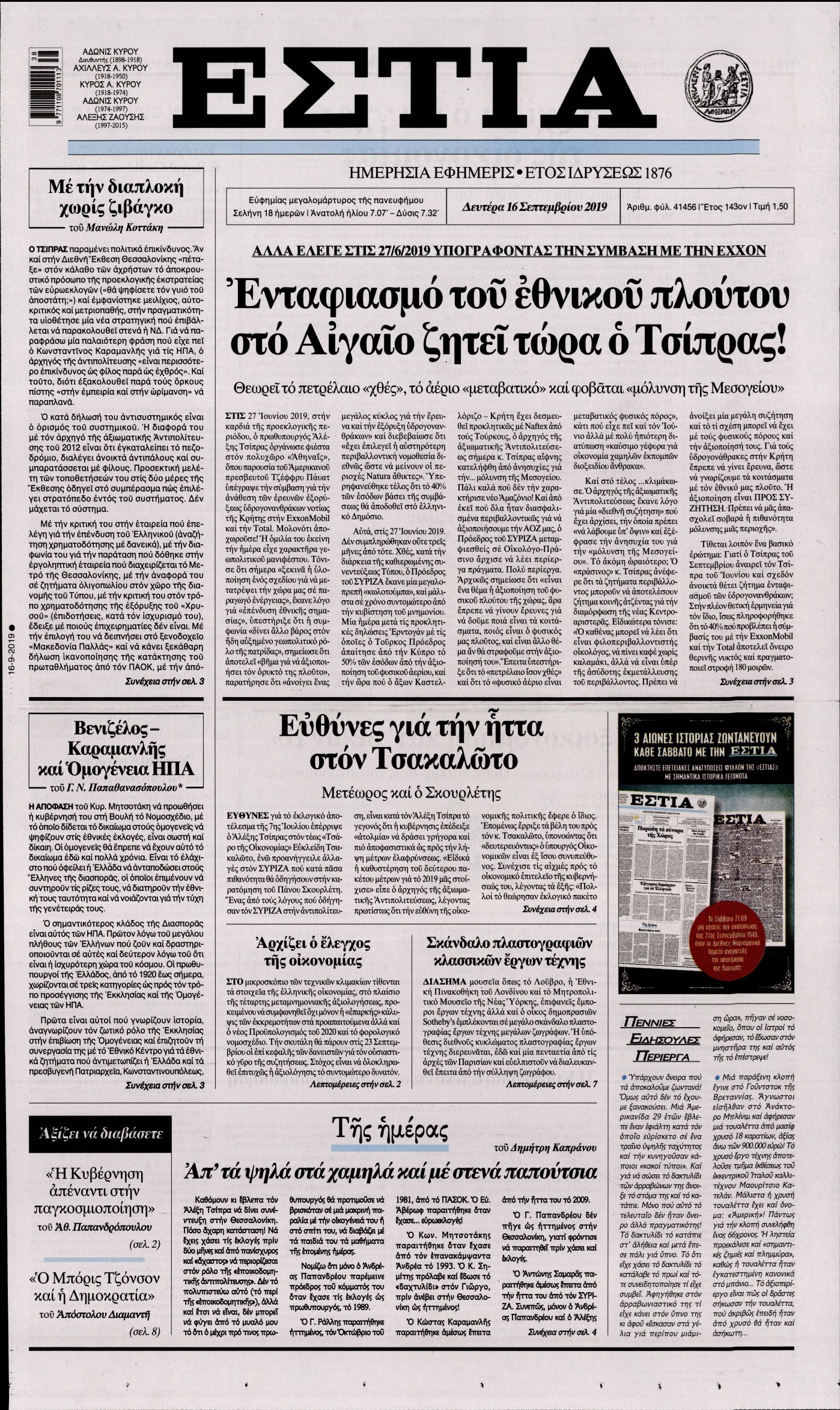 Οι πολιτικές εφημερίδες 16/9/2019 Κώστας Τεό 06:31, Δευτέρα 16 Σεπτεμβρίου 2019 Media Διαβάστε τα πρωτοσέλιδα των πολιτικών εφημερίδων: ΠΟΛΙΤΙΚΕΣ ΕΦΗΜΕΡΙΔΕΣ ΠΡΩΤΟΣΕΛΙΔΑ Μοιράσου το: σχολίασε κι εσύ (0 σχόλια) Ακολουθήστε το enikos.gr στο Google News και μάθετε πρώτοι όλες τις ειδήσεις Δείτε όλες τις τελευταίες ειδήσεις από την Ελλάδα και τον Κόσμο στο enikos.gr Ειδήσεις Ροή Ειδήσεων 8 ώρες πριν Χριστούγεννα στα μπλόκα: Επιμένουν στις κινητοποιήσεις τους οι αγρότες – Ανοίγουν τα διόδια το Σαββατοκύριακο 9 ώρες πριν Ουκρανία: Η άνευ προηγουμένου επίθεση σε ρωσικό τάνκερ στη Μεσόγειο και το μήνυμα προς στον Πούτιν – Το «μακρύ χέρι» του Κιέβου 8 ώρες πριν Πούτιν: Τα μηνύματα σε Ευρώπη και ΝΑΤΟ από το μαραθώνιο «σόου» του – Η απαίτηση για «σεβασμό» και η ειρήνη «με τους όρους» της Μόσχας 7 ώρες πριν ΗΠΑ: Η κυβέρνηση του Ντόναλντ Τραμπ άρχισε να δημοσιοποιεί τα αρχεία Έπσταϊν 7 ώρες πριν Άνω Λιόσια: Πυροβολισμοί σε επιχείρηση με χαλιά – Εντοπίστηκαν 10 κάλυκες 57 λεπτά πριν Αυγά: Πόσα μπορείτε να τρώτε την ημέρα με ασφάλεια για μέγιστη πρόσληψη πρωτεΐνης 1 ώρα πριν Τα ζώδια σήμερα, Σάββατο 20 Δεκεμβρίου: Παρθένοι, το σύμπαν σας δίνει το κλειδί 8 ώρες πριν Ανακαλύφθηκαν αρχαία χρυσά νομίσματα 2.200 ετών που απεικονίζουν τον θεό Απόλλωνα – Η άγνωστη σύνδεση με τον Φίλιππο Β΄ της Μακεδονίας 9 ώρες πριν Ύπνος: Μια κρυφή κατάσταση του εγκεφάλου πριν από τον ύπνο μπορεί να είναι το “κλειδί” για υψηλή ευφυΐα και δημιουργικότητα 3 λεπτά πριν Αναβολή συμφωνίας ΕΕ-Mercosur: Ο χρόνος «δεν είναι απεριόριστος» προειδοποιεί η Παραγουάη 17 λεπτά πριν Κίριλ Ντμίτριεφ: Στις ΗΠΑ ο απεσταλμένος της Ρωσίας για συνομιλίες με τους ομολόγους του, Γουίτκοφ και Κούσνερ 25 λεπτά πριν ΔΕΔΔΗΕ: Διακοπές ρεύματος σήμερα (20/12) στην Αθήνα και σε άλλες 7 περιοχές της Αττικής 33 λεπτά πριν Κολομβία: Είκοσι χρόνια κάθειρξη σε πρώην ανώτερο αξιωματικό για 72 εκτελέσεις αμάχων 41 λεπτά πριν Οπτική ψευδαίσθηση: Μόνο αν είσαι ο Σέρλοκ Χολμς θα βρεις τον αριθμό «87» σε 7 δευτερόλεπτα ENIKOS NETWORK Πρέπει να αποδέχεστε ή να απορρίπτετε όλα τα cookies; Ένας ειδικός εξηγεί Η αγαπημένη λιχουδιά των πόνι που μπορεί να ενισχύσει όραση, εγκέφαλο και ανοσοποιητικό Αναστολή μέτρων αναγκαστικής εκτέλεσης για κτηνοτρόφους που πλήττονται από την ευλογιά των αιγοπροβάτων Πλήρης επάρκεια προϊόντων στις λαϊκές της Αττικής, παρά τις αγροτικές κινητοποιήσεις – Τι απαντούν οι πωλητές Χαρτογραφώντας το «σημείο χωρίς επιστροφή»: Για πρώτη φορά αποκαλύπτεται με λεπτομέρεια το ακανθώδες όριο της ατμόσφαιρας τ... Η Google καταργεί τη λειτουργία «dark web report» – Πώς θα μπορούν οι χρήστες να διαγράφουν τα δεδομένα τους περισσότερα 05:48 , Σάββατο 20 Δεκεμβρίου 2025 Οι οικονομικές εφημερίδες 20/12/2025 Διαβάστε τα πρωτοσέλιδα από τις οικονομικές εφημερίδες, σήμερα 20/12/2025. 05:43 , Σάββατο 20 Δεκεμβρίου 2025 Οι αθλητικές εφημερίδες 20/12/2025 Διαβάστε τα πρωτοσέλιδα από τις αθλητικές εφημερίδες, σήμερα 20/12/2025. 05:38 , Σάββατο 20 Δεκεμβρίου 2025 Οι πολιτικές εφημερίδες 20/12/2025 Διαβάστε τα πρωτοσέλιδα από τις πολιτικές εφημερίδες, σήμερα 20/12/2025. 04:20 , Σάββατο 20 Δεκεμβρίου 2025 Αγγελική Νικολούλη: Τα συλλυπητήρια για την απώλεια της Ειρήνης Μαρινάκη Τα συλληπητήρια στον πρόεδρο του Mega, τον Βαγγέλη Μαρινάκη, για την απώλεια της μητέρας του Ε... ΤΕΛΕΥΤΑΙΕΣ ΕΙΔΗΣΕΙΣ 17 λεπτά πριν Κίριλ Ντμίτριεφ: Στις ΗΠΑ ο απεσταλμένος της Ρωσίας... 25 λεπτά πριν ΔΕΔΔΗΕ: Διακοπές ρεύματος σήμερα (20/12) στην Αθήνα και... 3