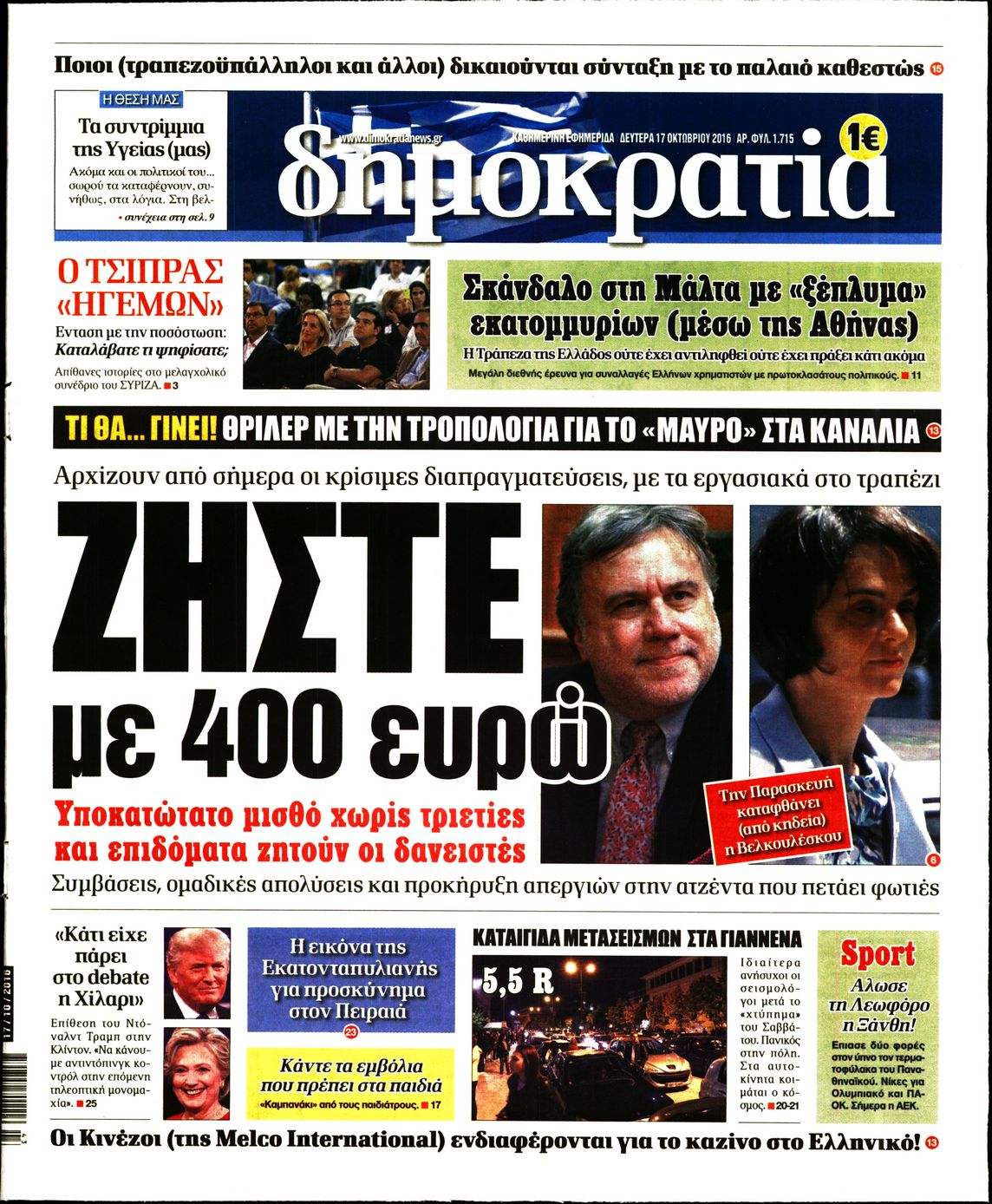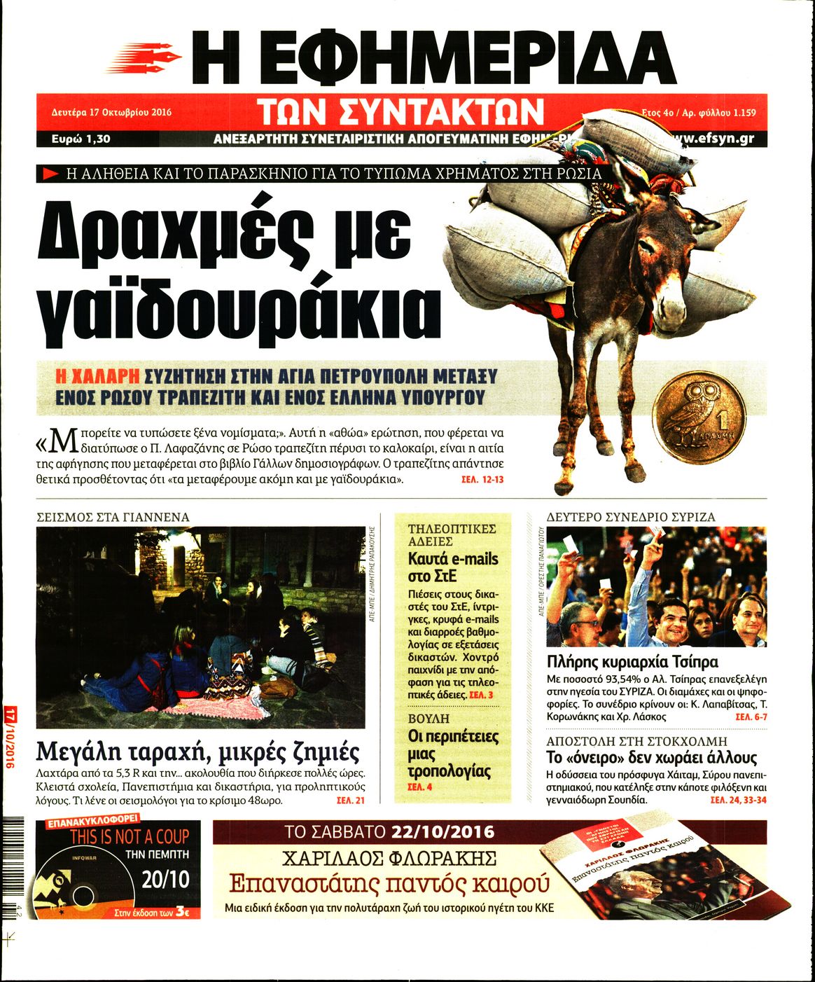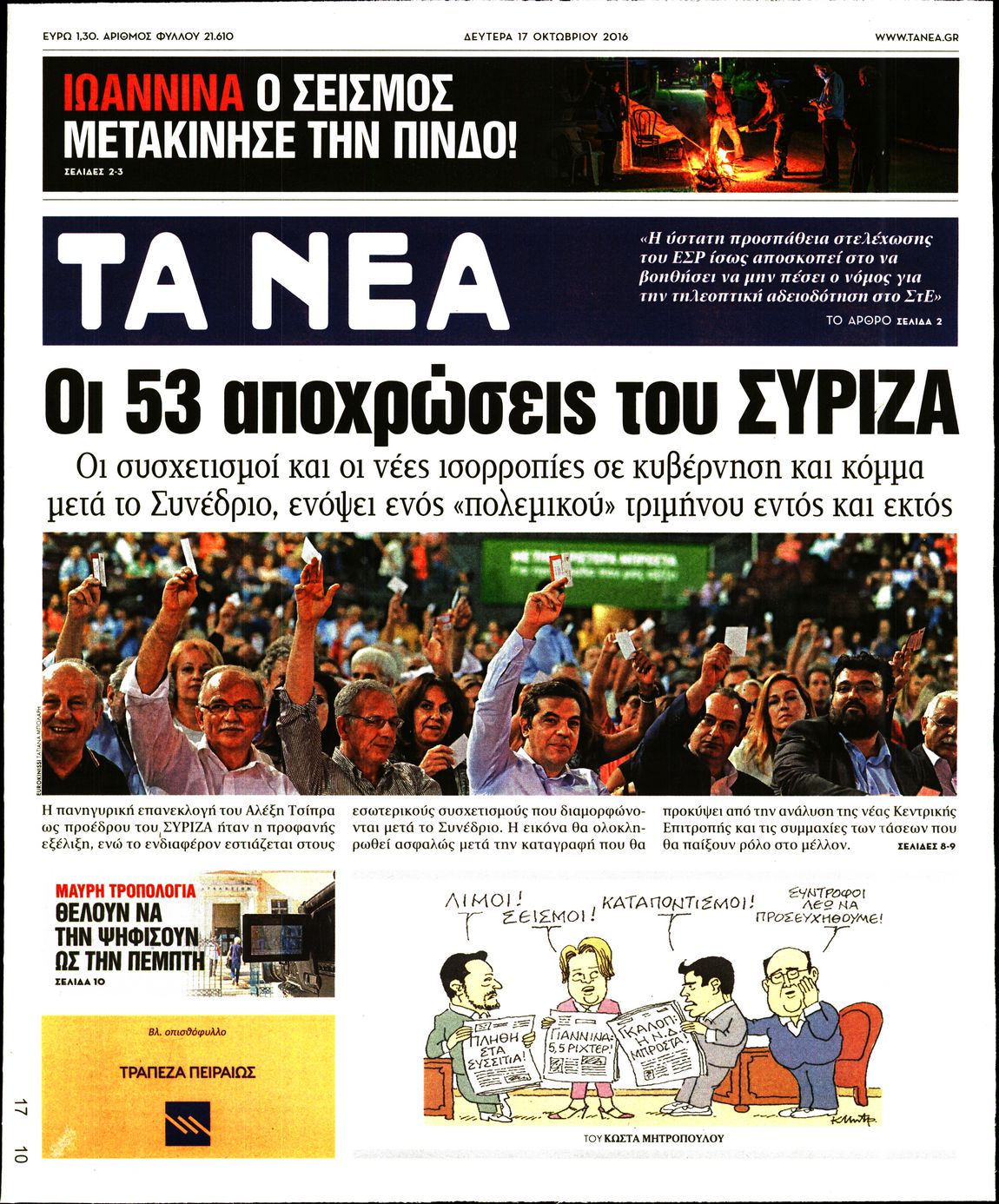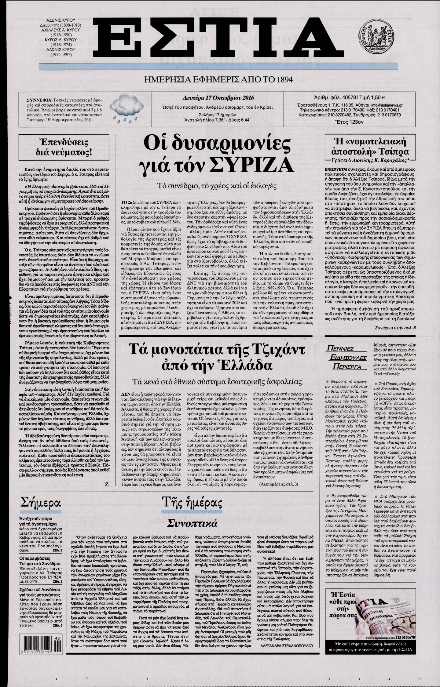 Οι πολιτικές εφημερίδες 17-10-2016 Enikos Newsroom 04:51, Δευτέρα 17 Οκτωβρίου 2016 Media Διαβάστε τα σημερινά πρωτοσέλιδα των πολιτικών εφημερίδων: ΠΟΛΙΤΙΚΕΣ ΕΦΗΜΕΡΙΔΕΣ ΠΡΩΤΟΣΕΛΙΔΑ Μοιράσου το: σχολίασε κι εσύ (0 σχόλια) Ακολουθήστε το enikos.gr στο Google News και μάθετε πρώτοι όλες τις ειδήσεις Δείτε όλες τις τελευταίες ειδήσεις από την Ελλάδα και τον Κόσμο στο enikos.gr Ειδήσεις Ροή Ειδήσεων 5 ώρες πριν Αυξάνουν την πίεση προς την κυβέρνηση οι αγρότες: Κλείνουν παρακαμπτήριους και ανοίγουν διόδια – Τι θα γίνει τις γιορτές 4 ώρες πριν ΟΠΕΚΕΠΕ: Προφυλακιστέος ο φερόμενος αρχηγός και ο λογιστής της εγκληματικής οργάνωσης 24 λεπτά πριν Ευρωπαϊκή Ένωση: Χωρίς συμφωνία, για την μακροπρόθεσμη χρηματοδότηση της Ουκρανίας, ολοκληρώθηκε η Σύνοδος Κορυφής στις Βρυξέλλες 3 ώρες πριν ΑΕΚ – Κραϊόβα 3-2: Επική ανατροπή και πρόκριση στους «16» του Conference League η Ένωση 5 ώρες πριν Φοινικούντα: Το Σάββατο απολογείται ο 30χρονος γιος γνωστού επιχειρηματία της Πλάκας που παραδόθηκε – Όσα είπε στους αστυνομικούς και ο ρόλος του στο έγκλημα 4 ώρες πριν Αρχαιολόγοι ανακάλυψαν ρωμαϊκά τεχνουργήματα από μια πόλη που δεν υπήρξε ποτέ – Τα τρία εντυπωσιακά κτίρια και ο αμφορέας με τις… σαρδέλες 5 ώρες πριν Ύπνος: Η απλή βραδινή ρουτίνα για να προστατεύσετε τα μαλλιά σας από το κρύο κατά τη διάρκεια του χειμώνα 6 ώρες πριν Manifesting: Πώς να συναντήσετε τον σύντροφο της ζωής σας, ανάλογα με τον μήνα γέννησής σας 2 ημέρες πριν 20 χρόνια τα Χριστούγεννα ξεκινούν στα Public με μεγάλη ποικιλία σε δώρα! 24 λεπτά πριν Ευρωπαϊκή Ένωση: Χωρίς συμφωνία, για την μακροπρόθεσμη χρηματοδότηση της Ουκρανίας, ολοκληρώθηκε η Σύνοδος Κορυφής στις Βρυξέλλες 39 λεπτά πριν GNTM: «Κλείδωσαν» οι τέσσερις φιναλίστ – Μεγάλη ανατροπή στις τελευταίες αποχωρήσεις 53 λεπτά πριν Γιώργος Μαζωνάκης: Αποθεώθηκε στην πρεμιέρα του στην «Ακτή Πειραιώς» λίγες ώρες μετά τις καταγγελίες – «Είμαι αληθινός», είπε με νόημα 1 ώρα πριν Πόλεμος στην Ουκρανία: Ρωσικά drones έπληξαν την Οδησσό – Μία νεκρή και ζημιές σε ενεργειακές υποδομές 1 ώρα πριν ΑΕΚ-Κραϊόβα: Τα highlights της μυθικής ανατροπής της «Ένωσης» ENIKOS NETWORK Σε περίοδο αυξημένης δραστηριότητας η γρίπη στην Ελλάδα-Μέτρα προστασίας από τον ΕΟΔΥ Σκέφτεστε συνέχεια συζητήσεις που έχετε κάνει; Τι σημαίνει αυτό, σύμφωνα με ειδικό Στεγαστικό: Τι λέει η ΠΟΜΙΔΑ για τα νέα μέτρα που ανακοίνωσε ο Κυριάκος Μητσοτάκης Λαγκάρντ: Αισιόδοξη για την ανάπτυξη της Ευρωζώνης, αβέβαιη για τον πληθωρισμό Χαρτογραφώντας το «σημείο χωρίς επιστροφή»: Για πρώτη φορά αποκαλύπτεται με λεπτομέρεια το ακανθώδες όριο της ατμόσφαιρας τ... Η Google καταργεί τη λειτουργία «dark web report» – Πώς θα μπορούν οι χρήστες να διαγράφουν τα δεδομένα τους περισσότερα 02:50 , Παρασκευή 19 Δεκεμβρίου 2025 GNTM: «Κλείδωσαν» οι τέσσερις φιναλίστ – Μεγάλη ανατροπή στις τελευταίες αποχωρήσεις Για προτελευταία φορά εμφανίστηκαν στο πλατό του GNTM οι φιναλίστ του φετινού κύκλου, το βράδυ... 17:45 , Πέμπτη 18 Δεκεμβρίου 2025 ROUK ZOUK: Εορταστικό επεισόδιο με καλεσμένους τους πρωταγωνιστές του «Γιατί ρε πατέρα» Το Σάββατο 20 Δεκεμβρίου στις 21:00, η Ζέτα Μακρυπούλια υποδέχεται εκλεκτούς ηθοποιούς που όλο... 17:20 , Πέμπτη 18 Δεκεμβρίου 2025 Άγιος έρωτας: Η Χριστίνα εξομολογείται στον πατέρα Νικόλαο, απόψε στις 21:00 στον Alpha Η Νότα αποφασίζει να εκδικηθεί τον Πέτρο και τον Στέφανο, για χάρη του Λούη, όμως τα πράγματα ... 16:50 , Πέμπτη 18 Δεκεμβρίου 2025 Να μ’ αγαπάς: Ζωή και Φωτεινή συμφιλιώνοντ