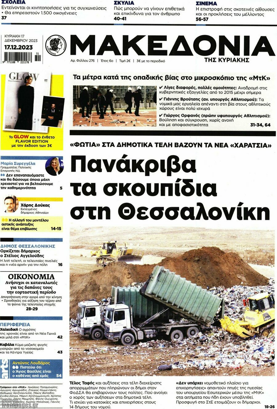 Διαβάστε τα πρωτοσέλιδα από τις πολιτικές εφημερίδες, σήμερα 17/12/2023.