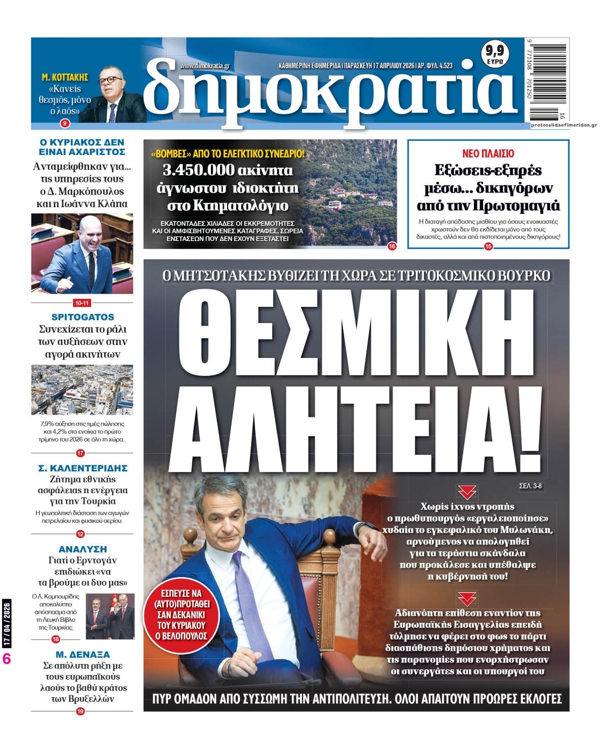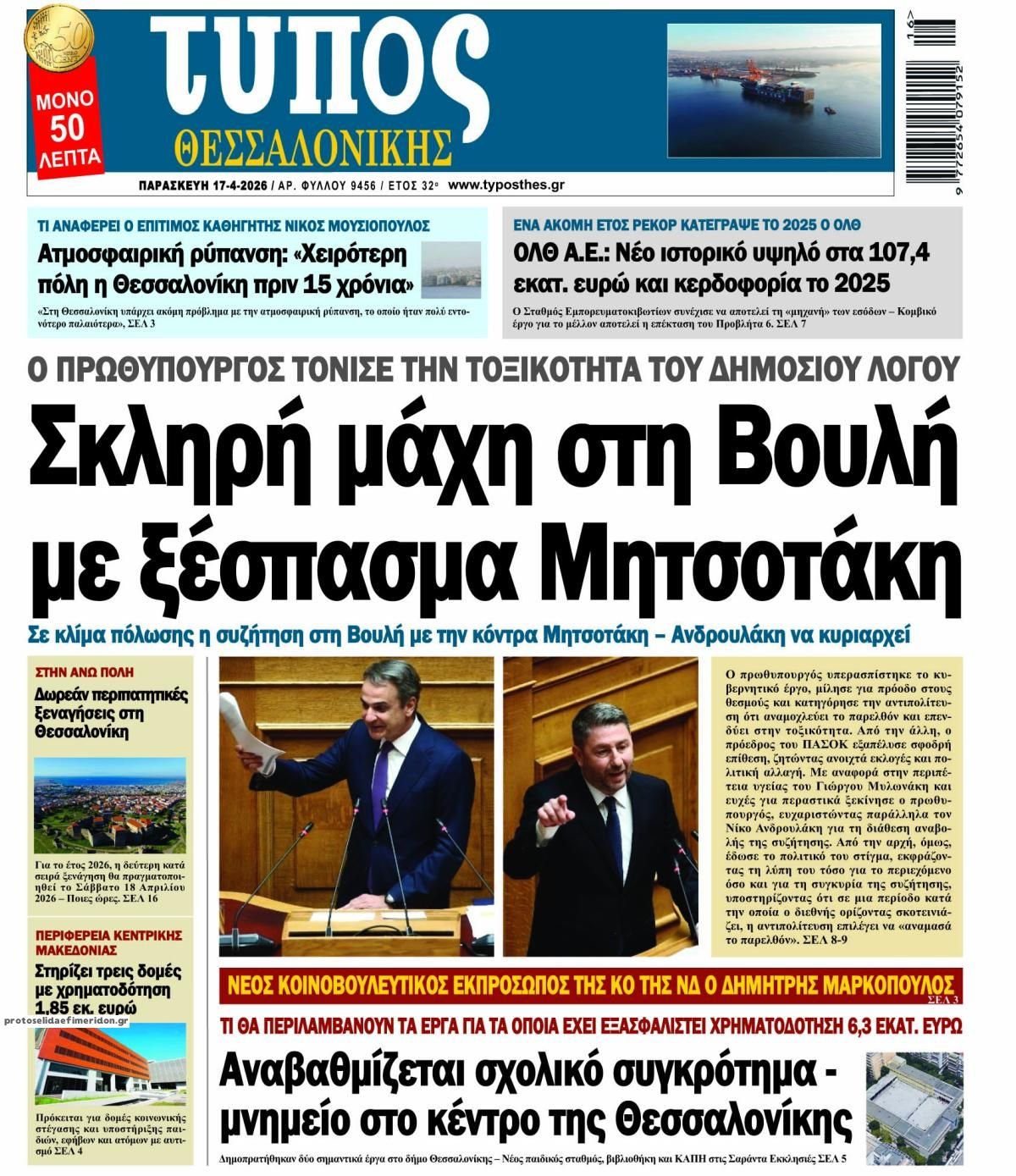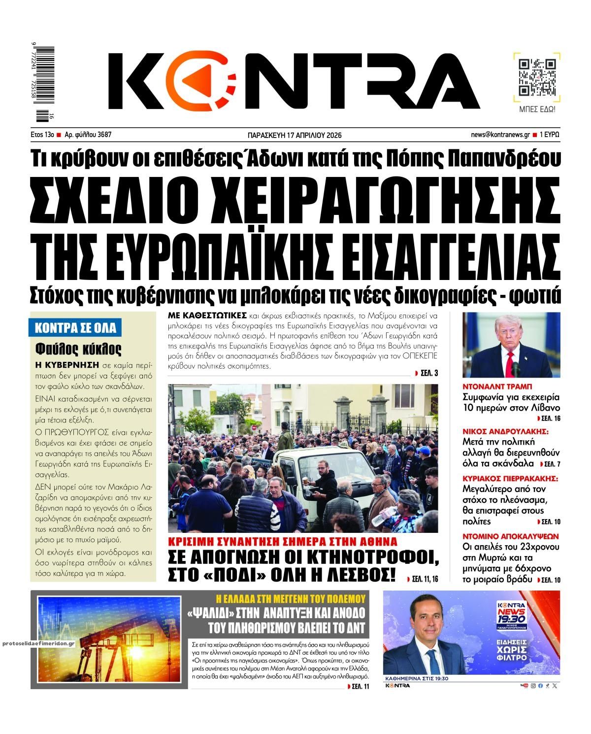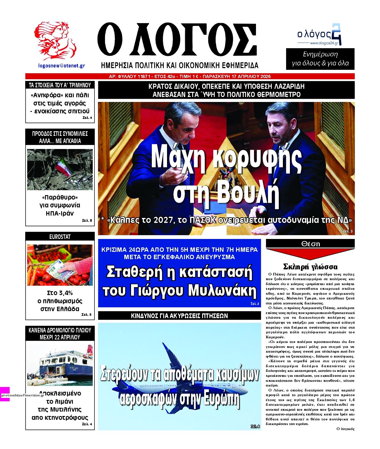 Διαβάστε τα πρωτοσέλιδα από τις πολιτικές εφημερίδες, σήμερα 17/4/2026.