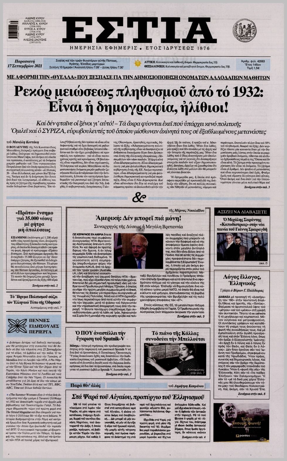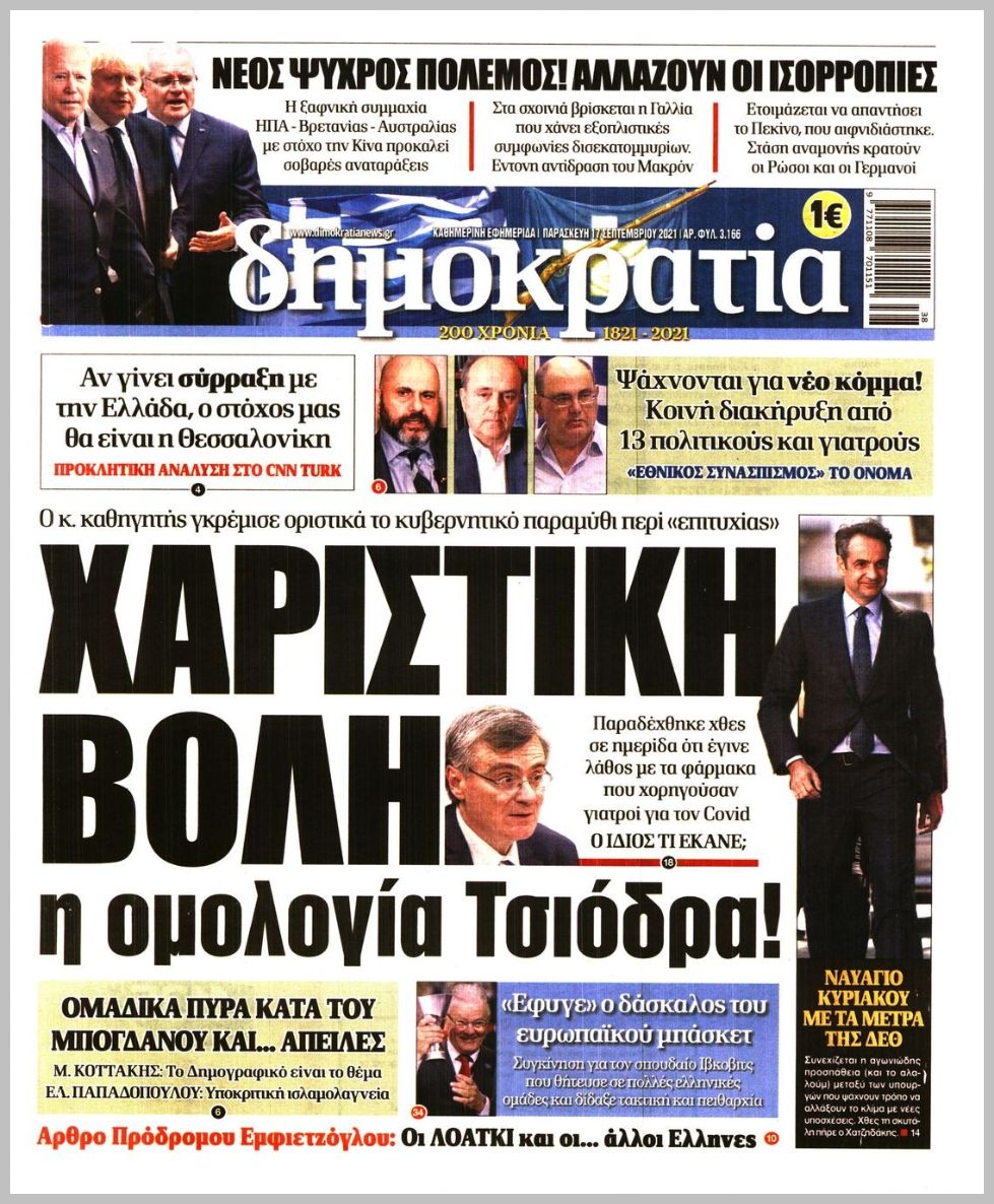 Οι πολιτικές εφημερίδες 17/9/2021 Διονύσης Νίκκας 06:08, Παρασκευή 17 Σεπτεμβρίου 2021 Media Διαβάστε τα πρωτοσέλιδα από τις πολιτικές εφημερίδες… ΠΟΛΙΤΙΚΕΣ ΕΦΗΜΕΡΙΔΕΣ ΠΡΩΤΟΣΕΛΙΔΑ Μοιράσου το: σχολίασε κι εσύ (0 σχόλια) Ακολουθήστε το enikos.gr στο Google News και μάθετε πρώτοι όλες τις ειδήσεις Δείτε όλες τις τελευταίες ειδήσεις από την Ελλάδα και τον Κόσμο στο enikos.gr Ειδήσεις Ροή Ειδήσεων 4 ώρες πριν Ο πλανήτης καλωσορίζει το 2026 – Αυστραλία, Νέα Ζηλανδία, Κιριμπάτι και Γκουάμ άλλαξαν χρονιά – Δείτε LIVE 7 ώρες πριν «Μάριε, τώρα θα πάρεις τη ζωή σου πίσω»: Η διαρκής μάχη για μία σωτήρια μεταμόσχευση – Ρεκόρ για τη δωρεά οργάνων το 2025 1 ώρα πριν NYT: Το παρασκήνιο από τις διαπραγματεύσεις Ουκρανίας – ΗΠΑ και η στιγμή που το Κίεβο με «έναν μαρκαδόρο» αποδέχθηκε την απώλεια εδάφων – «Ξεκίνα να σχεδιάζεις» 2 ώρες πριν Ρομπέρτο Κάρλος: «Είμαι καλά και υπό παρακολούθηση» – Υποβλήθηκε σε τρίωρη επέμβαση στην καρδιά λόγω επιπλοκών 54 λεπτά πριν Ισπανία: Τρεις υδροστρόβιλοι «σάρωσαν» την ακτή του Mazarrón – Συγκλονιστικό βίντεο 1 ώρα πριν Αυτό είναι το ζώδιο που θα «σαρώσει» το 2026 – «Τα όνειρά σας θα γίνουν πραγματικότητα και τίποτα δεν θα σας σταματήσει » 6 ώρες πριν Ανακριτές του FBI αποκαλύπτουν τα 6 κρυφά σημάδια που μαρτυρούν ότι κάποιος λέει ψέματα 5 ώρες πριν Γυναίκα που έχασε 24 κιλά σε 100 ημέρες αποκαλύπτει: «Αυτό είναι το πρωινό γεύμα που με βοήθησε στην καύση του λίπους» 2 ώρες πριν Σαν «κρεμμύδι»: Επιστήμονες λύνουν το μυστήριο του πυρήνα της Γης και αποκαλύπτουν την πολυεπίπεδη δομή του 4 λεπτά πριν Ιαπωνία: Σεισμός 6 βαθμών στα ανοιχτά της επαρχίας Νόντα 7 λεπτά πριν Το μήνυμα Μητσοτάκη: «Να υποδεχτούμε με αυτοπεποίθηση και αισιοδοξία την αυγή του νέου έτους – Κορυφαίο ζητούμενο η συνεννόηση» 8 λεπτά πριν ΕΛΑΣ: Παραμένουν σε ισχύ οι κυκλοφοριακές ρυθμίσεις στο αγροτικό μπλόκο του Κάστρου Βοιωτίας 15 λεπτά πριν Κρήτη: Παρατείνονται τα προληπτικά μέτρα για την ευλογιά των αιγοπροβάτων, έως τις 7 Ιανουαρίου 2026 16 λεπτά πριν Τασούλας: Το Πρωτοχρονιάτικο μήνυμα του ΠτΔ – «Ας είναι η νέα χρονιά μια ευκαιρία να αλλάξουμε όλα όσα μας πληγώνουν στηριζόμενοι σε όλα όσα μας ενώνουν» ENIKOS NETWORK Πόσος ελεύθερος χρόνος είναι υπερβολικός; Η έρευνα που ανατρέπει όσα ξέραμε για την ευτυχία Ρεκόρ μεταμοσχεύσεων ήπατος το 2025 στο Νοσοκομείο «Λαϊκό» Θεσσαλονίκη: Διευκρινίσεις για την κατάργηση των χάρτινων εισιτηρίων – Σε ποια Μέσα Μεταφοράς θα ισχύσει από αύριο ΥΠΕΝ: Οι 10+1 σημαντικές δράσεις το 2025 που προστατεύουν το περιβάλλον και ενισχύουν την ενέργεια Ο Google Assistant θα παραμείνει λίγο περισσότερο για ορισμένους χρήστες Android Τεστ προσωπικότητας: Το βάζο που θα επιλέξετε αποκαλύπτει πώς λύνετε προβλήματα στη ζωή σας περισσότερα 11:05 , Τετάρτη 31 Δεκεμβρίου 2025 Στο real taste & style που κυκλοφορεί με τη Realnews Σε μια ενδιαφέρουσα συνέντευξη, ο Στέφανος Σαράτσης ανοίγει την καρδιά του και μοιράζεται την ... 09:00 , Τετάρτη 31 Δεκεμβρίου 2025 Την Κυριακή με τη Realnews: Δωροεπιταγή 10€ Την Κυριακή με τη Realnews: Δωροεπιταγή 10€ Δωροεπιταγή αξίας 10€ για αγορές άνω των 60€ από τ... 08:00 , Τετάρτη 31 Δεκεμβρίου 2025 Την Κυριακή με τη Realnews: Ό,τι και αν αγοράσεις, σκανάρεις και κερδίζεις! Την Κυριακή με τη Realnews: Ό,τι και αν αγοράσεις, σκανάρεις και κερδίζεις! Με το PADU app, το... 07:00 , Τετάρτη 31 Δεκεμβρίου 2025 Αυτή την Κυριακή με τη Realnews: Μια φορά και…ένας φόνος Αυτή την Κυριακή με τη Realnews: Μια φορά και…ένας φόνος Ένα ταξίδι στο μαγικό κόσ