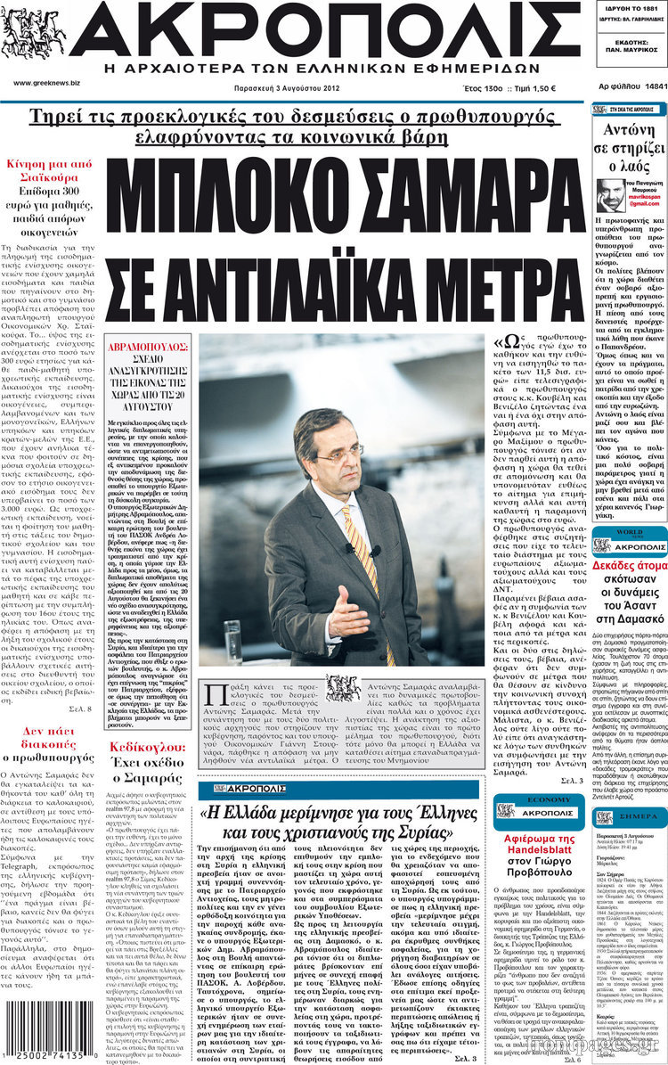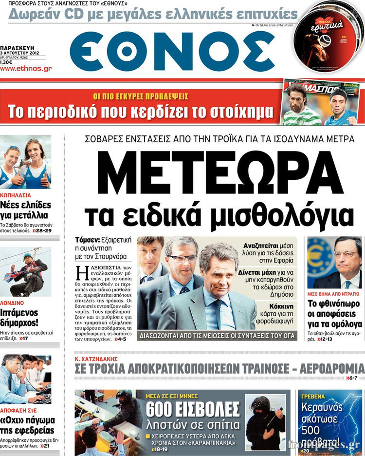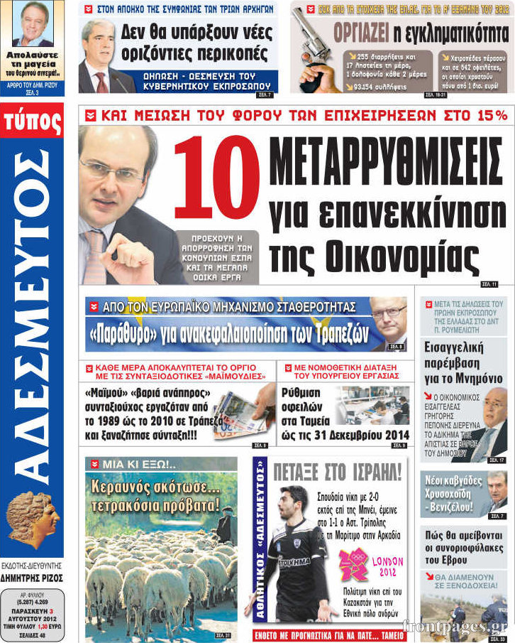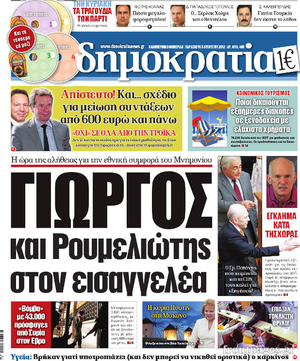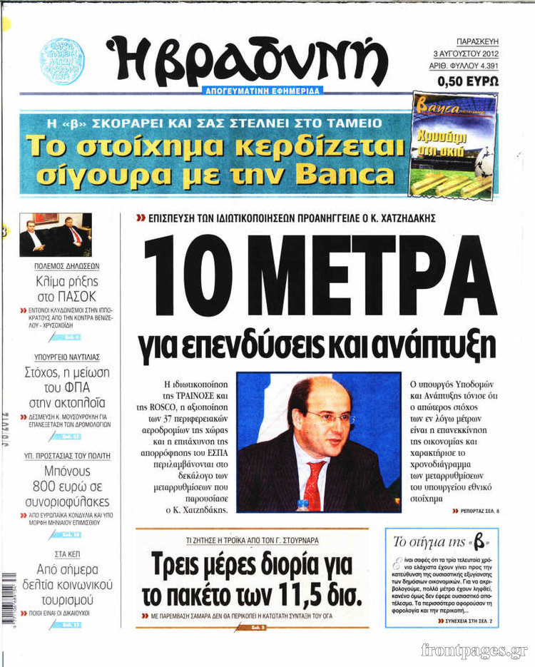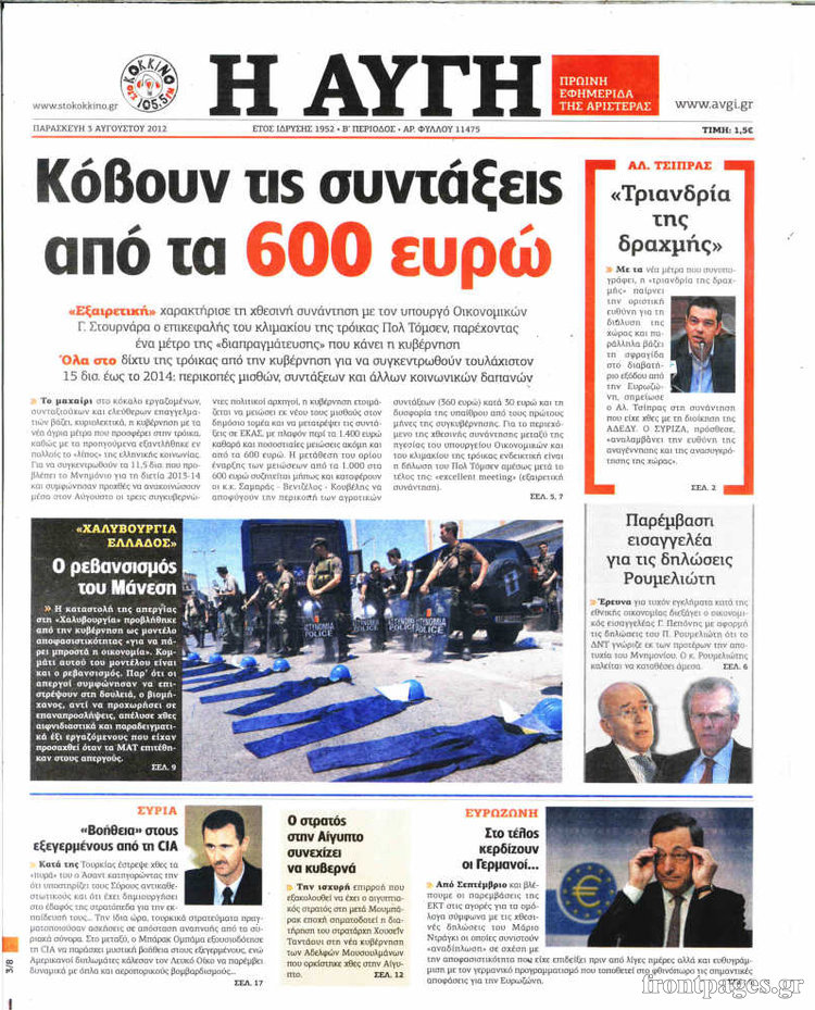 Τα σημερινά πρωτοσέλιδα των πολιτικών εφημερίδων.