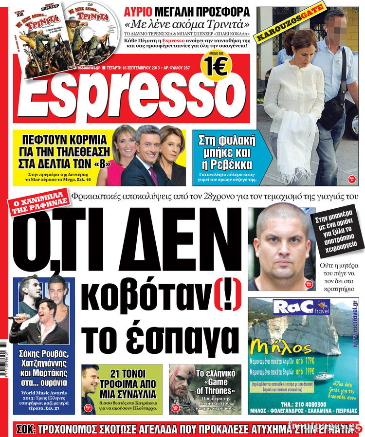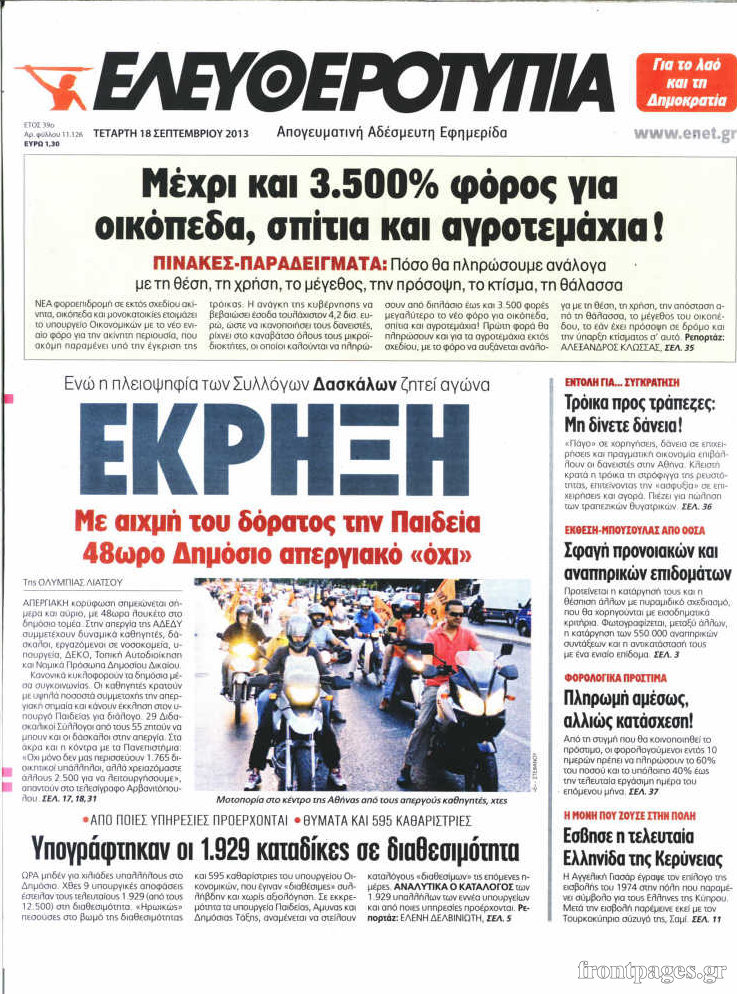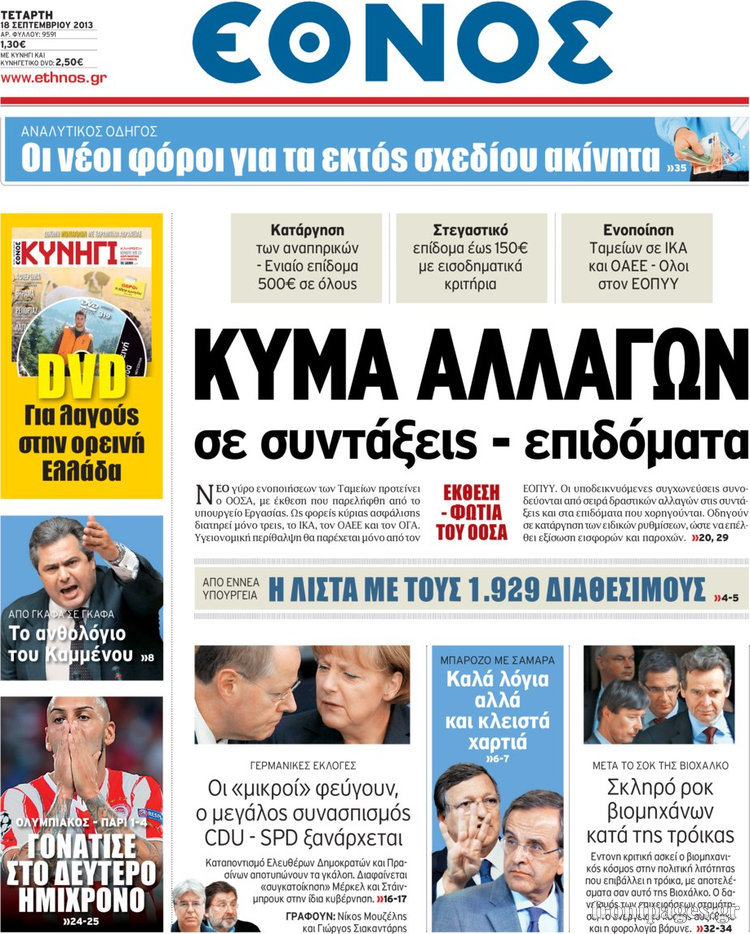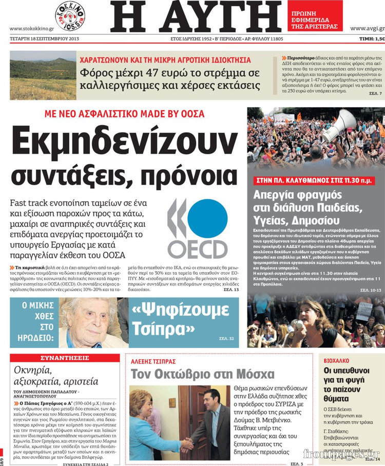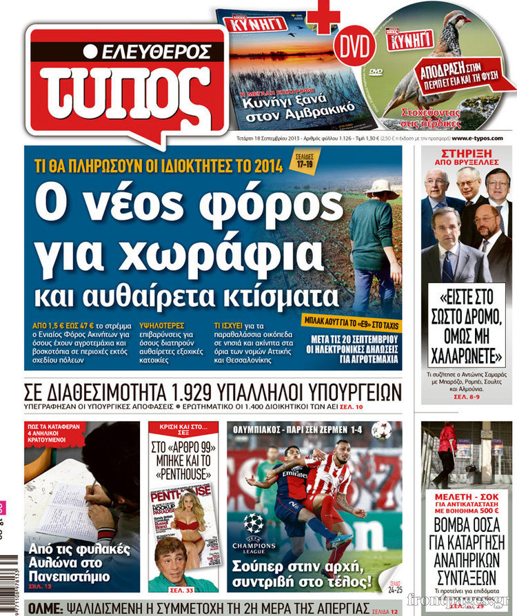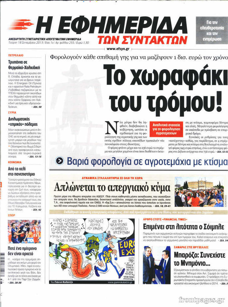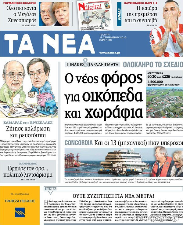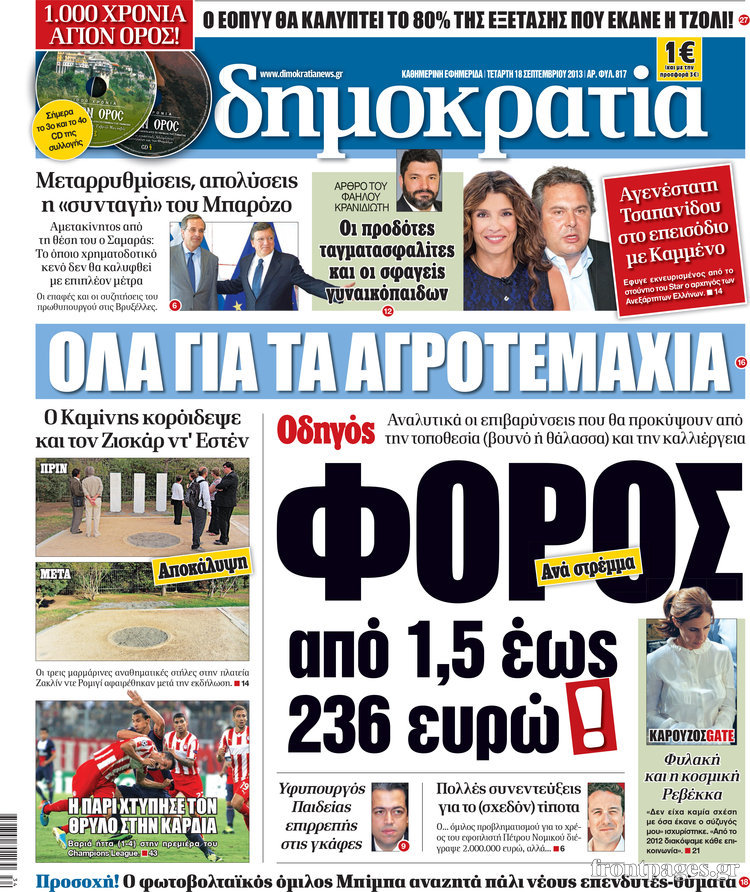 Οι πολιτικές εφημερίδες Enikos Newsroom 08:52, Τετάρτη 18 Σεπτεμβρίου 2013 Media Οι πολιτικές εφημερίδες Διαβάστε τα πρωτοσέλιδα των πολιτικών εφημερίδων: ΕΦΗΜΕΡΙΔΕΣ ΠΟΛΙΤΙΚΕΣ ΕΦΗΜΕΡΙΔΕΣ ΠΡΩΤΟΣΕΛΙΔΑ Μοιράσου το: σχολίασε κι εσύ (0 σχόλια) Ακολουθήστε το enikos.gr στο Google News και μάθετε πρώτοι όλες τις ειδήσεις Δείτε όλες τις τελευταίες ειδήσεις από την Ελλάδα και τον Κόσμο στο enikos.gr Ειδήσεις Ροή Ειδήσεων 7 λεπτά πριν Νίκος Παππάς: Το παρασκήνιο της αποπομπής του – Οι μπουνιές, τα μηνύματα μετά την επίθεση και η διαγραφή από τον ΣΥΡΙΖΑ 1 ώρα πριν Φοροδιαφυγή: Ποιοι φορολογούμενοι κινδυνεύουν να πληρώσουν «τσουχτερά» πρόστιμα 33 λεπτά πριν Φοινικούντα: Παραδόθηκε 30χρονος στην Καλαμάτα για τη διπλή δολοφονία 50 λεπτά πριν Αγρότες: Ανυποχώρητοι στα μπλόκα – Στις Σέρρες σήμερα η κρίσιμη συνεδρίαση της Πανελλαδικής Επιτροπής 1 ώρα πριν Τα επίσημα χρονοδιαγράμματα που η Τουρκία θα παραλάβει τα Eurofighter 2 ώρες πριν Καούρα: Το μπαχαρικό που είναι «εξίσου αποτελεσματικό» με την ομεπραζόλη, σύμφωνα με ειδικούς 3 ώρες πριν Τα ζώδια σήμερα, Πέμπτη 18 Δεκεμβρίου: Λέοντες, η καρδιά σας θέλει να εκφραστεί 2 ώρες πριν Οπτική ψευδαίσθηση: Μόνο οι πιο έξυπνοι άνθρωποι θα βρουν 7 ξωτικά 15 δευτερόλεπτα 23 ώρες πριν 20 χρόνια τα Χριστούγεννα ξεκινούν στα Public με μεγάλη ποικιλία σε δώρα! 5 λεπτά πριν Δώρο Χριστουγέννων: Έως αύριο η καταβολή του – Πώς υπολογίζεται και τι πρέπει να κάνουν οι εργαζόμενοι που δεν θα το λάβουν 7 λεπτά πριν Νίκος Παππάς: Το παρασκήνιο της αποπομπής του – Οι μπουνιές, τα μηνύματα μετά την επίθεση και η διαγραφή από τον ΣΥΡΙΖΑ 10 λεπτά πριν Κίνηση: «Κόκκινος» ο Κηφισός, μποτιλιάρισμα στο κέντρο της Αθήνας – Καθυστερήσεις 25′ στην Αττική Οδό 15 λεπτά πριν Αλμπέρτο Εσκενάζυ: Το μεσημέρι το «τελευταίο αντίο» στο αποτεφρωτήριο της Ριτσώνας – Η απόφαση της οικογένειάς του 20 λεπτά πριν Τραγωδία στη Θεσσαλονίκη: Νεκρή η 57χρονη που παρασύρθηκε από αυτοκίνητο στον Εύοσμο ENIKOS NETWORK Ουρική αρθρίτιδα: Μεγάλη μελέτη αποκαλύπτει τι μπορεί να προκαλεί τη νόσο Τι σημαίνει όταν ο σκύλος σας σάς φέρνει τυχαία αντικείμενα, σύμφωνα με εκπαιδεύτρια Οφειλές προς το Δημόσιο: «Φρένο» στα σενάρια για νέα ρύθμιση – Τι απαντά το υπουργείο Εθνικής Οικονομίας και Οικονομικών Φοροδιαφυγή: Ποιοι φορολογούμενοι κινδυνεύουν να πληρώσουν «τσουχτερά» πρόστιμα Χαρτογραφώντας το «σημείο χωρίς επιστροφή»: Για πρώτη φορά αποκαλύπτεται με λεπτομέρεια το ακανθώδες όριο της ατμόσφαιρας τ... Η Google καταργεί τη λειτουργία «dark web report» – Πώς θα μπορούν οι χρήστες να διαγράφουν τα δεδομένα τους περισσότερα 08:00 , Πέμπτη 18 Δεκεμβρίου 2025 Την Κυριακή με τη Realnews: Δωροεπιταγή 10€ Δωροεπιταγή αξίας 10€ για αγορές άνω των 60€ από τα πολυκαταστήματα FactoryOutlet H προσφορά ι... 07:50 , Πέμπτη 18 Δεκεμβρίου 2025 «Το σόι σου»: Backstage στα γυρίσματα για το εορταστικό επεισόδιο «Το σόι σου» φορά τα γιορτινά του για τα Χριστούγεννα και η Όλγα Λαφαζάνη, με την κάμερα του «... 07:36 , Πέμπτη 18 Δεκεμβρίου 2025 Οι αθλητικές μεταδόσεις 18/12/2025 – Πού θα δείτε τον αγώνα της ΑΕΚ με την Κραϊόβα για το Conference League Τα ματς ΑΕΚ – Ουνιβερσιτάτεα Κραϊόβα για το Conference League και Παναθηναϊκός – Χάποελ Τελ Αβ... 05:48 , Πέμπτη 18 Δεκεμβρίου 2025 Οι οικονομικές εφημερίδες 18/12/2025 Διαβάστε τα πρωτοσέλιδα από τις οικονομικές εφημερίδες, σήμερα 18/12/2025. ΤΕΛΕΥΤΑΙΕΣ ΕΙΔΗΣΕΙΣ 5 λεπτά πριν Δώρο Χριστουγέννων: Έως αύριο η καταβολή του – Πώς... 7 λεπτά πριν Νίκος Παππάς: Το παρασκήνιο της 