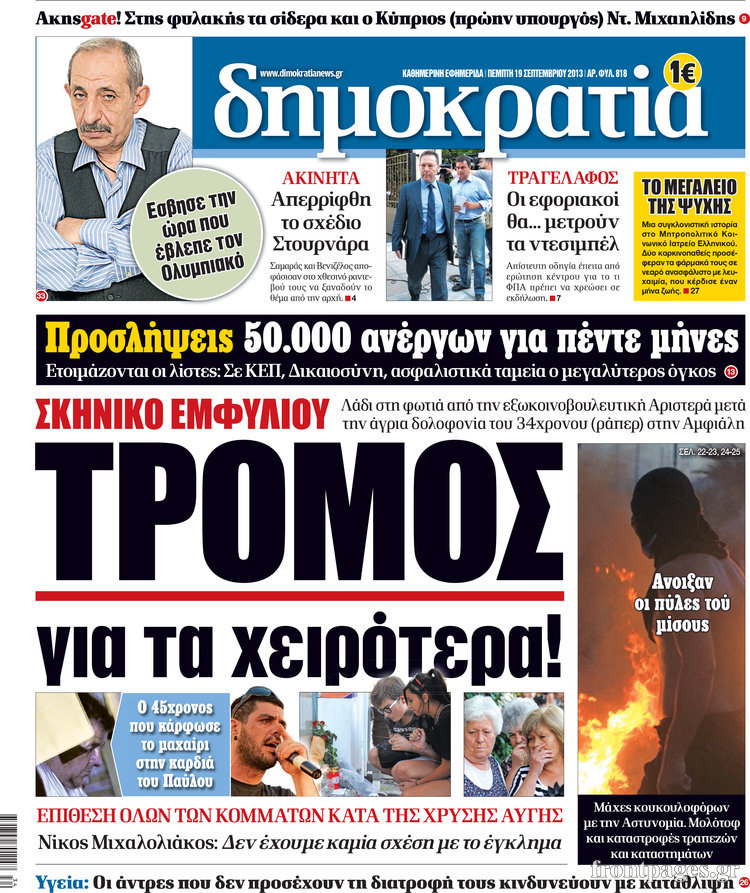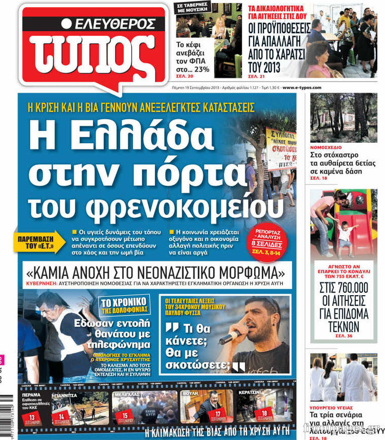 Οι πολιτικές εφημερίδες Enikos Newsroom 08:29, Πέμπτη 19 Σεπτεμβρίου 2013 Media Οι πολιτικές εφημερίδες Διαβάστε τα πρωτοσέλιδα των πολιτικών εφημερίδων: ΕΦΗΜΕΡΙΔΕΣ ΠΟΛΙΤΙΚΕΣ ΕΦΗΜΕΡΙΔΕΣ ΠΡΩΤΟΣΕΛΙΔΑ Μοιράσου το: σχολίασε κι εσύ (0 σχόλια) Ακολουθήστε το enikos.gr στο Google News και μάθετε πρώτοι όλες τις ειδήσεις Δείτε όλες τις τελευταίες ειδήσεις από την Ελλάδα και τον Κόσμο στο enikos.gr Ειδήσεις Ροή Ειδήσεων 3 ώρες πριν Live-Μετ’ εμποδίων η έξοδος: Ανοίγουν σταδιακά 2 λωρίδες σε Θήβα, Ριτσώνα και Κάστρο – Ουρές χιλιομέτρων σχηματίζουν τα αυτοκίνητα 5 ώρες πριν Μπλόκα της Τροχαίας: «Λερναία Ύδρα» τα γκρουπ στο Viber που προειδοποιούν για ελέγχους – Το «γκρίζο» νομικό τοπίο και οι νόμιμες εφαρμογές 2 ώρες πριν Καιρός: Βροχερό το σκηνικό τις ημέρες των Χριστουγέννων – Έρχονται καταιγίδες και ενισχυμένοι άνεμοι, πού θα χιονίσει 3 ώρες πριν Καλύβια: Είχε χάσει 30 κιλά το «πιστόλι» του Έντικ για να μην αναγνωρίζεται – Πώς εντόπισε τον 35χρονο το ελληνικό FBI 3 ώρες πριν Αλεξανδρούπολη: Προφυλακίστηκε η μητέρα του 3χρονου που πέθανε από ασιτία – Τι λέει η δικηγόρος της 3 ώρες πριν Τα 4 ζώδια που θα λάβουν όλα όσα ζητήσουν από το σύμπαν το 2026 -«Οι ευχές σας γίνονται πραγματικότητα» 8 ώρες πριν Αν πίνετε τον καφέ σας σκέτο, πιθανότατα διαθέτετε αυτά τα 7 ισχυρά χαρακτηριστικά 4 ώρες πριν Μυστήριο στο Διάστημα: Επιστήμονες εντόπισαν ένα «πρωτοφανές φαινόμενο» γύρω από το «Μάτι του Σάουρον», μόλις 25 έτη φωτός από τη Γη 10 ώρες πριν Η Coca-Cola και ο Ελληνικός Ερυθρός Σταυρός μαζί αυτά τα Χριστούγεννα: Μια μεγάλη αγκαλιά για τους συνανθρώπους μας που έχουν ανάγκη 6 λεπτά πριν Πέννυ Ρόγκα στο PS Blog: «Υπήρξαν φίλοι μου που εξαφανίστηκαν όταν νόσησα με καρκίνο» 12 λεπτά πριν Κολωνάκι: Συνελήφθη 65χρονη ιδιοκτήτρια καταστήματος που πουλούσε απομιμητικά προϊόντα – ΦΩΤΟ 16 λεπτά πριν Κυριάκος Μητσοτάκης για τηλεμαραθώνιο ΑΝΤ1: Τέτοιες πρωτοβουλίες δείχνουν τον δρόμο της κοινωνικής ευθύνης που οφείλουν να ακολουθούν όλοι 21 λεπτά πριν Καλαμάτα: Κλειστός ο κόμβος της Θουρίας – Πορεία αγροτών με τρακτέρ προς την πόλη 26 λεπτά πριν Μαρία Συρεγγέλα: Προχωρά σε νομικές ενέργειες κατά της Ζωής Κωνσταντοπούλου ENIKOS NETWORK Συγκίνηση στα εγκαίνια του ανακαινισμένου Κέντρου Υγείας στο Αμύνταιο ΕΦΕΤ: Οδηγίες για το τραπέζι των Χριστουγέννων – Τι πρέπει να προσέξουν οι καταναλωτές Τράπεζες: Δείτε ποιες ημέρες θα είναι κλειστές – Τι πρέπει να γνωρίζετε για τις συναλλαγές σας ΕΕ: Τι δείχνουν τα νέα στοιχεία για τις πωλήσεις των καινούριων επιβατικών αυτοκίνητων Ο Google Assistant θα παραμείνει λίγο περισσότερο για ορισμένους χρήστες Android Τεστ προσωπικότητας: Το βάζο που θα επιλέξετε αποκαλύπτει πώς λύνετε προβλήματα στη ζωή σας περισσότερα 17:59 , Τρίτη 23 Δεκεμβρίου 2025 Στο Παρά Πέντε – 20 Χρόνια Μετά: Απόψε στις 21:00 στο Mega το αναμενόμενο Reunion Το πλέον αναμενόμενο και νοσταλγικό Reunion της ελληνικής τηλεόρασης, το «Στο Παρά Πέντε – 20 ... 17:38 , Τρίτη 23 Δεκεμβρίου 2025 Άγιος έρωτας: Ο σεισμός σπέρνει το θάνατο στη Στέρνα Μετά τον καταστροφικό σεισμό που χτυπά τη Στέρνα, τίποτα δεν θα είναι πια το ίδιο στη σειρά ... 14:03 , Τρίτη 23 Δεκεμβρίου 2025 Έξοδος εκδρομέων για τα Χριστούγεννα: Στείλε βίντεο ή φωτογραφίες στο enikos.gr – Αποθήκευσε τον αριθμό 6944 05 05 05 Πολλοί έχουν επιλέξει να περάσουν τις γιορτές εκτός πόλης, ωστόσο και φέτος η μαζική έξοδος απ... 10:34 , Τρίτη 23 Δεκεμβρίου 2025 Την Κυριακή με τη Realnews: Ό,τι και αν αγοράσεις, σκανάρεις και κερδίζε