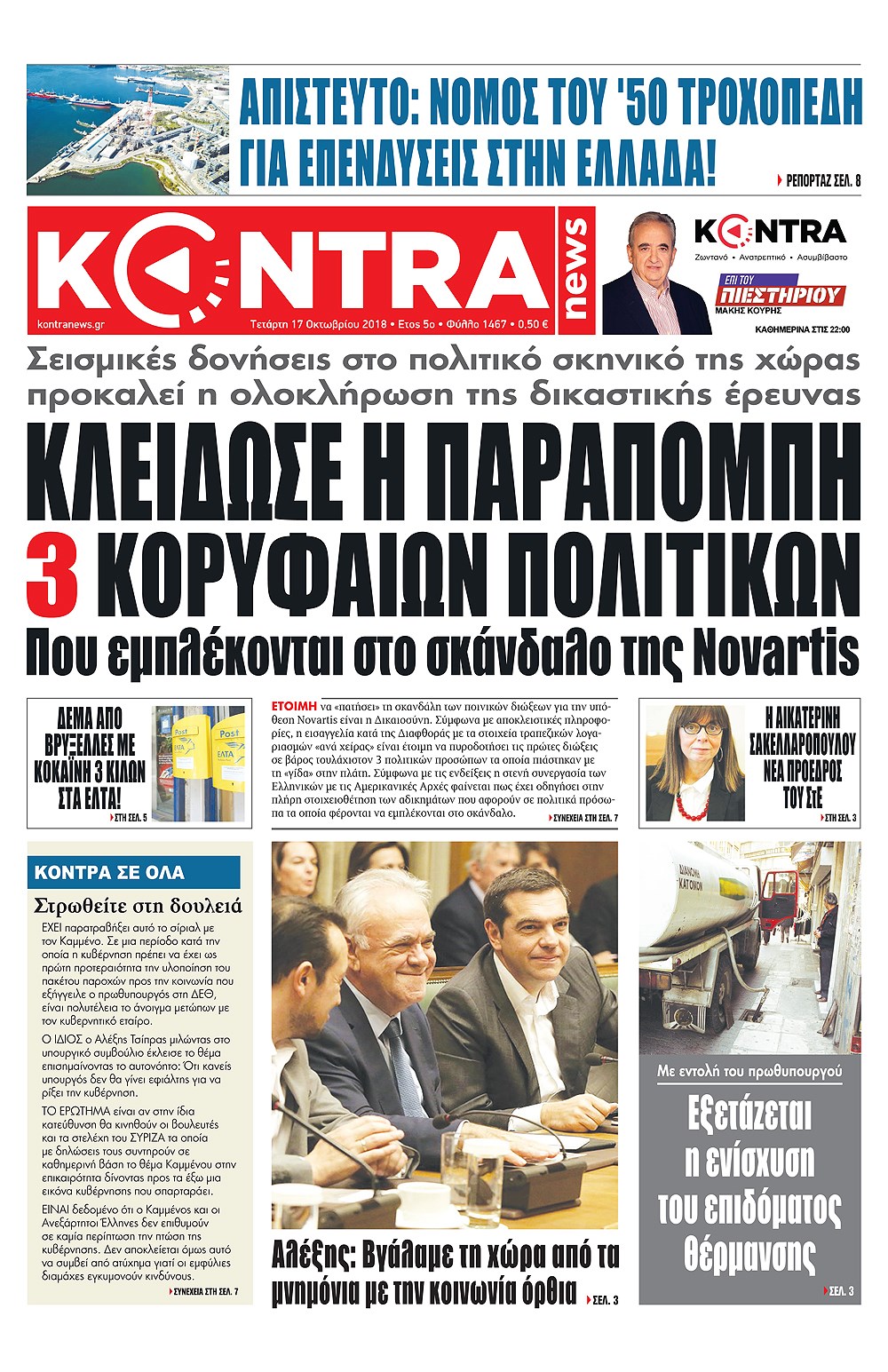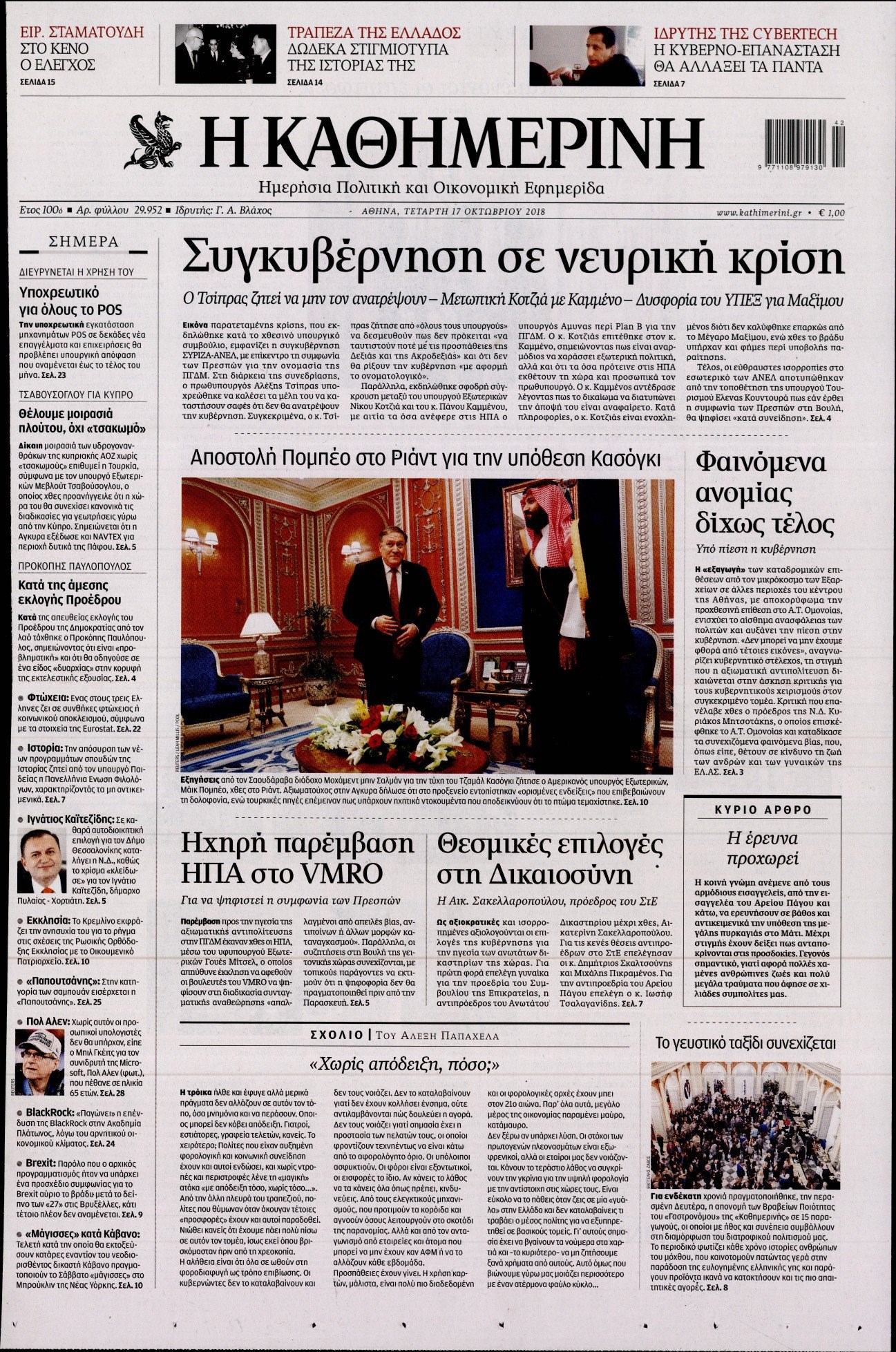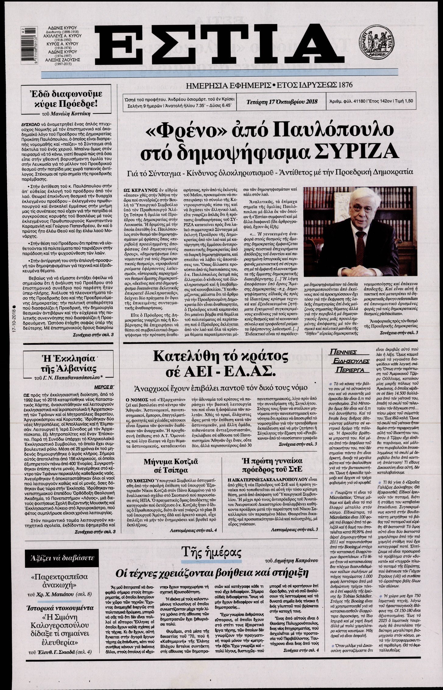 Οι πολιτικές εφημερίδες 17/10/18 Enikos Newsroom 06:22, Τετάρτη 17 Οκτωβρίου 2018 Media Διαβάστε τα πρωτοσέλιδα: ΠΡΩΤΟΣΕΛΙΔΑ Μοιράσου το: σχολίασε κι εσύ (0 σχόλια) Ακολουθήστε το enikos.gr στο Google News και μάθετε πρώτοι όλες τις ειδήσεις Δείτε όλες τις τελευταίες ειδήσεις από την Ελλάδα και τον Κόσμο στο enikos.gr Ειδήσεις Ροή Ειδήσεων 1 ώρα πριν Αγρότες από το μπλόκο Νίκαιας κλείνουν τη Δευτέρα τις σήραγγες των Τεμπών για τα φορτηγά – Τι αποφάσισαν 5 ώρες πριν Μητσοτάκης σε αγρότες: Είμαστε ανοιχτοί στον διάλογο, αλλά όχι στο παράλογο – Η διεκδίκηση αιτημάτων οφείλει να γίνεται με σεβασμό στο κοινωνικό σύνολο 4 ώρες πριν Κηφισιά: Δύο συλλήψεις για ληστεία με λεία 180.000 ευρώ – Βίντεο ντοκουμέντα από τη δράση των συλληφθέντων 50 λεπτά πριν Ζελένσκι: Τάχθηκε σήμερα υπέρ της διεξαγωγής ευρύτερων διαβουλεύσεων με Ευρωπαίους εταίρους 2 ώρες πριν Θεσσαλονίκη: Με Αγιοβασίληδες γέμισε ο Θερμαϊκός στο 5ο Santa SUP 5 ώρες πριν Τα άστρα ευνοούν σκανδαλωδώς 4 ζώδια – «Εμφανίζονται ξαφνικά ευκαιρίες γιατί αποφασίζετε να αφήσετε πίσω το παρελθόν» 4 ώρες πριν Προπονήτρια γυμναστικής που έχασε 9 κιλά αποκαλύπτει: «Αυτοί είναι οι 5 παράγοντες που εμποδίζουν την απώλεια βάρους» 3 ώρες πριν Οι άνθρωποι που στρώνουν το κρεβάτι τους κάθε πρωί, διαθέτουν αυτές τις 8 κρυφές δυνάμεις 1 ημέρα πριν Enerwave: Το νέο «ρεύμα» στη λιανική ενέργειας που αλλάζει την εμπειρία του καταναλωτή 24 δευτερόλεπτα πριν Αγρότες: Ανοιχτός ο Προμαχώνας για όλα τα οχήματα την Παραμονή και την ημέρα των Χριστουγέννων 6 λεπτά πριν Βελόπουλος: Ο πρωθυπουργός επαναλαμβάνει συνεχώς τα ίδια ψέματα 13 λεπτά πριν Μια νύχτα μόνο: Η Αρετή και ο Οδυσσέας έρχονται και πάλι κοντά 20 λεπτά πριν Ένα πλάσμα στα βάθη της θάλασσας απορροφά άνθρακα από την ατμόσφαιρα – «Δεν είχαμε ιδέα για την ύπαρξή του» 21 λεπτά πριν Στο «μικροσκόπιο» των Αρχών ο αγροτοσυνδικαλιστής Κωνσταντίνος Ανεστίδης – Υπό διερεύνηση για επιδοτήσεις 122.000 ευρώ ENIKOS NETWORK Ο εγκέφαλός μας ξεπερνά ακόμα σε εξυπνάδα το ΑΙ – Ποιο είναι αυτό στο οποίο είμαστε καλύτεροι Φοράτε ψηλοτάκουνα παπούτσια; Ποδίατροι συμβουλεύουν πόσο ψηλά επιτρέπεται να είναι και πώς να τα επιλέξετε IRIS: Διπλασιάζεται το όριο μεταφοράς χρημάτων μεταξύ ιδιωτών – Οι νέες αλλαγές και πότε θα εφαρμοστούν Η επόμενη ημέρα για τις ελληνικές τράπεζες -Τι λένε κορυφαία στελέχη του κλάδου Χαρτογραφώντας το «σημείο χωρίς επιστροφή»: Για πρώτη φορά αποκαλύπτεται με λεπτομέρεια το ακανθώδες όριο της ατμόσφαιρας τ... Η Google καταργεί τη λειτουργία «dark web report» – Πώς θα μπορούν οι χρήστες να διαγράφουν τα δεδομένα τους περισσότερα 15:08 , Κυριακή 21 Δεκεμβρίου 2025 Μια νύχτα μόνο: Η Αρετή και ο Οδυσσέας έρχονται και πάλι κοντά Το νέο επεισόδιο της δραματικής σειράς του MEGA «Μια νύχτα μόνο», θα προβληθεί απόψε Κυριακή 2... 14:24 , Κυριακή 21 Δεκεμβρίου 2025 IQ 160: Ο φάκελος με το τεστ πατρότητας ανοίγει, απόψε στις 21:00 στο Star Ανατρεπτικό το νέο διπλό επεισόδιο της σειράς “IQ 160” στις 21:00 στο Star. Ο Τηλέ... 09:43 , Κυριακή 21 Δεκεμβρίου 2025 Το λάθος στην ταινία Die Hard που άφησε άναυδους τους θαυμαστές του Μπρους Γουίλις Ένας φανατικός των ταινιών άφησε άναυδους τους θαυμαστές του Die Hard, επισημαίνοντας τρία βασ... 08:13 , Κυριακή 21 Δεκεμβρίου 2025 Άγιος έρωτας: Ένας καταστροφικός σεισμός χτυπά τη Στέρνα Καταιγιστικές είναι οι εξελίξεις στα δυο τελευταία, συγκλονιστικά επεισόδια του 2025 της σειρά... ΤΕΛΕΥΤΑΙΕΣ ΕΙΔΗΣΕΙΣ 6 λεπτά πριν Βελόπουλος: Ο πρωθυπουρ