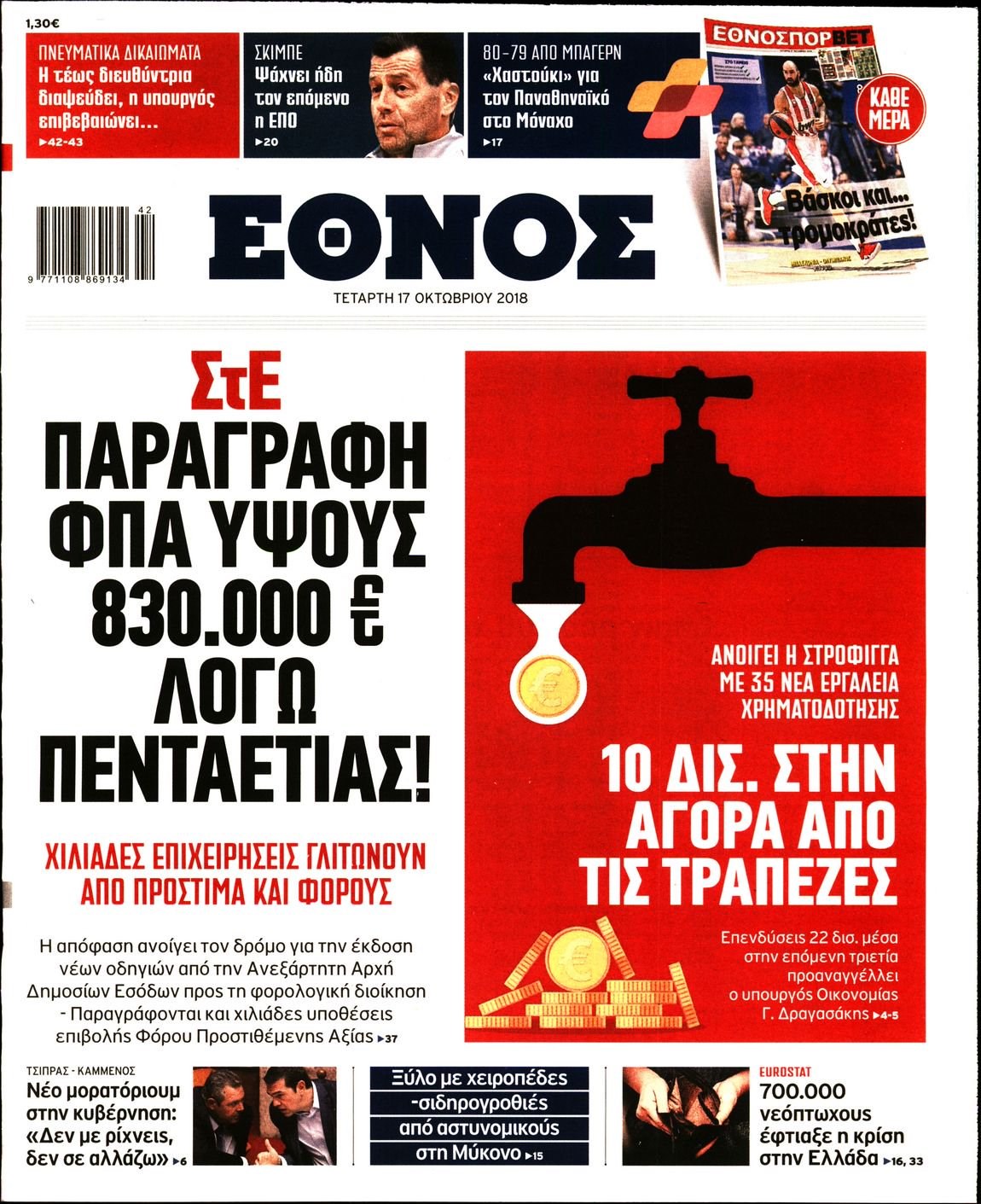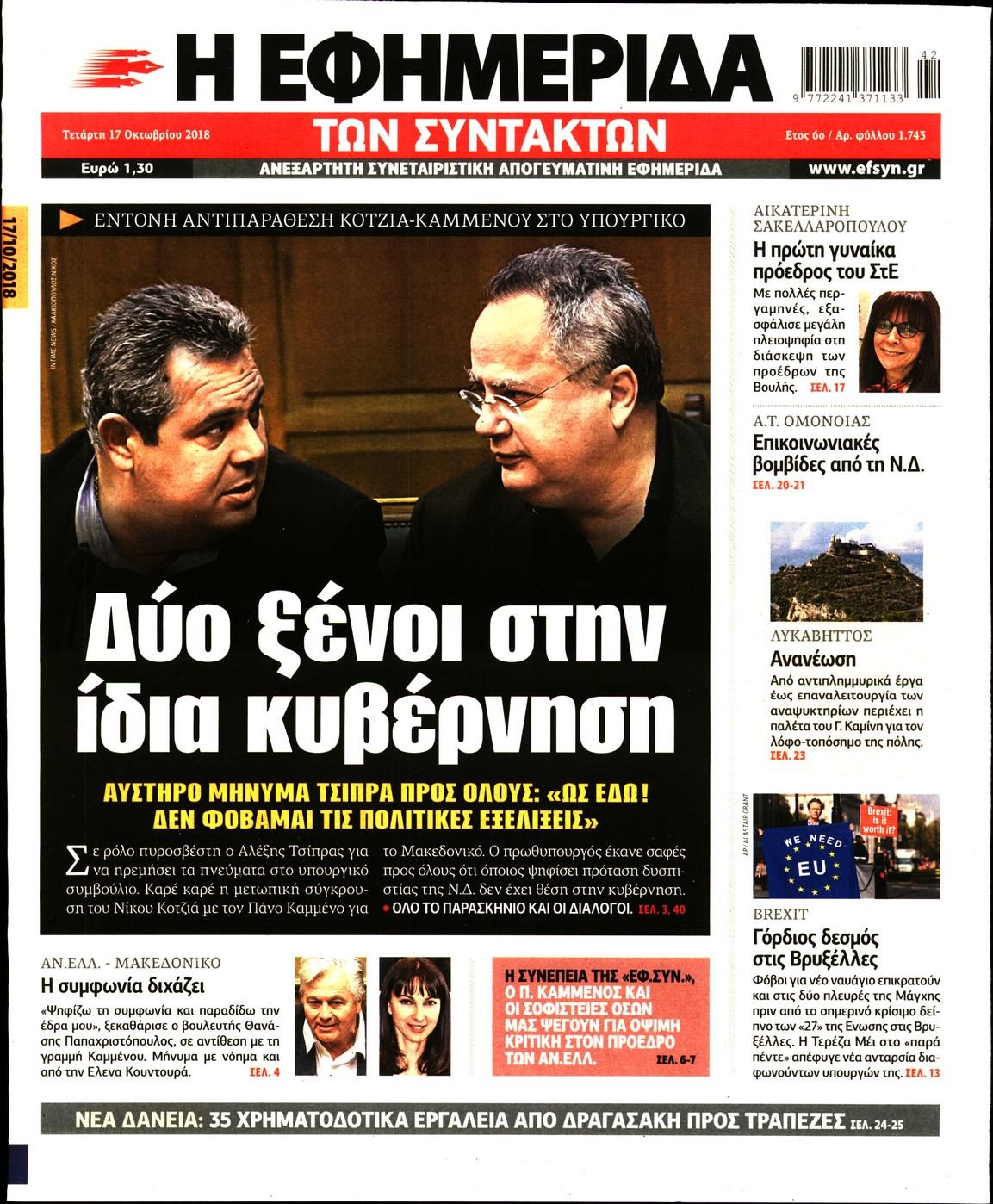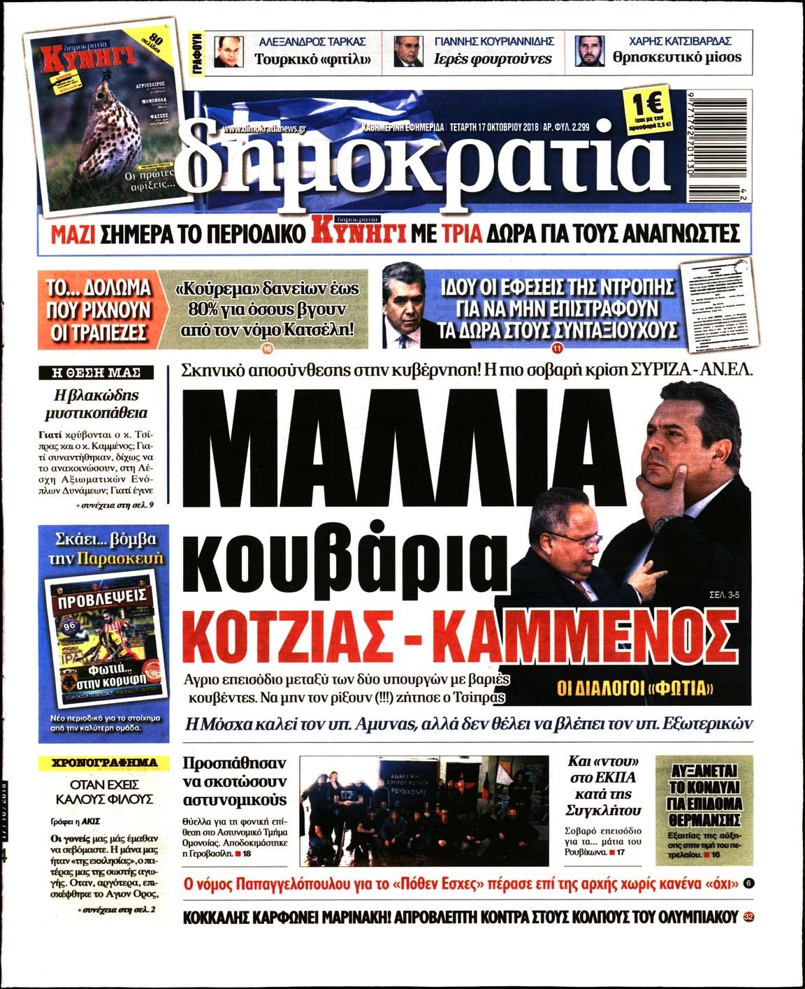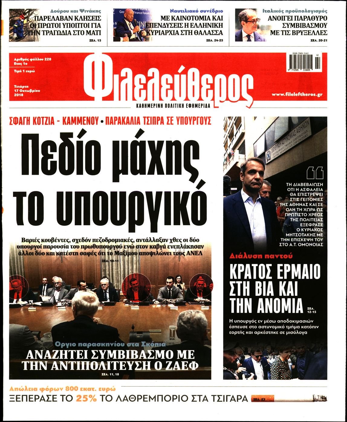 Οι πολιτικές εφημερίδες 17/10/18 Enikos Newsroom 06:22, Τετάρτη 17 Οκτωβρίου 2018 Media Διαβάστε τα πρωτοσέλιδα: ΠΡΩΤΟΣΕΛΙΔΑ Μοιράσου το: σχολίασε κι εσύ (0 σχόλια) Ακολουθήστε το enikos.gr στο Google News και μάθετε πρώτοι όλες τις ειδήσεις Δείτε όλες τις τελευταίες ειδήσεις από την Ελλάδα και τον Κόσμο στο enikos.gr Ειδήσεις Ροή Ειδήσεων 1 ώρα πριν Αγρότες από το μπλόκο Νίκαιας κλείνουν τη Δευτέρα τις σήραγγες των Τεμπών για τα φορτηγά – Τι αποφάσισαν 5 ώρες πριν Μητσοτάκης σε αγρότες: Είμαστε ανοιχτοί στον διάλογο, αλλά όχι στο παράλογο – Η διεκδίκηση αιτημάτων οφείλει να γίνεται με σεβασμό στο κοινωνικό σύνολο 4 ώρες πριν Κηφισιά: Δύο συλλήψεις για ληστεία με λεία 180.000 ευρώ – Βίντεο ντοκουμέντα από τη δράση των συλληφθέντων 50 λεπτά πριν Ζελένσκι: Τάχθηκε σήμερα υπέρ της διεξαγωγής ευρύτερων διαβουλεύσεων με Ευρωπαίους εταίρους 2 ώρες πριν Θεσσαλονίκη: Με Αγιοβασίληδες γέμισε ο Θερμαϊκός στο 5ο Santa SUP 5 ώρες πριν Τα άστρα ευνοούν σκανδαλωδώς 4 ζώδια – «Εμφανίζονται ξαφνικά ευκαιρίες γιατί αποφασίζετε να αφήσετε πίσω το παρελθόν» 4 ώρες πριν Προπονήτρια γυμναστικής που έχασε 9 κιλά αποκαλύπτει: «Αυτοί είναι οι 5 παράγοντες που εμποδίζουν την απώλεια βάρους» 3 ώρες πριν Οι άνθρωποι που στρώνουν το κρεβάτι τους κάθε πρωί, διαθέτουν αυτές τις 8 κρυφές δυνάμεις 1 ημέρα πριν Enerwave: Το νέο «ρεύμα» στη λιανική ενέργειας που αλλάζει την εμπειρία του καταναλωτή 24 δευτερόλεπτα πριν Αγρότες: Ανοιχτός ο Προμαχώνας για όλα τα οχήματα την Παραμονή και την ημέρα των Χριστουγέννων 6 λεπτά πριν Βελόπουλος: Ο πρωθυπουργός επαναλαμβάνει συνεχώς τα ίδια ψέματα 13 λεπτά πριν Μια νύχτα μόνο: Η Αρετή και ο Οδυσσέας έρχονται και πάλι κοντά 20 λεπτά πριν Ένα πλάσμα στα βάθη της θάλασσας απορροφά άνθρακα από την ατμόσφαιρα – «Δεν είχαμε ιδέα για την ύπαρξή του» 21 λεπτά πριν Στο «μικροσκόπιο» των Αρχών ο αγροτοσυνδικαλιστής Κωνσταντίνος Ανεστίδης – Υπό διερεύνηση για επιδοτήσεις 122.000 ευρώ ENIKOS NETWORK Ο εγκέφαλός μας ξεπερνά ακόμα σε εξυπνάδα το ΑΙ – Ποιο είναι αυτό στο οποίο είμαστε καλύτεροι Φοράτε ψηλοτάκουνα παπούτσια; Ποδίατροι συμβουλεύουν πόσο ψηλά επιτρέπεται να είναι και πώς να τα επιλέξετε IRIS: Διπλασιάζεται το όριο μεταφοράς χρημάτων μεταξύ ιδιωτών – Οι νέες αλλαγές και πότε θα εφαρμοστούν Η επόμενη ημέρα για τις ελληνικές τράπεζες -Τι λένε κορυφαία στελέχη του κλάδου Χαρτογραφώντας το «σημείο χωρίς επιστροφή»: Για πρώτη φορά αποκαλύπτεται με λεπτομέρεια το ακανθώδες όριο της ατμόσφαιρας τ... Η Google καταργεί τη λειτουργία «dark web report» – Πώς θα μπορούν οι χρήστες να διαγράφουν τα δεδομένα τους περισσότερα 15:08 , Κυριακή 21 Δεκεμβρίου 2025 Μια νύχτα μόνο: Η Αρετή και ο Οδυσσέας έρχονται και πάλι κοντά Το νέο επεισόδιο της δραματικής σειράς του MEGA «Μια νύχτα μόνο», θα προβληθεί απόψε Κυριακή 2... 14:24 , Κυριακή 21 Δεκεμβρίου 2025 IQ 160: Ο φάκελος με το τεστ πατρότητας ανοίγει, απόψε στις 21:00 στο Star Ανατρεπτικό το νέο διπλό επεισόδιο της σειράς “IQ 160” στις 21:00 στο Star. Ο Τηλέ... 09:43 , Κυριακή 21 Δεκεμβρίου 2025 Το λάθος στην ταινία Die Hard που άφησε άναυδους τους θαυμαστές του Μπρους Γουίλις Ένας φανατικός των ταινιών άφησε άναυδους τους θαυμαστές του Die Hard, επισημαίνοντας τρία βασ... 08:13 , Κυριακή 21 Δεκεμβρίου 2025 Άγιος έρωτας: Ένας καταστροφικός σεισμός χτυπά τη Στέρνα Καταιγιστικές είναι οι εξελίξεις στα δυο τελευταία, συγκλονιστικά επεισόδια του 2025 της σειρά... ΤΕΛΕΥΤΑΙΕΣ ΕΙΔΗΣΕΙΣ 6 λεπτά πριν Βελόπουλος: Ο πρωθυπουρ