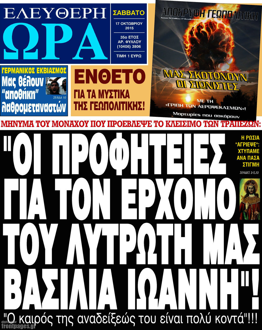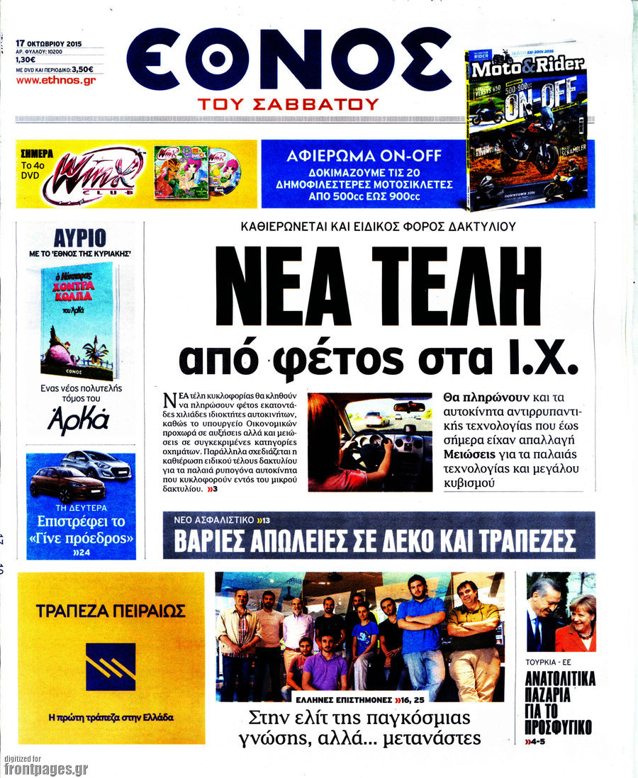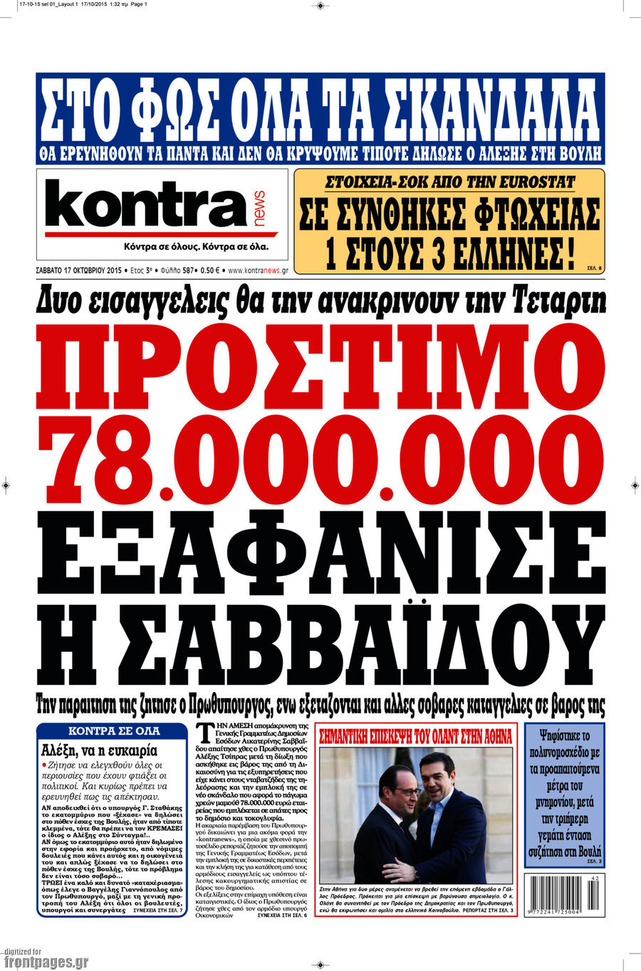 Οι πολιτικές εφημερίδες 17/10/2015 Enikos Newsroom 08:31, Σάββατο 17 Οκτωβρίου 2015 Media Διαβάστε τα σημερινά πρωτοσέλιδα των πολιτικών εφημερίδων: ΠΟΛΙΤΙΚΕΣ ΕΦΗΜΕΡΙΔΕΣ ΠΡΩΤΟΣΕΛΙΔΑ Μοιράσου το: σχολίασε κι εσύ (0 σχόλια) Ακολουθήστε το enikos.gr στο Google News και μάθετε πρώτοι όλες τις ειδήσεις Δείτε όλες τις τελευταίες ειδήσεις από την Ελλάδα και τον Κόσμο στο enikos.gr Ειδήσεις Ροή Ειδήσεων 54 λεπτά πριν Μεσόγειος: Η διαδρομή του ρωσικού τάνκερ «Qendil» και η στοχευμένη επίθεση της Ουκρανίας με drone – Ο Πούτιν προειδοποίησε για αντίποινα 48 λεπτά πριν Αττική: Θρίλερ με νεκρό βρέφος 5 μηνών – Κοιμόταν στο ίδιο κρεβάτι με τους γονείς του 2 ώρες πριν Από το Ορμένιο ως τα Μάλγαρα κι από τη Σιάτιστα μέχρι τη Νίκαια: Μπλόκα σε όλη την Ελλάδα – Το Σάββατο ανοίγουν τα διόδια οι αγρότες 2 ώρες πριν «Έλληνας Εσκομπάρ»: Φωτογραφίες με τους 4 τόνους κοκαΐνης που κατασχέθηκαν από το σκάφος «Ουρανία» 3 ώρες πριν Πούτιν: Σαρκαστικά μηνύματα, παράπονα και απρόοπτα στη συνέντευξη Τύπου – Η πρόταση γάμου on air και οι ερωτήσεις για τα αγγούρια και τους… εξωγήινους 3 ώρες πριν Τα 5 ζώδια που ευνοούνται στην ερωτική ζωή τους την επόμενη εβδομάδα – «Η ενέργεια του Αιγόκερου φέρνει αγάπη και σταθερότητα» 7 ώρες πριν Ειδικός μοιράζεται 6 κόλπα για να διατηρείστε σε φόρμα με πάνω από 40 ώρες εργασίας την εβδομάδα: «Προπονηθείτε πριν από τη δουλειά, όχι μετά» 4 ώρες πριν Αυτό το έξυπνο μαθηματικό κόλπο θα μπορούσε να αλλάξει τον τρόπο με τον οποίο οι επιστήμονες μελετούν τους σεισμούς 2 ώρες πριν Κουίζ για την παλιά Αθήνα: Αναγνωρίζετε την περιοχή; Έχετε περάσει 100% από εκεί 23 δευτερόλεπτα πριν Τέμπη: Διεκόπη για τις 9 Ιανουαρίου η δίκη για τα χαμένα βίντεο της εμπορικής αμαξοστοιχίας – «Απαιτούμε να μας σέβονται» 5 λεπτά πριν Hellenic Train: Αλλαγές και καταργήσεις δρομολογίων λεωφορείων λόγω των αγροτικών κινητοποιήσεων 12 λεπτά πριν Ζελένσκι: «Δεν χρειάζεται αναθεώρηση του Συντάγματος» για να εγκαταλείψει η Ουκρανία τον στόχο ένταξης στο ΝΑΤΟ 16 λεπτά πριν Παναγιώτα Βλαντή: Η τρυφερή εξομολόγηση για τον σύζυγό της – «Πραγματικά ήταν για μένα αυτό που ήθελα σε όλη μου τη ζωή» 23 λεπτά πριν Επίσημη η «βόμβα»: Ο ΠΑΟΚ ανακοίνωσε την απόκτηση του Πάτρικ Μπέβερλι ENIKOS NETWORK «Η σούπερ» γρίπη εξαπλώνεται στην Ευρώπη-Στοιχεία για την αποτελεσματικότητα του εμβολίου από το ECDC ΕΛΣΤΑΤ: Αύξηση κατά 1,7% των επαγγελματιών υγείας το 2024 Η απάντηση της κυβέρνησης στα αιτήματα των αγροτών: 16 έχουν ικανοποιηθεί, 4 βρίσκονται υπό επεξεργασία και 7 δεν είναι εφι... Μισθολογική διαφάνεια: Το 68% των εργαζομένων αγνοεί τη νέα οδηγία – Αναλυτικά τα στοιχεία έρευνας Χαρτογραφώντας το «σημείο χωρίς επιστροφή»: Για πρώτη φορά αποκαλύπτεται με λεπτομέρεια το ακανθώδες όριο της ατμόσφαιρας τ... Η Google καταργεί τη λειτουργία «dark web report» – Πώς θα μπορούν οι χρήστες να διαγράφουν τα δεδομένα τους περισσότερα 18:11 , Παρασκευή 19 Δεκεμβρίου 2025 Το σόι σου: Ο Άρης έρχεται στην Ελλάδα για τις γιορτές των Χριστουγέννων – Τι θα δούμε στο αποψινό εορταστικό επεισόδιο Ένα απολαυστικό, εορταστικό επεισόδιο της σειράς “Το σόι σου”, γεμάτο ευτράπελα αλ... 15:15 , Παρασκευή 19 Δεκεμβρίου 2025 Την Κυριακή με τη Realnews: Ό,τι και αν αγοράσεις, σκανάρεις και κερδίζεις! Την Κυριακή με τη Realnews: Ό,τι και αν αγοράσεις, σκανάρεις και κερδίζεις! Με το PADU app, το... 08:00 , Παρασκευή 19 Δεκεμβρίου 2025 Την Κυριακή με τη Realnews: Δωροεπιταγή 10€ Δωροεπιταγή αξίας 10€ για αγορές άνω των 60€ από τα π