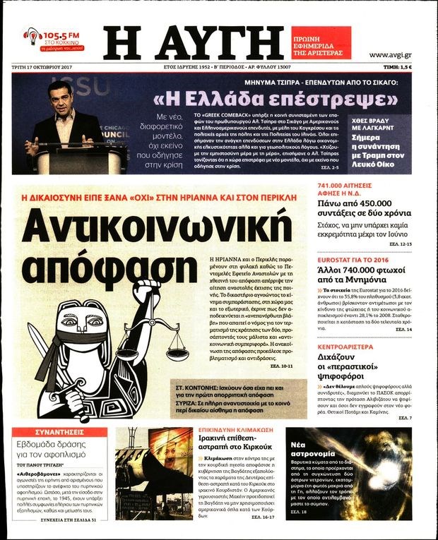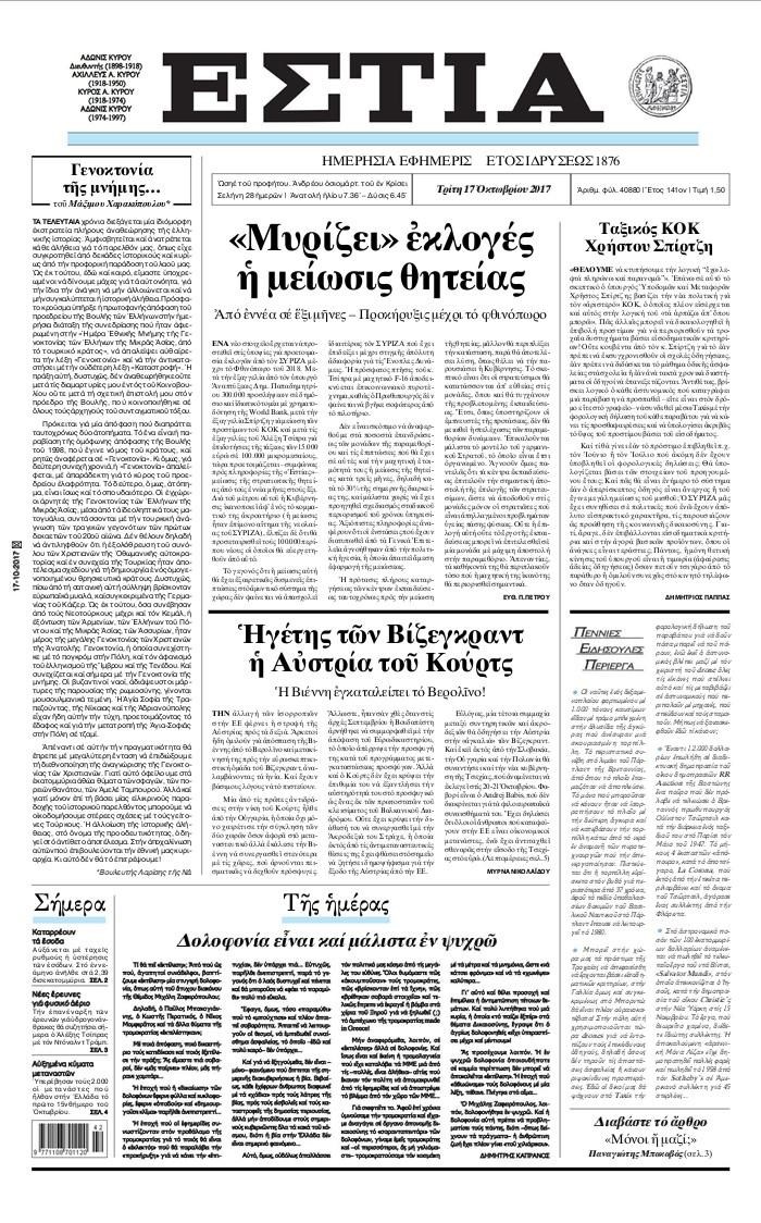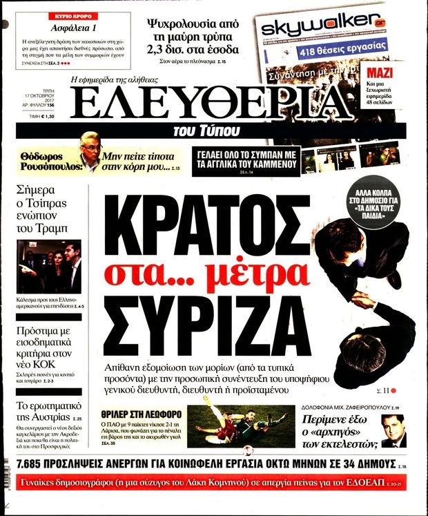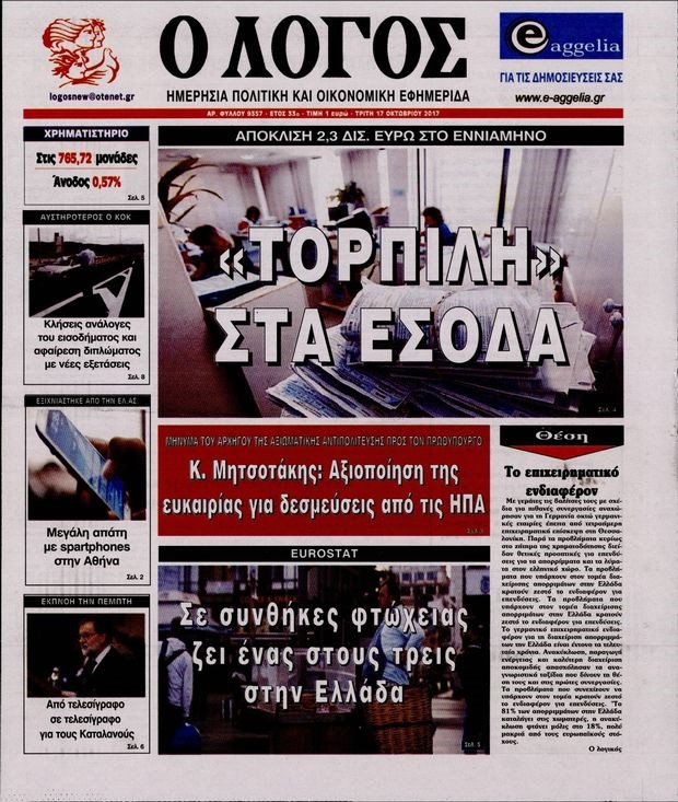 Οι πολιτικές εφημερίδες 17/10/2017 Κώστας Τεό 06:11, Τρίτη 17 Οκτωβρίου 2017 Media Διαβάστε τα σημερινά πρωτοσέλιδα των πολιτικών εφημερίδων: ΠΟΛΙΤΙΚΕΣ ΕΦΗΜΕΡΙΔΕΣ ΠΡΩΤΟΣΕΛΙΔΑ Μοιράσου το: σχολίασε κι εσύ (0 σχόλια) Ακολουθήστε το enikos.gr στο Google News και μάθετε πρώτοι όλες τις ειδήσεις Δείτε όλες τις τελευταίες ειδήσεις από την Ελλάδα και τον Κόσμο στο enikos.gr Ειδήσεις Ροή Ειδήσεων 4 ώρες πριν Χριστούγεννα στα μπλόκα οι αγρότες: Άνοιξαν στα διόδια και μοίρασαν προϊόντα στους πολίτες – Νέα σύσκεψη την Κυριακή στη Νίκαια 4 ώρες πριν Κύκλωμα διακίνησης ναρκωτικών σε σχολεία: Τηλεφωνούσαν στους ανηλίκους την ώρα του μαθήματος – Οι διάλογοι-σοκ, τα «ψευδώνυμα» και τα βασανιστήρια 4 ώρες πριν Αρχεία Επστάιν: Οι 500 σελίδες που λείπουν, τα αναπάντητα ερωτήματα και οι επώνυμοι – Τι έπεται 5 ώρες πριν Ζελένσκι: Μόνο οι ΗΠΑ και ο Τραμπ μπορούν να πιέσουν τη Ρωσία να βάλει τέλος στον πόλεμο 6 ώρες πριν Φοινικούντα: Προφυλακιστέος ο 30χρονος για συνέργεια στη διπλή δολοφονία – Και άλλα πρόσωπα στο «μικροσκόπιο» 3 ώρες πριν Αποκαλύφθηκε το άγνωστο «GPS» της αρχαιότητας – Πώς οι ναοί «φώτιζαν» τον δρόμο των ναυτικών πριν από την εφεύρεση των φάρων 4 ώρες πριν Ύπνος: Η διατροφή που μπορεί να σας βοηθήσει να κοιμάστε καλύτερα και να ζήσετε περισσότερο 5 ώρες πριν Αριθμολογία: Ο αριθμός του φύλακα αγγέλου σας, με βάση τον μήνα γέννησής σας – «Έτσι σας στέλνει σημάδια το σύμπαν» 17 ώρες πριν Enerwave: Το νέο «ρεύμα» στη λιανική ενέργειας που αλλάζει την εμπειρία του καταναλωτή 13 λεπτά πριν Δυτική Όχθη: Δύο Παλαιστίνιοι νεκροί από σφαίρες του Ισραηλινού στρατού 28 λεπτά πριν Ένοχος ο 54χρονος «ερευνητής» που έταζε ότι θα εντοπίσει τον αγνοούμενο γιατρό από την Κρήτη – «Μας γέμισε φρούδες ελπίδες», λέει ο πατέρας του 33χρονου 43 λεπτά πριν Σεισμός 3,8 Ρίχτερ ανοιχτά της Αμοργού 58 λεπτά πριν Άννα Βίσση: Τα… Social Media «προσκύνησαν» την «απόλυτη» για την συναυλία της στο Καλλιμάρμαρο που προβλήθηκε από το Mega 1 ώρα πριν Φωτεινή Αθερίδου: «Προσπαθώ να είμαι κάθετη και αυστηρή σαν μαμά πια» ENIKOS NETWORK Οι γυναίκες αποκαλύπτουν το πιο ελκυστικό πράγμα που μπορεί να κάνει ένας άνδρας Ομορφιά και αντιγήρανση: Ειδικοί μιλούν για συσκευές περιποίησης του δέρματος «Πολεμική» προετοιμασία από την ευρωπαϊκή βιομηχανία ενέργειας – Η Eurelectric ζητεί «ομπρέλα» προστασίας για τις υποδομές Ακύρωση ΑΦΜ για απάτες – Ποιους βάζει στο στόχαστρο η ΑΑΔΕ Χαρτογραφώντας το «σημείο χωρίς επιστροφή»: Για πρώτη φορά αποκαλύπτεται με λεπτομέρεια το ακανθώδες όριο της ατμόσφαιρας τ... Η Google καταργεί τη λειτουργία «dark web report» – Πώς θα μπορούν οι χρήστες να διαγράφουν τα δεδομένα τους περισσότερα 01:30 , Κυριακή 21 Δεκεμβρίου 2025 Άννα Βίσση: Τα… Social Media «προσκύνησαν» την «απόλυτη» για την συναυλία της στο Καλλιμάρμαρο που προβλήθηκε από το Mega Την ημέρα των γενεθλίων της Άννας Βίσση, το MEGA τίμησε τη διαχρονική παρουσία της «απόλυτης Ε... 00:00 , Κυριακή 21 Δεκεμβρίου 2025 The Voice: Η επιστροφή της Έλενας Παπαρίζου και η ατάκα του Γιώργου Μαζωνάκη μετά τις καταγγελίες Στη φάση των Cross Battles Live μπήκε το The Voice, με την Έλενα Παπαρίζου να επιστρέφει στο π... 20:30 , Σάββατο 20 Δεκεμβρίου 2025 Αυτή την Κυριακή με τη Realnews: Instyle, μαζί Drive και Realnews Geopolitics Αυτή την Κυριακή με τη Realnews: Instyle, μαζί Drive και Realnews Geopolitics Instyle Η Άννα Ρ... 20:28 , Σάββατο 20 Δεκεμβρίου 2025 Ο ΑΝΤ1 γεμίζει τις γιορτές με μουσική – Ποιους καλλιτέχνες θα απολαύσουμε Φέτος στον ΑΝΤ1 γιορτάζουμε τις νύχτες 