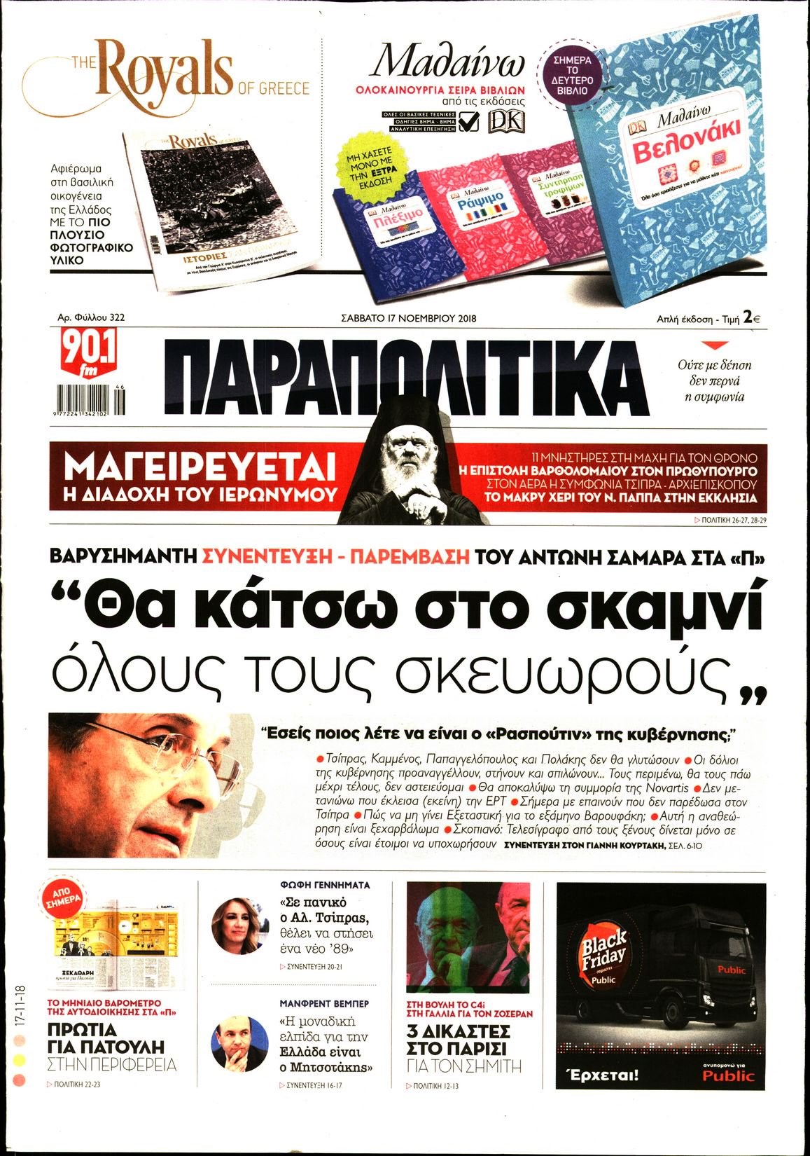Οι πολιτικές εφημερίδες 17/11/18 Enikos Newsroom 06:28, Σάββατο 17 Νοεμβρίου 2018 Media Διαβάστε τα πρωτοσέλιδα: ΠΟΛΙΤΙΚΕΣ ΕΦΗΜΕΡΙΔΕΣ ΠΡΩΤΟΣΕΛΙΔΑ Μοιράσου το: σχολίασε κι εσύ (0 σχόλια) Ακολουθήστε το enikos.gr στο Google News και μάθετε πρώτοι όλες τις ειδήσεις Δείτε όλες τις τελευταίες ειδήσεις από την Ελλάδα και τον Κόσμο στο enikos.gr Ειδήσεις Ροή Ειδήσεων 3 ώρες πριν Υπόθεση Έπσταϊν: Το Υπουργείο Δικαιοσύνης δημοσιοποίησε μια σειρά από εξαιρετικά επεξεργασμένα αρχεία – «Λείπουν τα πιο σημαντικά έγγραφα», λένε οι Δημοκρατικοί 19 λεπτά πριν Γιορτές με μπλόκα για τους αγρότες: Ανοίγουν διόδια και μοιράζουν προϊόντα στους ταξιδιώτες 51 λεπτά πριν Εξαφάνιση 33χρονου γιατρού στην Κρήτη: «Άναψα τα φώτα, τρόμαξε και άρχισε να τρέχει στα χωράφια» – Η τελευταία διαδρομή και η μαρτυρία «κλειδί» 2 ώρες πριν Ο «χάρτης» με τις αυξήσεις και τις φοροελαφρύνσεις του 2026 – Ποιοι και πόσα κερδίζουν 35 λεπτά πριν Τα αρχεία του Έπσταϊν αποκαλύπτουν φωτογραφία του έκπτωτου πρίγκιπα Άντριου – Είναι ξαπλωμένος στην αγκαλιά 5 γυναικών 42 λεπτά πριν Μία νέα «χρυσή» περίοδος αρχίζει για 3 ζώδια από σήμερα – «Μία αναπάντεχη ευκαιρία οδηγεί στην επιτυχία» 5 ώρες πριν Αυγά: Πόσα μπορείτε να τρώτε την ημέρα με ασφάλεια για μέγιστη πρόσληψη πρωτεΐνης 3 ώρες πριν Αρχαιολόγοι ανακάλυψαν σε χωράφι απεικόνιση 600 ετών ενός Αγίου – Τα στοιχεία που δείχνουν ότι μαρτύρησε 2 ώρες πριν Αγχώνεται για το χριστουγεννιάτικο δώρο που πήρε στην πλούσια σύντροφό του – «Φοβάμαι πως θα το βρει φθηνιάρικο, φοράει βραχιόλια Cartier» 3 λεπτά πριν Πώς η κλιματική αλλαγή επηρεάζει εγκύους και βρέφη – Οι επιπτώσεις των υψηλών θερμοκρασιών 11 λεπτά πριν e-ΕΦΚΑ και ΔΥΠΑ: Οι πληρωμές από 22 έως 24 Δεκεμβρίου – Ποιοι θα δουν χρήματα στους λογαριασμούς τους 19 λεπτά πριν Συνελήφθη οδηγός μηχανής που έτρεχε με 161 χλμ στη Συγγρού – Τον έπιασε το ραντάρ της Τροχαίας 19 λεπτά πριν Γιορτές με μπλόκα για τους αγρότες: Ανοίγουν διόδια και μοιράζουν προϊόντα στους ταξιδιώτες 27 λεπτά πριν Τηλεθέαση (19/12): Κυριάρχησε η σειρά «Το σόι σου» – Τι νούμερα έκανε ο τελικός του GNTM ENIKOS NETWORK Είστε μόνιμα απρόσεκτοι; 3 σημάδια που δείχνουν ότι μπορεί να είναι σύμπτωμα πάθησης Πόσα κιλά παίρνουμε πραγματικά τα Χριστούγεννα, σύμφωνα με την επιστήμη – Πώς να το αποτρέψουμε; Επίδομα παιδιού: Τι αλλάζει από το 2026 – Το όφελος από τις φορολογικές ελαφρύνσεις Mega χριστουγεννιάτικη φορολοταρία: «Κλείδωσε» η ημερομηνία για την κλήρωση – Ερωτήσεις και απαντήσεις Χαρτογραφώντας το «σημείο χωρίς επιστροφή»: Για πρώτη φορά αποκαλύπτεται με λεπτομέρεια το ακανθώδες όριο της ατμόσφαιρας τ... Η Google καταργεί τη λειτουργία «dark web report» – Πώς θα μπορούν οι χρήστες να διαγράφουν τα δεδομένα τους περισσότερα 09:30 , Σάββατο 20 Δεκεμβρίου 2025 «Porto Leone: Στη γειτονιά με τα κόκκινα φανάρια» – Ο Χρόνης αποκαλύπτει στην Αλεξάνδρα το μυστικό για το παιδί της Λένας Η μεγάλη δραματική σειρά του Apha «Porto Leone: Στη γειτονιά με τα κόκκινα φανάρια» μας μεταφέ... 08:14 , Σάββατο 20 Δεκεμβρίου 2025 Τρομεροί γονείς: Η Μαρία Καβογιάννη εισβάλλει στο σπίτι της οικογένειας Στεφανίδη Όσα θα δούμε στο νέο διπλό επεισόδιο της σειράς «Τρομεροί γονείς», σήμερα Σάββατο 20 Δεκεμβρίο... 05:48 , Σάββατο 20 Δεκεμβρίου 2025 Οι οικονομικές εφημερίδες 20/12/2025 Διαβάστε τα πρωτοσέλιδα από τις οικονομικές εφημερίδες, σήμερα 20/12/2025. 05:43 , Σάββατο 20 Δεκεμβρίου 2025 Οι αθλητικές εφημερίδες 20/12/2025 Διαβάστε τα πρωτοσέλιδα από τις αθλητικές 