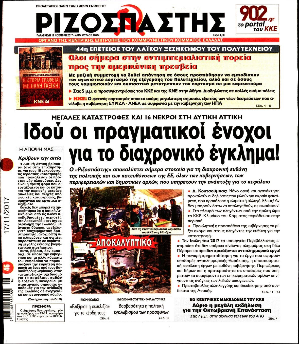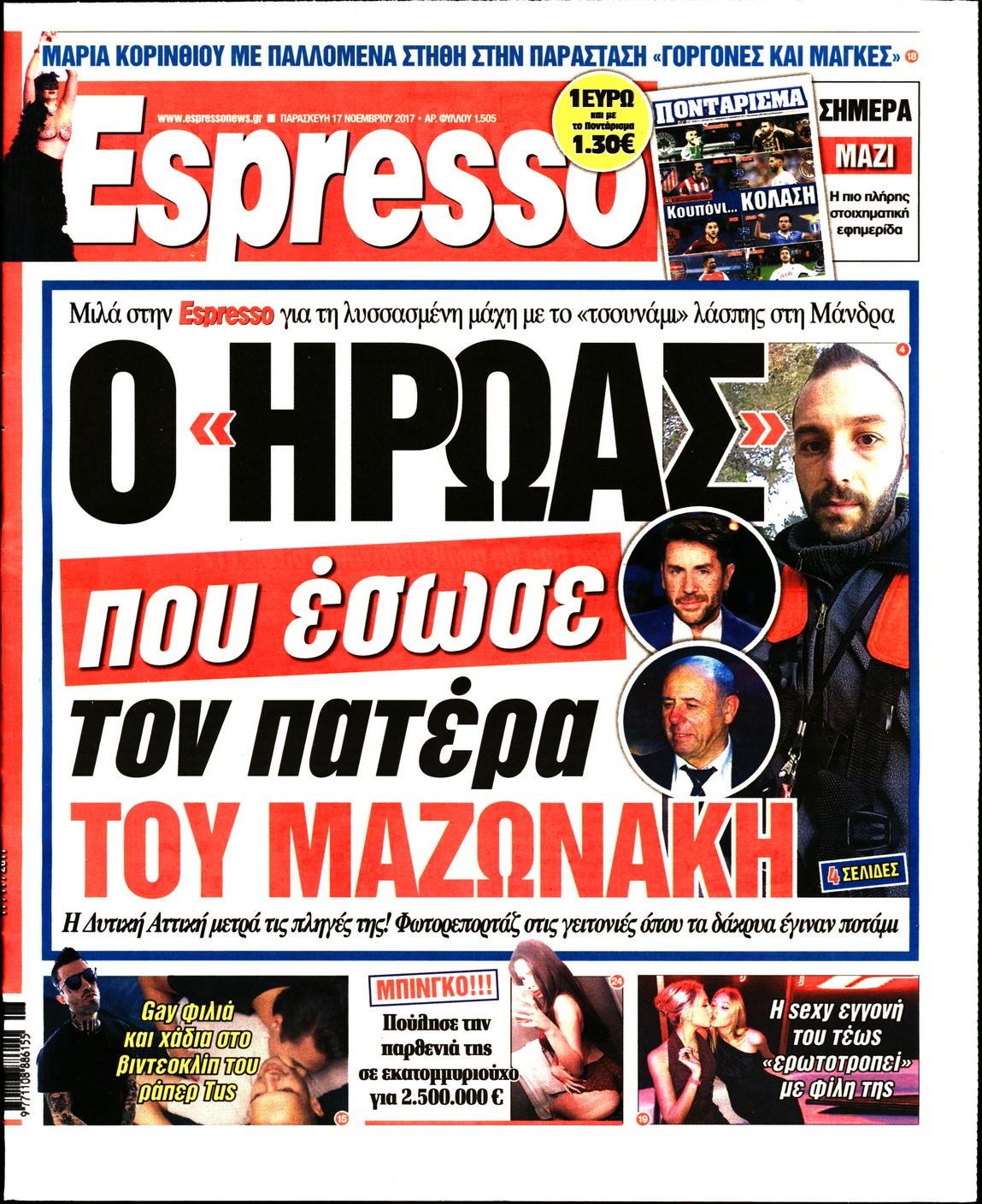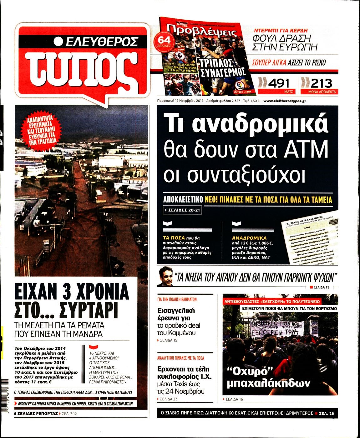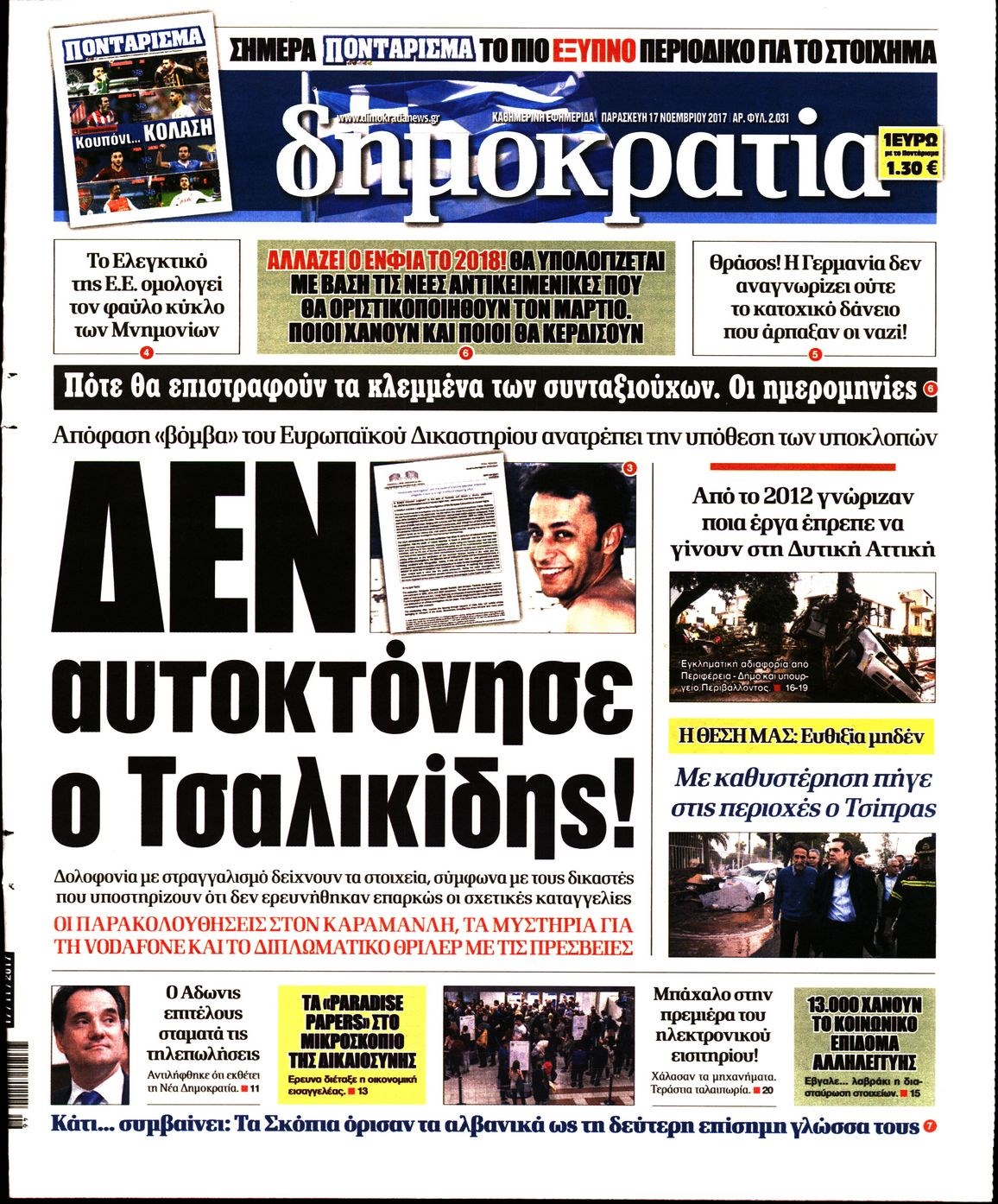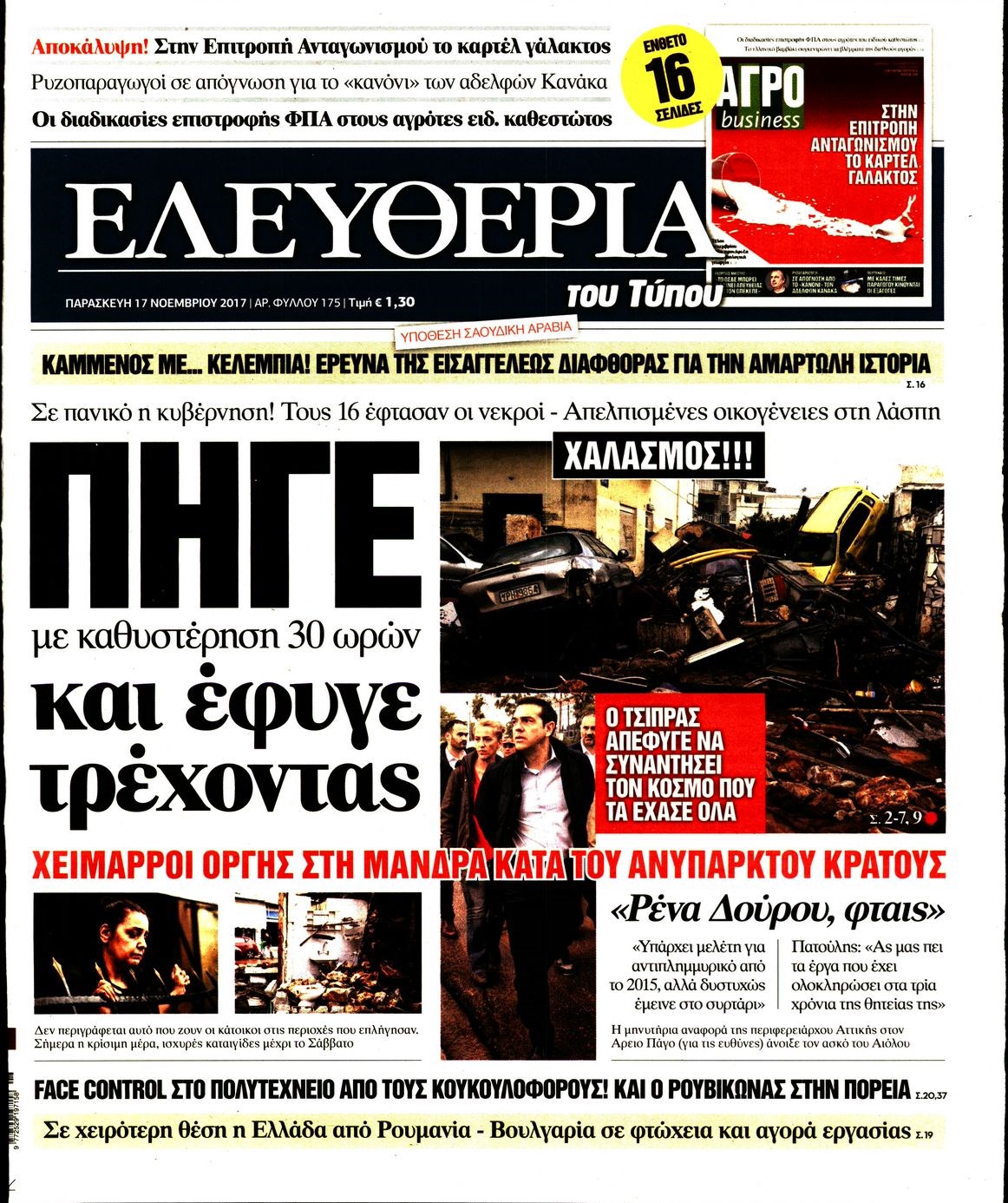 Οι πολιτικές εφημερίδες 17/11/2017 Enikos Newsroom 08:11, Παρασκευή 17 Νοεμβρίου 2017 Media Διαβάστε τα σημερινά πρωτοσέλιδα των πολιτικών εφημερίδων: ΠΟΛΙΤΙΚΕΣ ΕΦΗΜΕΡΙΔΕΣ ΠΡΩΤΟΣΕΛΙΔΑ Μοιράσου το: σχολίασε κι εσύ (0 σχόλια) Ακολουθήστε το enikos.gr στο Google News και μάθετε πρώτοι όλες τις ειδήσεις Δείτε όλες τις τελευταίες ειδήσεις από την Ελλάδα και τον Κόσμο στο enikos.gr Ειδήσεις Ροή Ειδήσεων 4 ώρες πριν Χριστούγεννα στα μπλόκα: Επιμένουν στις κινητοποιήσεις τους οι αγρότες – Ανοίγουν τα διόδια το Σαββατοκύριακο 4 ώρες πριν Ουκρανία: Η άνευ προηγουμένου επίθεση σε ρωσικό τάνκερ στη Μεσόγειο και το μήνυμα προς στον Πούτιν – Το «μακρύ χέρι» του Κιέβου 3 ώρες πριν Πούτιν: Τα μηνύματα σε Ευρώπη και ΝΑΤΟ από το μαραθώνιο «σόου» του – Η απαίτηση για «σεβασμό» και η ειρήνη «με τους όρους» της Μόσχας 4 ώρες πριν Τραμπ: Δεν αποκλείει την πιθανότητα ενός πολέμου στη Βενεζουέλα – «Ο Μαδούρο ξέρει καλύτερα από τον καθένα τι ακριβώς θέλω» 5 ώρες πριν Συνεχίζει να προκαλεί ο Μίτσκοσκι: «Για μένα το όνομα Μακεδονία είναι ιερό» 3 ώρες πριν Ανακαλύφθηκαν αρχαία χρυσά νομίσματα 2.200 ετών που απεικονίζουν τον θεό Απόλλωνα – Η άγνωστη σύνδεση με τον Φίλιππο Β΄ της Μακεδονίας 4 ώρες πριν Ύπνος: Μια κρυφή κατάσταση του εγκεφάλου πριν από τον ύπνο μπορεί να είναι το “κλειδί” για υψηλή ευφυΐα και δημιουργικότητα 5 ώρες πριν Αριθμολογία: Οι άνθρωποι που έχουν γεννηθεί αυτές τις 4 ημερομηνίες, συχνά παρεξηγούνται – «Η καλοσύνη τους κρύβει τεράστια δύναμη» 6 ώρες πριν Ξεχάστε το καθάρισμα το Σαββατοκύριακο: Ο «κανόνας των 20 λεπτών» που θα σας λύσει τα χέρια 14 λεπτά πριν ΗΠΑ: Τραγωδία στην Αλαμπάμα – Σκότωσε την δημοσιογράφο σύζυγό του και αυτοκτόνησε μπροστά στον 3χρονο γιο τους 29 λεπτά πριν Πρόταση γάμου στο ΣΕΦ κατά την διάρκεια του αγώνα Ολυμπιακός-Βιλερμπάν – Δείτε βίντεο 44 λεπτά πριν Euroleague: Επέστρεψε στις νίκες ο Ολυμπιακός, πήρε την ματσάρα της χρονιάς η Μπάρτσα – Τα αποτελέσματα και η βαθμολογία 59 λεπτά πριν Συρία: Μαζικά πλήγματα των ΗΠΑ σε θέσεις του Ισλαμικού Κράτους – Χέγκσεθ: «Δεν είναι αρχή πολέμου, είναι μια δήλωση εκδίκησης» για το θάνατο των στρατιωτών μας 1 ώρα πριν Ουκρανία: Ολοκληρώθηκαν οι συνομιλίες με τους Αμερικανούς κι Ευρωπαίους διαπραγματευτές ENIKOS NETWORK Το ΕΚΑΒ τιμήθηκε από την Ακαδημία Αθηνών για τα 40 χρόνια προσφοράς του Έχετε πραγματικά μεγάλη καρδιά; 10 χαρακτηριστικά όσων έχουν καλοσύνη Αναστολή μέτρων αναγκαστικής εκτέλεσης για κτηνοτρόφους που πλήττονται από την ευλογιά των αιγοπροβάτων Πλήρης επάρκεια προϊόντων στις λαϊκές της Αττικής, παρά τις αγροτικές κινητοποιήσεις – Τι απαντούν οι πωλητές Χαρτογραφώντας το «σημείο χωρίς επιστροφή»: Για πρώτη φορά αποκαλύπτεται με λεπτομέρεια το ακανθώδες όριο της ατμόσφαιρας τ... Η Google καταργεί τη λειτουργία «dark web report» – Πώς θα μπορούν οι χρήστες να διαγράφουν τα δεδομένα τους περισσότερα 22:42 , Παρασκευή 19 Δεκεμβρίου 2025 Γιώργος Γιαννόπουλος για “Το σόι σου”: “Είναι ευτυχία και ευλογία αυτή η σειρά” «Είναι ευτυχία και ευλογία η συγκυρία αυτής της σειράς», θα πει ο Γιώργος Γιαννόπουλος -ο αγαπ... 20:37 , Παρασκευή 19 Δεκεμβρίου 2025 Don’t Forget The Lyrics: Η Έλλη Κοκκίνου υποδέχεται 4 παίκτες που θα κάνουν τα πάντα για να μη χάσουν ούτε… μισή λέξη από τους στίχους Το «Don’t Forget The Lyrics» επιστρέφει απόψε, Παρασκευή 19 Δεκεμβρίου, στις 21:00 με νέο επει... 19:31 , Παρασκευή 19 Δεκεμβρίου 2025 GNTM: Απόψε ο μεγάλος τελικός για τους 4 φιναλίστ Έπειτα 