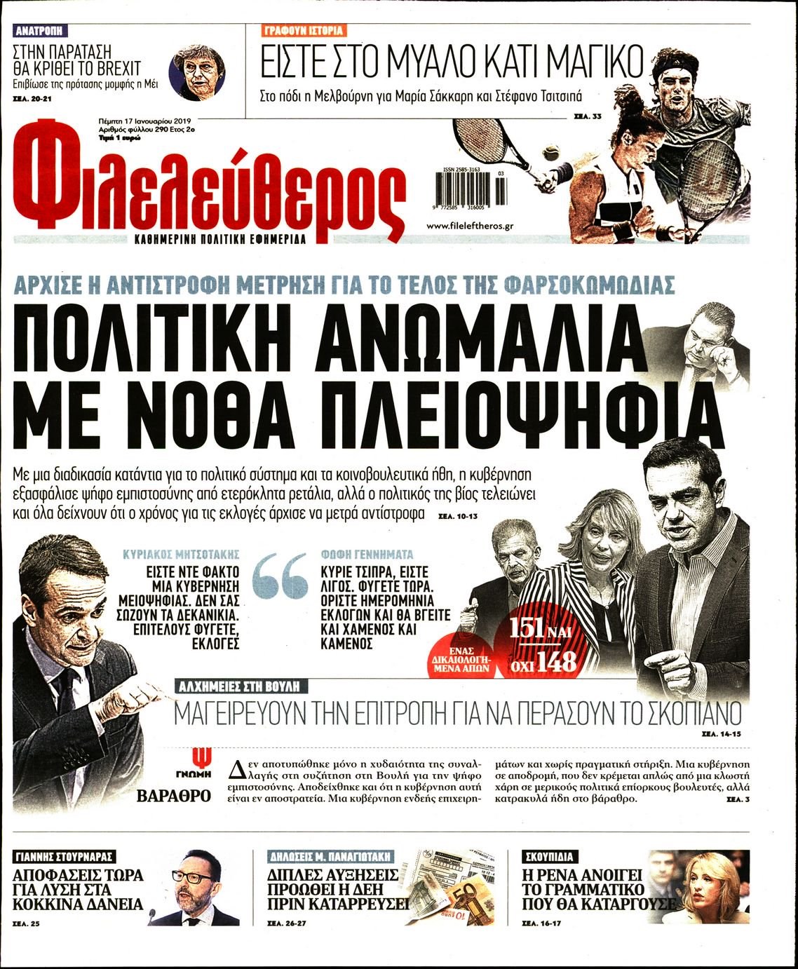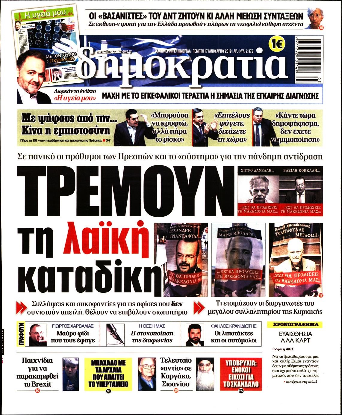 Οι πολιτικές εφημερίδες 17/1/19 Enikos Newsroom 06:33, Πέμπτη 17 Ιανουαρίου 2019 Media Διαβάστε τα πρωτοσέλιδα των πολιτικών εφημερίδων: ΠΟΛΙΤΙΚΕΣ ΕΦΗΜΕΡΙΔΕΣ ΠΡΩΤΟΣΕΛΙΔΑ Μοιράσου το: σχολίασε κι εσύ (0 σχόλια) Ακολουθήστε το enikos.gr στο Google News και μάθετε πρώτοι όλες τις ειδήσεις Δείτε όλες τις τελευταίες ειδήσεις από την Ελλάδα και τον Κόσμο στο enikos.gr Ειδήσεις Ροή Ειδήσεων 3 ώρες πριν Υπόθεση Έπσταϊν: Το Υπουργείο Δικαιοσύνης δημοσιοποίησε μια σειρά από εξαιρετικά επεξεργασμένα αρχεία – «Λείπουν τα πιο σημαντικά έγγραφα», λένε οι Δημοκρατικοί 26 λεπτά πριν Γιορτές με μπλόκα για τους αγρότες: Ανοίγουν διόδια και μοιράζουν προϊόντα στους ταξιδιώτες 58 λεπτά πριν Εξαφάνιση 33χρονου γιατρού στην Κρήτη: «Άναψα τα φώτα, τρόμαξε και άρχισε να τρέχει στα χωράφια» – Η τελευταία διαδρομή και η μαρτυρία «κλειδί» 2 ώρες πριν Ο «χάρτης» με τις αυξήσεις και τις φοροελαφρύνσεις του 2026 – Ποιοι και πόσα κερδίζουν 42 λεπτά πριν Τα αρχεία του Έπσταϊν αποκαλύπτουν φωτογραφία του έκπτωτου πρίγκιπα Άντριου – Είναι ξαπλωμένος στην αγκαλιά 5 γυναικών 49 λεπτά πριν Μία νέα «χρυσή» περίοδος αρχίζει για 3 ζώδια από σήμερα – «Μία αναπάντεχη ευκαιρία οδηγεί στην επιτυχία» 5 ώρες πριν Αυγά: Πόσα μπορείτε να τρώτε την ημέρα με ασφάλεια για μέγιστη πρόσληψη πρωτεΐνης 3 ώρες πριν Αρχαιολόγοι ανακάλυψαν σε χωράφι απεικόνιση 600 ετών ενός Αγίου – Τα στοιχεία που δείχνουν ότι μαρτύρησε 2 ώρες πριν Αγχώνεται για το χριστουγεννιάτικο δώρο που πήρε στην πλούσια σύντροφό του – «Φοβάμαι πως θα το βρει φθηνιάρικο, φοράει βραχιόλια Cartier» 2 λεπτά πριν Τηλεθέαση (19/12): Ανατροπές και πρωτιές στην πρωινή ζώνη 10 λεπτά πριν Πώς η κλιματική αλλαγή επηρεάζει εγκύους και βρέφη – Οι επιπτώσεις των υψηλών θερμοκρασιών 18 λεπτά πριν e-ΕΦΚΑ και ΔΥΠΑ: Οι πληρωμές από 22 έως 24 Δεκεμβρίου – Ποιοι θα δουν χρήματα στους λογαριασμούς τους 26 λεπτά πριν Συνελήφθη οδηγός μηχανής που έτρεχε με 161 χλμ στη Συγγρού – Τον έπιασε το ραντάρ της Τροχαίας 26 λεπτά πριν Γιορτές με μπλόκα για τους αγρότες: Ανοίγουν διόδια και μοιράζουν προϊόντα στους ταξιδιώτες ENIKOS NETWORK Είστε μόνιμα απρόσεκτοι; 3 σημάδια που δείχνουν ότι μπορεί να είναι σύμπτωμα πάθησης Πόσα κιλά παίρνουμε πραγματικά τα Χριστούγεννα, σύμφωνα με την επιστήμη – Πώς να το αποτρέψουμε; Επίδομα παιδιού: Τι αλλάζει από το 2026 – Το όφελος από τις φορολογικές ελαφρύνσεις Mega χριστουγεννιάτικη φορολοταρία: «Κλείδωσε» η ημερομηνία για την κλήρωση – Ερωτήσεις και απαντήσεις Χαρτογραφώντας το «σημείο χωρίς επιστροφή»: Για πρώτη φορά αποκαλύπτεται με λεπτομέρεια το ακανθώδες όριο της ατμόσφαιρας τ... Η Google καταργεί τη λειτουργία «dark web report» – Πώς θα μπορούν οι χρήστες να διαγράφουν τα δεδομένα τους περισσότερα 09:30 , Σάββατο 20 Δεκεμβρίου 2025 «Porto Leone: Στη γειτονιά με τα κόκκινα φανάρια» – Ο Χρόνης αποκαλύπτει στην Αλεξάνδρα το μυστικό για το παιδί της Λένας Η μεγάλη δραματική σειρά του Apha «Porto Leone: Στη γειτονιά με τα κόκκινα φανάρια» μας μεταφέ... 08:14 , Σάββατο 20 Δεκεμβρίου 2025 Τρομεροί γονείς: Η Μαρία Καβογιάννη εισβάλλει στο σπίτι της οικογένειας Στεφανίδη Όσα θα δούμε στο νέο διπλό επεισόδιο της σειράς «Τρομεροί γονείς», σήμερα Σάββατο 20 Δεκεμβρίο... 05:48 , Σάββατο 20 Δεκεμβρίου 2025 Οι οικονομικές εφημερίδες 20/12/2025 Διαβάστε τα πρωτοσέλιδα από τις οικονομικές εφημερίδες, σήμερα 20/12/2025. 05:43 , Σάββατο 20 Δεκεμβρίου 2025 Οι αθλητικές εφημερίδες 20/12/2025 Διαβάστε τα πρωτοσέλιδα από τις αθλητικές εφη
